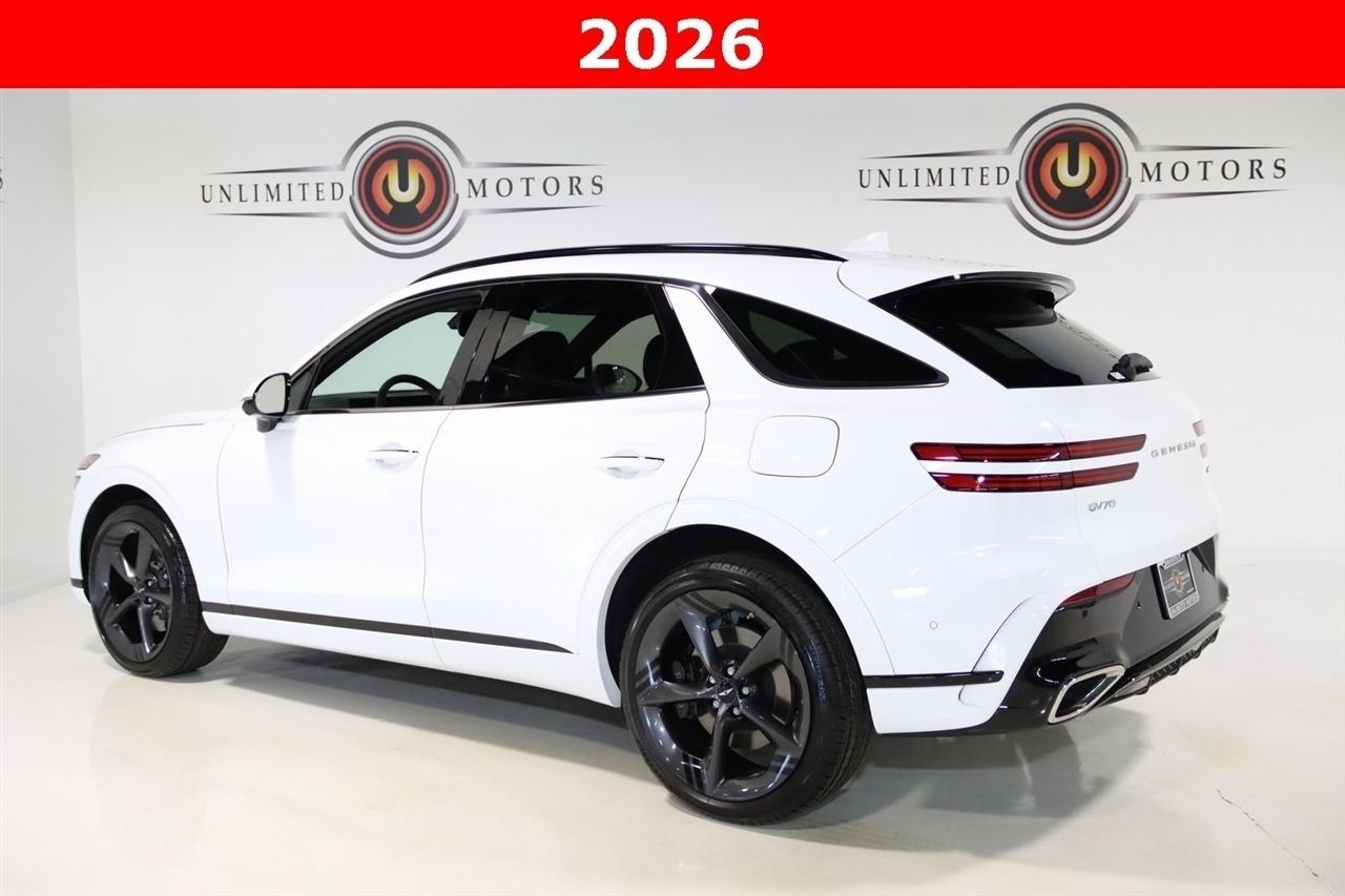 Navigation, Bluetooth, Back Up Camera, Panoramic Roof, Heated Seats, Touch Screen, 16 Speakers, 4-Wheel Disc Brakes, ABS brakes, Adaptive suspension, Air Conditioning, Alloy wheels, AM/FM radio: SiriusXM, Android Auto & Apple CarPlay, Anti-whiplash front head restraints, Auto High-beam Headlights, Auto-dimming door mirrors, Auto-dimming Rear-View mirror, Automatic temperature control, Brake assist, Bumpers: body-color, Cargo Cover, Cargo Net, Cargo Tray, Delay-off headlights, Driver door bin, Driver vanity mirror, Dual front impact airbags, Dual front side impact airbags, Electronic Stability Control, Emergency communication system: Genesis Connected Services, Exterior Parking Camera Rear, First Aid Kit, Four wheel independent suspension, Front anti-roll bar, Front Bucket Seats, Front Center Armrest w/Storage, Front dual zone A/C, Front reading lights, Fully automatic headlights, Garage door transmitter: HomeLink, Heads-Up Display, Heated and Ventilated Front Bucket Seats, Heated door mirrors, Heated front seats, Heated rear seats, Heated steering wheel, Illuminated entry, Knee airbag, Leather steering wheel, Low tire pressure warning, Memory seat, Nappa Leather Seating Surfaces, Navigation System, NFC Key Card, Occupant sensing airbag, Option Group 01, Outside temperature display, Overhead airbag, Overhead console, Panic alarm, Passenger door bin, Passenger vanity mirror, Power door mirrors, Power driver seat, Power Liftgate, Power moonroof, Power passenger seat, Power steering, Power windows, Radio: 14.5 Navigation System with AM/FM/HD, Rain sensing wipers, Rear air conditioning, Rear anti-roll bar, Rear reading lights, Rear seat center armrest, Rear window defroster, Rear window wiper, Remote keyless entry, Security system, Speed control, Speed-sensing steering, Speed-Sensitive Wipers, Split folding rear seat, Spoiler, Steering wheel memory, Steering wheel mounted audio controls, Tachometer, Telescoping steering wheel, Tilt steering wheel, Traction control, Trip computer, Turn signal indicator mirrors, Variably intermittent wipers, Ventilated front seats, Wheels: 21 Dark Sputtering Alloy. CARFAX One-Owner.2026 White Genesis 4D Sport Utility GV70 3.5T Sport Prestige AWD 8-Speed Automatic with SHIFTRONIC 3.5L DOHCVisit our website www.iumotors.com to view 100s of newer vehicles, more pictures and info, or to apply for financing. Rates are incredibly low for approved credit. We offer extended warranties, protection packages, and insurance. We assure you the best experience at any of our 4 locations and unbeatable prices and quality. At Unlimited Motors we believe in MARKET VALUE PRICING. We use real-time Internet price comparisons to constantly adjust prices to provide ALL BUYERS The BEST PRICE possible. We do not mark them up, to mark them down! Our entire team is committed to helping you buy a car the way we would want to buy a car! We utilize state-of-the-art technology to constantly monitor pricing trends to offer our shoppers the best competitive pricing, value, and experience. We sell and service all makes and models of Pre-owned / Used Vehicles Used Cars, Used Trucks, Used Sport Utility, Lamborghini, Ferrari, Bentley, Rolls Royce, McLaren, Maserati, Ford, Chevrolet/Chevy, Honda, Toyota, Porsche, Land Rover, Jaguar, INFINITI, Audi, Nissan, Mazda, Hyundai, Chrysler, Jeep, Dodge, Ram, SRT, Mitsubishi, Lexus, Kia, Volkswagen, Mini, BMW, Mercedes, Fiat, Volvo, GMC, Cadillac, Lincoln as well as other brands. Proudly serving these areas of Indianapolis, Fishers, Carmel, Noblesville, Greenwood, Avon, Plainfield, Zionsville, & Brownsburg, Indiana, Midwest. We also serve the entire nation with our seamless and easy online purchasing process, and offer shipping nationwide.Advertised prices DO NOT include Sales Tax, Dealer Fees, Title Processing Charges, and Dealer Pre-installed Products.