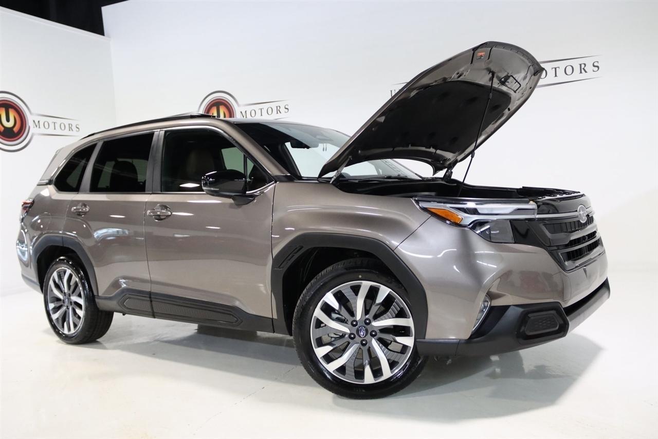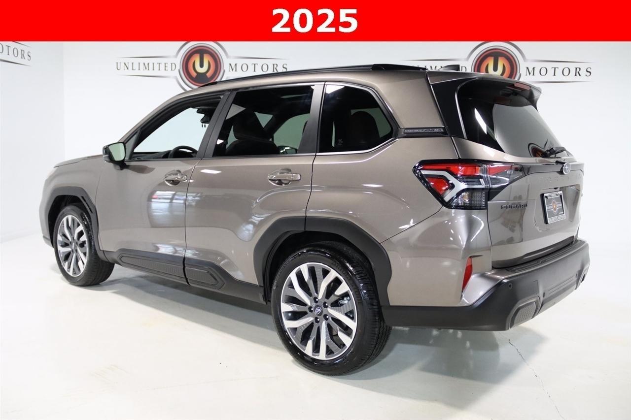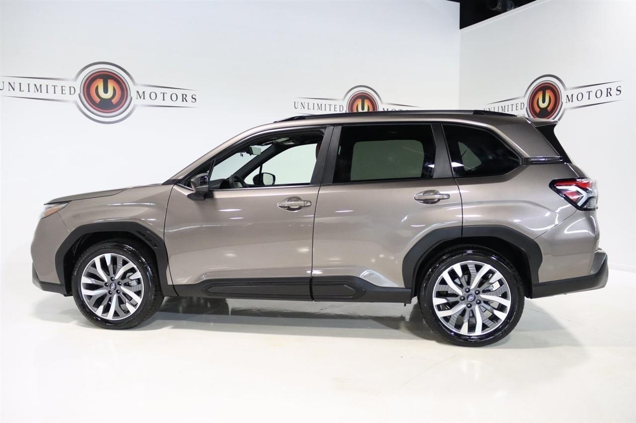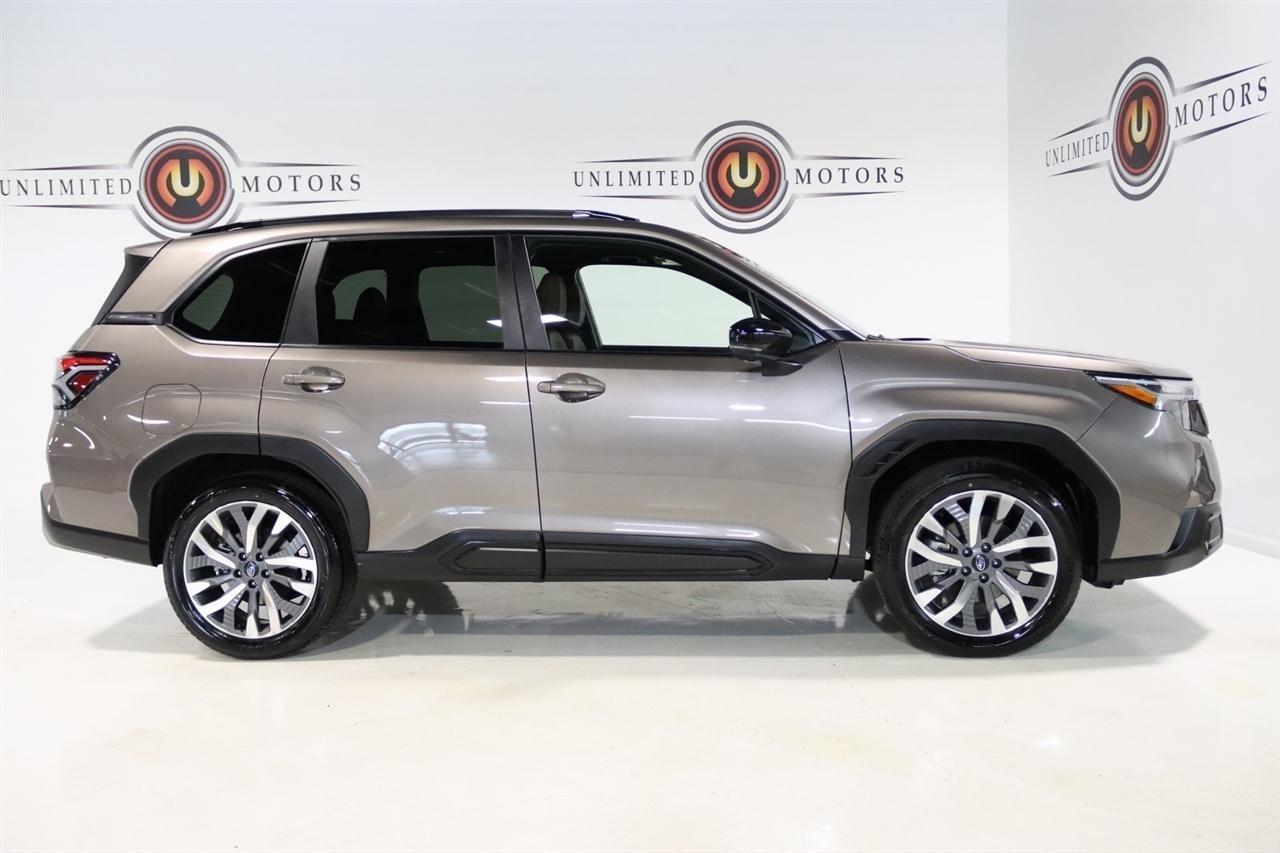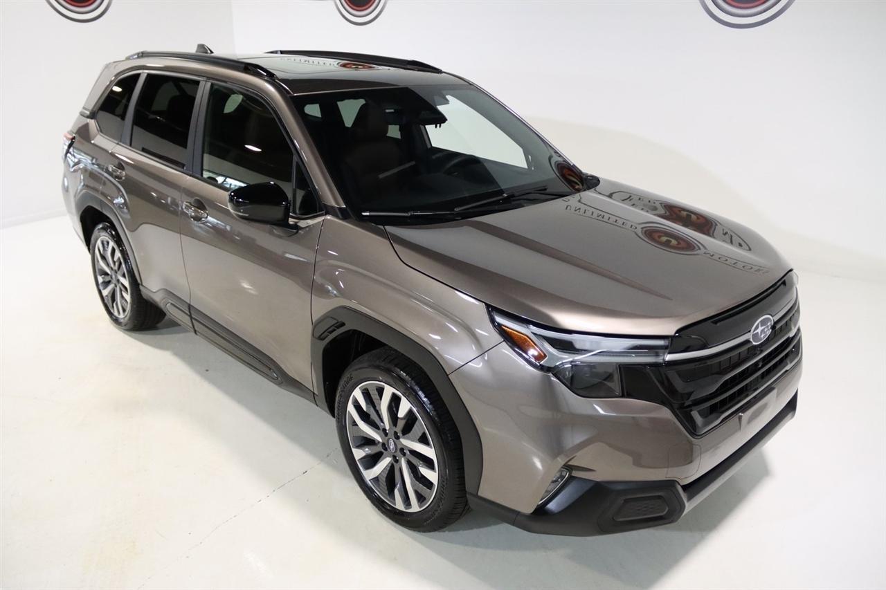 Navigation, Bluetooth, Back Up Camera, Panoramic Roof, Heated Seats, Touch Screen, 11 Speakers, 4-Wheel Disc Brakes, ABS brakes, Air Conditioning, All-Weather Floor Liners, Alloy wheels, AM/FM radio: SiriusXM with 360L, Anti-whiplash front head restraints, Auto High-beam Headlights, Auto-Dimming Exterior Mirror w/Approach Light, Automatic temperature control, Brake assist, Bumpers: body-color, Cargo Tray, Driver door bin, Driver vanity mirror, Dual front impact airbags, Dual front side impact airbags, Electronic Stability Control, Emergency communication system: MySubaru Safety (3-year free trial), Exterior Parking Camera Rear, Four wheel independent suspension, Front anti-roll bar, Front Bucket Seats, Front Center Armrest, Front dual zone A/C, Front fog lights, Front reading lights, Fully automatic headlights, harman/kardon Speakers, Heated & Ventilated Front Bucket Seats, Heated door mirrors, Heated front seats, Heated rear seats, Heated steering wheel, HVAC memory, Illuminated entry, Knee airbag, Leather steering wheel, LED Upgrade, Low tire pressure warning, Memory seat, Navigation System, Occupant sensing airbag, Outside temperature display, Overhead airbag, Overhead console, Panic alarm, Passenger door bin, Passenger vanity mirror, Perforated Leather-Trimmed Upholstery, Power door mirrors, Power driver seat, Power Liftgate, Power moonroof: Panoramic, Power passenger seat, Power steering, Power windows, Radio data system, Radio: Subaru 11.6 Multimedia Navigation System, Rear anti-roll bar, Rear Bumper Cover, Rear seat center armrest, Rear Seatback Protector, Rear window defroster, Rear window wiper, Remote keyless entry, Security system, Speed control, Speed-sensing steering, Split folding rear seat, Spoiler, Standard Model, Steering wheel mounted audio controls, Tachometer, Telescoping steering wheel, Tilt steering wheel, Traction control, Trip computer, Turn signal indicator mirrors, Variably intermittent wipers, Ventilated front seats, Wheels: 19 x 7.5 J Dark Gray Aluminum-Alloy. CARFAX One-Owner. Clean CARFAX. 25/32 City/Highway MPG Odometer is 7261 miles below market average!2025 Bronze Metallic Subaru 4D Sport Utility Forester Touring AWD Lineartronic CVT 2.5L 4-Cylinder DOHC 16VVisit our website www.iumotors.com to view 100s of newer vehicles, more pictures and info, or to apply for financing. Rates are incredibly low for approved credit. We offer extended warranties, protection packages, and insurance. We assure you the best experience at any of our 4 locations and unbeatable prices and quality. At Unlimited Motors we believe in MARKET VALUE PRICING. We use real-time Internet price comparisons to constantly adjust prices to provide ALL BUYERS The BEST PRICE possible. We do not mark them up, to mark them down! Our entire team is committed to helping you buy a car the way we would want to buy a car! We utilize state-of-the-art technology to constantly monitor pricing trends to offer our shoppers the best competitive pricing, value, and experience. We sell and service all makes and models of Pre-owned / Used Vehicles Used Cars, Used Trucks, Used Sport Utility, Lamborghini, Ferrari, Bentley, Rolls Royce, McLaren, Maserati, Ford, Chevrolet/Chevy, Honda, Toyota, Porsche, Land Rover, Jaguar, INFINITI, Audi, Nissan, Mazda, Hyundai, Chrysler, Jeep, Dodge, Ram, SRT, Mitsubishi, Lexus, Kia, Volkswagen, Mini, BMW, Mercedes, Fiat, Volvo, GMC, Cadillac, Lincoln as well as other brands. Proudly serving these areas of Indianapolis, Fishers, Carmel, Noblesville, Greenwood, Avon, Plainfield, Zionsville, & Brownsburg, Indiana, Midwest. We also serve the entire nation with our seamless and easy online purchasing process, and offer shipping nationwide.Advertised prices DO NOT include Sales Tax, Dealer Fees, Title Processing Charges, and Dealer Pre-installed Products.
