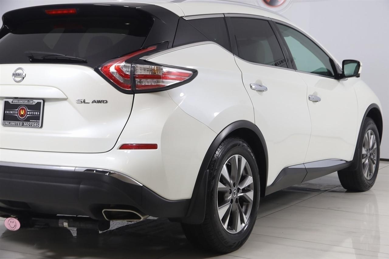 2015 Nissan Murano Pearl White Now Available at Unlimited Motors Westfield! With over 20 years in business and 4 Indiana locations, Unlimited Motors is known for offering high-quality, hand-selected vehicles at excellent pricing with outstanding customer service. Our inventory of over 1,000 vehicles includes major makes such as Ford, Chevrolet, Ram, Jeep, GMC, Dodge, BMW, Mercedes-Benz, Audi, Cadillac, Porsche, Maserati, Ferrari, and Lamborghini, giving customers one of the largest selections of quality vehicles in the Midwest. Vehicle Highlights:Navigation, Back Up Camera, Bluetooth, Panoramic Roof, Touch Screen, Heated Front Seats, Murano SL, 4D Sport Utility, 3.5L V6 DOHC, CVT with Xtronic, AWD, Pearl White, Beige Leather, Intelligent Cruise Control, Navigation System, Power Panoramic Moonroof, Predictive Forward Collision Warning (PFCW), SL Technology Package.Recent Arrival! Priced below KBB Fair Purchase Price!Visit www.iumotors.com to explore our full inventory of over 1,000 hand-picked vehicles across our Westfield, Fishers, Noblesville, and Elwood locations. At Unlimited Motors, we offer a premium car-buying experience with competitive financing through local credit unions and national lenders, top trade-in values, full auto repair and maintenance services for customer vehicles, and nationwide shipping to all 50 states. Youll also find many of the most searched and in-demand models, including Ford F-150, Chevrolet Silverado, Ram 1500, Jeep Wrangler, Jeep Grand Cherokee, Chevrolet Tahoe, Chevrolet Suburban, GMC Yukon, GMC Sierra, Dodge Charger, Dodge Durango, Ford Explorer, BMW X5, BMW X3, BMW 3 Series, Mercedes-Benz GLE, Mercedes-Benz GLC, Cadillac Escalade, Audi Q5, Audi Q7, Porsche Cayenne, Porsche Macan, Maserati Ghibli, and more. Whether youre visiting from Westfield, Indianapolis, Carmel, Fishers, Noblesville, Zionsville, Greenwood, Lawrence, Brownsburg, Avon, Plainfield, Lebanon, Anderson, Muncie, Kokomo, Lafayette, Bloomington, Columbus, or anywhere across Central and Northern Indiana, we are here to help you find the perfect vehicle with exceptional service and unbeatable value. Call us today at 317-896-4488 1470 W Tournament Trl, Westfield, IN 46074. Disclaimer: Advertised prices DO NOT include Sales Tax, Dealer Fees, Title Processing Charges, and Dealer Pre-installed Products.