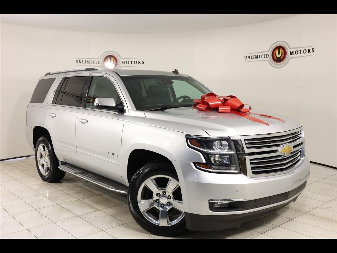 2015 Chevrolet Tahoe Silver Ice Metallic Now Available at Unlimited Motors Elwood! With over 20 years in business and 4 Indiana locations, Unlimited Motors is known for offering high-quality, hand-selected vehicles at excellent pricing with outstanding customer service. Our inventory of over 1,000 vehicles includes major makes such as Ford, Chevrolet, Ram, Jeep, GMC, Dodge, BMW, Mercedes-Benz, Audi, Cadillac, Porsche, Maserati, Ferrari, and Lamborghini, giving customers one of the largest selections of quality vehicles in the Midwest. Vehicle Highlights:4WD, Black Leather.Recent Arrival! Clean CARFAX.Visit www.iumotors.com to explore our full inventory of over 1,000 hand-picked vehicles across our Westfield, Fishers, Noblesville, and Elwood locations. At Unlimited Motors, we offer a premium car-buying experience with competitive financing through local credit unions and national lenders, top trade-in values, full auto repair and maintenance services for customer vehicles, and nationwide shipping to all 50 states. Youll also find many of the most searched and in-demand models, including Ford F-150, Chevrolet Silverado, Ram 1500, Jeep Wrangler, Jeep Grand Cherokee, Chevrolet Tahoe, Chevrolet Suburban, GMC Yukon, GMC Sierra, Dodge Charger, Dodge Durango, Ford Explorer, BMW X5, BMW X3, BMW 3 Series, Mercedes-Benz GLE, Mercedes-Benz GLC, Cadillac Escalade, Audi Q5, Audi Q7, Porsche Cayenne, Porsche Macan, Maserati Ghibli, and more. Whether youre visiting from Westfield, Indianapolis, Carmel, Fishers, Noblesville, Zionsville, Greenwood, Lawrence, Brownsburg, Avon, Plainfield, Lebanon, Anderson, Muncie, Kokomo, Lafayette, Bloomington, Columbus, or anywhere across Central and Northern Indiana, we are here to help you find the perfect vehicle with exceptional service and unbeatable value. Call us today at 765-557-8817 10083 IN-13, Elwood, IN 46036. Disclaimer: Advertised prices DO NOT include Sales Tax, Dealer Fees, Title Processing Charges, and Dealer Pre-installed Products.