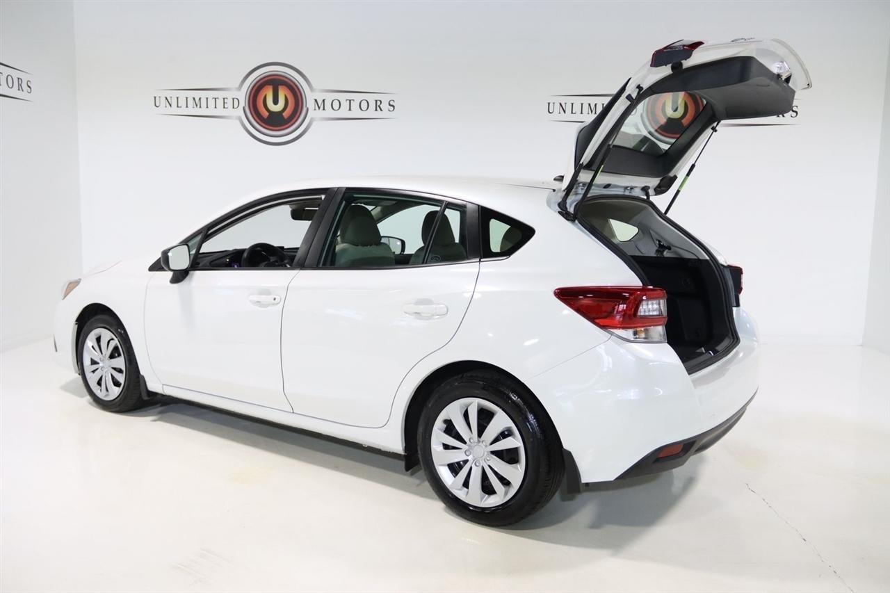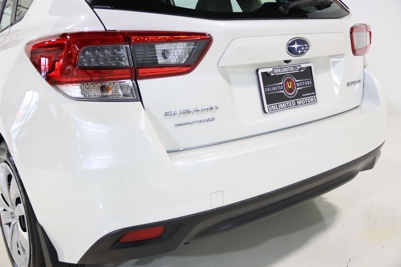 Bluetooth, Back Up Camera, Touch Screen, 4 Speakers, 4-Wheel Disc Brakes, ABS brakes, Air Conditioning, All-Weather Floor Liners, AM/FM radio, Anti-whiplash front head restraints, Auto-Dimming Exterior Mirror w/Approach Light, Auto-Dimming Mirror w/Compass, Brake assist, Bumpers: body-color, Cloth Upholstery, Crystal White Pearl Body Side Molding, Driver door bin, Driver vanity mirror, Dual front impact airbags, Dual front side impact airbags, Electronic Stability Control, Exterior Parking Camera Rear, EyeSight System, Four wheel independent suspension, Front anti-roll bar, Front Bucket Seats, Front Center Armrest, Front reading lights, High Grade Combination Meter w/Color LCD Display, Illuminated entry, Knee airbag, Low tire pressure warning, Occupant sensing airbag, Outside temperature display, Overhead airbag, Overhead console, Overhead Console Shower Light, Panic alarm, Passenger door bin, Passenger vanity mirror, Power door mirrors, Power steering, Power windows, Radio data system, Radio: Subaru STARLINK 6.5 Multimedia System, Rear Bumper Applique, Rear Seat Reminder, Rear window defroster, Rear window wiper, Remote keyless entry, Security system, Speed control, Speed-sensing steering, Splash Guards, Split folding rear seat, Spoiler, Standard Model w/CVT, STARLINK/Apple CarPlay/Android Auto, Steering wheel mounted audio controls, Tachometer, Telescoping steering wheel, Tilt steering wheel, Tire Pressure Monitoring System, Traction control, Trip computer, Variably intermittent wipers, Wheels: 16 x 6.5 Black Finish J Steel. Clean CARFAX. 28/36 City/Highway MPG Odometer is 9736 miles below market average! Priced below KBB Fair Purchase Price!2023 Crystal White Pearl Subaru 4D Hatchback Impreza AWD CVT Lineartronic 2.0L DOHCVisit our website www.iumotors.com to view 100s of newer vehicles, more pictures and info, or to apply for financing. Rates are incredibly low for approved credit. We offer extended warranties, protection packages, and insurance. We assure you the best experience at any of our 4 locations and unbeatable prices and quality. At Unlimited Motors we believe in MARKET VALUE PRICING. We use real-time Internet price comparisons to constantly adjust prices to provide ALL BUYERS The BEST PRICE possible. We do not mark them up, to mark them down! Our entire team is committed to helping you buy a car the way we would want to buy a car! We utilize state-of-the-art technology to constantly monitor pricing trends to offer our shoppers the best competitive pricing, value, and experience. We sell and service all makes and models of Pre-owned / Used Vehicles Used Cars, Used Trucks, Used Sport Utility, Lamborghini, Ferrari, Bentley, Rolls Royce, McLaren, Maserati, Ford, Chevrolet/Chevy, Honda, Toyota, Porsche, Land Rover, Jaguar, INFINITI, Audi, Nissan, Mazda, Hyundai, Chrysler, Jeep, Dodge, Ram, SRT, Mitsubishi, Lexus, Kia, Volkswagen, Mini, BMW, Mercedes, Fiat, Volvo, GMC, Cadillac, Lincoln as well as other brands. Proudly serving these areas of Indianapolis, Fishers, Carmel, Noblesville, Greenwood, Avon, Plainfield, Zionsville, & Brownsburg, Indiana, Midwest. We also serve the entire nation with our seamless and easy online purchasing process, and offer shipping nationwide.Advertised prices DO NOT include Sales Tax, Dealer Fees, Title Processing Charges, and Dealer Pre-installed Products.