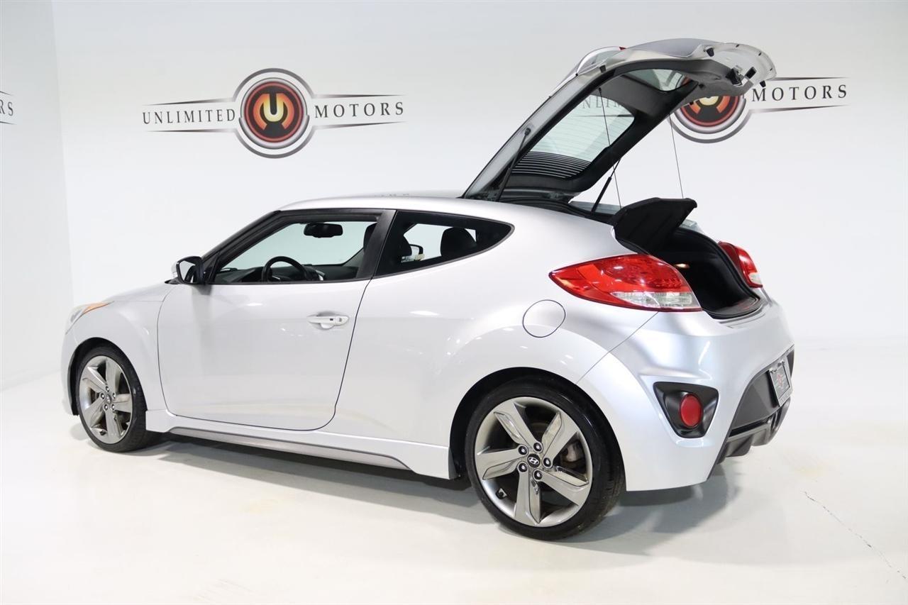 Touch Screen, 18 x 7.5J Alloy w/Chrome Accents Wheels, 4-Wheel Disc Brakes, 8 Speakers, ABS brakes, Advanced Dual Front Airbags, Air Conditioning, Alloy Pedals, Alloy wheels, AM/FM radio: SiriusXM, Anti-Lock Braking System (ABS), Black High Glossy Interior Accents, Bodycolor Power Heated Mirrors, Brake assist, Bumpers: body-color, Carpet Floor Mats, CD player, Driver door bin, Driver vanity mirror, Driver's Lumbar Support, Dual Center Position Chrome Exhaust Tips, Dual front impact airbags, Dual front side impact airbags, Electronic Stability Control, Emergency communication system: Blue Link, Front anti-roll bar, Front Bucket Seats, Front Center Armrest w/Storage, Front Fog Lights, Front fog lights, Front LED Headlight Accents, Front reading lights, Front wheel independent suspension, Ground Effects Bodykit, Heated door mirrors, Heated Front Bucket Seats, Heated front seats, Illuminated entry, Illuminated Vanity Mirror w/Sunvisor Extensions, Integrated Bluetooth Hands-Free Phone System w/VR, Leather Seating Surfaces, Leather steering wheel, Leather-Wrapped Steering Wheel & Shift Knob, Low tire pressure warning, Map Lights w/Sunglass Holder, Occupant sensing airbag, Option Group 01, Outside temperature display, Overhead airbag, Overhead console, Panic alarm, Passenger door bin, Passenger vanity mirror, Power door mirrors, Power Lumbar Support, Power steering, Power windows, Power Windows & Door Locks, Power Windows w/Driver's Auto-Up, Projection Headlights, Proximity Key w/Push-Button Start, Radio: AM/FM/SiriusXM/CD/MP3 Dimension Premium, Rear anti-roll bar, Rear LED Taillights, Rear window defroster, Rear window wiper, Rear Wiper, Remote keyless entry, Remote Keyless Entry w/Alarm, Security system, Side Mirrors w/Turn Signals Indicators, Speed control, Speed-sensing steering, Split folding rear seat, Spoiler, Sport-Tuned Steering & Sound Character, Steering Wheel Mounted Audio & Cruise Control, Steering wheel mounted audio controls, Supervision Cluster, Tachometer, Telescoping steering wheel, Tilt & Telescopic Steering Wheel, Tilt steering wheel, Tire Pressure Monitoring System, Traction control, Trip Computer, Trip computer, Turn signal indicator mirrors, Unique Front Fascia/Grille, Variably intermittent wipers. 24/31 City/Highway MPG Odometer is 52679 miles below market average!2013 Ironman Silver Metallic Hyundai 3D Hatchback Veloster Turbo w/Blue FWD 6-Speed Automatic with Shiftronic 1.6L I4 DGI DOHC 16V TurbochargedAwards: * 2013 KBB.com 5-Year Cost to Own Awards * 2013 KBB.com 10 Coolest New Cars Under $18,000Visit our website www.iumotors.com to view 100s of newer vehicles, more pictures and info, or to apply for financing. Rates are incredibly low for approved credit. We offer extended warranties, protection packages, and insurance. We assure you the best experience at any of our 4 locations and unbeatable prices and quality. At Unlimited Motors we believe in MARKET VALUE PRICING. We use real-time Internet price comparisons to constantly adjust prices to provide ALL BUYERS The BEST PRICE possible. We do not mark them up, to mark them down! Our entire team is committed to helping you buy a car the way we would want to buy a car! We utilize state-of-the-art technology to constantly monitor pricing trends to offer our shoppers the best competitive pricing, value, and experience. We sell and service all makes and models of Pre-owned / Used Vehicles Used Cars, Used Trucks, Used Sport Utility, Lamborghini, Ferrari, Bentley, Rolls Royce, McLaren, Maserati, Ford, Chevrolet/Chevy, Honda, Toyota, Porsche, Land Rover, Jaguar, INFINITI, Audi, Nissan, Mazda, Hyundai, Chrysler, Jeep, Dodge, Ram, SRT, Mitsubishi, Lexus, Kia, Volkswagen, Mini, BMW, Mercedes, Fiat, Volvo, GMC, Cadillac, Lincoln as well as other brands. Proudly serving these areas of Indianapolis, Fishers, Carmel, Noblesville, Greenwood, Avon, Plainfield, Zionsville, & Brownsburg, Indiana, Midwest. We also serve the entire nation