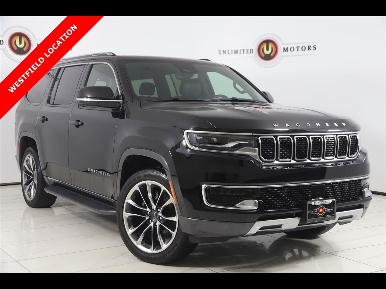 2022 Jeep Wagoneer Diamond Black Crystal Pearlcoat Now Available at Unlimited Motors Westfield! With over 20 years in business and 4 Indiana locations, Unlimited Motors is known for offering high-quality, hand-selected vehicles at excellent pricing with outstanding customer service. Our inventory of over 1,000 vehicles includes major makes such as Ford, Chevrolet, Ram, Jeep, GMC, Dodge, BMW, Mercedes-Benz, Audi, Cadillac, Porsche, Maserati, Ferrari, and Lamborghini, giving customers one of the largest selections of quality vehicles in the Midwest. Vehicle Highlights:Navigation, Back Up Camera, Bluetooth, Running Boards, Panoramic Roof, Touch Screen, Heated Front Seats, Heated Steering Wheel, Ventilated Front Seats, Blind Spot, Memory Driver Seat, Apple CarPlay/Android Auto, Wagoneer Series II, 4D Sport Utility, 5.7L V8, 8-Speed Automatic, 4WD, Diamond Black Crystal Pearlcoat, Black Leather, 3 Panel Sunroof, Adjustable Roof Rail Crossbars, Cargo Cover, Navigation System, Premium Group I (DISC), Quick Order Package 22J, Reversible Carpet/Vinyl Cargo Mat.CARFAX One-Owner.Visit www.iumotors.com to explore our full inventory of over 1,000 hand-picked vehicles across our Westfield, Fishers, Noblesville, and Elwood locations. At Unlimited Motors, we offer a premium car-buying experience with competitive financing through local credit unions and national lenders, top trade-in values, full auto repair and maintenance services for customer vehicles, and nationwide shipping to all 50 states. Youll also find many of the most searched and in-demand models, including Ford F-150, Chevrolet Silverado, Ram 1500, Jeep Wrangler, Jeep Grand Cherokee, Chevrolet Tahoe, Chevrolet Suburban, GMC Yukon, GMC Sierra, Dodge Charger, Dodge Durango, Ford Explorer, BMW X5, BMW X3, BMW 3 Series, Mercedes-Benz GLE, Mercedes-Benz GLC, Cadillac Escalade, Audi Q5, Audi Q7, Porsche Cayenne, Porsche Macan, Maserati Ghibli, and more. Whether youre visiting from Westfield, Indianapolis, Carmel, Fishers, Noblesville, Zionsville, Greenwood, Lawrence, Brownsburg, Avon, Plainfield, Lebanon, Anderson, Muncie, Kokomo, Lafayette, Bloomington, Columbus, or anywhere across Central and Northern Indiana, we are here to help you find the perfect vehicle with exceptional service and unbeatable value. Call us today at 317-896-4488 1470 W Tournament Trl, Westfield, IN 46074. Disclaimer: Advertised prices DO NOT include Sales Tax, Dealer Fees, Title Processing Charges, and Dealer Pre-installed Products.