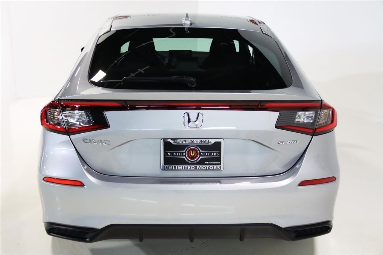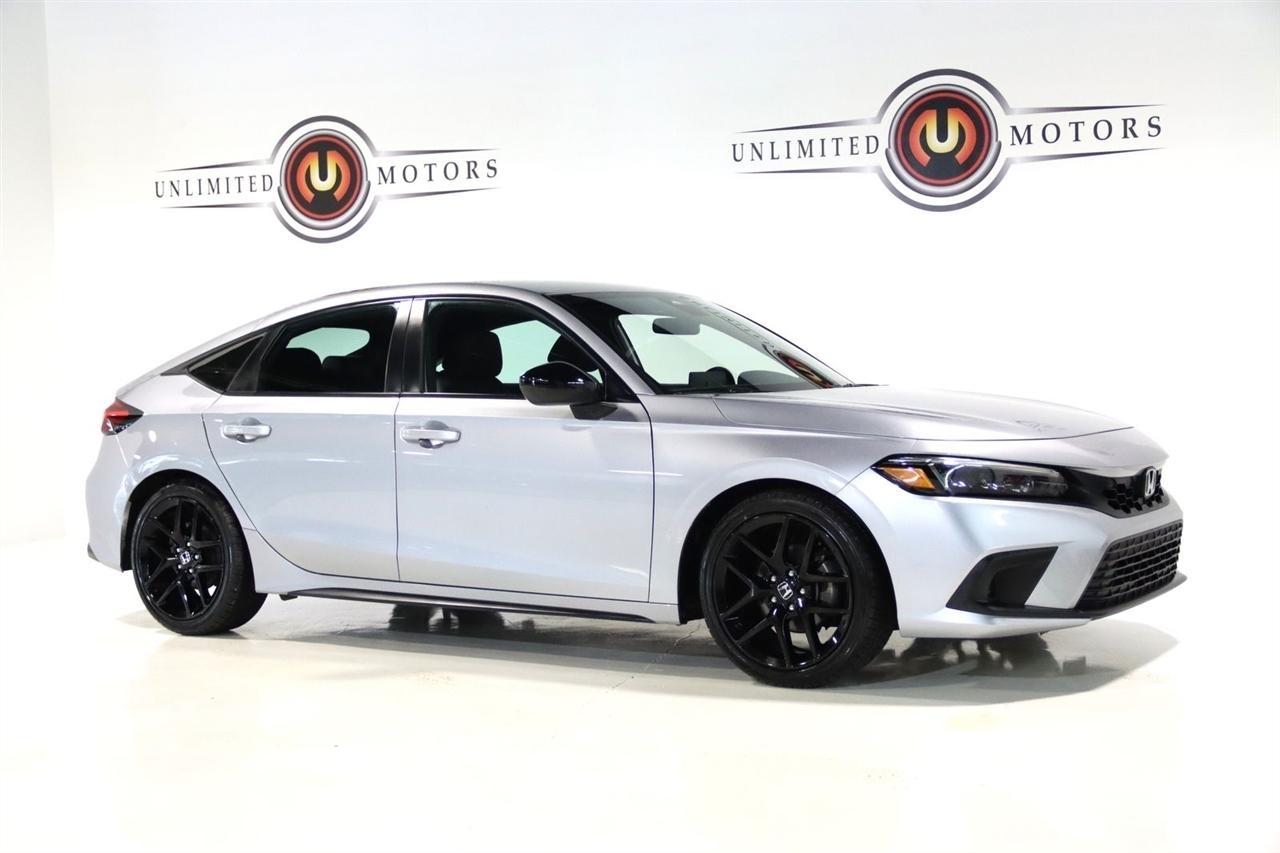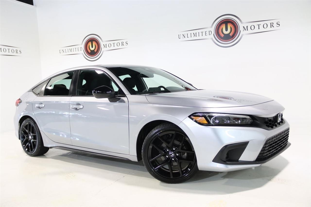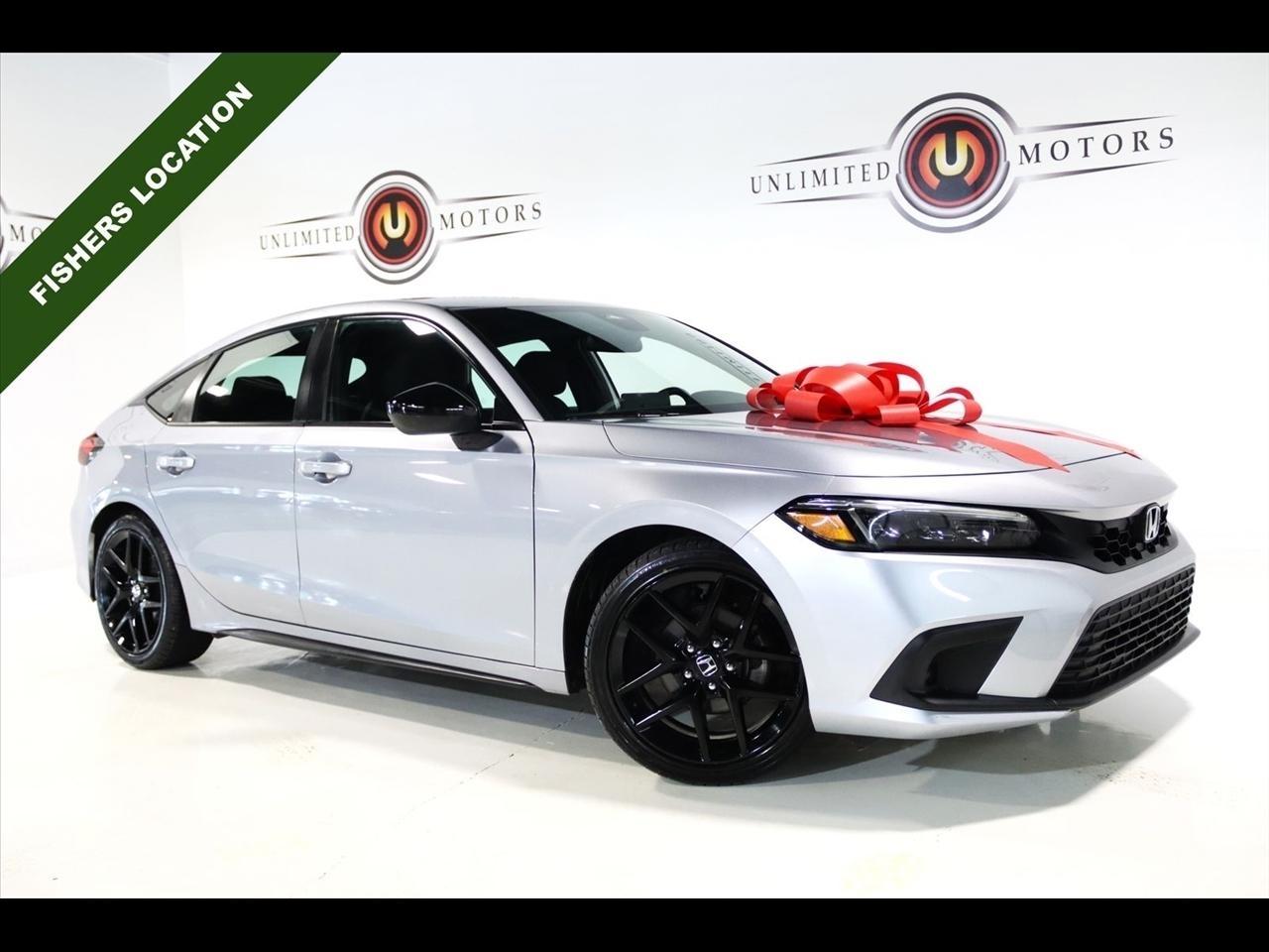 Bluetooth, Back Up Camera, Touch Screen, 18 Alloy Wheels, 4-Wheel Disc Brakes, 8 Speakers, ABS brakes, Adaptive Cruise Control: Adaptive Cruise Control (ACC) with Low-Speed Follow, Air Conditioning, Alloy wheels, AM/FM radio, Apple CarPlay/Android Auto, Auto High-beam Headlights, Automatic temperature control, Brake assist, Bumpers: body-color, Delay-off headlights, Driver door bin, Driver vanity mirror, Dual front impact airbags, Dual front side impact airbags, Electronic Stability Control, Emergency communication system: HondaLink, Exterior Parking Camera Rear, Fabric Seating Surfaces, Forward collision: Collision Mitigation Braking System (CMBS) + FCW mitigation, Four wheel independent suspension, Front anti-roll bar, Front Bucket Seats, Front Center Armrest, Front reading lights, Fully automatic headlights, Illuminated entry, Knee airbag, Lane departure: Lane Keeping Assist System (LKAS) active, Leather Shift Knob, Leather steering wheel, Low tire pressure warning, Occupant sensing airbag, Outside temperature display, Overhead airbag, Panic alarm, Passenger door bin, Passenger vanity mirror, Power door mirrors, Power steering, Power windows, Radio data system, Radio: 180-Watt Audio System, Rear anti-roll bar, Rear side impact airbag, Rear window defroster, Rear window wiper, Remote keyless entry, Security system, Speed control, Speed-sensing steering, Split folding rear seat, Steering wheel mounted audio controls, Tachometer, Telescoping steering wheel, Tilt steering wheel, Traction control, Trip computer, Voltmeter. 29/37 City/Highway MPG Odometer is 31129 miles below market average! Priced below KBB Fair Purchase Price!2022 Lunar Silver Metallic Honda 4D Hatchback Civic Sport FWD CVT 2.0L I4 DOHC 16VAwards: * NACTOY 2022 North American Car of the YearVisit our website www.iumotors.com to view 100s of newer vehicles, more pictures and info, or to apply for financing. Rates are incredibly low for approved credit. We offer extended warranties, protection packages, and insurance. We assure you the best experience at any of our 4 locations and unbeatable prices and quality. At Unlimited Motors we believe in MARKET VALUE PRICING. We use real-time Internet price comparisons to constantly adjust prices to provide ALL BUYERS The BEST PRICE possible. We do not mark them up, to mark them down! Our entire team is committed to helping you buy a car the way we would want to buy a car! We utilize state-of-the-art technology to constantly monitor pricing trends to offer our shoppers the best competitive pricing, value, and experience. We sell and service all makes and models of Pre-owned / Used Vehicles Used Cars, Used Trucks, Used Sport Utility, Lamborghini, Ferrari, Bentley, Rolls Royce, McLaren, Maserati, Ford, Chevrolet/Chevy, Honda, Toyota, Porsche, Land Rover, Jaguar, INFINITI, Audi, Nissan, Mazda, Hyundai, Chrysler, Jeep, Dodge, Ram, SRT, Mitsubishi, Lexus, Kia, Volkswagen, Mini, BMW, Mercedes, Fiat, Volvo, GMC, Cadillac, Lincoln as well as other brands. Proudly serving these areas of Indianapolis, Fishers, Carmel, Noblesville, Greenwood, Avon, Plainfield, Zionsville, & Brownsburg, Indiana, Midwest. We also serve the entire nation with our seamless and easy online purchasing process, and offer shipping nationwide.Advertised prices DO NOT include Sales Tax, Dealer Fees, Title Processing Charges, and Dealer Pre-installed Products.