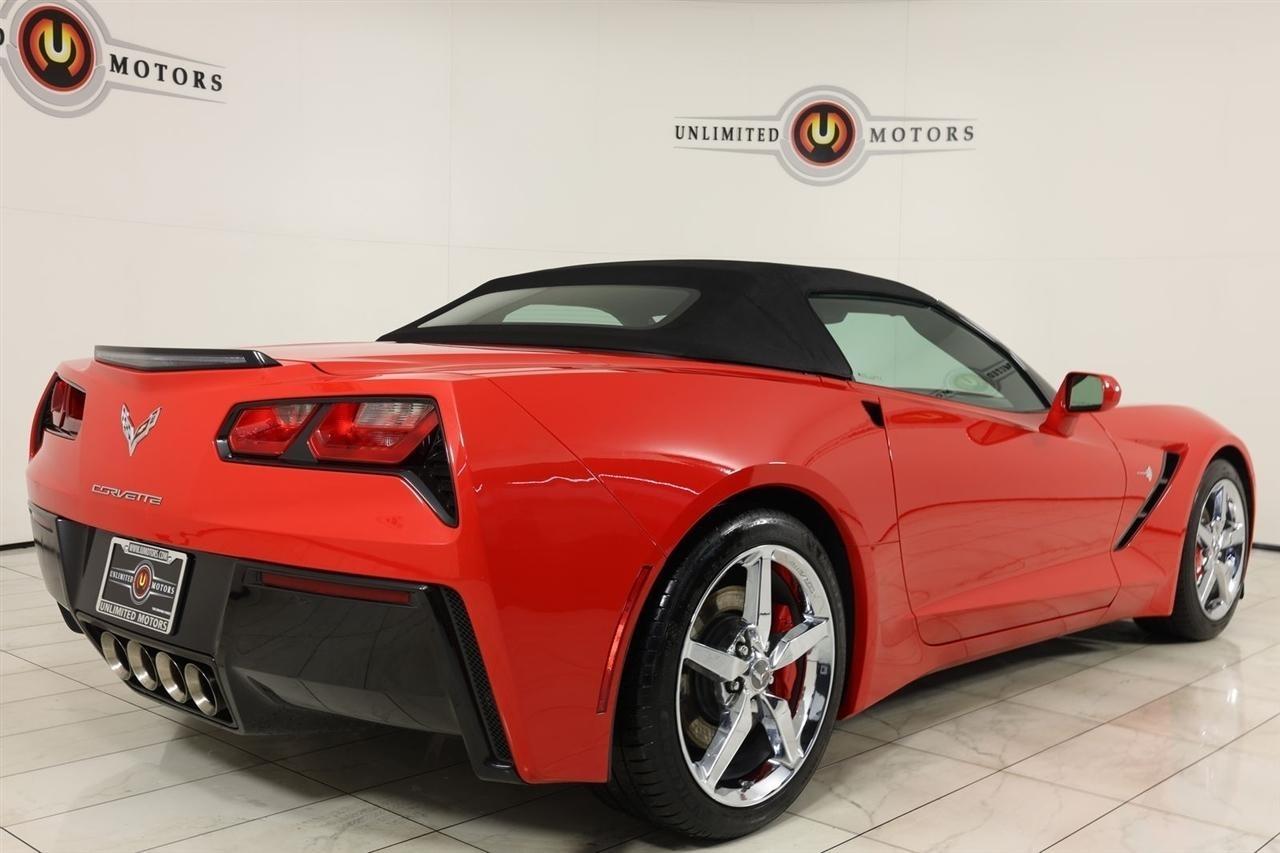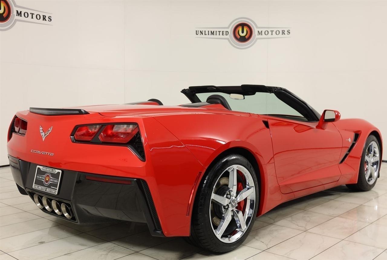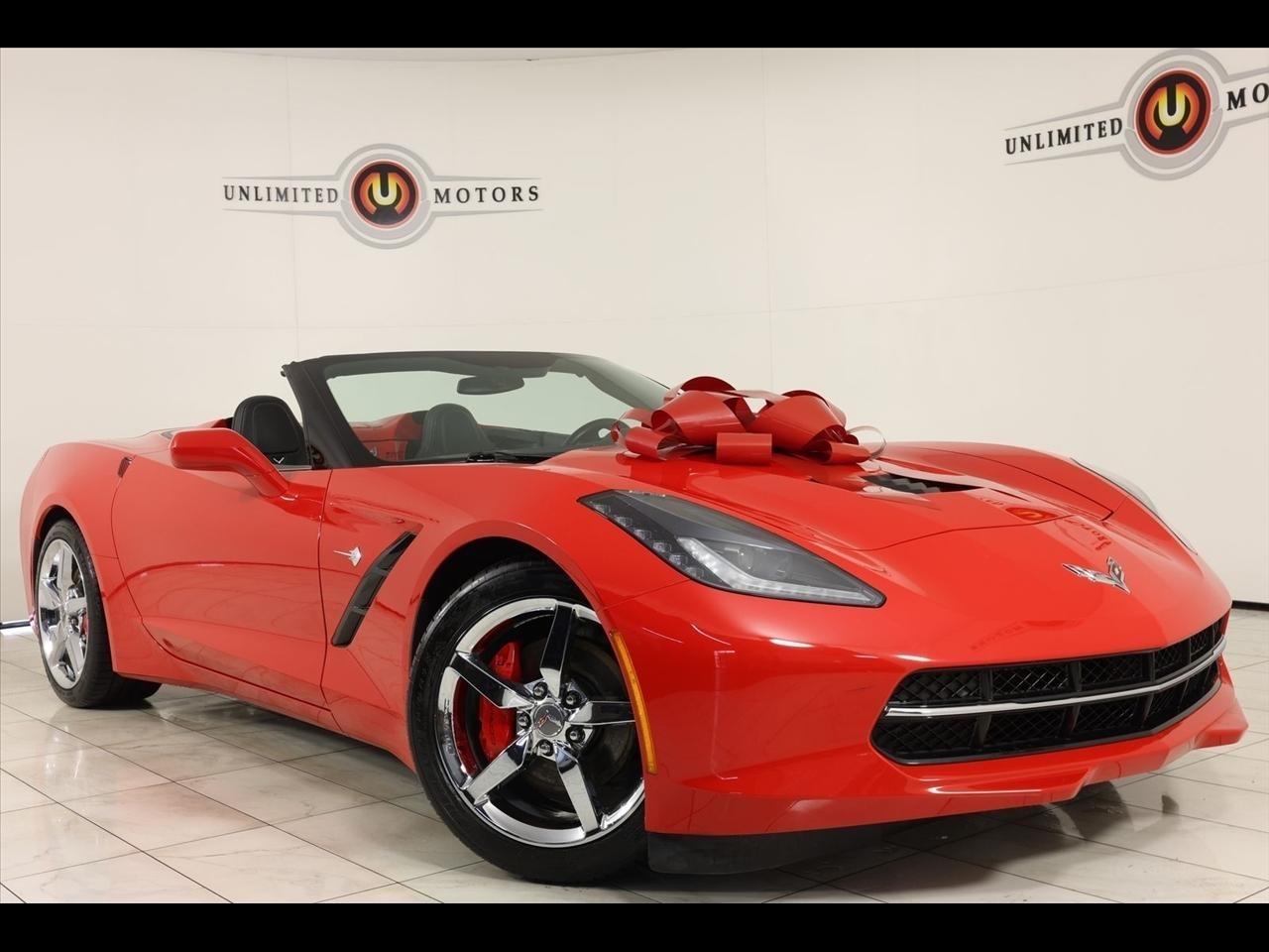2014 Chevrolet Corvette Stingray Torch Red Now Available at Unlimited Motors Elwood! With over 20 years in business and 4 Indiana locations, Unlimited Motors is known for offering high-quality, hand-selected vehicles at excellent pricing with outstanding customer service. Our inventory of over 1,000 vehicles includes major makes such as Ford, Chevrolet, Ram, Jeep, GMC, Dodge, BMW, Mercedes-Benz, Audi, Cadillac, Porsche, Maserati, Ferrari, and Lamborghini, giving customers one of the largest selections of quality vehicles in the Midwest. Vehicle Highlights:Navigation, Back Up Camera, Bluetooth, Touch Screen, Heated Seats, Blind Spot, Lane Assist.Recent Arrival!Visit www.iumotors.com to explore our full inventory of over 1,000 hand-picked vehicles across our Westfield, Fishers, Noblesville, and Elwood locations. At Unlimited Motors, we offer a premium car-buying experience with competitive financing through local credit unions and national lenders, top trade-in values, full auto repair and maintenance services for customer vehicles, and nationwide shipping to all 50 states. Youll also find many of the most searched and in-demand models, including Ford F-150, Chevrolet Silverado, Ram 1500, Jeep Wrangler, Jeep Grand Cherokee, Chevrolet Tahoe, Chevrolet Suburban, GMC Yukon, GMC Sierra, Dodge Charger, Dodge Durango, Ford Explorer, BMW X5, BMW X3, BMW 3 Series, Mercedes-Benz GLE, Mercedes-Benz GLC, Cadillac Escalade, Audi Q5, Audi Q7, Porsche Cayenne, Porsche Macan, Maserati Ghibli, and more. Whether youre visiting from Westfield, Indianapolis, Carmel, Fishers, Noblesville, Zionsville, Greenwood, Lawrence, Brownsburg, Avon, Plainfield, Lebanon, Anderson, Muncie, Kokomo, Lafayette, Bloomington, Columbus, or anywhere across Central and Northern Indiana, we are here to help you find the perfect vehicle with exceptional service and unbeatable value. Call us today at 765-557-8817 10083 IN-13, Elwood, IN 46036. Disclaimer: Advertised prices DO NOT include Sales Tax, Dealer Fees, Title Processing Charges, and Dealer Pre-installed Products.
