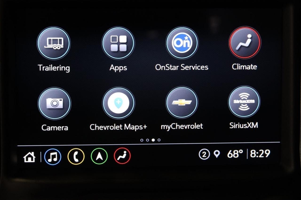 Bluetooth, Back Up Camera, Sun/Moon Roof, Heated Seats, Touch Screen, 10-Way Power Driver Seat Adjuster w/Lumbar, 10-Way Power Passenger Seat Adjuster w/Lumbar, 12-Volt Rear Auxiliary Power Outlet, 120-Volt Bed Mounted Power Outlet, 120-Volt Instrument Panel Power Outlet, 15 Diagonal Multicolor Head-Up Display, 170 Amp Alternator, 2 USB Ports (1st Row), 2 USB Ports & 1 SD Card Reader, 2-Speed Active Electronic AutoTrac Transfer Case, 220 Amp Alternator, 3.42 Rear Axle Ratio, 4-Wheel Disc Brakes, 4.2 Diagonal Color Display Driver Info Center, 4 Round Black Assist Steps (LPO), 6 Speakers, 6-Speaker Audio System, 720 Cold-Cranking Amps Heavy-Duty Battery, 8 Driver Information Center, ABS brakes, Advanced Trailering System, Air Conditioning, Alloy wheels, AM/FM radio: SiriusXM with 360L, Apple CarPlay/Android Auto, Auto-dimming door mirrors, Auto-Dimming Inside Rear-View Mirror, Auto-dimming Rear-View mirror, Automatic Emergency Braking, Automatic temperature control, Bed View Camera w/2 Trailer Camera Provisions, Black Beltline Moldings, Black Chevytec Spray-On Bedliner, Bluetooth For Phone, Body-Color Door Handles, Body-Color Front Bumper, Body-Color Mirror Caps, Body-Color Rear Bumper, BOSE Premium 7-Speaker Sound System, Brake assist, Bumpers: chrome, Chevrolet Connected Access Capable, Chrome Front Grille, Chrome Mirror Caps, Color-Keyed Carpeting Floor Covering, Compass, Deep-Tinted Glass, Delay-off headlights, Driver door bin, Driver Memory, Driver vanity mirror, Dual Charge-Only USB Ports (2nd Row), Dual front impact airbags, Dual front side impact airbags, Electric Rear-Window Defogger, Electrical Lock Control Steering Column, Electronic Cruise Control w/Set & Resume Speed, Electronic Stability Control, Engine Block Heater, Exhaust Brake, EZ Lift Power Lock & Release Tailgate, Floor Liners w/Front Removable Carpet Inserts, Floor Liners w/Rear Removable Carpet Inserts, Floor-Mounted Center Console, Following Distance Indicator, Forward Collision Alert, Front 40/20/40 Split-Bench Seats w/Lockable Storage, Front anti-roll bar, Front Bucket Seats, Front Center Armrest w/Storage, Front dual zone A/C, Front fog lights, Front LED Fog Lamps, Front reading lights, Front Rubberized Vinyl Floor Mats, Front wheel independent suspension, Fully automatic headlights, Gloss Black Front Bumper, Gloss Black Rear Bumper, Gooseneck/5th Wheel Package, Gooseneck/5th Wheel Prep Package, HD Rear Vision Camera, HD Surround Vision w/2 Trailer View Camera Provisions, Heated & Auto-Dim Pwr Vertical Trailering Mirrors, Heated 2nd Row Outboard Seats, Heated door mirrors, Heated Driver & Front Outboard Passenger Seating, Heated front seats, Heated Steering Wheel, Heated steering wheel, High Gloss Black Door Handles, High Gloss Black Mirror Caps, High Idle Switch, Hill Descent Control, Hitch Guidance w/Hitch View, Hitch Package (LPO), Illuminated entry, Integrated Trailer Brake Controller, IntelliBeam Automatic High Beam On/Off, Keyless Open & Start, Lane Change Alert w/Side Blind Zone Alert, Lane Departure Warning System, LED Cargo Area Lighting, Low tire pressure warning, LTZ Convenience Package, LTZ Convenience Package II, LTZ Plus Package, Manual Tilt & Telescoping Steering Column, Memory seat, Midnight Edition, Multi-Flex Tailgate, Occupant sensing airbag, Off-Road Suspension, OnStar & Chevrolet Connected Services Capable, Outside temperature display, Overhead airbag, Overhead console, Panic alarm, Passenger door bin, Passenger vanity mirror, Perf Leather-Appointed Front Outboard Seat Trim, Power Door Locks, Power door mirrors, Power driver seat, Power Front Windows w/Driver Express Up/Down, Power Front Windows w/Passenger Express Up/Down, Power passenger seat, Power Rear Windows w/Express Down, Power Sliding Rear Window w/Defogger, Power steering, Power Sunroof, Power windows, Preferred Equipment Group 1LZ, Premium audio system: Chevrolet Infotainment 3 Premium, Radio: Chevrolet Infotainment 3 Plus System, Radio: Chevrolet Infotainment 3 Pre