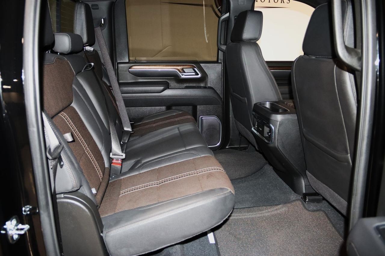 Bluetooth, Back Up Camera, Towing, Heated Seats, Touch Screen, 10-Way Power Driver Seat Adjuster with Lumbar, 10-Way Power Passenger Seat Adjuster with Lumbar, 120-Volt Bed Mounted Power Outlet, 120-Volt Interior Power Outlet, 15 Diagonal Multicolor Head-Up Display, 170 Amp Alternator, 220 Amp Alternator, 3.73 Rear Axle Ratio, 4-Wheel Disc Brakes, 6 Rectangular Chromed Tubular Assist Steps, 7 Speakers, 720 Cold-Cranking Amps Heavy-Duty Battery, ABS brakes, Air Conditioning, Alloy wheels, AM/FM radio: SiriusXM with 360L, Apple CarPlay/Android Auto, Auto High-beam Headlights, Auto-dimming door mirrors, Auto-Dimming Inside Rear-View Mirror, Auto-dimming Rear-View mirror, Automatic temperature control, Bed View Camera with Two Trailer Camera Provisions, Black Chevytec Spray-on Bedliner, Black Name Plates, Black Tailgate Lettering, Bluetooth For Phone, Bodyside moldings, BOSE Premium 7-Speaker Sound System, Brake assist, Bumpers: body-color, Chevrolet Connected Access Capable, Chrome Door Handles, Chrome Mirror Caps, Color-Keyed Carpeting Floor Covering, Compass, Dark Essentials Package, Deep-Tinted Glass, Delay-off headlights, Driver door bin, Driver Memory, Driver vanity mirror, Dual front impact airbags, Dual front side impact airbags, Durabed Pickup Bed, Electric Rear-Window Defogger, Electronic Stability Control, Emergency communication system: OnStar, Engine Block Heater, Exhaust Brake, Floor-Mounted Center Console, Front anti-roll bar, Front Black Bowtie Emblem, Front Bucket Seats, Front Carpeted Floor Mats, Front Center Armrest, Front Chrome Recovery Hooks, Front dual zone A/C, Front fog lights, Front LED Fog Lamps, Front Rain-Sensing Wipers, Front reading lights, Front wheel independent suspension, Fully automatic headlights, Garage door transmitter, Genuine wood console insert, Genuine wood dashboard insert, Genuine wood door panel insert, Heated 2nd Row Outboard Seats, Heated door mirrors, Heated Driver and Front Outboard Passenger Seating, Heated front seats, Heated rear seats, Heated Steering Wheel, Heated steering wheel, Hitch Guidance with Hitch View, Illuminated entry, in-Vehicle Trailering App System, Keyless Open and Start, LED Cargo Area Lighting, LED Smoked Amber Roof Marker Lamps, Low tire pressure warning, Manual Tilt and Telescoping Steering Column, Memory seat, Occupant sensing airbag, OnStar Services Capable, Outside temperature display, Overhead airbag, Overhead console, Panic alarm, Passenger door bin, Passenger vanity mirror, Perforated Leather Seat Trim, Polished Exhaust Tip, Power Door Locks, Power door mirrors, Power driver seat, Power Front Windows with Driver Express Up/Down, Power Front Windows with Passenger Express Up/Down, Power passenger seat, Power Rear Windows with Express Down, Power Sliding Rear Window with Defogger, Power steering, Power Up/Down Tailgate Function with Power Lock and Release, Power windows, Preferred Equipment Group 3LZ, Premium audio system: Chevrolet Infotainment 3 Premium, Push Button Start, Radio: Chevrolet Infotainment 3 Premium System, Rain sensing wipers, Rear Camera Mirror, Rear Carpeted Floor Mats, Rear Cross Traffic Alert, Rear reading lights, Rear seat center armrest, Rear step bumper, Rear Wheelhouse Liners, Rear window defroster, Remote keyless entry, Remote Vehicle Starter System, Security system, SiriusXM with 360L Trial Subscription, Speed control, Speed-sensing steering, Split folding rear seat, Standard Tailgate, Steering Wheel Audio Controls, Steering wheel mounted audio controls, Suspension Package, Tachometer, Technology Package, Telescoping steering wheel, Tilt steering wheel, Traction control, Trailer Camera Provisions, Trip computer, Turn signal indicator mirrors, Ultrasonic Front and Rear Park Assist, Unauthorized Entry Theft-Deterrent System, Universal Home Remote, Up-Level Rear Seat with Storage Package, Variably intermittent wipers, Ventilated Driver and Front Passenger Seats, Ventilated front seats, Voltmeter, Wheels: 20 8-Spoke Polished, W