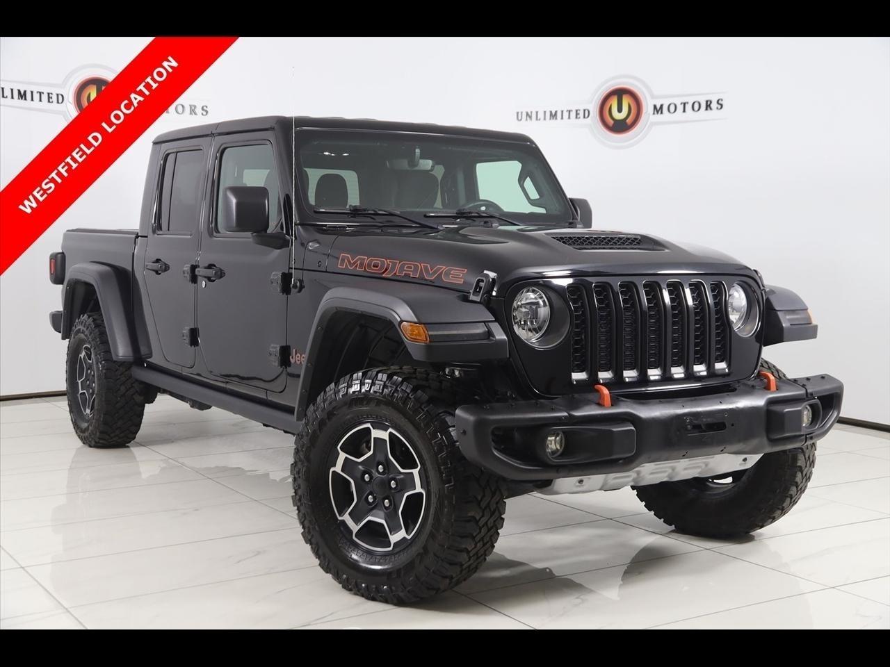2022 Jeep Gladiator Black Clearcoat Now Available at Unlimited Motors Westfield! With over 20 years in business and 4 Indiana locations, Unlimited Motors is known for offering high-quality, hand-selected vehicles at excellent pricing with outstanding customer service. Our inventory of over 1,000 vehicles includes major makes such as Ford, Chevrolet, Ram, Jeep, GMC, Dodge, BMW, Mercedes-Benz, Audi, Cadillac, Porsche, Maserati, Ferrari, and Lamborghini, giving customers one of the largest selections of quality vehicles in the Midwest. Vehicle Highlights:Navigation, Back Up Camera, Bluetooth, Sun/Moon Roof, Winch, Touch Screen, Gladiator Mojave, 4D Crew Cab, 3.6L V6 24V VVT, 8-Speed Automatic, 4WD, Black Clearcoat, Black Cloth, 240 Amp Alternator, 700 Amp Maintenance Free Battery, Auxiliary Switch Group, Auxiliary Switches, Class IV Receiver Hitch, Heavy-Duty Engine Cooling, Navigation System, Quick Order Package 24D, Trailer Hitch Zoom, Trailer Tow Package.CARFAX One-Owner. Clean CARFAX. Priced below KBB Fair Purchase Price!Visit www.iumotors.com to explore our full inventory of over 1,000 hand-picked vehicles across our Westfield, Fishers, Noblesville, and Elwood locations. At Unlimited Motors, we offer a premium car-buying experience with competitive financing through local credit unions and national lenders, top trade-in values, full auto repair and maintenance services for customer vehicles, and nationwide shipping to all 50 states. Youll also find many of the most searched and in-demand models, including Ford F-150, Chevrolet Silverado, Ram 1500, Jeep Wrangler, Jeep Grand Cherokee, Chevrolet Tahoe, Chevrolet Suburban, GMC Yukon, GMC Sierra, Dodge Charger, Dodge Durango, Ford Explorer, BMW X5, BMW X3, BMW 3 Series, Mercedes-Benz GLE, Mercedes-Benz GLC, Cadillac Escalade, Audi Q5, Audi Q7, Porsche Cayenne, Porsche Macan, Maserati Ghibli, and more. Whether youre visiting from Westfield, Indianapolis, Carmel, Fishers, Noblesville, Zionsville, Greenwood, Lawrence, Brownsburg, Avon, Plainfield, Lebanon, Anderson, Muncie, Kokomo, Lafayette, Bloomington, Columbus, or anywhere across Central and Northern Indiana, we are here to help you find the perfect vehicle with exceptional service and unbeatable value. Call us today at 317-896-4488 1470 W Tournament Trl, Westfield, IN 46074. Disclaimer: Advertised prices DO NOT include Sales Tax, Dealer Fees, Title Processing Charges, and Dealer Pre-installed Products.