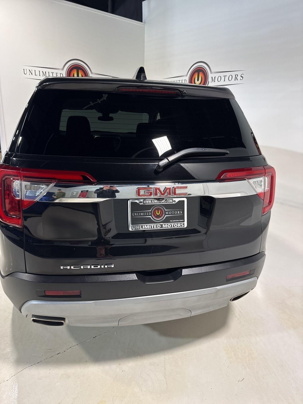 Bluetooth, Back Up Camera, Touch Screen, 3.47 Final Drive Axle Ratio, 3rd row seats: split-bench, 4-Way Manual Driver Seat Adjuster, 4-Way Manual Passenger Seat Adjuster, 4-Wheel Disc Brakes, 6 Speakers, 6-Passenger (2-2-2 Seating Configuration), 6-Speaker Audio System Feature, ABS brakes, Air Conditioning, Alloy wheels, AM/FM radio: SiriusXM, Apple CarPlay/Android Auto, Auto High-beam Headlights, Automatic temperature control, Brake assist, Bumpers: body-color, Compass, Delay-off headlights, Deleted 3 Years of OnStar & Connected Services Plan, Driver door bin, Driver vanity mirror, Dual front impact airbags, Dual front side impact airbags, Electronic Stability Control, Emergency communication system: OnStar and GMC connected services capable, Four wheel independent suspension, Front anti-roll bar, Front Bucket Seats, Front Center Armrest, Front dual zone A/C, Front reading lights, Fully automatic headlights, Heated door mirrors, Illuminated entry, Knee airbag, Low tire pressure warning, Not Equipped w/Front & Rear Park Assist (060), Occupant sensing airbag, Outside temperature display, Overhead airbag, Overhead console, Panic alarm, Passenger door bin, Passenger vanity mirror, Power door mirrors, Power steering, Power windows, Preferred Equipment Group 3SA, Premium Cloth Seat Trim, Radio data system, Radio: AM/FM w/8 Diagonal Multi-Touch Display, Rear air conditioning, Rear anti-roll bar, Rear reading lights, Rear window defroster, Rear window wiper, Remote keyless entry, Security system, SiriusXM Radio, Speed control, Speed-sensing steering, Spoiler, Steering wheel mounted audio controls, Tachometer, Telescoping steering wheel, Tilt steering wheel, Traction control, Trip computer, Turn signal indicator mirrors, Variably intermittent wipers, Voltmeter, Wheels: 18 Machined Aluminum w/Dark Accents, Wireless Apple CarPlay/Wireless Android Auto. Clean CARFAX. 22/29 City/Highway MPG2023 Ebony Twilight Metallic GMC 4D Sport Utility Acadia SLE FWD 9-Speed Automatic 2.0L TurbochargedVisit our website www.iumotors.com to view 100s of newer vehicles, more pictures and info, or to apply for financing. Rates are incredibly low for approved credit. We offer extended warranties, protection packages, and insurance. We assure you the best experience at any of our 4 locations and unbeatable prices and quality. At Unlimited Motors we believe in MARKET VALUE PRICING. We use real-time Internet price comparisons to constantly adjust prices to provide ALL BUYERS The BEST PRICE possible. We do not mark them up, to mark them down! Our entire team is committed to helping you buy a car the way we would want to buy a car! We utilize state-of-the-art technology to constantly monitor pricing trends to offer our shoppers the best competitive pricing, value, and experience. We sell and service all makes and models of Pre-owned / Used Vehicles Used Cars, Used Trucks, Used Sport Utility, Lamborghini, Ferrari, Bentley, Rolls Royce, McLaren, Maserati, Ford, Chevrolet/Chevy, Honda, Toyota, Porsche, Land Rover, Jaguar, INFINITI, Audi, Nissan, Mazda, Hyundai, Chrysler, Jeep, Dodge, Ram, SRT, Mitsubishi, Lexus, Kia, Volkswagen, Mini, BMW, Mercedes, Fiat, Volvo, GMC, Cadillac, Lincoln as well as other brands. Proudly serving these areas of Indianapolis, Fishers, Carmel, Noblesville, Greenwood, Avon, Plainfield, Zionsville, & Brownsburg, Indiana, Midwest. We also serve the entire nation with our seamless and easy online purchasing process, and offer shipping nationwide.Advertised prices DO NOT include Sales Tax, Dealer Fees, Title Processing Charges, and Dealer Pre-installed Products.