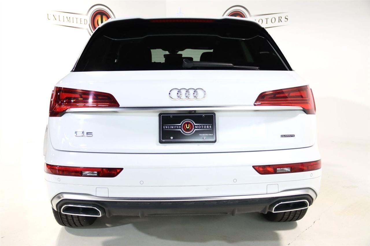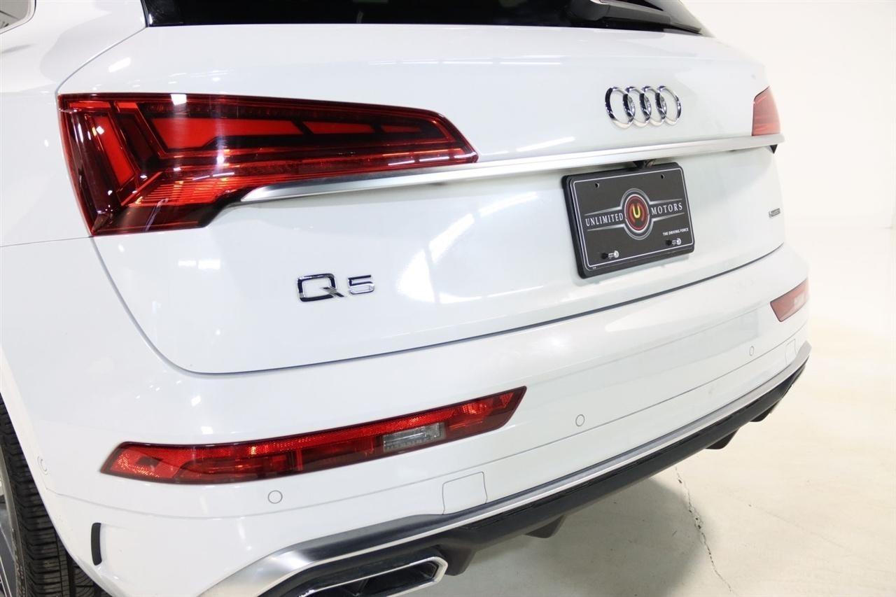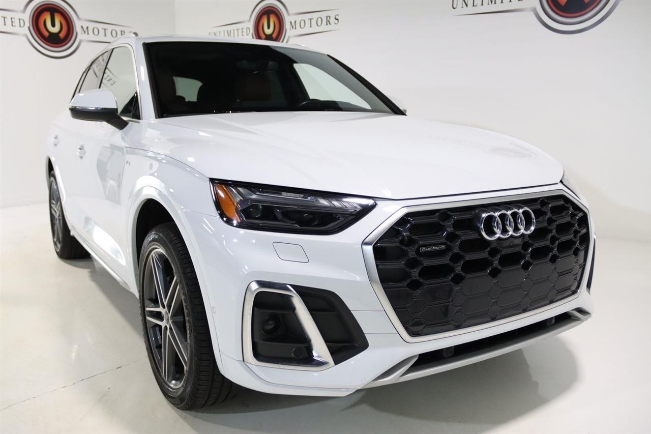 Navigation, Bluetooth, Back Up Camera, Sun/Moon Roof, Touch Screen, 10 Speakers, 4-Wheel Disc Brakes, ABS brakes, Air Conditioning, Alloy wheels, AM/FM radio, Auto High-beam Headlights, Auto-dimming Rear-View mirror, Automatic temperature control, Axle Ratio: 5.30, Brake assist, Bumpers: body-color, Compass, Delay-off headlights, Driver door bin, Driver vanity mirror, Dual front impact airbags, Dual front side impact airbags, Electronic Stability Control, Emergency communication system: Audi connect CARE, Exterior Parking Camera Rear, Four wheel independent suspension, Front anti-roll bar, Front Bucket Seats, Front Center Armrest, Front dual zone A/C, Front fog lights, Front reading lights, Garage door transmitter: HomeLink, Genuine wood console insert, Genuine wood dashboard insert, Genuine wood door panel insert, Heated 8-Way Power Front Seats, Heated door mirrors, Heated front seats, Illuminated entry, Leather Seating Surfaces, Leather Shift Knob, Low tire pressure warning, Navigation System, Occupant sensing airbag, Outside temperature display, Overhead airbag, Overhead console, Panic alarm, Passenger door bin, Passenger vanity mirror, Power door mirrors, Power driver seat, Power Liftgate, Power passenger seat, Power steering, Power windows, Radio data system, Radio: Audi Sound System, Rain sensing wipers, Rear air conditioning, Rear anti-roll bar, Rear fog lights, Rear reading lights, Rear seat center armrest, Rear window defroster, Rear window wiper, Remote keyless entry, Roof rack, Security system, Speed control, Speed-sensing steering, Speed-Sensitive Wipers, Split folding rear seat, Spoiler, Sport steering wheel, Steering wheel mounted audio controls, Tachometer, Telescoping steering wheel, Tilt steering wheel, Traction control, Trip computer, Turn signal indicator mirrors, Variably intermittent wipers, Wheels: 20 5-Double-Spoke-Star Design Bi-Color. Clean CARFAX.2021 Glacier White Metallic Audi 4D Sport Utility Q5 e 55 Prestige quattro quattro 7-Speed Automatic S tronic 2.0L TurbochargedVisit our website www.iumotors.com to view 100s of newer vehicles, more pictures and info, or to apply for financing. Rates are incredibly low for approved credit. We offer extended warranties, protection packages, and insurance. We assure you the best experience at any of our 4 locations and unbeatable prices and quality. At Unlimited Motors we believe in MARKET VALUE PRICING. We use real-time Internet price comparisons to constantly adjust prices to provide ALL BUYERS The BEST PRICE possible. We do not mark them up, to mark them down! Our entire team is committed to helping you buy a car the way we would want to buy a car! We utilize state-of-the-art technology to constantly monitor pricing trends to offer our shoppers the best competitive pricing, value, and experience. We sell and service all makes and models of Pre-owned / Used Vehicles Used Cars, Used Trucks, Used Sport Utility, Lamborghini, Ferrari, Bentley, Rolls Royce, McLaren, Maserati, Ford, Chevrolet/Chevy, Honda, Toyota, Porsche, Land Rover, Jaguar, INFINITI, Audi, Nissan, Mazda, Hyundai, Chrysler, Jeep, Dodge, Ram, SRT, Mitsubishi, Lexus, Kia, Volkswagen, Mini, BMW, Mercedes, Fiat, Volvo, GMC, Cadillac, Lincoln as well as other brands. Proudly serving these areas of Indianapolis, Fishers, Carmel, Noblesville, Greenwood, Avon, Plainfield, Zionsville, & Brownsburg, Indiana, Midwest. We also serve the entire nation with our seamless and easy online purchasing process, and offer shipping nationwide.Advertised prices DO NOT include Sales Tax, Dealer Fees, Title Processing Charges, and Dealer Pre-installed Products.