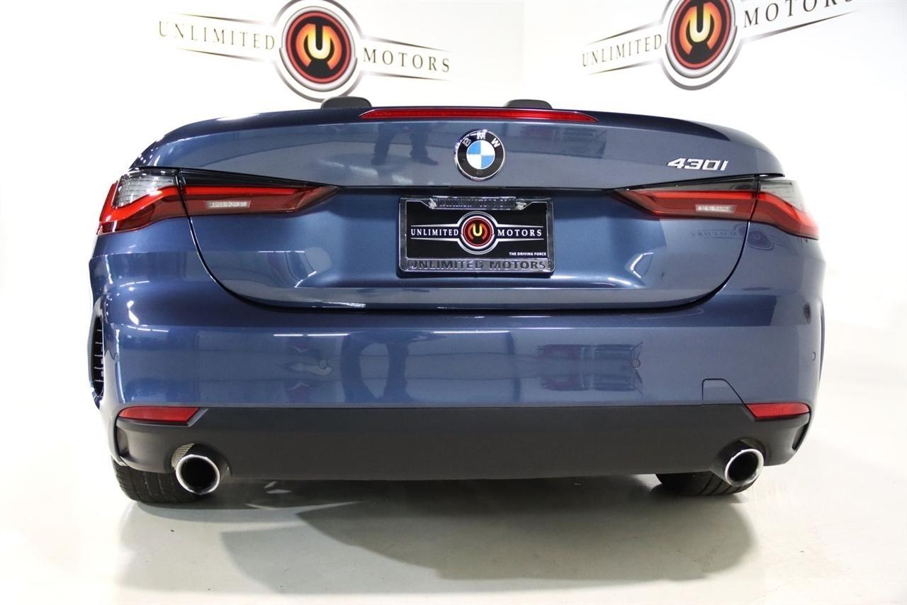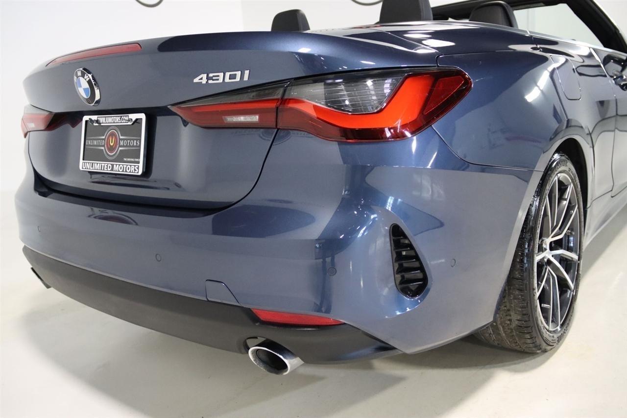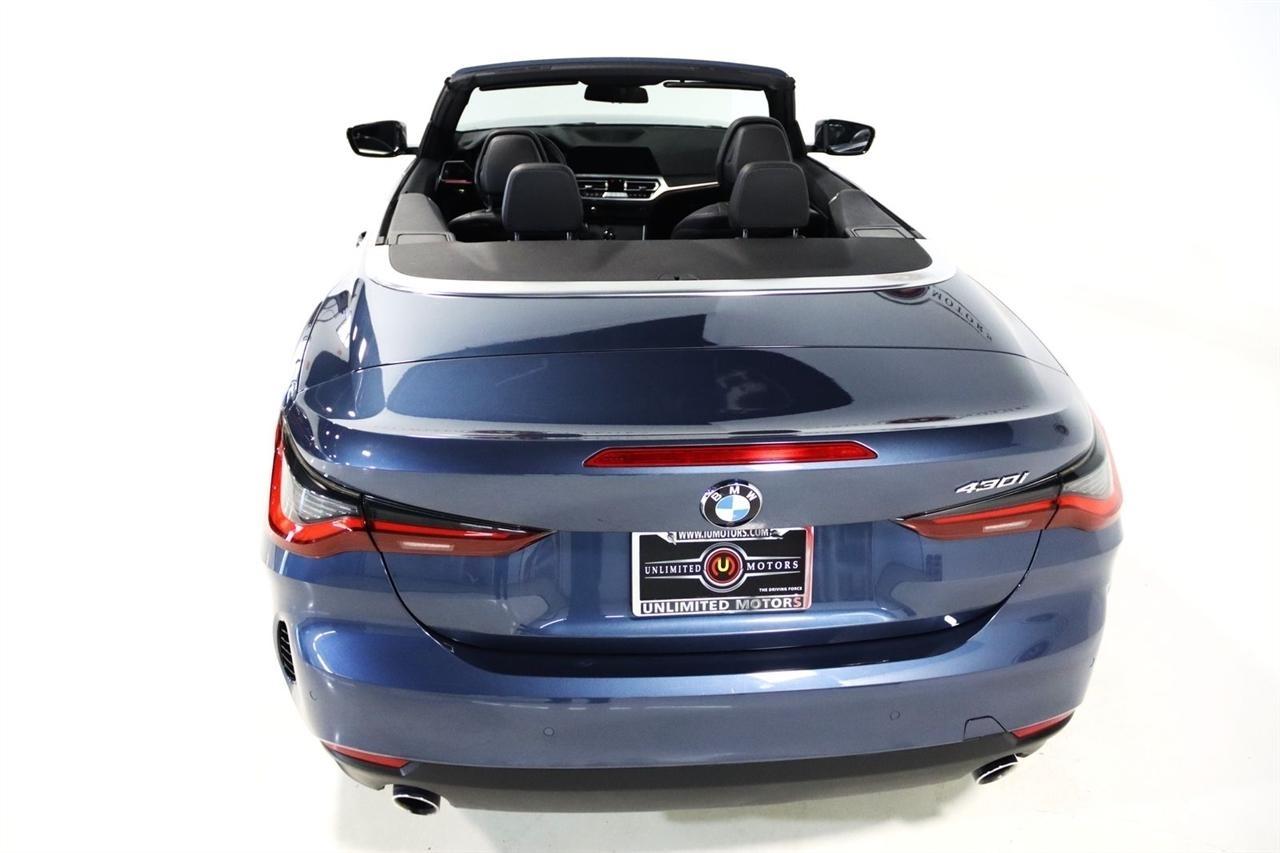 Navigation, Bluetooth, Back Up Camera, Soft Top, Heated Seats, Touch Screen, 10 Speakers, 4-Wheel Disc Brakes, ABS brakes, Active Park Distance Control, Air Conditioning, Alloy wheels, AM/FM Radio, AM/FM radio: SiriusXM with 360L, Ambient Lighting, Apple CarPlay & Android Auto Compatibility, Apple CarPlay Compatibility, Auto High-beam Headlights, Auto-dimming door mirrors, Auto-dimming Rear-View mirror, Automatic temperature control, BMW Assist eCall, BMW TeleServices, Brake assist, Bumpers: body-color, Comfort Access Keyless Entry, Compass, Connected Package Pro, ConnectedDrive Services, Convertible roof lining, Convertible roof wind blocker, Delay-off headlights, Driver door bin, Driver vanity mirror, Dual front impact airbags, Dual front side impact airbags, Electronic Stability Control, Emergency communication system: BMW Assist eCall, Exterior Parking Camera Rear, Four wheel independent suspension, Front anti-roll bar, Front Bucket Seats, Front Center Armrest, Front dual zone A/C, Front reading lights, Front Ventilated Seats (DISC), Fully automatic headlights, Garage door transmitter, Genuine wood console insert, Genuine wood dashboard insert, Glass rear window, Head-Up Display, Heated door mirrors, Heated Front Seats, Heated Steering Wheel, Hi-Fi Sound System, Illuminated entry, Integrated roll-over protection, Knee airbag, Live Cockpit Pro w/Navi, Low tire pressure warning, Lumbar Support, Memory seat, Navigation, Navigation System, Neck Warmer, Occupant sensing airbag, Outside temperature display, Overhead console, Panic alarm, Parking Assistance Package, Parking Assistant Plus, Passenger door bin, Passenger vanity mirror, Power convertible roof, Power door mirrors, Power driver seat, Power Front Seats, Power passenger seat, Power steering, Power windows, Premium Package, Radio data system, Rain sensing wipers, Rear air conditioning, Rear anti-roll bar, Rear reading lights, Rear seat center armrest, Rear window defroster, Rear-View Camera, Remote keyless entry, Security system, SensaTec Upholstery, SiriusXM w/360L, Speed control, Speed-sensing steering, Speed-Sensitive Wipers, Sport Seats, Sport steering wheel, Steering wheel mounted audio controls, Surround View w/3D View, Tachometer, Telescoping steering wheel, Tilt steering wheel, Traction control, Trip computer, Turn signal indicator mirrors, Variably intermittent wipers, Wheels: 18 x 7.5 V-Spoke Bi-Color Orbit Grey. Clean CARFAX. 24/33 City/Highway MPG Odometer is 4754 miles below market average! Priced below KBB Fair Purchase Price!2021 Arctic Race Blue Metallic BMW 2D Convertible 4 Series 430i RWD 8-Speed Automatic Sport 2.0L 4-Cylinder TwinPower TurboAwards: * JD Power Automotive Performance, Execution and Layout (APEAL) StudyVisit our website www.iumotors.com to view 100s of newer vehicles, more pictures and info, or to apply for financing. Rates are incredibly low for approved credit. We offer extended warranties, protection packages, and insurance. We assure you the best experience at any of our 4 locations and unbeatable prices and quality. At Unlimited Motors we believe in MARKET VALUE PRICING. We use real-time Internet price comparisons to constantly adjust prices to provide ALL BUYERS The BEST PRICE possible. We do not mark them up, to mark them down! Our entire team is committed to helping you buy a car the way we would want to buy a car! We utilize state-of-the-art technology to constantly monitor pricing trends to offer our shoppers the best competitive pricing, value, and experience. We sell and service all makes and models of Pre-owned / Used Vehicles Used Cars, Used Trucks, Used Sport Utility, Lamborghini, Ferrari, Bentley, Rolls Royce, McLaren, Maserati, Ford, Chevrolet/Chevy, Honda, Toyota, Porsche, Land Rover, Jaguar, INFINITI, Audi, Nissan, Mazda, Hyundai, Chrysler, Jeep, Dodge, Ram, SRT, Mitsubishi, Lexus, Kia, Volkswagen, Mini, BMW, Mercedes, Fiat, Volvo, GMC, Cadillac, Lincoln as well as other brands. Pr