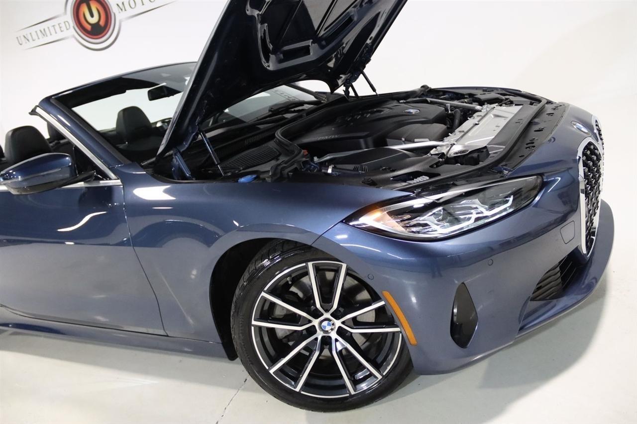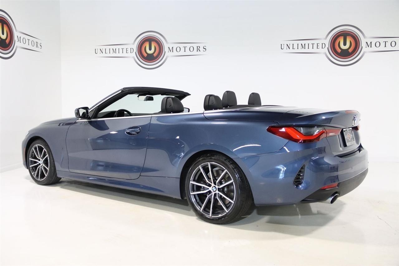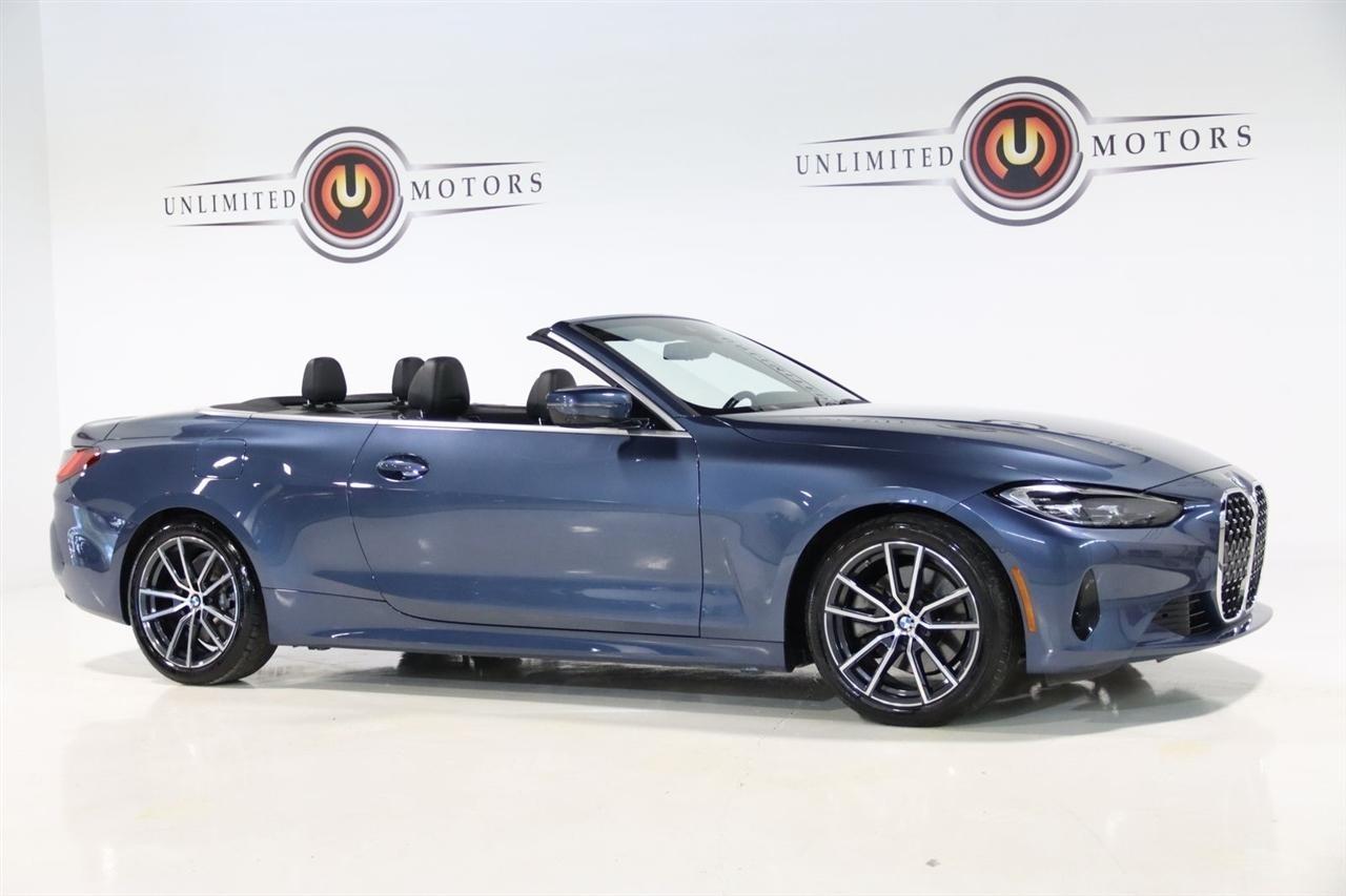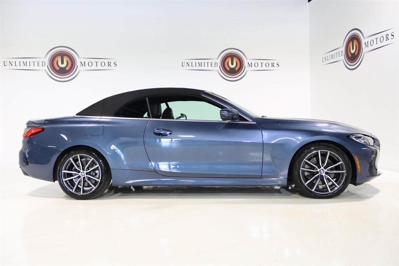 Navigation, Bluetooth, Back Up Camera, Soft Top, Heated Seats, Touch Screen, 10 Speakers, 4-Wheel Disc Brakes, ABS brakes, Active Park Distance Control, Air Conditioning, Alloy wheels, AM/FM Radio, AM/FM radio: SiriusXM with 360L, Ambient Lighting, Apple CarPlay & Android Auto Compatibility, Apple CarPlay Compatibility, Auto High-beam Headlights, Auto-dimming door mirrors, Auto-dimming Rear-View mirror, Automatic temperature control, BMW Assist eCall, BMW TeleServices, Brake assist, Bumpers: body-color, Comfort Access Keyless Entry, Compass, Connected Package Pro, ConnectedDrive Services, Convertible roof lining, Convertible roof wind blocker, Delay-off headlights, Driver door bin, Driver vanity mirror, Dual front impact airbags, Dual front side impact airbags, Electronic Stability Control, Emergency communication system: BMW Assist eCall, Exterior Parking Camera Rear, Four wheel independent suspension, Front anti-roll bar, Front Bucket Seats, Front Center Armrest, Front dual zone A/C, Front reading lights, Front Ventilated Seats (DISC), Fully automatic headlights, Garage door transmitter, Genuine wood console insert, Genuine wood dashboard insert, Glass rear window, Head-Up Display, Heated door mirrors, Heated Front Seats, Heated Steering Wheel, Hi-Fi Sound System, Illuminated entry, Integrated roll-over protection, Knee airbag, Live Cockpit Pro w/Navi, Low tire pressure warning, Lumbar Support, Memory seat, Navigation, Navigation System, Neck Warmer, Occupant sensing airbag, Outside temperature display, Overhead console, Panic alarm, Parking Assistance Package, Parking Assistant Plus, Passenger door bin, Passenger vanity mirror, Power convertible roof, Power door mirrors, Power driver seat, Power Front Seats, Power passenger seat, Power steering, Power windows, Premium Package, Radio data system, Rain sensing wipers, Rear air conditioning, Rear anti-roll bar, Rear reading lights, Rear seat center armrest, Rear window defroster, Rear-View Camera, Remote keyless entry, Security system, SensaTec Upholstery, SiriusXM w/360L, Speed control, Speed-sensing steering, Speed-Sensitive Wipers, Sport Seats, Sport steering wheel, Steering wheel mounted audio controls, Surround View w/3D View, Tachometer, Telescoping steering wheel, Tilt steering wheel, Traction control, Trip computer, Turn signal indicator mirrors, Variably intermittent wipers, Wheels: 18 x 7.5 V-Spoke Bi-Color Orbit Grey. Clean CARFAX. 24/33 City/Highway MPG Odometer is 4754 miles below market average! Priced below KBB Fair Purchase Price!2021 Arctic Race Blue Metallic BMW 2D Convertible 4 Series 430i RWD 8-Speed Automatic Sport 2.0L 4-Cylinder TwinPower TurboAwards: * JD Power Automotive Performance, Execution and Layout (APEAL) StudyVisit our website www.iumotors.com to view 100s of newer vehicles, more pictures and info, or to apply for financing. Rates are incredibly low for approved credit. We offer extended warranties, protection packages, and insurance. We assure you the best experience at any of our 4 locations and unbeatable prices and quality. At Unlimited Motors we believe in MARKET VALUE PRICING. We use real-time Internet price comparisons to constantly adjust prices to provide ALL BUYERS The BEST PRICE possible. We do not mark them up, to mark them down! Our entire team is committed to helping you buy a car the way we would want to buy a car! We utilize state-of-the-art technology to constantly monitor pricing trends to offer our shoppers the best competitive pricing, value, and experience. We sell and service all makes and models of Pre-owned / Used Vehicles Used Cars, Used Trucks, Used Sport Utility, Lamborghini, Ferrari, Bentley, Rolls Royce, McLaren, Maserati, Ford, Chevrolet/Chevy, Honda, Toyota, Porsche, Land Rover, Jaguar, INFINITI, Audi, Nissan, Mazda, Hyundai, Chrysler, Jeep, Dodge, Ram, SRT, Mitsubishi, Lexus, Kia, Volkswagen, Mini, BMW, Mercedes, Fiat, Volvo, GMC, Cadillac, Lincoln as well as other brands. Pr