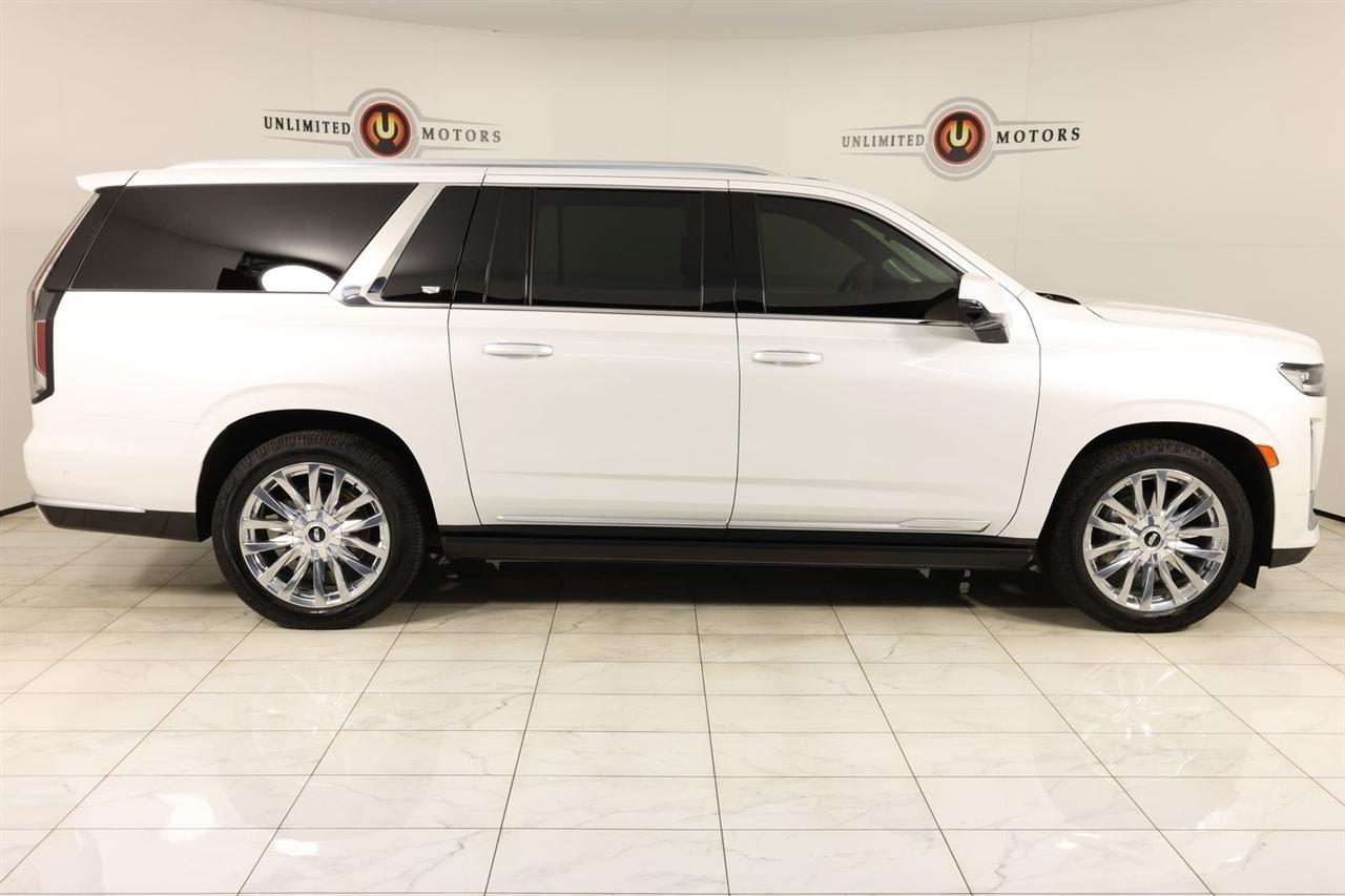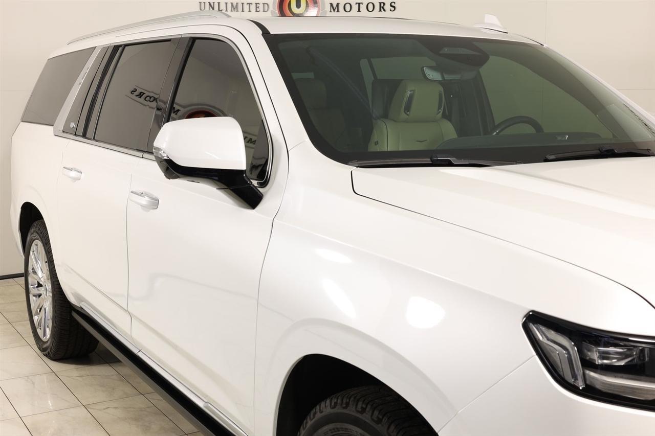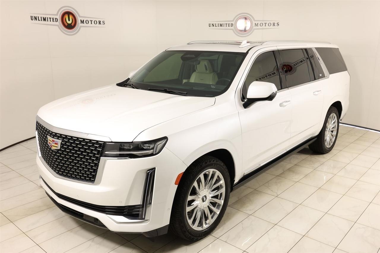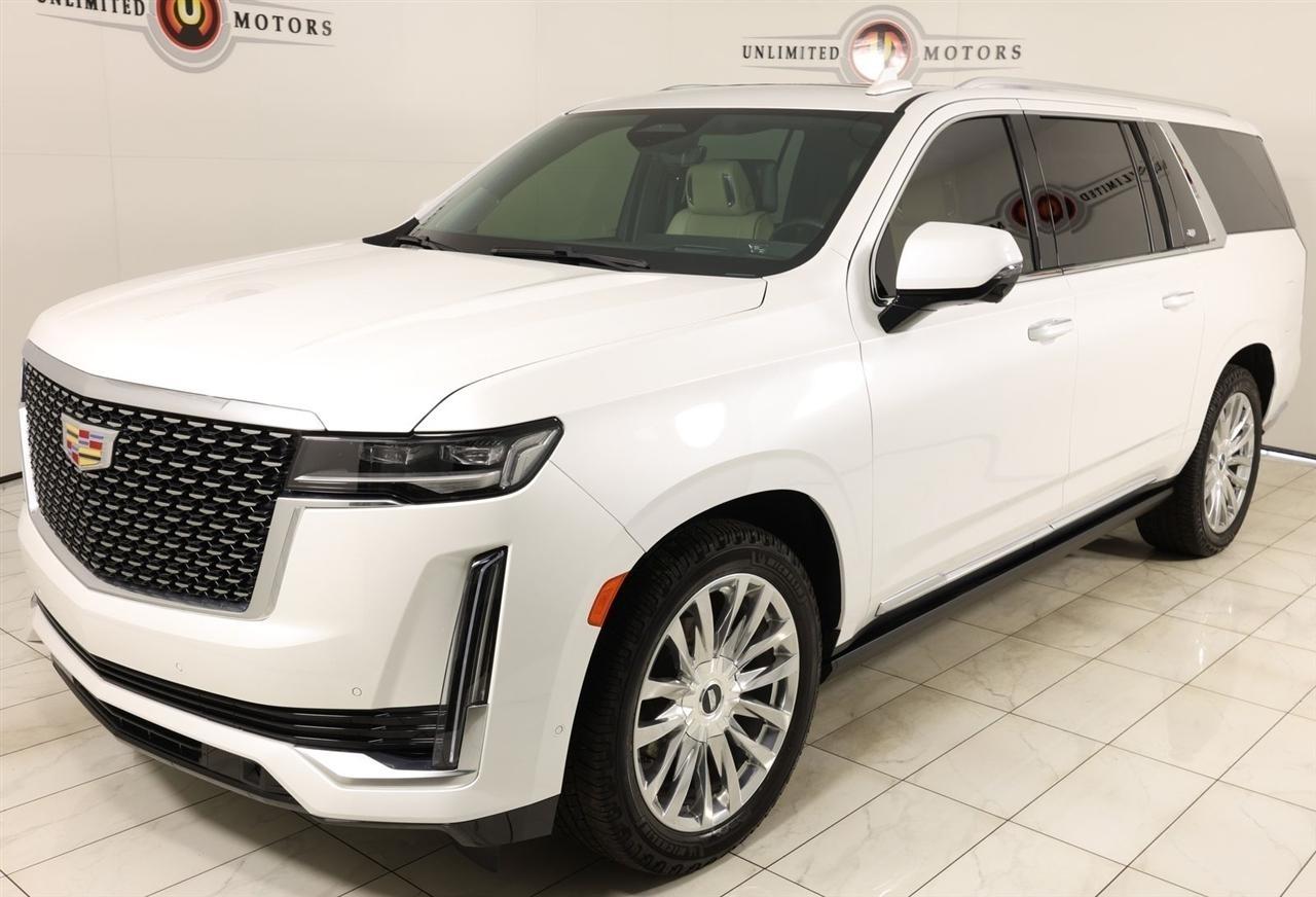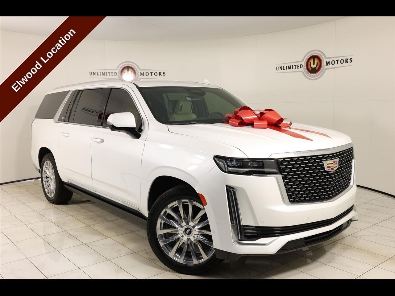 2022 Cadillac Escalade ESV Crystal White Tricoat Now Available at Unlimited Motors Elwood! With over 20 years in business and 4 Indiana locations, Unlimited Motors is known for offering high-quality, hand-selected vehicles at excellent pricing with outstanding customer service. Our inventory of over 1,000 vehicles includes major makes such as Ford, Chevrolet, Ram, Jeep, GMC, Dodge, BMW, Mercedes-Benz, Audi, Cadillac, Porsche, Maserati, Ferrari, and Lamborghini, giving customers one of the largest selections of quality vehicles in the Midwest. Vehicle Highlights:Navigation, Back Up Camera, Sunroof, Panoramic Sunroof, Bluetooth, Towing, Touch Screen, Heated Seats, Heated Steering Wheel, Ventilated Seats, Power Lift Gate, Apple Car Play, Blind Spot, Clean Carfax, Low Miles, 4WD.Recent Arrival!Visit www.iumotors.com to explore our full inventory of over 1,000 hand-picked vehicles across our Westfield, Fishers, Noblesville, and Elwood locations. At Unlimited Motors, we offer a premium car-buying experience with competitive financing through local credit unions and national lenders, top trade-in values, full auto repair and maintenance services for customer vehicles, and nationwide shipping to all 50 states. Youll also find many of the most searched and in-demand models, including Ford F-150, Chevrolet Silverado, Ram 1500, Jeep Wrangler, Jeep Grand Cherokee, Chevrolet Tahoe, Chevrolet Suburban, GMC Yukon, GMC Sierra, Dodge Charger, Dodge Durango, Ford Explorer, BMW X5, BMW X3, BMW 3 Series, Mercedes-Benz GLE, Mercedes-Benz GLC, Cadillac Escalade, Audi Q5, Audi Q7, Porsche Cayenne, Porsche Macan, Maserati Ghibli, and more. Whether youre visiting from Westfield, Indianapolis, Carmel, Fishers, Noblesville, Zionsville, Greenwood, Lawrence, Brownsburg, Avon, Plainfield, Lebanon, Anderson, Muncie, Kokomo, Lafayette, Bloomington, Columbus, or anywhere across Central and Northern Indiana, we are here to help you find the perfect vehicle with exceptional service and unbeatable value. Call us today at 765-557-8817 10083 IN-13, Elwood, IN 46036. Disclaimer: Advertised prices DO NOT include Sales Tax, Dealer Fees, Title Processing Charges, and Dealer Pre-installed Products.