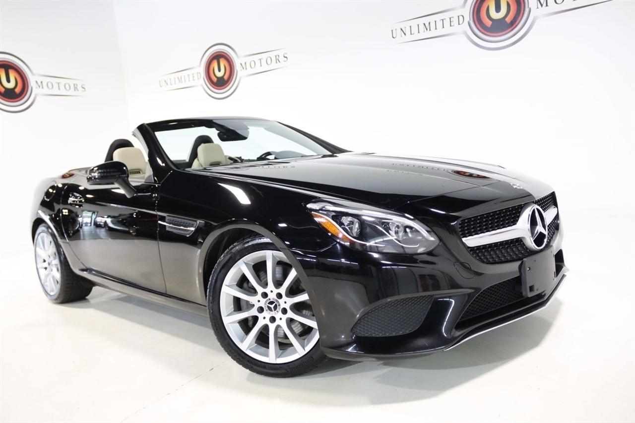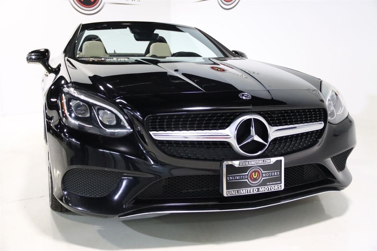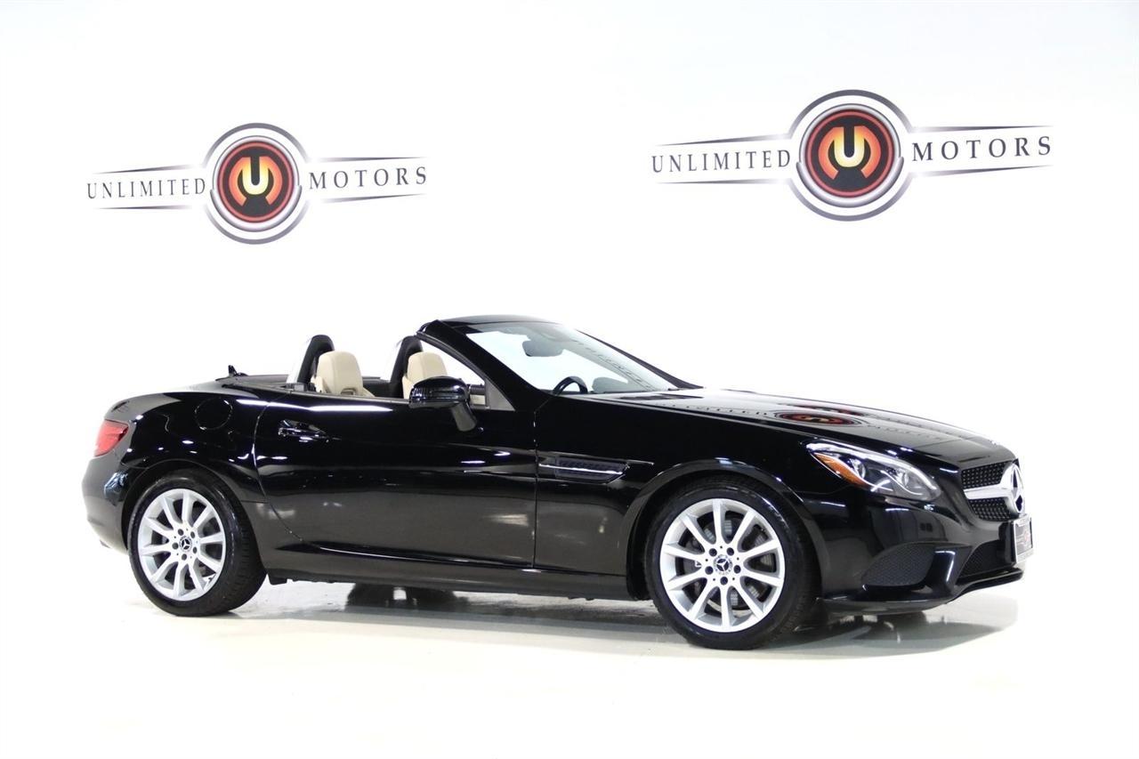 Navigation, Bluetooth, Back Up Camera, Hard Top, Heated Seats, Touch Screen, 4-Way Lumbar Support, 4-Wheel Disc Brakes, 8 Speakers, 8-way Power Seats w/Memory, ABS brakes, Active LED Headlights, Adaptive Highbeam Assist, Air Conditioning, AIRSCARF - Ventilated Headrest, Alloy wheels, AM/FM radio, Analog Clock on Dashboard, Android Auto, Anti-whiplash front head restraints, Apple CarPlay, Auto tilt-away steering wheel, Auto-dimming door mirrors, Auto-dimming Rear-View mirror, Blind Spot Assist, Brake assist, Bumpers: body-color, CD player, Child-Seat-Sensing Airbag, Compass, Convertible HardTop, Convertible roof lining, Convertible roof wind blocker, Delay-off headlights, Direct Ambient Lighting in SOLAR Red, Driver door bin, Driver vanity mirror, Dual front impact airbags, Dual front side impact airbags, Dual-Zone Automatic Climate Control, DVD Coding, Dynamic Destination Finding System, Electronic Stability Control, Emergency communication system: mbrace Secure, Exterior Parking Camera Rear, Four wheel independent suspension, Front anti-roll bar, Front Bucket Seats, Front Center Armrest, Front reading lights, Fully automatic headlights, Garage door transmitter: Homelink, Glass rear window, harman/kardon Logic 7 Surround Sound System, Heated door mirrors, Heated Front Seats, Illuminated entry, Integrated roll-over protection, KEYLESS GO, Knee airbag, Leather Shift Knob, Leather steering wheel, Low tire pressure warning, MB-Tex Upholstery, Memory seat, Navigation Map Updates Included For 3 Years, Navigation System, Occupant sensing airbag, Outside temperature display, Overhead airbag, Overhead console, Panic alarm, Passenger door bin, Passenger vanity mirror, Power convertible roof, Power door mirrors, Power driver seat, Power passenger seat, Power steering, Power windows, Premium 2 Package, Radio data system, Radio: Audio System w/AM/FM Tuner/In-Dash CD, Radio: COMAND System w/Navigation, Rain sensing wipers, Rear anti-roll bar, Rear fog lights, Rear window defroster, Remote keyless entry, Security system, SiriusXM Satellite Radio, Smartphone Integration, Speed control, Speed-sensing steering, Sport steering wheel, Steering wheel memory, Steering wheel mounted audio controls, Tachometer, Telescoping steering wheel, Tilt steering wheel, Traction control, Trip computer, Turn signal indicator mirrors, Variably intermittent wipers, Weather band radio, Wheels: 17 10-Spoke. Clean CARFAX. 25/32 City/Highway MPG2017 Black Mercedes-Benz 2D Convertible SLC SLC 300 RWD 9-Speed Automatic 2.0L TurbochargedVisit our website www.iumotors.com to view 100s of newer vehicles, more pictures and info, or to apply for financing. Rates are incredibly low for approved credit. We offer extended warranties, protection packages, and insurance. We assure you the best experience at any of our 4 locations and unbeatable prices and quality. At Unlimited Motors we believe in MARKET VALUE PRICING. We use real-time Internet price comparisons to constantly adjust prices to provide ALL BUYERS The BEST PRICE possible. We do not mark them up, to mark them down! Our entire team is committed to helping you buy a car the way we would want to buy a car! We utilize state-of-the-art technology to constantly monitor pricing trends to offer our shoppers the best competitive pricing, value, and experience. We sell and service all makes and models of Pre-owned / Used Vehicles Used Cars, Used Trucks, Used Sport Utility, Lamborghini, Ferrari, Bentley, Rolls Royce, McLaren, Maserati, Ford, Chevrolet/Chevy, Honda, Toyota, Porsche, Land Rover, Jaguar, INFINITI, Audi, Nissan, Mazda, Hyundai, Chrysler, Jeep, Dodge, Ram, SRT, Mitsubishi, Lexus, Kia, Volkswagen, Mini, BMW, Mercedes, Fiat, Volvo, GMC, Cadillac, Lincoln as well as other brands. Proudly serving these areas of Indianapolis, Fishers, Carmel, Noblesville, Greenwood, Avon, Plainfield, Zionsville, & Brownsburg, Indiana, Midwest. We also serve the entire nation with our seamless and