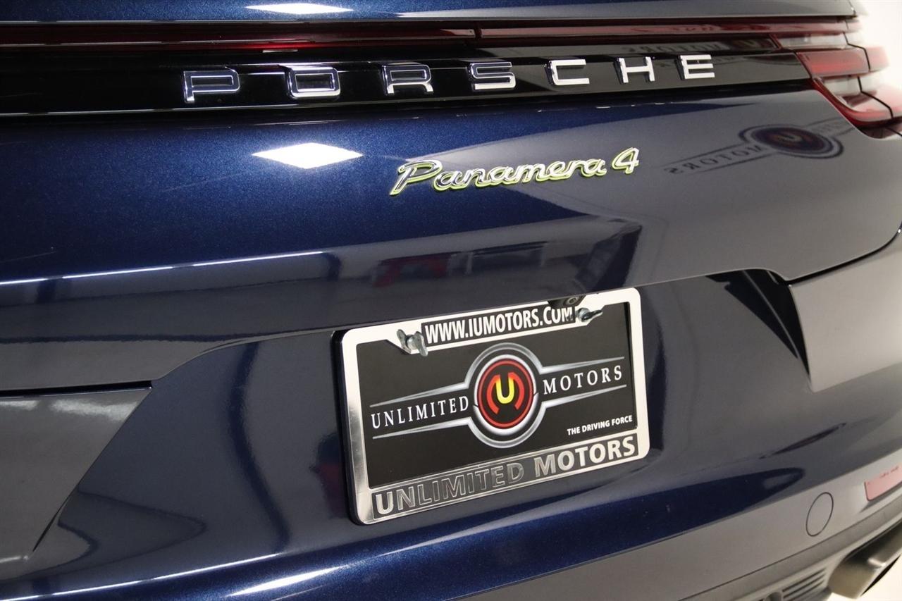 Navigation, Bluetooth, Back Up Camera, Panoramic Roof, Heated Seats, Touch Screen, 10 Speakers, 14-Way Power Seats, 4-Wheel Disc Brakes, 8-Way Power Seats, ABS brakes, Adaptive suspension, Air Conditioning, Alloy wheels, AM/FM radio: SiriusXM, Apple CarPlay, Assistance Package, Auto-dimming door mirrors, Auto-dimming Rear-View mirror, Auto-leveling suspension, Automatic temperature control, BOSE Surround Sound-System, Brake assist, Bumpers: body-color, CD player, Comfort Access, Compass, Delay-off headlights, Driver door bin, Driver vanity mirror, Dual front impact airbags, Dual front side impact airbags, DVD-Audio, Electronic Stability Control, Exterior Parking Camera Rear, Four wheel independent suspension, Front & Rear Seat Heating, Front anti-roll bar, Front Bucket Seats, Front Center Armrest, Front dual zone A/C, Front reading lights, Front Seat Ventilation, Fully automatic headlights, Garage door transmitter: HomeLink, Heated door mirrors, Heated front seats, Illuminated entry, Knee airbag, Lane Change Assist (LCA), Lane Keep Assist w/Speed Limit Indicator, Leather Shift Knob, Leather steering wheel, LED Headlights w/Porsche Dynamic Light System, Low tire pressure warning, Memory seat, Navigation System, Night Vision Assist, Occupant sensing airbag, Outside temperature display, Overhead airbag, Overhead console, Panic alarm, Partial Leather Seat Trim, Passenger door bin, Passenger vanity mirror, Porsche Communication Management, Porsche InnoDrive w/Adaptive Cruise Control, Power door mirrors, Power driver seat, Power Liftgate, Power moonroof, Power passenger seat, Power steering, Power windows, Premium Package Plus, Radio data system, Rain sensing wipers, Rear anti-roll bar, Rear fog lights, Rear reading lights, Rear seat center armrest, Rear side impact airbag, Rear window defroster, Remote keyless entry, Security system, Soft Close Doors, Speed control, Split folding rear seat, Spoiler, Steering wheel mounted audio controls, Tachometer, Telescoping steering wheel, Tilt steering wheel, Traction control, Trip computer, Variably intermittent wipers, Wheels: 20 Panamera Turbo. Clean CARFAX. Odometer is 5796 miles below market average!2018 Night Blue Metallic Porsche 4D Hatchback Panamera E-Hybrid 4 AWD 8-Speed Porsche Doppelkupplung (PDK) V6Awards: * 2018 KBB.com Best Resale Value Awards * 2018 KBB.com 5-Year Cost to Own Awards * 2018 KBB.com 10 Most Awarded Brands * 2018 KBB.com Brand Image AwardsVisit our website www.iumotors.com to view 100s of newer vehicles, more pictures and info, or to apply for financing. Rates are incredibly low for approved credit. We offer extended warranties, protection packages, and insurance. We assure you the best experience at any of our 4 locations and unbeatable prices and quality. At Unlimited Motors we believe in MARKET VALUE PRICING. We use real-time Internet price comparisons to constantly adjust prices to provide ALL BUYERS The BEST PRICE possible. We do not mark them up, to mark them down! Our entire team is committed to helping you buy a car the way we would want to buy a car! We utilize state-of-the-art technology to constantly monitor pricing trends to offer our shoppers the best competitive pricing, value, and experience. We sell and service all makes and models of Pre-owned / Used Vehicles Used Cars, Used Trucks, Used Sport Utility, Lamborghini, Ferrari, Bentley, Rolls Royce, McLaren, Maserati, Ford, Chevrolet/Chevy, Honda, Toyota, Porsche, Land Rover, Jaguar, INFINITI, Audi, Nissan, Mazda, Hyundai, Chrysler, Jeep, Dodge, Ram, SRT, Mitsubishi, Lexus, Kia, Volkswagen, Mini, BMW, Mercedes, Fiat, Volvo, GMC, Cadillac, Lincoln as well as other brands. Proudly serving these areas of Indianapolis, Fishers, Carmel, Noblesville, Greenwood, Avon, Plainfield, Zionsville, & Brownsburg, Indiana, Midwest. We also serve the entire nation with our seamless and easy online purchasing process, and offer shipping nationwide.Advertised prices DO