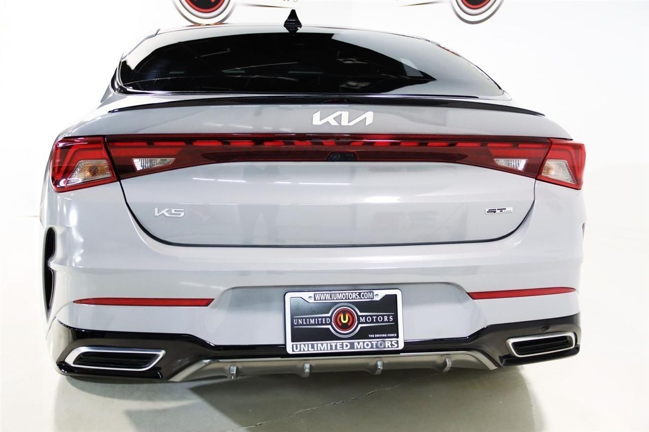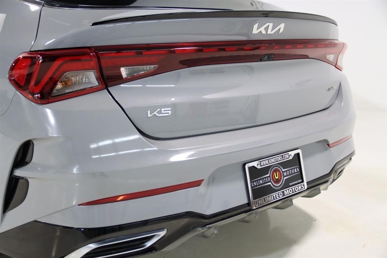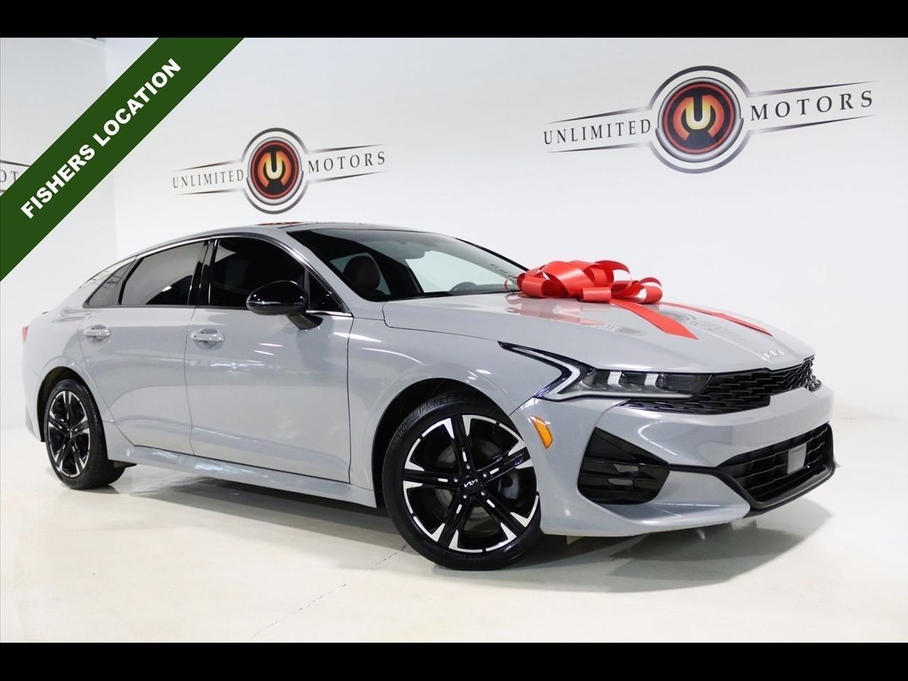 Navigation, Bluetooth, Back Up Camera, Panoramic Roof, Touch Screen, 4-Wheel Disc Brakes, 6 Speakers, ABS brakes, Air Conditioning, Alloy wheels, AM/FM radio: SiriusXM, Apple CarPlay & Android Auto, Auto High-beam Headlights, Automatic temperature control, Brake assist, Bumpers: body-color, Carpeted Floor Mats, Cloth/SynTex Seat Trim, Delay-off headlights, Driver door bin, Driver vanity mirror, Dual front impact airbags, Dual front side impact airbags, EC Mirror w/Homelink, Electronic Stability Control, Forward Collision Avoidance-Assist, Four wheel independent suspension, Front anti-roll bar, Front Bucket Seats, Front Center Armrest, Front dual zone A/C, Front fog lights, Front reading lights, Fully automatic headlights, Gloss Black Trim, GT-Line Panoramic Sunroof Package, GT-Line Premium Package, GT-Line Red Interior Package, Heated door mirrors, Highway Driving Assist, Illuminated entry, Knee airbag, LED Interior Lighting, LED Projection Headlamps, Low tire pressure warning, Navigation System, Occupant sensing airbag, Outside temperature display, Overhead airbag, Overhead console, Panic alarm, Panoramic Sunroof, Passenger door bin, Passenger vanity mirror, Power door mirrors, Power driver seat, Power steering, Power windows, Radio data system, Radio: AM/FM/MP3 Audio System, Rear anti-roll bar, Rear Bumper Applique, Rear seat center armrest, Rear side impact airbag, Rear window defroster, Remote keyless entry, Security system, Smart Cruise Control w/Stop & Go, Speed control, Speed-sensing steering, Split folding rear seat, Spoiler, Sport steering wheel, Steering wheel mounted audio controls, Tachometer, Telescoping steering wheel, Tilt steering wheel, Traction control, Trip computer, Turn signal indicator mirrors, Variably intermittent wipers, Wheels: 18 Gloss Black Machined Finish Alloy. 27/37 City/Highway MPG Odometer is 7086 miles below market average!2023 Wolf Gray Kia 4D Sedan K5 GT-Line FWD 8-Speed Automatic 1.6L I4 DGI Turbocharged DOHC 16V LEV3-ULEV70 180hpVisit our website www.iumotors.com to view 100s of newer vehicles, more pictures and info, or to apply for financing. Rates are incredibly low for approved credit. We offer extended warranties, protection packages, and insurance. We assure you the best experience at any of our 4 locations and unbeatable prices and quality. At Unlimited Motors we believe in MARKET VALUE PRICING. We use real-time Internet price comparisons to constantly adjust prices to provide ALL BUYERS The BEST PRICE possible. We do not mark them up, to mark them down! Our entire team is committed to helping you buy a car the way we would want to buy a car! We utilize state-of-the-art technology to constantly monitor pricing trends to offer our shoppers the best competitive pricing, value, and experience. We sell and service all makes and models of Pre-owned / Used Vehicles Used Cars, Used Trucks, Used Sport Utility, Lamborghini, Ferrari, Bentley, Rolls Royce, McLaren, Maserati, Ford, Chevrolet/Chevy, Honda, Toyota, Porsche, Land Rover, Jaguar, INFINITI, Audi, Nissan, Mazda, Hyundai, Chrysler, Jeep, Dodge, Ram, SRT, Mitsubishi, Lexus, Kia, Volkswagen, Mini, BMW, Mercedes, Fiat, Volvo, GMC, Cadillac, Lincoln as well as other brands. Proudly serving these areas of Indianapolis, Fishers, Carmel, Noblesville, Greenwood, Avon, Plainfield, Zionsville, & Brownsburg, Indiana, Midwest. We also serve the entire nation with our seamless and easy online purchasing process, and offer shipping nationwide.Advertised prices DO NOT include Sales Tax, Dealer Fees, Title Processing Charges, and Dealer Pre-installed Products.