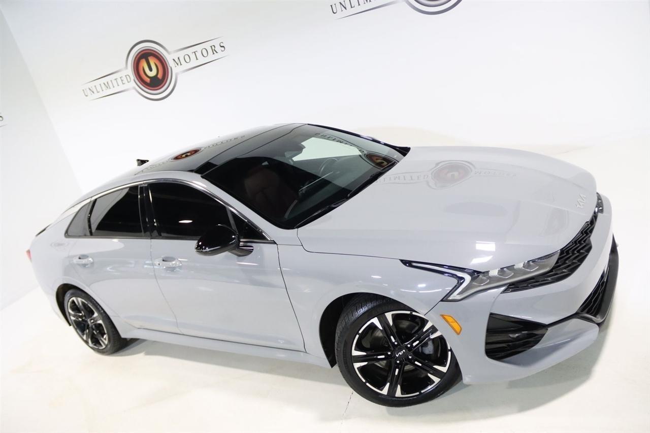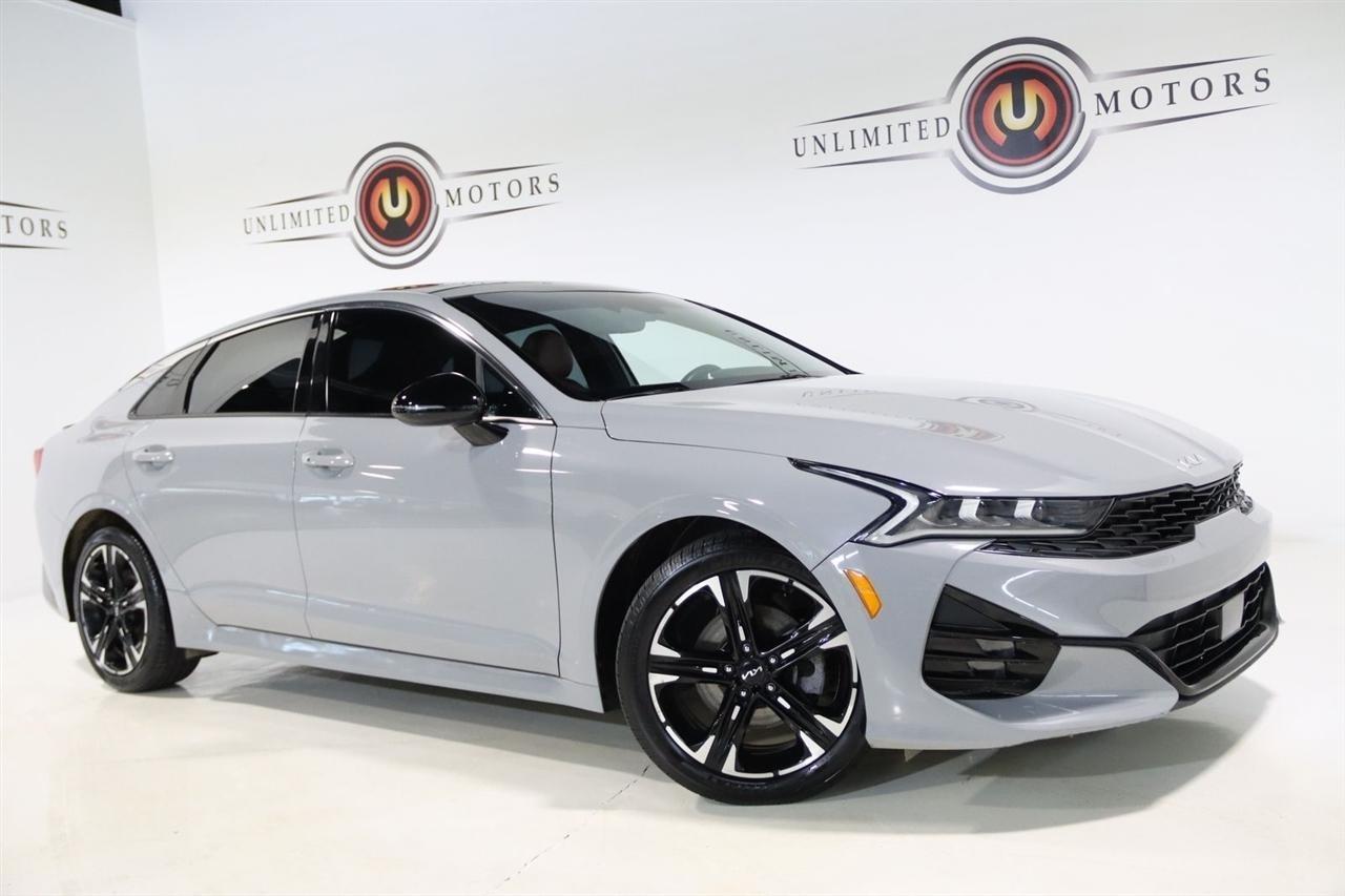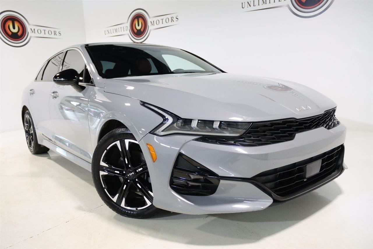 Navigation, Bluetooth, Back Up Camera, Panoramic Roof, Touch Screen, 4-Wheel Disc Brakes, 6 Speakers, ABS brakes, Air Conditioning, Alloy wheels, AM/FM radio: SiriusXM, Apple CarPlay & Android Auto, Auto High-beam Headlights, Automatic temperature control, Brake assist, Bumpers: body-color, Carpeted Floor Mats, Cloth/SynTex Seat Trim, Delay-off headlights, Driver door bin, Driver vanity mirror, Dual front impact airbags, Dual front side impact airbags, EC Mirror w/Homelink, Electronic Stability Control, Forward Collision Avoidance-Assist, Four wheel independent suspension, Front anti-roll bar, Front Bucket Seats, Front Center Armrest, Front dual zone A/C, Front fog lights, Front reading lights, Fully automatic headlights, Gloss Black Trim, GT-Line Panoramic Sunroof Package, GT-Line Premium Package, GT-Line Red Interior Package, Heated door mirrors, Highway Driving Assist, Illuminated entry, Knee airbag, LED Interior Lighting, LED Projection Headlamps, Low tire pressure warning, Navigation System, Occupant sensing airbag, Outside temperature display, Overhead airbag, Overhead console, Panic alarm, Panoramic Sunroof, Passenger door bin, Passenger vanity mirror, Power door mirrors, Power driver seat, Power steering, Power windows, Radio data system, Radio: AM/FM/MP3 Audio System, Rear anti-roll bar, Rear Bumper Applique, Rear seat center armrest, Rear side impact airbag, Rear window defroster, Remote keyless entry, Security system, Smart Cruise Control w/Stop & Go, Speed control, Speed-sensing steering, Split folding rear seat, Spoiler, Sport steering wheel, Steering wheel mounted audio controls, Tachometer, Telescoping steering wheel, Tilt steering wheel, Traction control, Trip computer, Turn signal indicator mirrors, Variably intermittent wipers, Wheels: 18 Gloss Black Machined Finish Alloy. 27/37 City/Highway MPG Odometer is 7086 miles below market average!2023 Wolf Gray Kia 4D Sedan K5 GT-Line FWD 8-Speed Automatic 1.6L I4 DGI Turbocharged DOHC 16V LEV3-ULEV70 180hpVisit our website www.iumotors.com to view 100s of newer vehicles, more pictures and info, or to apply for financing. Rates are incredibly low for approved credit. We offer extended warranties, protection packages, and insurance. We assure you the best experience at any of our 4 locations and unbeatable prices and quality. At Unlimited Motors we believe in MARKET VALUE PRICING. We use real-time Internet price comparisons to constantly adjust prices to provide ALL BUYERS The BEST PRICE possible. We do not mark them up, to mark them down! Our entire team is committed to helping you buy a car the way we would want to buy a car! We utilize state-of-the-art technology to constantly monitor pricing trends to offer our shoppers the best competitive pricing, value, and experience. We sell and service all makes and models of Pre-owned / Used Vehicles Used Cars, Used Trucks, Used Sport Utility, Lamborghini, Ferrari, Bentley, Rolls Royce, McLaren, Maserati, Ford, Chevrolet/Chevy, Honda, Toyota, Porsche, Land Rover, Jaguar, INFINITI, Audi, Nissan, Mazda, Hyundai, Chrysler, Jeep, Dodge, Ram, SRT, Mitsubishi, Lexus, Kia, Volkswagen, Mini, BMW, Mercedes, Fiat, Volvo, GMC, Cadillac, Lincoln as well as other brands. Proudly serving these areas of Indianapolis, Fishers, Carmel, Noblesville, Greenwood, Avon, Plainfield, Zionsville, & Brownsburg, Indiana, Midwest. We also serve the entire nation with our seamless and easy online purchasing process, and offer shipping nationwide.Advertised prices DO NOT include Sales Tax, Dealer Fees, Title Processing Charges, and Dealer Pre-installed Products.