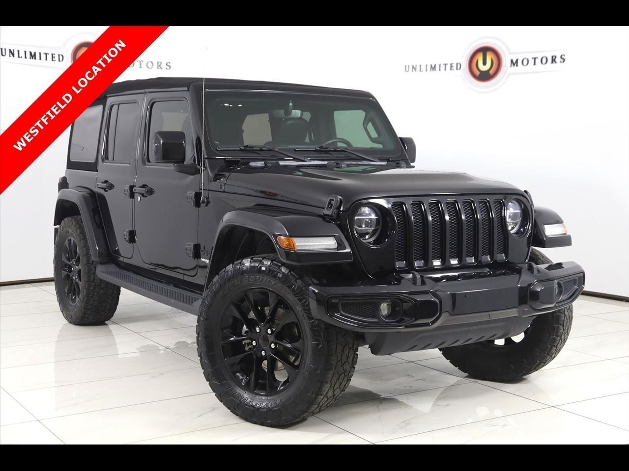 2021 Jeep Wrangler Black Clearcoat Now Available at Unlimited Motors Westfield! With over 20 years in business and 4 Indiana locations, Unlimited Motors is known for offering high-quality, hand-selected vehicles at excellent pricing with outstanding customer service. Our inventory of over 1,000 vehicles includes major makes such as Ford, Chevrolet, Ram, Jeep, GMC, Dodge, BMW, Mercedes-Benz, Audi, Cadillac, Porsche, Maserati, Ferrari, and Lamborghini, giving customers one of the largest selections of quality vehicles in the Midwest. Vehicle Highlights:Navigation, Back Up Camera, Bluetooth, Sun/Moon Roof, Running Boards, Winch, Touch Screen, Heated Front Seats, Blind Spot, Wrangler Unlimited Sahara High Altitude, 4D Sport Utility, 2.0L I4 DOHC, 8-Speed Automatic, 4WD, Black Clearcoat, Black Leather, 240 Amp Alternator, 3.73 Rear Axle Ratio, 7 & 4 Pin Wiring Harness, 700 Amp Maintenance Free Battery, 8.4 Radio & Premium Audio Group, Anti-Lock 4-Wheel FNC Disc Brakes, Apple CarPlay, Auxiliary Switches, Body Color 3-Piece Hard Top, Body Color Door Handles, Body Color Exterior Mirrors, Body Color Front Bumper, Body Color Fuel Filler Door, Body Color Grille w/Gloss Black Rings, Body Color Rear Bumper w/Step Pads, Caramel Interior Accents, Class II Receiver Hitch, Cold Weather Group, Dana M210 Wide HD Tube Front Axle, Dana M220 Wide Rear Axle, For More Info, Call 800-643-2112, Full Body Color Fender Flares, Google Android Auto, GPS Antenna Input, GPS Navigation, Heated Front Seats, Heated Steering Wheel, High Altitude Package, Integrated Voice Command w/Bluetooth, Leather Trimmed Bucket Seats (KL), Leather Wrapped Park Brake Handle, Leather Wrapped Shift Knob, LED Lighting Group, Navigation System, Off-Road Info Pages, Premium Dark Exterior Accents, Quick Order Package 22N High Altitude, Remote Proximity Keyless Entry, Safety Group, Sport Suspension, Summit Badging, Trailer Tow & HD Electrical Group, USB Host Flip, Wheels: 20 x 8 Fully Painted Aluminum, Wrapped I/P Bezel w/Caramel Stitch.CARFAX One-Owner. Clean CARFAX.Visit www.iumotors.com to explore our full inventory of over 1,000 hand-picked vehicles across our Westfield, Fishers, Noblesville, and Elwood locations. At Unlimited Motors, we offer a premium car-buying experience with competitive financing through local credit unions and national lenders, top trade-in values, full auto repair and maintenance services for customer vehicles, and nationwide shipping to all 50 states. Youll also find many of the most searched and in-demand models, including Ford F-150, Chevrolet Silverado, Ram 1500, Jeep Wrangler, Jeep Grand Cherokee, Chevrolet Tahoe, Chevrolet Suburban, GMC Yukon, GMC Sierra, Dodge Charger, Dodge Durango, Ford Explorer, BMW X5, BMW X3, BMW 3 Series, Mercedes-Benz GLE, Mercedes-Benz GLC, Cadillac Escalade, Audi Q5, Audi Q7, Porsche Cayenne, Porsche Macan, Maserati Ghibli, and more. Whether youre visiting from Westfield, Indianapolis, Carmel, Fishers, Noblesville, Zionsville, Greenwood, Lawrence, Brownsburg, Avon, Plainfield, Lebanon, Anderson, Muncie, Kokomo, Lafayette, Bloomington, Columbus, or anywhere across Central and Northern Indiana, we are here to help you find the perfect vehicle with exceptional service and unbeatable value. Call us today at 317-896-4488 1470 W Tournament Trl, Westfield, IN 46074. Disclaimer: Advertised prices DO NOT include Sales Tax, Dealer Fees, Title Processing Charges, and Dealer Pre-installed Products.