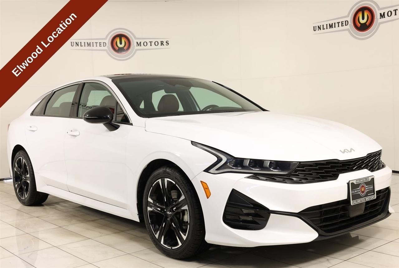 2022 Kia K5 Glacial White Pearl Now Available at Unlimited Motors Elwood! With over 20 years in business and 4 Indiana locations, Unlimited Motors is known for offering high-quality, hand-selected vehicles at excellent pricing with outstanding customer service. Our inventory of over 1,000 vehicles includes major makes such as Ford, Chevrolet, Ram, Jeep, GMC, Dodge, BMW, Mercedes-Benz, Audi, Cadillac, Porsche, Maserati, Ferrari, and Lamborghini, giving customers one of the largest selections of quality vehicles in the Midwest. Vehicle Highlights:CARFAX One-Owner.Visit www.iumotors.com to explore our full inventory of over 1,000 hand-picked vehicles across our Westfield, Fishers, Noblesville, and Elwood locations. At Unlimited Motors, we offer a premium car-buying experience with competitive financing through local credit unions and national lenders, top trade-in values, full auto repair and maintenance services for customer vehicles, and nationwide shipping to all 50 states. Youll also find many of the most searched and in-demand models, including Ford F-150, Chevrolet Silverado, Ram 1500, Jeep Wrangler, Jeep Grand Cherokee, Chevrolet Tahoe, Chevrolet Suburban, GMC Yukon, GMC Sierra, Dodge Charger, Dodge Durango, Ford Explorer, BMW X5, BMW X3, BMW 3 Series, Mercedes-Benz GLE, Mercedes-Benz GLC, Cadillac Escalade, Audi Q5, Audi Q7, Porsche Cayenne, Porsche Macan, Maserati Ghibli, and more. Whether youre visiting from Westfield, Indianapolis, Carmel, Fishers, Noblesville, Zionsville, Greenwood, Lawrence, Brownsburg, Avon, Plainfield, Lebanon, Anderson, Muncie, Kokomo, Lafayette, Bloomington, Columbus, or anywhere across Central and Northern Indiana, we are here to help you find the perfect vehicle with exceptional service and unbeatable value. Call us today at 765-557-8817 10083 IN-13, Elwood, IN 46036. Disclaimer: Advertised prices DO NOT include Sales Tax, Dealer Fees, Title Processing Charges, and Dealer Pre-installed Products.