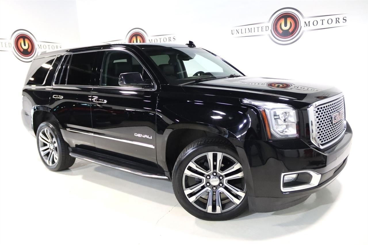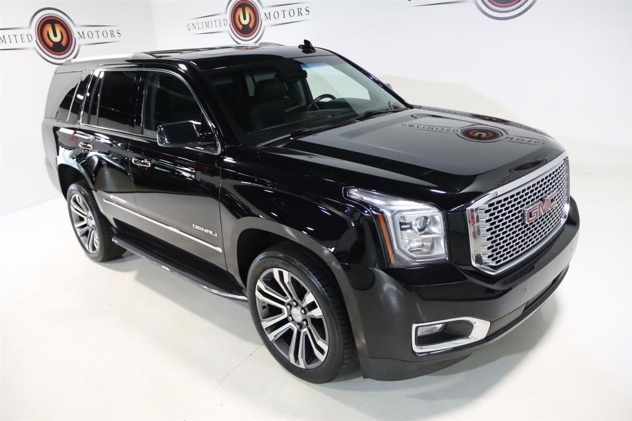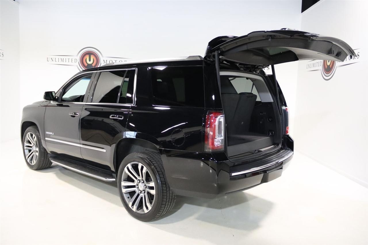 Navigation, Bluetooth, Back Up Camera, Entertainment, 3rd Row, Heated Seats, Touch Screen, 10 Speakers, 17 Disc/Disc VAC Power Brakes, 3.23 Axle Ratio, 3rd row seats: split-bench, 4-Wheel Disc & 4-Wheel VAC Power Antilock Brakes, 4-Wheel Disc Brakes, 5 Auxiliary 12-volt Power Outlets, ABS brakes, Adaptive Cruise Control w/Front Automatic Braking, Adaptive suspension, Adjustable pedals, Air Conditioning, Alloy wheels, AM/FM radio: SiriusXM, Apple CarPlay/Android Auto, Auto High-beam Headlights, Auto-dimming door mirrors, Auto-dimming Rear-View mirror, Automatic Collision Preparation, Automatic temperature control, Black Assist Steps w/Chrome Strip, Bodyside moldings, Bose Centerpoint Premium 10-Speaker Surround Sound, Brake assist, Bumpers: body-color, CD Player, CD player, Compass, Delay-off headlights, Driver door bin, Driver vanity mirror, Dual front impact airbags, Dual front side impact airbags, Electronic Stability Control, Emergency communication system: OnStar Guidance, Enhanced Driver Alert Package, Exterior Parking Camera Rear, Forward Collision Alert Sensor Indicator, Front anti-roll bar, Front Bucket Seats, Front Center Armrest, Front dual zone A/C, Front fog lights, Front reading lights, Front wheel independent suspension, Full-Feature Reclining Bucket Seats, Fully automatic headlights, Garage door transmitter, Genuine wood console insert, Genuine wood dashboard insert, Genuine wood door panel insert, Hands Free Power Liftgate, Heads-Up Display, Heated & Ventilated Driver & Front Passenger Seats, Heated door mirrors, Heated front seats, Heated Leather-Wrapped Steering Wheel, Heated rear seats, Heated steering wheel, High-Intensity Discharge Headlights, Illuminated entry, Inside Rear-View Auto-Dimming Mirror, Integrated Trailer Brake Controller, Intellibeam Automatic High Beam On/Off Headlamps, Lane Keep Assist, Leather Shift Knob, License Plate Front Mounting Package, Low Speed Forward Automatic Braking, Low tire pressure warning, Magnetic Ride Control Suspension Package, Memory Package, Memory seat, Navigation System, NavTraffic, Occupant sensing airbag, OnStar Basic Plan For 5 Years, OnStar w/4G LTE, Open Road Package, Outside temperature display, Overhead airbag, Overhead console, Panic alarm, Passenger door bin, Passenger vanity mirror, Passive Entry System, Pedal memory, Perforated Leather-Appointed Seat Trim, Power door mirrors, Power driver seat, Power Liftgate, Power passenger seat, Power Release Second Row Bucket Seats, Power steering, Power Tilt & Telescopic Steering Column, Power Tilt-Sliding Sunroof w/Express-Open/Close, Power windows, Power-Adjustable Pedals For Accelerator & Brake, Preferred Equipment Group 5SA, Premium audio system: IntelliLink, Push Button Keyless Start, Radio: AM/FM/SiriusXM w/Navigation, Rain sensing wipers, Rear air conditioning, Rear anti-roll bar, Rear Cross-Traffic Alert, Rear reading lights, Rear Seat Blu-Ray/DVD Entertainment System, Rear window defroster, Rear window wiper, Remote Keyless Entry, Remote keyless entry, Roof rack: rails only, Security system, Side Blind Zone Alert w/Lane Change Alert, SiriusXM Satellite Radio, Speed control, Speed-sensing steering, Split folding rear seat, Spoiler, Steering wheel memory, Steering wheel mounted audio controls, Tachometer, Telescoping steering wheel, Tilt steering wheel, Traction control, Trip computer, Turn signal indicator mirrors, Universal Home Remote, Variably intermittent wipers, Ventilated front seats, Voltmeter, Wheels: 22 x 8.5 Ultra-Bright Aluminum, Wireless Charging. Clean CARFAX.2017 Onyx Black GMC 4D Sport Utility Yukon Denali 4WD 8-Speed Automatic with Overdrive EcoTec3 6.2L V8Awards: * 2017 KBB.com Brand Image AwardsVisit our website www.iumotors.com to view 100s of newer vehicles, more pictures and info, or to apply for financing. Rates are incredibly low for approved credit. We offer extended warranties, protection packages, and insurance. We assure you the best experience at any