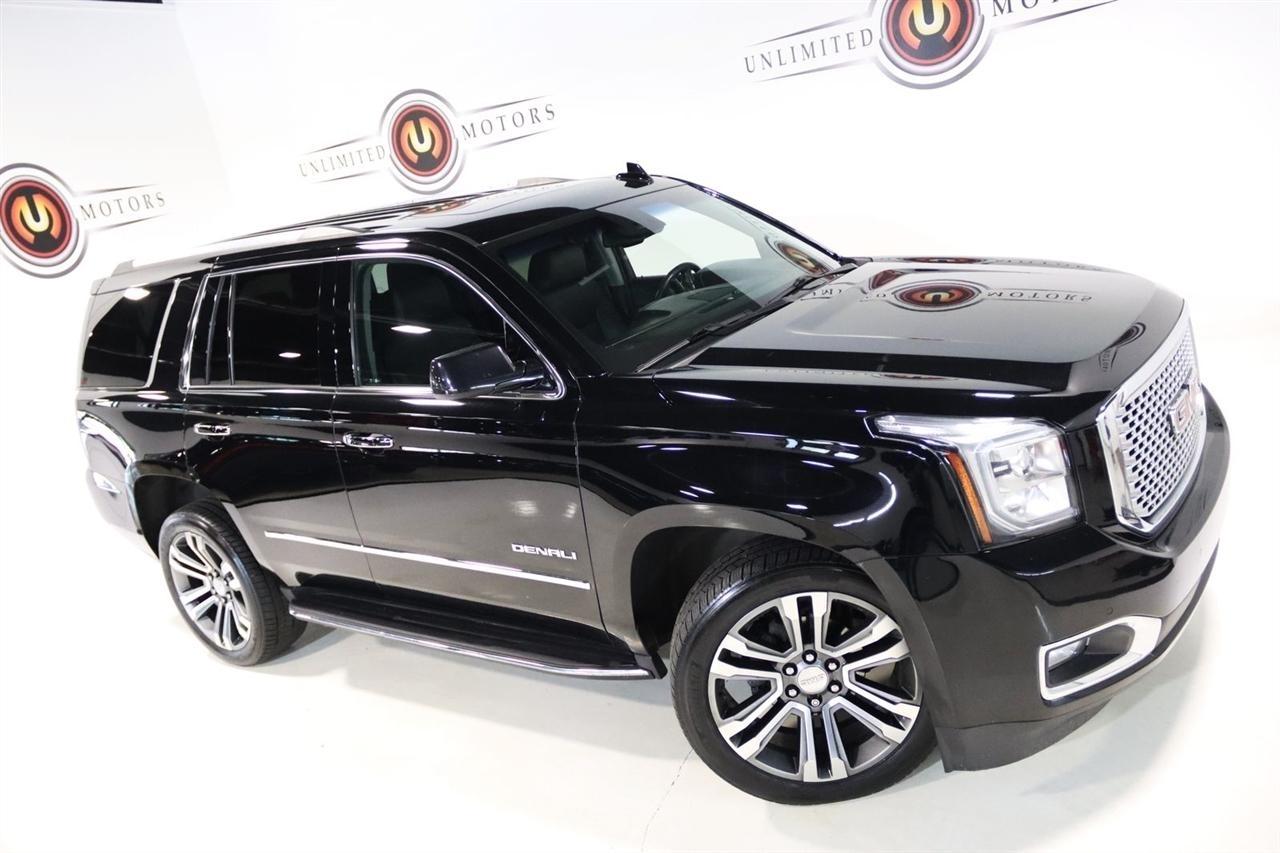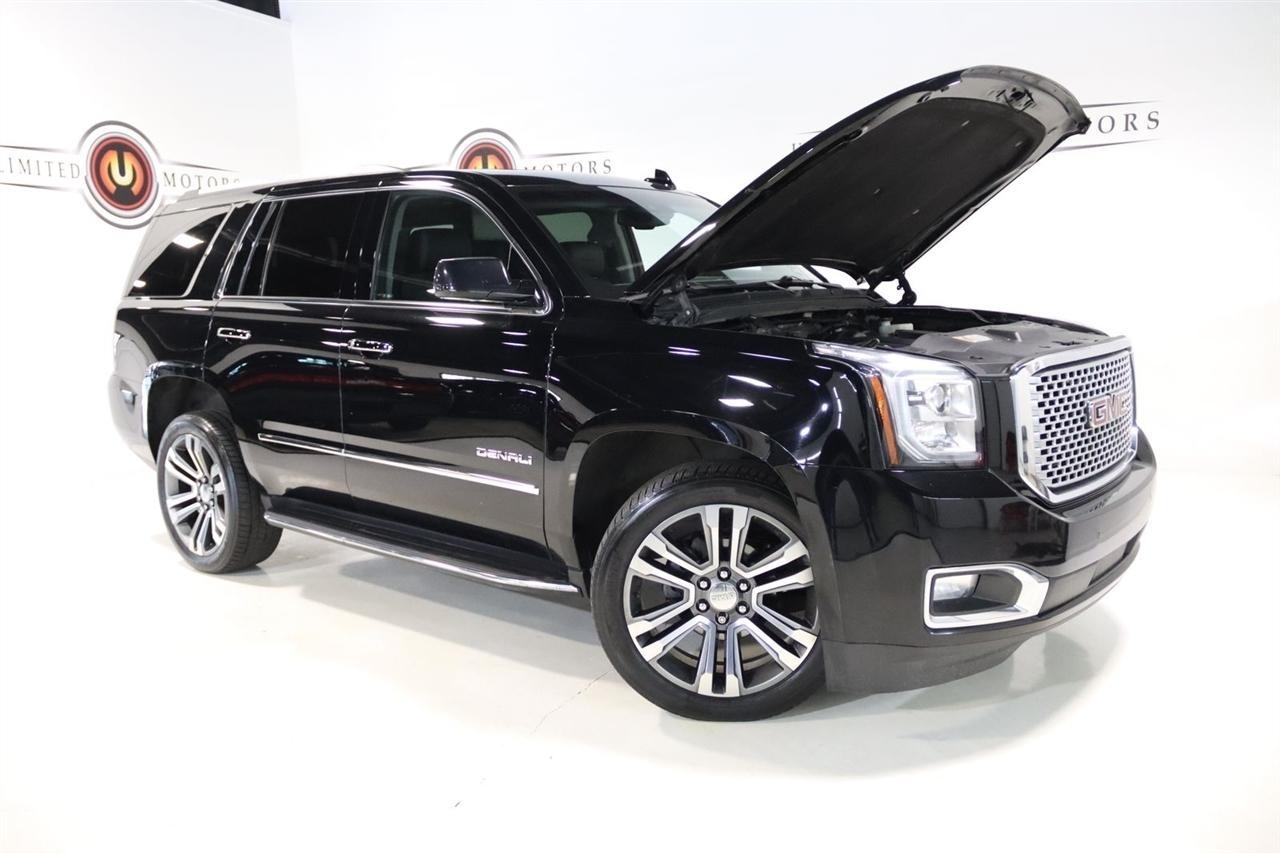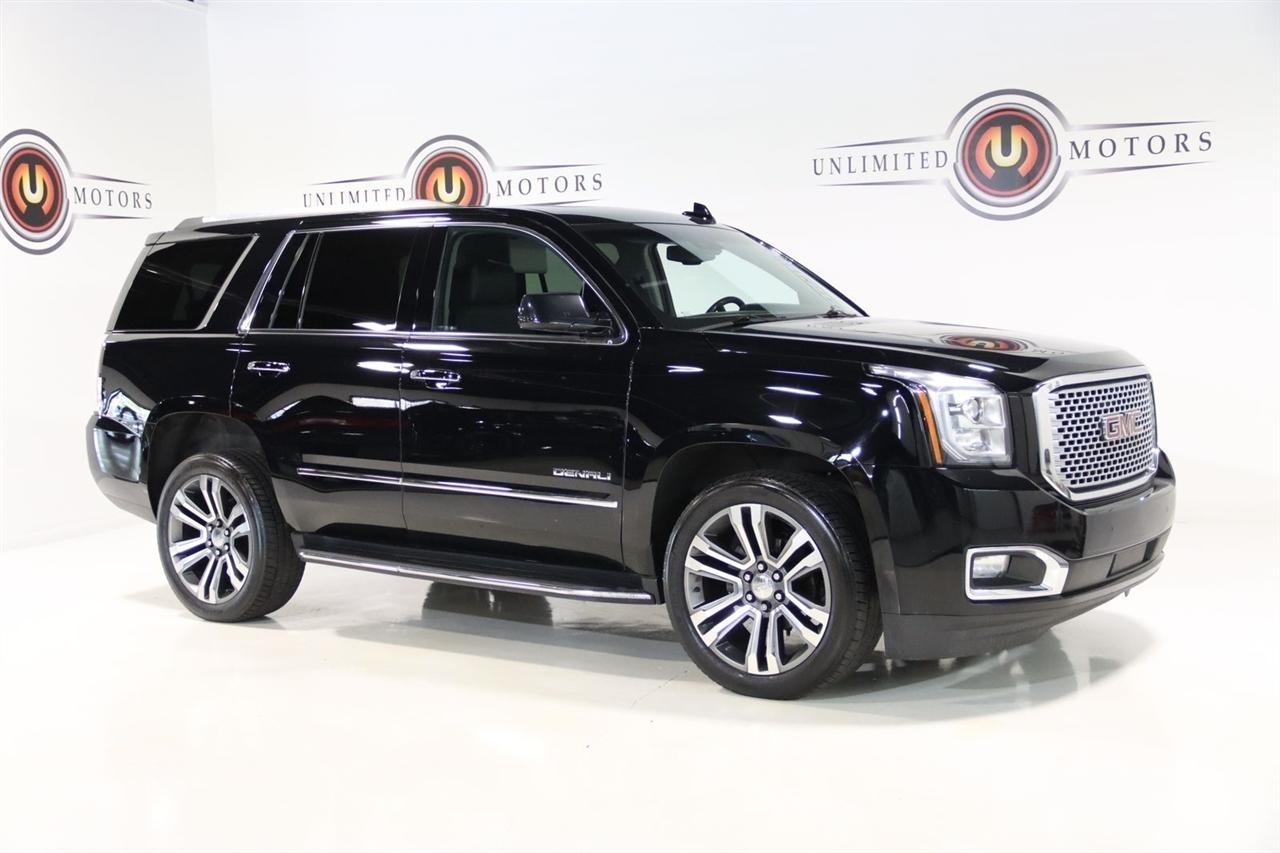 Navigation, Bluetooth, Back Up Camera, Entertainment, 3rd Row, Heated Seats, Touch Screen, 10 Speakers, 17 Disc/Disc VAC Power Brakes, 3.23 Axle Ratio, 3rd row seats: split-bench, 4-Wheel Disc & 4-Wheel VAC Power Antilock Brakes, 4-Wheel Disc Brakes, 5 Auxiliary 12-volt Power Outlets, ABS brakes, Adaptive Cruise Control w/Front Automatic Braking, Adaptive suspension, Adjustable pedals, Air Conditioning, Alloy wheels, AM/FM radio: SiriusXM, Apple CarPlay/Android Auto, Auto High-beam Headlights, Auto-dimming door mirrors, Auto-dimming Rear-View mirror, Automatic Collision Preparation, Automatic temperature control, Black Assist Steps w/Chrome Strip, Bodyside moldings, Bose Centerpoint Premium 10-Speaker Surround Sound, Brake assist, Bumpers: body-color, CD Player, CD player, Compass, Delay-off headlights, Driver door bin, Driver vanity mirror, Dual front impact airbags, Dual front side impact airbags, Electronic Stability Control, Emergency communication system: OnStar Guidance, Enhanced Driver Alert Package, Exterior Parking Camera Rear, Forward Collision Alert Sensor Indicator, Front anti-roll bar, Front Bucket Seats, Front Center Armrest, Front dual zone A/C, Front fog lights, Front reading lights, Front wheel independent suspension, Full-Feature Reclining Bucket Seats, Fully automatic headlights, Garage door transmitter, Genuine wood console insert, Genuine wood dashboard insert, Genuine wood door panel insert, Hands Free Power Liftgate, Heads-Up Display, Heated & Ventilated Driver & Front Passenger Seats, Heated door mirrors, Heated front seats, Heated Leather-Wrapped Steering Wheel, Heated rear seats, Heated steering wheel, High-Intensity Discharge Headlights, Illuminated entry, Inside Rear-View Auto-Dimming Mirror, Integrated Trailer Brake Controller, Intellibeam Automatic High Beam On/Off Headlamps, Lane Keep Assist, Leather Shift Knob, License Plate Front Mounting Package, Low Speed Forward Automatic Braking, Low tire pressure warning, Magnetic Ride Control Suspension Package, Memory Package, Memory seat, Navigation System, NavTraffic, Occupant sensing airbag, OnStar Basic Plan For 5 Years, OnStar w/4G LTE, Open Road Package, Outside temperature display, Overhead airbag, Overhead console, Panic alarm, Passenger door bin, Passenger vanity mirror, Passive Entry System, Pedal memory, Perforated Leather-Appointed Seat Trim, Power door mirrors, Power driver seat, Power Liftgate, Power passenger seat, Power Release Second Row Bucket Seats, Power steering, Power Tilt & Telescopic Steering Column, Power Tilt-Sliding Sunroof w/Express-Open/Close, Power windows, Power-Adjustable Pedals For Accelerator & Brake, Preferred Equipment Group 5SA, Premium audio system: IntelliLink, Push Button Keyless Start, Radio: AM/FM/SiriusXM w/Navigation, Rain sensing wipers, Rear air conditioning, Rear anti-roll bar, Rear Cross-Traffic Alert, Rear reading lights, Rear Seat Blu-Ray/DVD Entertainment System, Rear window defroster, Rear window wiper, Remote Keyless Entry, Remote keyless entry, Roof rack: rails only, Security system, Side Blind Zone Alert w/Lane Change Alert, SiriusXM Satellite Radio, Speed control, Speed-sensing steering, Split folding rear seat, Spoiler, Steering wheel memory, Steering wheel mounted audio controls, Tachometer, Telescoping steering wheel, Tilt steering wheel, Traction control, Trip computer, Turn signal indicator mirrors, Universal Home Remote, Variably intermittent wipers, Ventilated front seats, Voltmeter, Wheels: 22 x 8.5 Ultra-Bright Aluminum, Wireless Charging. Clean CARFAX.2017 Onyx Black GMC 4D Sport Utility Yukon Denali 4WD 8-Speed Automatic with Overdrive EcoTec3 6.2L V8Awards: * 2017 KBB.com Brand Image AwardsVisit our website www.iumotors.com to view 100s of newer vehicles, more pictures and info, or to apply for financing. Rates are incredibly low for approved credit. We offer extended warranties, protection packages, and insurance. We assure you the best experience at any