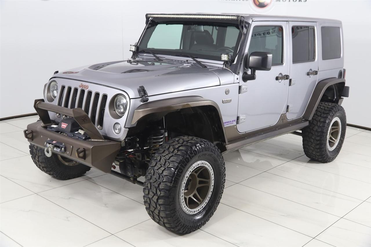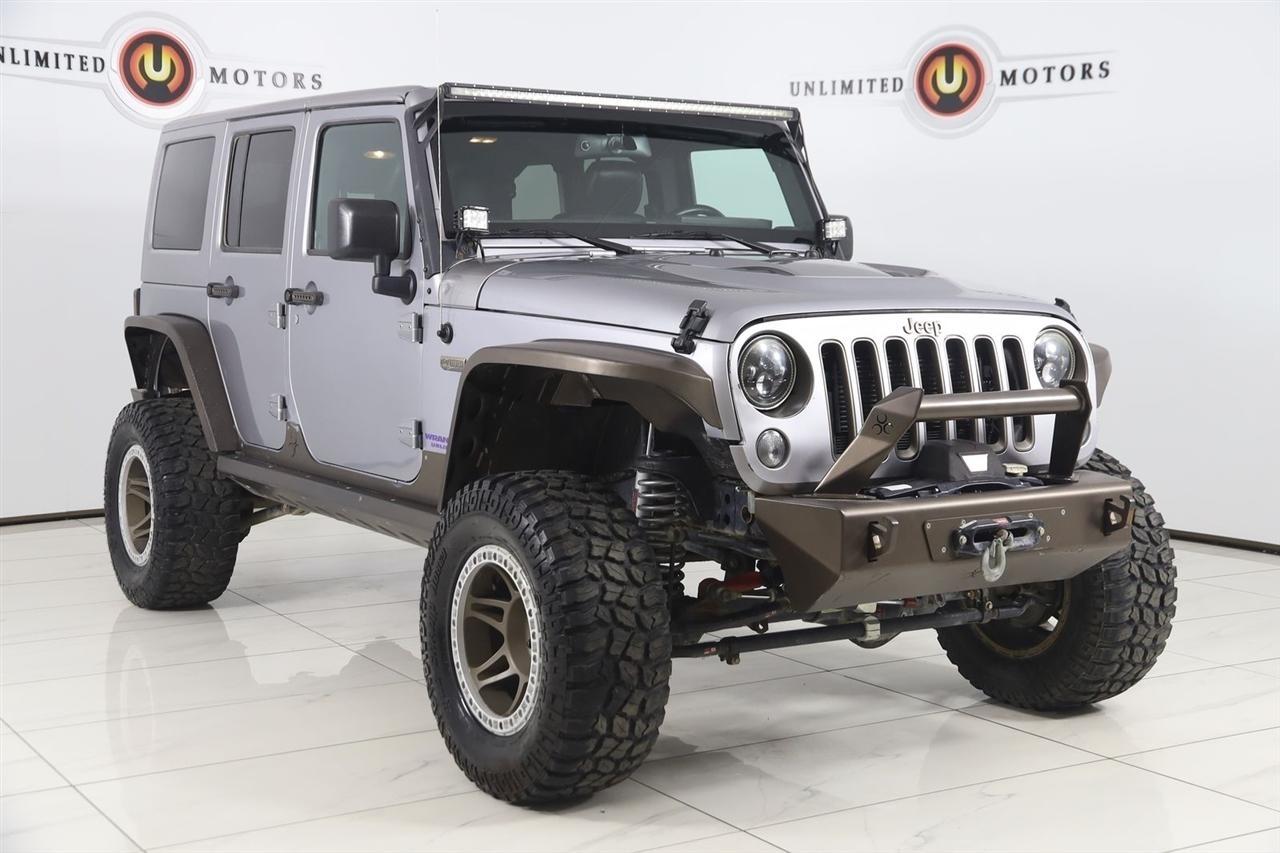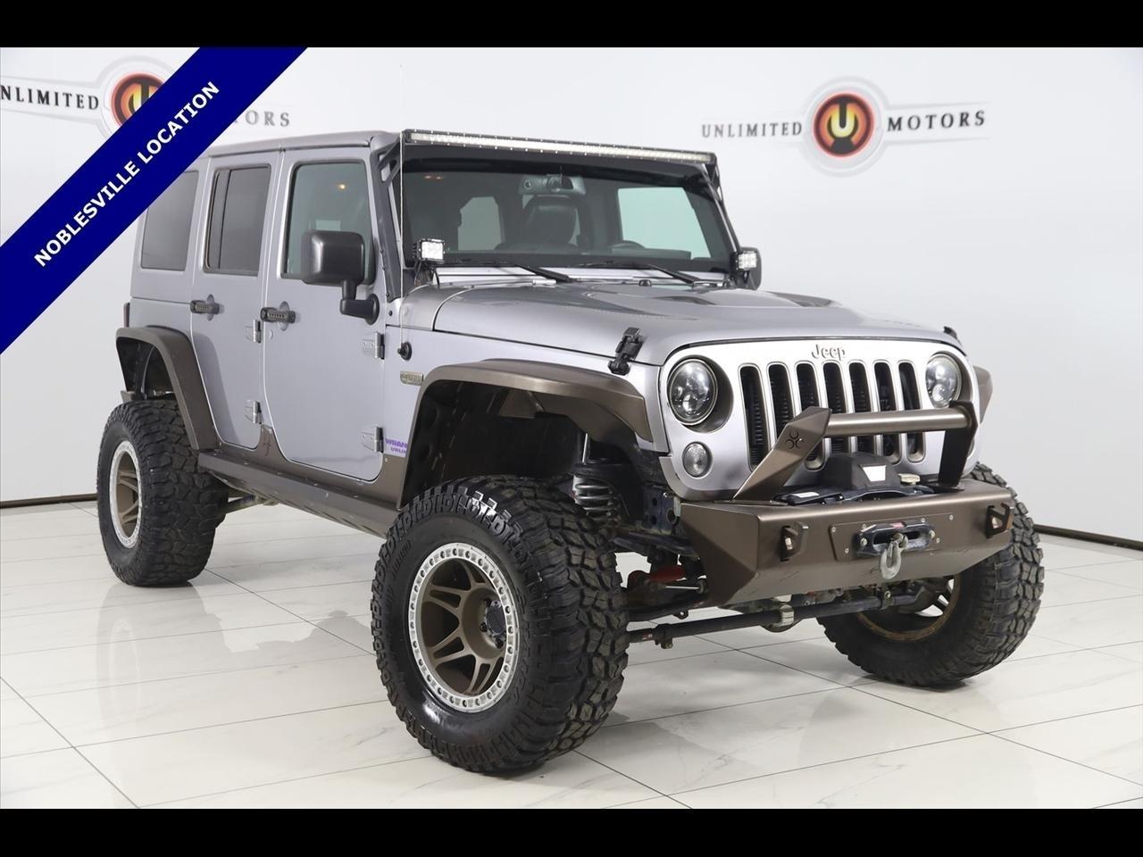 2016 Jeep Wrangler Billet Silver Metallic Clearcoat Now Available at Unlimited Motors Noblesville! With over 20 years in business and 4 Indiana locations, Unlimited Motors is known for offering high-quality, hand-selected vehicles at excellent pricing with outstanding customer service. Our inventory of over 1,000 vehicles includes major makes such as Ford, Chevrolet, Ram, Jeep, GMC, Dodge, BMW, Mercedes-Benz, Audi, Cadillac, Porsche, Maserati, Ferrari, and Lamborghini, giving customers one of the largest selections of quality vehicles in the Midwest. Vehicle Highlights:4x4, AWD, Back Up Camera, Bluetooth, Heated Seats, Navigation/GPS, Sun/Moon Roof, Winch, and much more ..., Touch Screen, Wrangler Unlimited Sahara, 4D Sport Utility, 3.6L V6 24V VVT, 5-Speed Automatic, 4WD, Billet Silver Metallic Clearcoat, Black Leather, 2 Front & 1 Rear Bronze Tow Hook, 3.73 Rear Axle Ratio, 75th Anniversary Badge, Anti-Spin Differential Rear Axle, Black 3-Piece Hard Top, Body Color Grille w/Bronze Accent, Bronze Jeep Grille Badge, Bronze Trail Rated Badge, Chrome/Leather Wrapped Shift Knob, Class II Receiver Hitch, Connectivity Group, Dual Top Group, GPS Navigation, Heated Front Seats, Hood w/Power Dome, Jeep 75th Anniversary Package, Leather Seat w/Cloth (Ombre Mesh), Leather Wrapped Steering Wheel, Low Gloss Black Wrangler Decal, Max Tow Package, MOPAR Slush Mats, Moroccan Sun Instrument Panel Bezel, Moroccan Sun Interior Accents, Navigation System, Painted Front Bumper, Painted Rear Bumper, Premium Black Sunrider Soft Top, Quick Order Package 24H 75th Anniversary, Radio: 430, Remote USB Port, Tire Pressure Monitoring Display, Trailer Tow w/4-Pin Connector Wiring, Uconnect Voice Command w/Bluetooth, Vehicle Information Center, Wheels: 17 x 7.5 Aluminum Bronze.Clean CARFAX. Odometer is 30641 miles below market average!Visit www.iumotors.com to explore our full inventory of over 1,000 hand-picked vehicles across our Westfield, Fishers, Noblesville, and Elwood locations. At Unlimited Motors, we offer a premium car-buying experience with competitive financing through local credit unions and national lenders, top trade-in values, full auto repair and maintenance services for customer vehicles, and nationwide shipping to all 50 states. Youll also find many of the most searched and in-demand models, including Ford F-150, Chevrolet Silverado, Ram 1500, Jeep Wrangler, Jeep Grand Cherokee, Chevrolet Tahoe, Chevrolet Suburban, GMC Yukon, GMC Sierra, Dodge Charger, Dodge Durango, Ford Explorer, BMW X5, BMW X3, BMW 3 Series, Mercedes-Benz GLE, Mercedes-Benz GLC, Cadillac Escalade, Audi Q5, Audi Q7, Porsche Cayenne, Porsche Macan, Maserati Ghibli, and more. Whether youre visiting from Westfield, Indianapolis, Carmel, Fishers, Noblesville, Zionsville, Greenwood, Lawrence, Brownsburg, Avon, Plainfield, Lebanon, Anderson, Muncie, Kokomo, Lafayette, Bloomington, Columbus, or anywhere across Central and Northern Indiana, we are here to help you find the perfect vehicle with exceptional service and unbeatable value. Call us today at 317-219-5325 60 N Mill Creek Rd, Noblesville, IN 46062. Disclaimer: Advertised prices DO NOT include Sales Tax, Dealer Fees, Title Processing Charges, and Dealer Pre-installed Products.