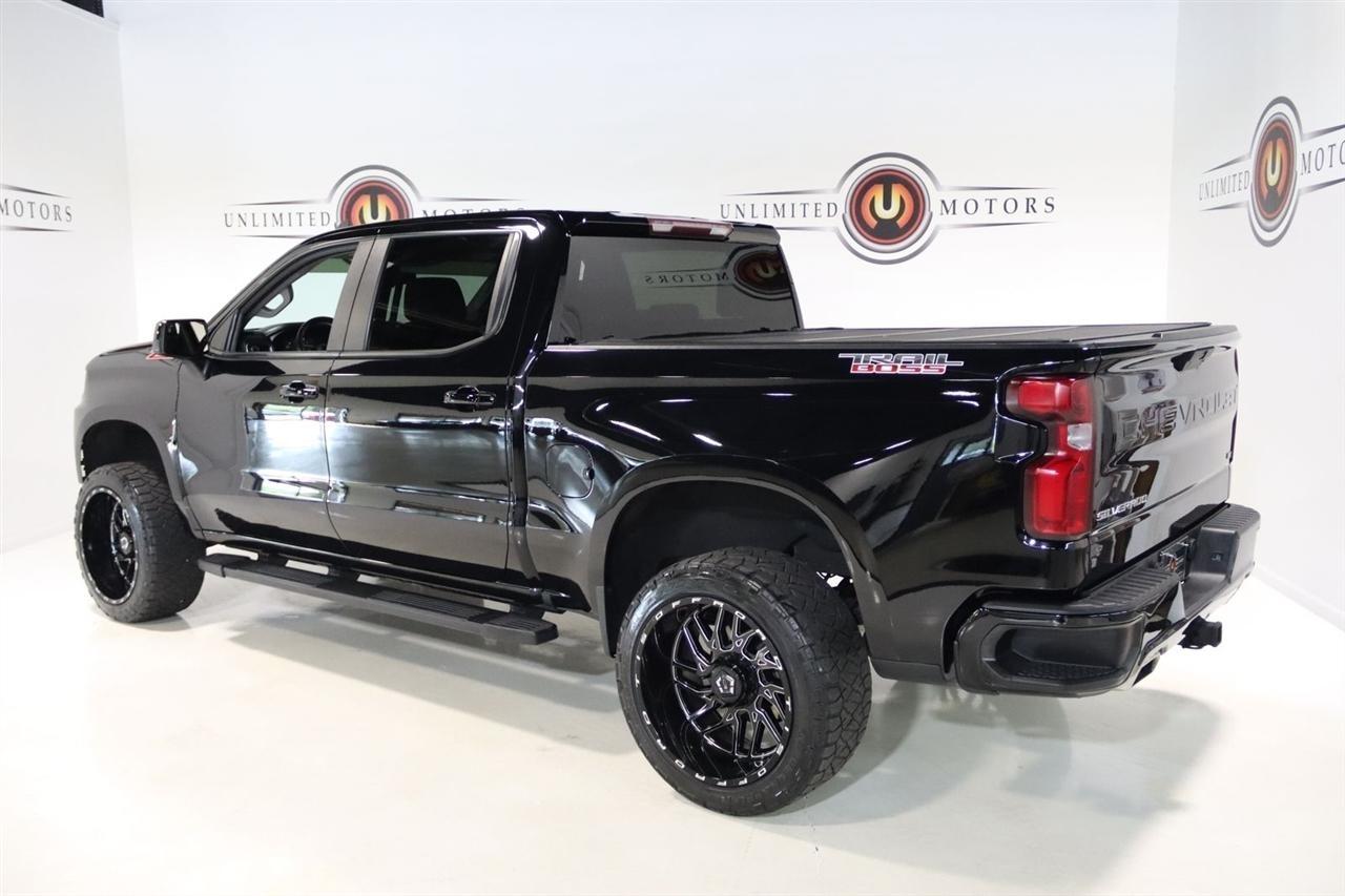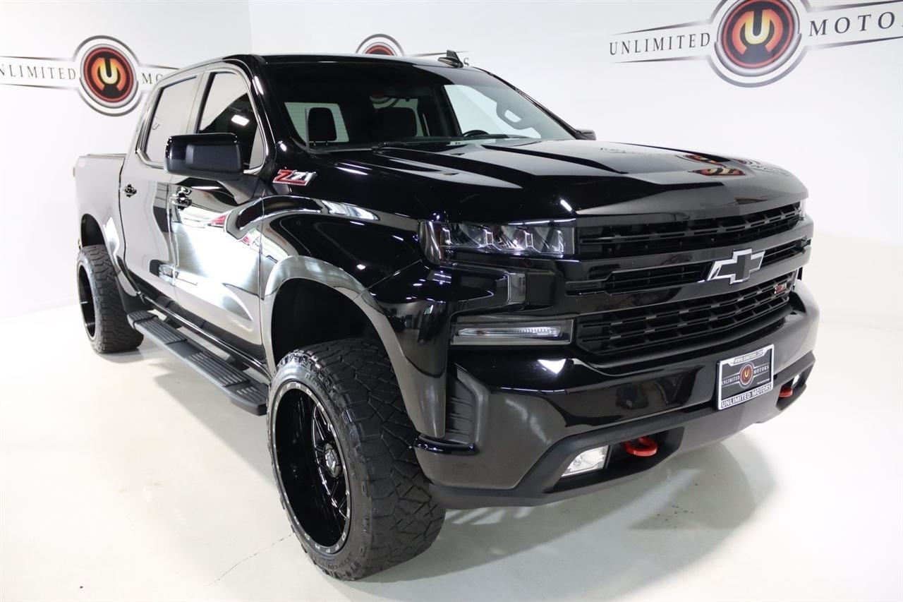 Bluetooth, Back Up Camera, Towing, Touch Screen, 10-Way Power Driver Seat w/Lumbar, 12-Volt Rear Auxiliary Power Outlet, 170 Amp Alternator, 2 USB Ports (First Row), 3.23 Rear Axle Ratio, 4-Wheel Disc Brakes, 4.2 Diagonal Color Display Driver Info Center, 4G LTE Wi-Fi Hot Spot Capable, 6 Speakers, 6-Speaker Audio System, 6 Black Tubular Assist Steps (LPO), ABS brakes, Air Conditioning, All-Weather Floor Liner (LPO) (AAK), Alloy wheels, AM/FM radio: SiriusXM, Apple CarPlay/Android Auto, Auto-Locking Rear Differential, Automatic temperature control, Auxiliary External Transmission Oil Cooler, Bed Protection Package, Bluetooth For Phone, Brake assist, Chevrolet Connected Access Capable, Chevytec Spray-On Black Bedliner, Cloth Rear Seat w/Storage Package, Cloth Seat Trim, Color-Keyed Carpeting Floor Covering, Compass, Convenience Package w/Buckets Seats, Deep-Tinted Glass, Delay-off headlights, Driver door bin, Driver vanity mirror, Dual Exhaust w/Polished Outlets, Dual front impact airbags, Dual front side impact airbags, Dual-Zone Automatic Climate Control, Electric Rear-Window Defogger, Electrical Lock Control Steering Column, Electronic Cruise Control, Electronic Stability Control, EZ Lift Power Lock & Release Tailgate, Floor Mounted Center Console, Front anti-roll bar, Front Bucket Seats, Front Center Armrest w/Storage, Front dual zone A/C, Front fog lights, Front LED Fog Lamps, Front reading lights, Front wheel independent suspension, Fully automatic headlights, Heated door mirrors, Heated Driver & Front Outboard Passenger Seats, Heated front seats, Heated Steering Wheel, Heated steering wheel, Heavy-Duty Air Filter, High Gloss Black Grille, High Gloss Black Mirror Caps, Hill Descent Control, Hitch Guidance, Illuminated entry, Keyless Open & Start, Leather Wrapped Steering Wheel, LED Cargo Area Lighting, LED Reflector Headlamps, Low tire pressure warning, Manual Tilt/Telescoping Steering Column, Not Equipped w/Automatic Stop/Start, Occupant sensing airbag, Off-Road Suspension w/2 Lift, OnStar & Chevrolet Connected Services Capable, Outside temperature display, Overhead airbag, Overhead console, Panic alarm, Passenger door bin, Passenger vanity mirror, Performance Red Recovery Hooks, Power Door Locks, Power door mirrors, Power driver seat, Power Front Windows w/Driver Express Up/Down, Power Front Windows w/Passenger Express Down, Power Rear Windows w/Express Down, Power steering, Power windows, Preferred Equipment Group 2LT, Premium audio system: Chevrolet Infotainment 3, Radio data system, Radio: Chevrolet Infotainment 3 System, Rear Dual USB Charging-Only Ports, Rear reading lights, Rear seat center armrest, Rear step bumper, Rear Vision Camera, Rear Wheelhouse Liners, Rear window defroster, Remote keyless entry, Remote Vehicle Starter System, Security system, SiriusXM Radio, Speed control, Speed-sensing steering, Split folding rear seat, Standard Tailgate, Steering Wheel Audio Controls, Steering wheel mounted audio controls, Suspension Package, Tachometer, Telescoping steering wheel, Theft Deterrent System (Unauthorized Entry), Tilt steering wheel, Traction control, Trailering Package, Trip computer, Variably intermittent wipers, Voltmeter, Wheel Locks (Set of 4) (LPO), Wheels: 18 x 8.5 Black Painted Aluminum. Clean CARFAX. Odometer is 17063 miles below market average!2021 Black Chevrolet 4D Crew Cab Silverado 1500 LT Trail Boss 4WD 10-Speed Automatic EcoTec3 5.3L V8Visit our website www.iumotors.com to view 100s of newer vehicles, more pictures and info, or to apply for financing. Rates are incredibly low for approved credit. We offer extended warranties, protection packages, and insurance. We assure you the best experience at any of our 4 locations and unbeatable prices and quality. At Unlimited Motors we believe in MARKET VALUE PRICING. We use real-time Internet price comparisons to constantly adjust prices to provide ALL BUYERS The BEST PRICE possible. We do not mark them up, to mark t