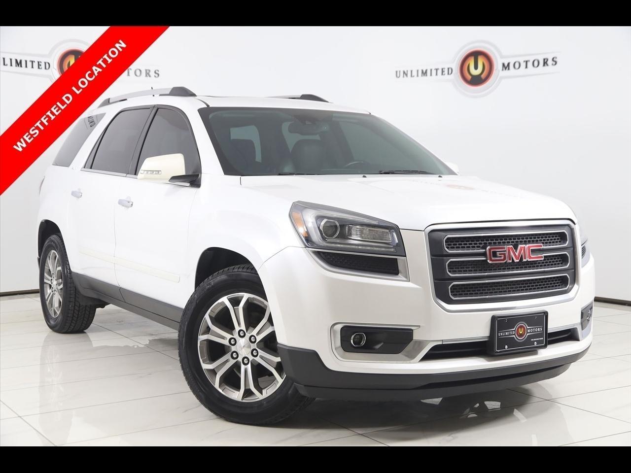 2016 GMC Acadia White Frost Tricoat Now Available at Unlimited Motors Westfield! With over 20 years in business and 4 Indiana locations, Unlimited Motors is known for offering high-quality, hand-selected vehicles at excellent pricing with outstanding customer service. Our inventory of over 1,000 vehicles includes major makes such as Ford, Chevrolet, Ram, Jeep, GMC, Dodge, BMW, Mercedes-Benz, Audi, Cadillac, Porsche, Maserati, Ferrari, and Lamborghini, giving customers one of the largest selections of quality vehicles in the Midwest. Vehicle Highlights:Navigation, Back Up Camera, Bluetooth, Panoramic Roof, Winch, Touch Screen, Heated Front Seats, Acadia SLT-1, 4D Sport Utility, 3.6L V6 SIDI, 6-Speed Automatic, FWD, White Frost Tricoat, Dark Cashmere Leather, 8-Way Power Driver Seat, 8-Way Power Passenger Seat Adjuster, Acoustical Insulation Package, Body-Color Bodyside Moldings, Body-Color Heated Power-Adjustable Outside Mirrors, Bose Premium 10-Speaker Audio System, Carpeted Removable Front 2nd & 3rd Row Floor Mats, Dual SkyScape 2-Panel Power Sunroof, Forward Collision Alert & Lane Departure Warning, Inside Rear-View Auto-Dimming Mirror, Leather-Wrapped Steering Wheel, Navigation System, Open Road Package, Power Rear Liftgate Body, Preferred Equipment Group 4SA, Radio: Color Touch Navigation w/IntelliLink, Rear Audio System Controls, Remote Vehicle Start, Single Outlet Exhaust, Tilt & Telescopic Steering Column, Trailering Equipment, Tri-Zone Automatic Climate Control, Universal Home Remote, Variable Effort Power Steering.Visit www.iumotors.com to explore our full inventory of over 1,000 hand-picked vehicles across our Westfield, Fishers, Noblesville, and Elwood locations. At Unlimited Motors, we offer a premium car-buying experience with competitive financing through local credit unions and national lenders, top trade-in values, full auto repair and maintenance services for customer vehicles, and nationwide shipping to all 50 states. Youll also find many of the most searched and in-demand models, including Ford F-150, Chevrolet Silverado, Ram 1500, Jeep Wrangler, Jeep Grand Cherokee, Chevrolet Tahoe, Chevrolet Suburban, GMC Yukon, GMC Sierra, Dodge Charger, Dodge Durango, Ford Explorer, BMW X5, BMW X3, BMW 3 Series, Mercedes-Benz GLE, Mercedes-Benz GLC, Cadillac Escalade, Audi Q5, Audi Q7, Porsche Cayenne, Porsche Macan, Maserati Ghibli, and more. Whether youre visiting from Westfield, Indianapolis, Carmel, Fishers, Noblesville, Zionsville, Greenwood, Lawrence, Brownsburg, Avon, Plainfield, Lebanon, Anderson, Muncie, Kokomo, Lafayette, Bloomington, Columbus, or anywhere across Central and Northern Indiana, we are here to help you find the perfect vehicle with exceptional service and unbeatable value. Call us today at 317-896-4488 1470 W Tournament Trl, Westfield, IN 46074. Disclaimer: Advertised prices DO NOT include Sales Tax, Dealer Fees, Title Processing Charges, and Dealer Pre-installed Products.