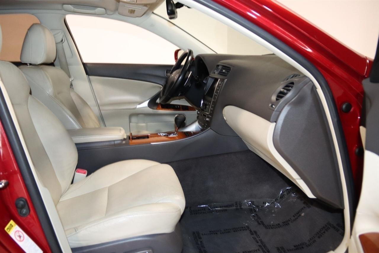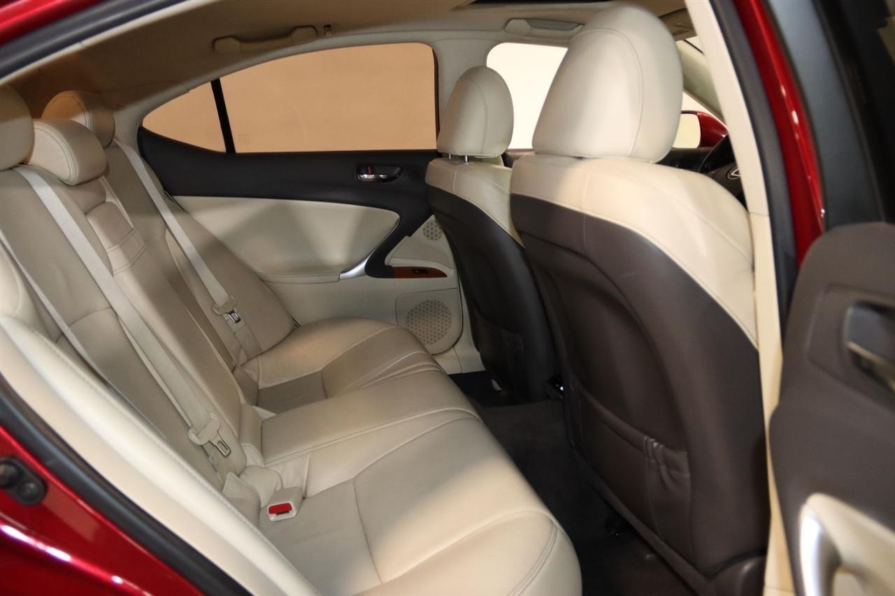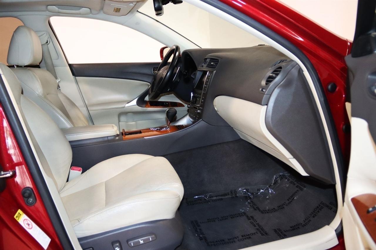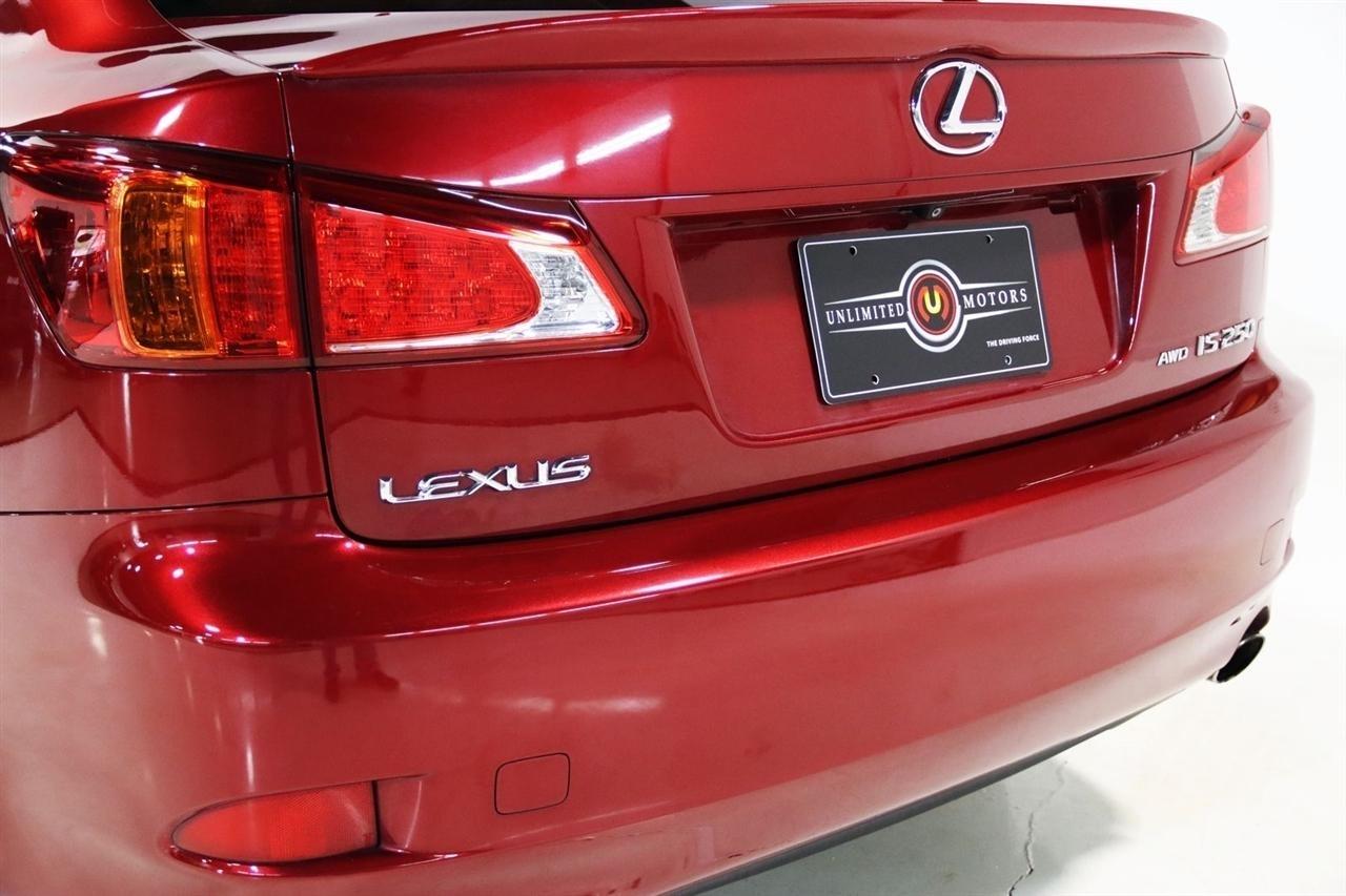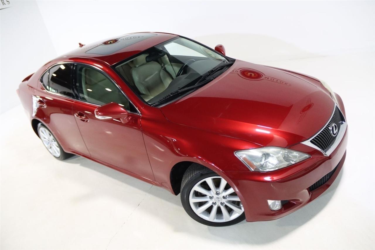 Bluetooth, Back Up Camera, Sun/Moon Roof, Touch Screen, 13 Speakers, 17 x 8 10-Spoke Aluminum Alloy Wheels, 4-Wheel Disc Brakes, ABS brakes, Air Conditioning, Alloy wheels, AM/FM radio, Auto-dimming Rear-View mirror, Automatic temperature control, Bird's Eye Maple Interior Trim, Brake assist, Bumpers: body-color, Cargo Net, CD player, Compass, Delay-off headlights, Driver door bin, Driver vanity mirror, Dual front impact airbags, Dual front side impact airbags, Electronic Stability Control, Four wheel independent suspension, Front anti-roll bar, Front Bucket Seats, Front Center Armrest, Front dual zone A/C, Front fog lights, Front reading lights, Fully automatic headlights, Garage door transmitter: HomeLink(R), Heated door mirrors, Heated Front Bucket Seats, Heated front seats, Illuminated entry, Knee airbag, Leather Seat Trim, Leather steering wheel, Lexus Premium Audio System, Low tire pressure warning, Mark Levinson Premium Audio Package, Navigation System, Navigation System w/Mark Levinson Premium Audio Package, Occupant sensing airbag, Outside temperature display, Overhead airbag, Overhead console, Panic alarm, Passenger door bin, Passenger vanity mirror, Perforated Leather Seat Trim, Power door mirrors, Power driver seat, Power moonroof, Power passenger seat, Power steering, Power windows, Preferred Accessory Package, Preferred Accessory Package w/Z1, Premium Package, Radio data system, Rear anti-roll bar, Rear Bumper Applique, Rear reading lights, Rear seat center armrest, Rear window defroster, Remote keyless entry, Security system, Speed control, Speed-sensing steering, Speed-Sensitive Wipers, Steering wheel mounted audio controls, Tachometer, Telescoping steering wheel, Tilt steering wheel, Traction control, Trip computer, Trunk Mat, Turn signal indicator mirrors, Variably intermittent wipers, Wheel Locks. 20/26 City/Highway MPG Odometer is 5110 miles below market average!2009 Matador Red Mica Lexus 4D Sedan IS 250 AWD 6-Speed Automatic Electronic with ECT-i 2.5L V6 DOHC 24V VVT-iVisit our website www.iumotors.com to view 100s of newer vehicles, more pictures and info, or to apply for financing. Rates are incredibly low for approved credit. We offer extended warranties, protection packages, and insurance. We assure you the best experience at any of our 4 locations and unbeatable prices and quality. At Unlimited Motors we believe in MARKET VALUE PRICING. We use real-time Internet price comparisons to constantly adjust prices to provide ALL BUYERS The BEST PRICE possible. We do not mark them up, to mark them down! Our entire team is committed to helping you buy a car the way we would want to buy a car! We utilize state-of-the-art technology to constantly monitor pricing trends to offer our shoppers the best competitive pricing, value, and experience. We sell and service all makes and models of Pre-owned / Used Vehicles Used Cars, Used Trucks, Used Sport Utility, Lamborghini, Ferrari, Bentley, Rolls Royce, McLaren, Maserati, Ford, Chevrolet/Chevy, Honda, Toyota, Porsche, Land Rover, Jaguar, INFINITI, Audi, Nissan, Mazda, Hyundai, Chrysler, Jeep, Dodge, Ram, SRT, Mitsubishi, Lexus, Kia, Volkswagen, Mini, BMW, Mercedes, Fiat, Volvo, GMC, Cadillac, Lincoln as well as other brands. Proudly serving these areas of Indianapolis, Fishers, Carmel, Noblesville, Greenwood, Avon, Plainfield, Zionsville, & Brownsburg, Indiana, Midwest. We also serve the entire nation with our seamless and easy online purchasing process, and offer shipping nationwide.Advertised prices DO NOT include Sales Tax, Dealer Fees, Title Processing Charges, and Dealer Pre-installed Products.
