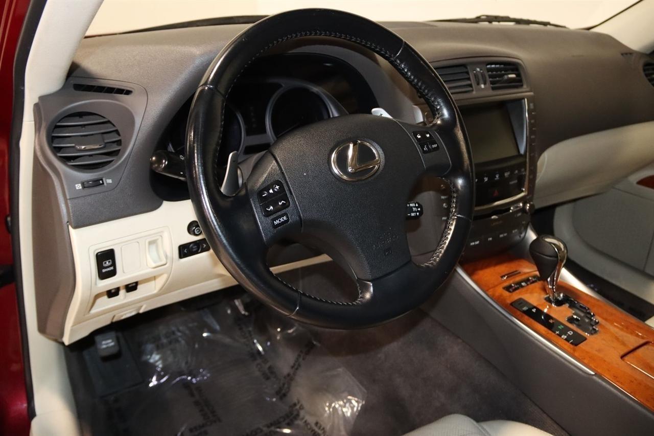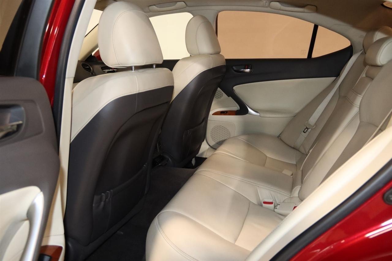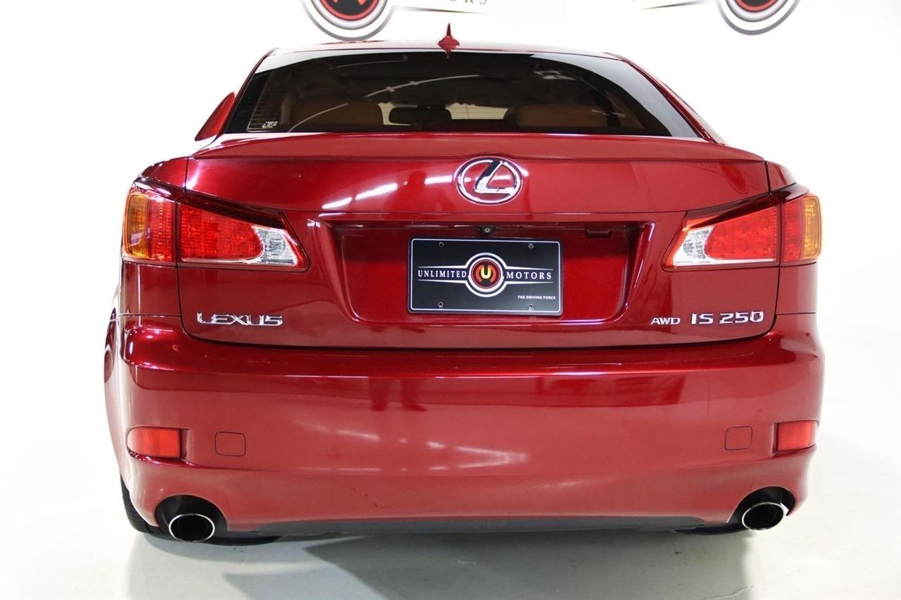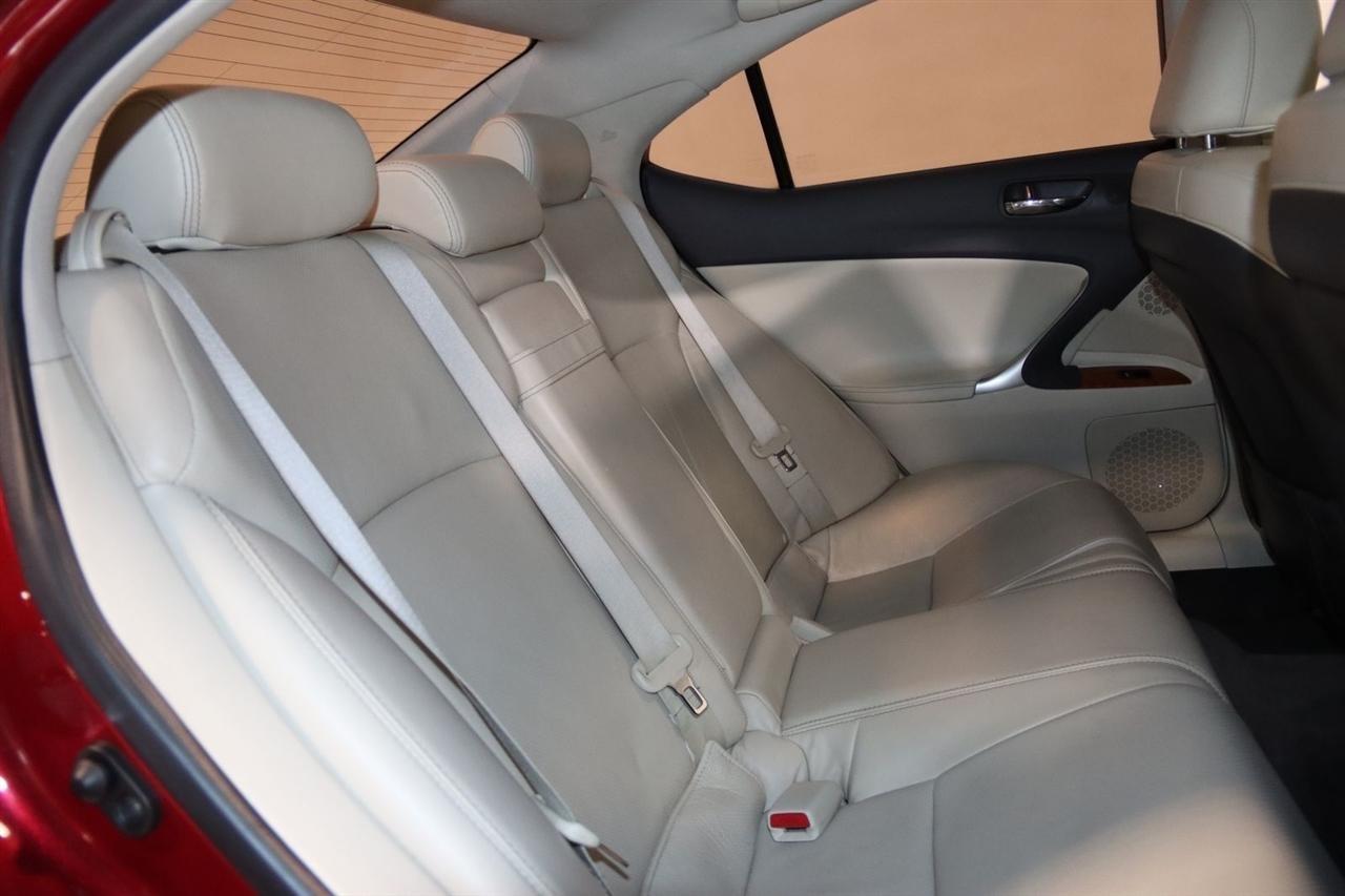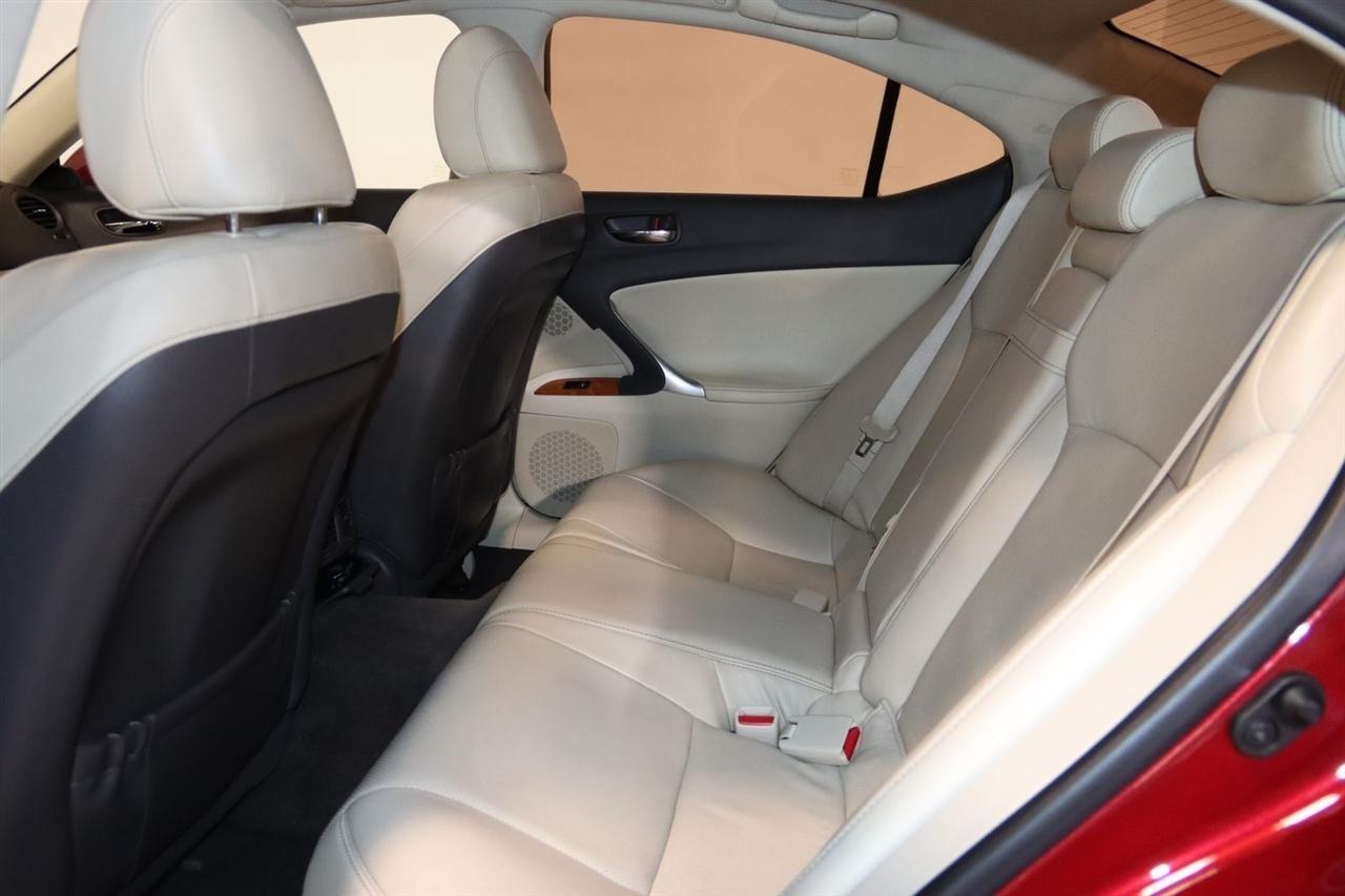 Bluetooth, Back Up Camera, Sun/Moon Roof, Touch Screen, 13 Speakers, 17 x 8 10-Spoke Aluminum Alloy Wheels, 4-Wheel Disc Brakes, ABS brakes, Air Conditioning, Alloy wheels, AM/FM radio, Auto-dimming Rear-View mirror, Automatic temperature control, Bird's Eye Maple Interior Trim, Brake assist, Bumpers: body-color, Cargo Net, CD player, Compass, Delay-off headlights, Driver door bin, Driver vanity mirror, Dual front impact airbags, Dual front side impact airbags, Electronic Stability Control, Four wheel independent suspension, Front anti-roll bar, Front Bucket Seats, Front Center Armrest, Front dual zone A/C, Front fog lights, Front reading lights, Fully automatic headlights, Garage door transmitter: HomeLink(R), Heated door mirrors, Heated Front Bucket Seats, Heated front seats, Illuminated entry, Knee airbag, Leather Seat Trim, Leather steering wheel, Lexus Premium Audio System, Low tire pressure warning, Mark Levinson Premium Audio Package, Navigation System, Navigation System w/Mark Levinson Premium Audio Package, Occupant sensing airbag, Outside temperature display, Overhead airbag, Overhead console, Panic alarm, Passenger door bin, Passenger vanity mirror, Perforated Leather Seat Trim, Power door mirrors, Power driver seat, Power moonroof, Power passenger seat, Power steering, Power windows, Preferred Accessory Package, Preferred Accessory Package w/Z1, Premium Package, Radio data system, Rear anti-roll bar, Rear Bumper Applique, Rear reading lights, Rear seat center armrest, Rear window defroster, Remote keyless entry, Security system, Speed control, Speed-sensing steering, Speed-Sensitive Wipers, Steering wheel mounted audio controls, Tachometer, Telescoping steering wheel, Tilt steering wheel, Traction control, Trip computer, Trunk Mat, Turn signal indicator mirrors, Variably intermittent wipers, Wheel Locks. 20/26 City/Highway MPG Odometer is 5110 miles below market average!2009 Matador Red Mica Lexus 4D Sedan IS 250 AWD 6-Speed Automatic Electronic with ECT-i 2.5L V6 DOHC 24V VVT-iVisit our website www.iumotors.com to view 100s of newer vehicles, more pictures and info, or to apply for financing. Rates are incredibly low for approved credit. We offer extended warranties, protection packages, and insurance. We assure you the best experience at any of our 4 locations and unbeatable prices and quality. At Unlimited Motors we believe in MARKET VALUE PRICING. We use real-time Internet price comparisons to constantly adjust prices to provide ALL BUYERS The BEST PRICE possible. We do not mark them up, to mark them down! Our entire team is committed to helping you buy a car the way we would want to buy a car! We utilize state-of-the-art technology to constantly monitor pricing trends to offer our shoppers the best competitive pricing, value, and experience. We sell and service all makes and models of Pre-owned / Used Vehicles Used Cars, Used Trucks, Used Sport Utility, Lamborghini, Ferrari, Bentley, Rolls Royce, McLaren, Maserati, Ford, Chevrolet/Chevy, Honda, Toyota, Porsche, Land Rover, Jaguar, INFINITI, Audi, Nissan, Mazda, Hyundai, Chrysler, Jeep, Dodge, Ram, SRT, Mitsubishi, Lexus, Kia, Volkswagen, Mini, BMW, Mercedes, Fiat, Volvo, GMC, Cadillac, Lincoln as well as other brands. Proudly serving these areas of Indianapolis, Fishers, Carmel, Noblesville, Greenwood, Avon, Plainfield, Zionsville, & Brownsburg, Indiana, Midwest. We also serve the entire nation with our seamless and easy online purchasing process, and offer shipping nationwide.Advertised prices DO NOT include Sales Tax, Dealer Fees, Title Processing Charges, and Dealer Pre-installed Products.