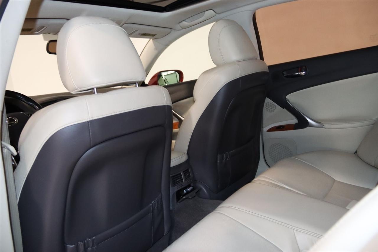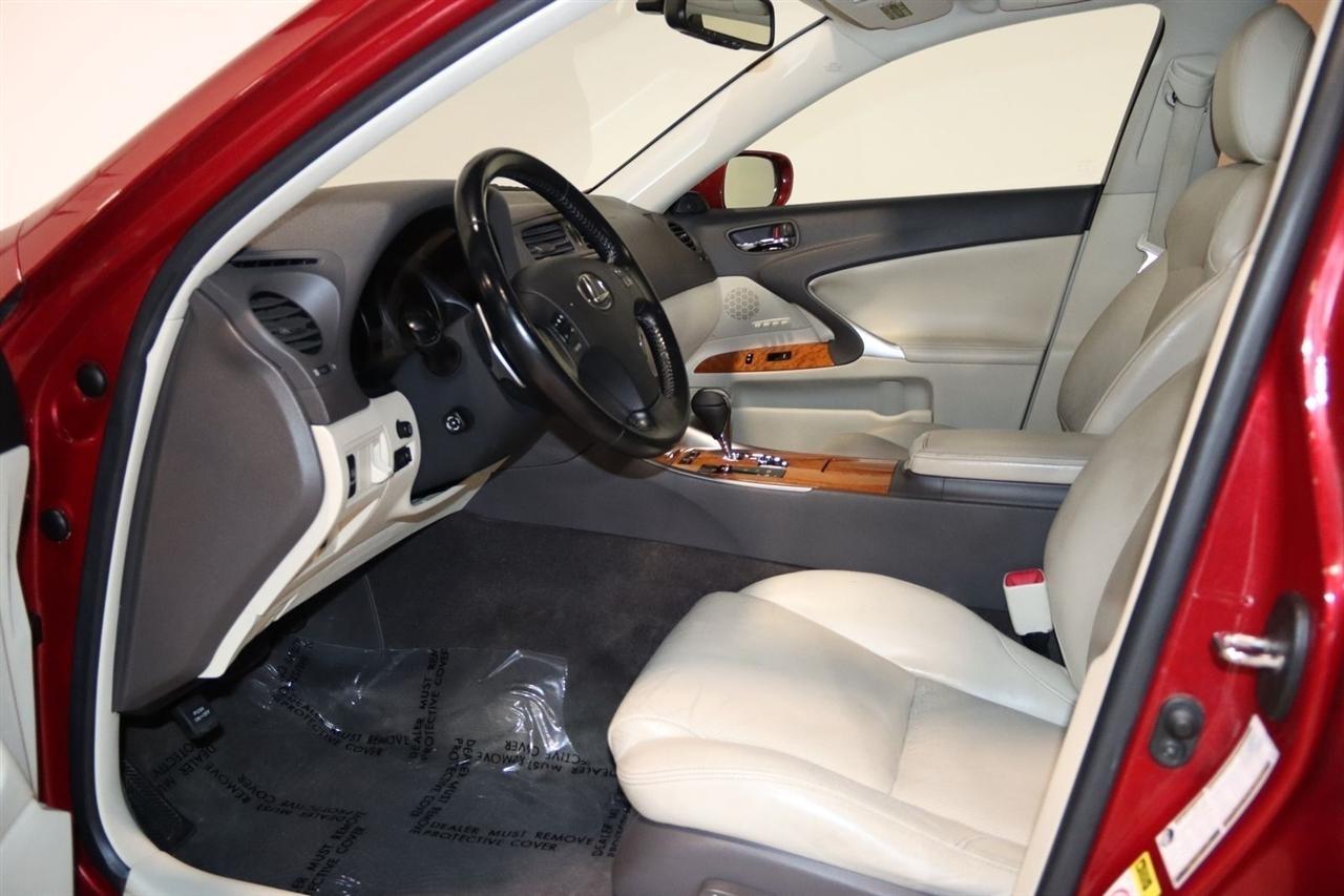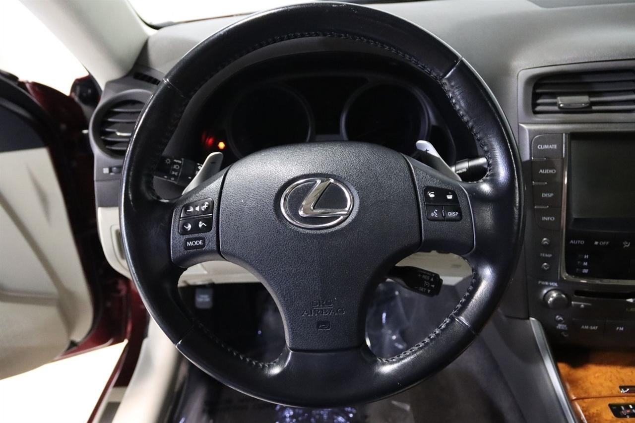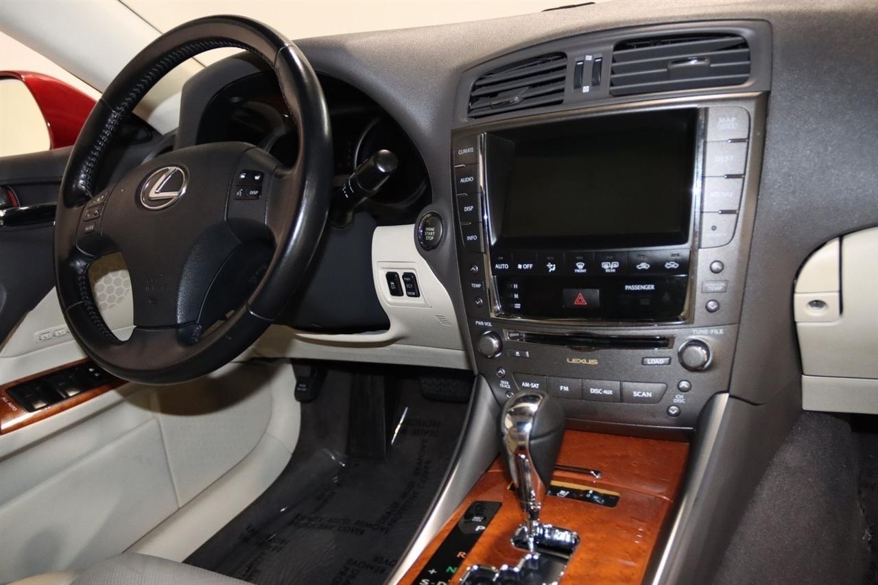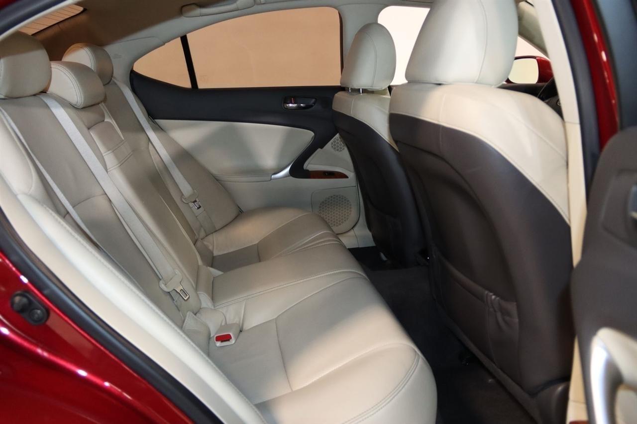 Bluetooth, Back Up Camera, Sun/Moon Roof, Touch Screen, 13 Speakers, 17 x 8 10-Spoke Aluminum Alloy Wheels, 4-Wheel Disc Brakes, ABS brakes, Air Conditioning, Alloy wheels, AM/FM radio, Auto-dimming Rear-View mirror, Automatic temperature control, Bird's Eye Maple Interior Trim, Brake assist, Bumpers: body-color, Cargo Net, CD player, Compass, Delay-off headlights, Driver door bin, Driver vanity mirror, Dual front impact airbags, Dual front side impact airbags, Electronic Stability Control, Four wheel independent suspension, Front anti-roll bar, Front Bucket Seats, Front Center Armrest, Front dual zone A/C, Front fog lights, Front reading lights, Fully automatic headlights, Garage door transmitter: HomeLink(R), Heated door mirrors, Heated Front Bucket Seats, Heated front seats, Illuminated entry, Knee airbag, Leather Seat Trim, Leather steering wheel, Lexus Premium Audio System, Low tire pressure warning, Mark Levinson Premium Audio Package, Navigation System, Navigation System w/Mark Levinson Premium Audio Package, Occupant sensing airbag, Outside temperature display, Overhead airbag, Overhead console, Panic alarm, Passenger door bin, Passenger vanity mirror, Perforated Leather Seat Trim, Power door mirrors, Power driver seat, Power moonroof, Power passenger seat, Power steering, Power windows, Preferred Accessory Package, Preferred Accessory Package w/Z1, Premium Package, Radio data system, Rear anti-roll bar, Rear Bumper Applique, Rear reading lights, Rear seat center armrest, Rear window defroster, Remote keyless entry, Security system, Speed control, Speed-sensing steering, Speed-Sensitive Wipers, Steering wheel mounted audio controls, Tachometer, Telescoping steering wheel, Tilt steering wheel, Traction control, Trip computer, Trunk Mat, Turn signal indicator mirrors, Variably intermittent wipers, Wheel Locks. 20/26 City/Highway MPG Odometer is 5110 miles below market average!2009 Matador Red Mica Lexus 4D Sedan IS 250 AWD 6-Speed Automatic Electronic with ECT-i 2.5L V6 DOHC 24V VVT-iVisit our website www.iumotors.com to view 100s of newer vehicles, more pictures and info, or to apply for financing. Rates are incredibly low for approved credit. We offer extended warranties, protection packages, and insurance. We assure you the best experience at any of our 4 locations and unbeatable prices and quality. At Unlimited Motors we believe in MARKET VALUE PRICING. We use real-time Internet price comparisons to constantly adjust prices to provide ALL BUYERS The BEST PRICE possible. We do not mark them up, to mark them down! Our entire team is committed to helping you buy a car the way we would want to buy a car! We utilize state-of-the-art technology to constantly monitor pricing trends to offer our shoppers the best competitive pricing, value, and experience. We sell and service all makes and models of Pre-owned / Used Vehicles Used Cars, Used Trucks, Used Sport Utility, Lamborghini, Ferrari, Bentley, Rolls Royce, McLaren, Maserati, Ford, Chevrolet/Chevy, Honda, Toyota, Porsche, Land Rover, Jaguar, INFINITI, Audi, Nissan, Mazda, Hyundai, Chrysler, Jeep, Dodge, Ram, SRT, Mitsubishi, Lexus, Kia, Volkswagen, Mini, BMW, Mercedes, Fiat, Volvo, GMC, Cadillac, Lincoln as well as other brands. Proudly serving these areas of Indianapolis, Fishers, Carmel, Noblesville, Greenwood, Avon, Plainfield, Zionsville, & Brownsburg, Indiana, Midwest. We also serve the entire nation with our seamless and easy online purchasing process, and offer shipping nationwide.Advertised prices DO NOT include Sales Tax, Dealer Fees, Title Processing Charges, and Dealer Pre-installed Products.