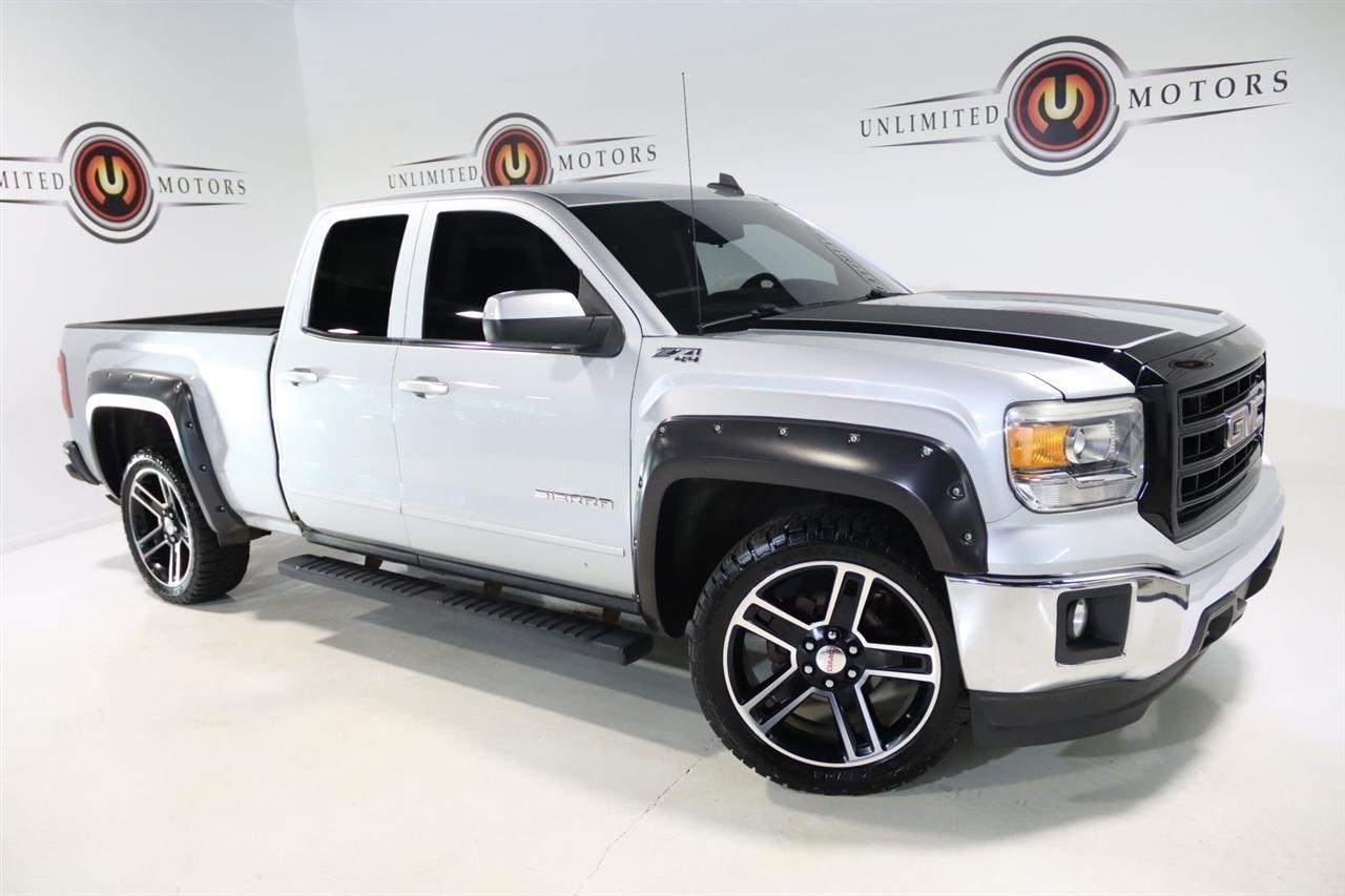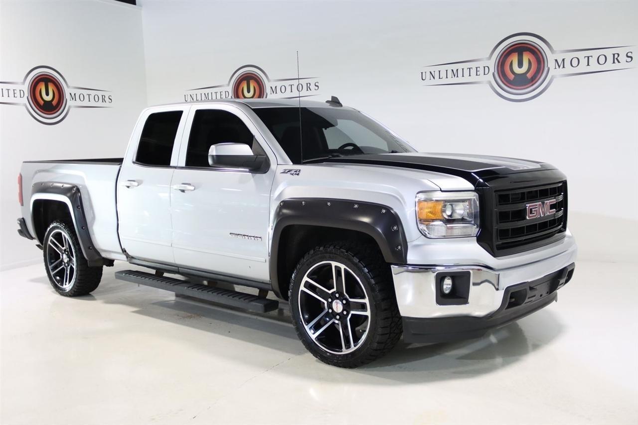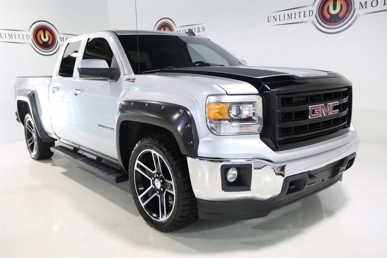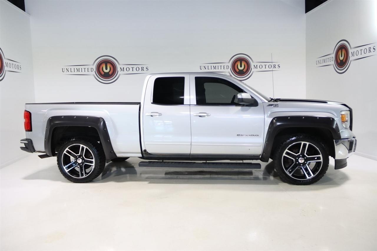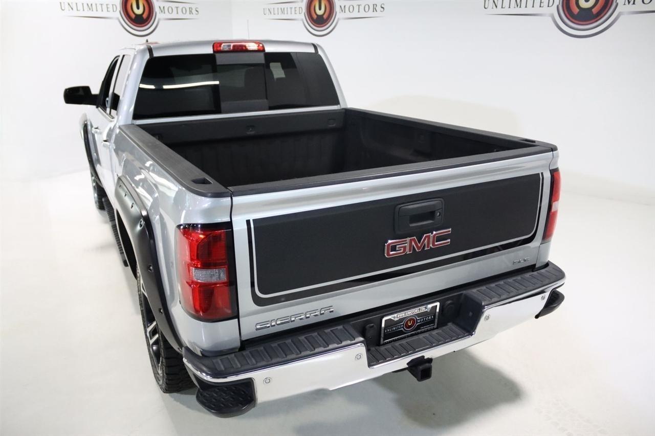 Bluetooth, Back Up Camera, Towing, Touch Screen, 10-Way Power Driver's Seat Adjuster, 110-Volt AC Power Outlet, 150 Amp Alternator, 3.42 Rear Axle Ratio, 4-Wheel Disc Brakes, 4.2 Diagonal Color Display Driver Info Center, 4 Round Black Tubular Assist Steps (LPO), 40/20/40 Front Split Bench Seat, 6 Speakers, ABS brakes, Air Conditioning, Alloy wheels, AM/FM radio: SiriusXM, Auxiliary External Transmission Oil Cooler, Body Color Bodyside Moldings, Body Color Door Handles, Body Color Power-Adjustable Heated Outside Mirrors, Body-Color Mirror Caps, Bodyside moldings, Brake assist, Bumpers: chrome, Carbon Fiber Appearance Decals, Carbon-22 Edition, CD player, Chrome Front Bumper, Chrome Grille Surround, Chrome Rear Bumper, Cloth Seat Trim, Color-Keyed Carpeting w/Rubberized Vinyl Floor Mats, Compass, Deep-Tinted Glass, Delay-off headlights, Driver & Front Passenger Illuminated Vanity Mirrors, Driver door bin, Driver vanity mirror, Dual front impact airbags, Dual front side impact airbags, Dual-Zone Automatic Climate Control, Electric Rear-Window Defogger, Electronic Autotrac Transfer Case, Electronic Stability Control, Emergency communication system: OnStar Directions & Connections, Exterior Parking Camera Rear, EZ Lift & Lower Tailgate, Front anti-roll bar, Front Center Armrest w/Storage, Front Frame-Mounted Black Recovery Hooks, Front Halogen Fog Lamps, Front License Plate Kit, Front reading lights, Front wheel independent suspension, Fully automatic headlights, Heated door mirrors, Heavy Duty Suspension, Heavy-Duty Rear Locking Differential, Hill Descent Control, Illuminated entry, Leather Wrapped Steering Wheel w/Cruise Controls, LED Cargo Box Lighting, Low tire pressure warning, Manual Tilt Wheel Steering Column, Manual Tilt/Telescoping Steering Column, Occupant sensing airbag, Off-Road Suspension Package, OnStar 6 Months Directions & Connections Plan, OnStar w/4G LTE, Outside temperature display, Overhead airbag, Overhead console, Painted Black Grille Surround, Panic alarm, Passenger door bin, Passenger vanity mirror, Power Adjustable Pedals, Power door mirrors, Power Sliding Rear Window w/Defogger, Power steering, Power windows, Power Windows w/Driver Express Up & Down, Preferred Equipment Group 3SA, Premium audio system: IntelliLink, Radio data system, Radio: AM/FM Stereo w/8 Diagonal Color Touch Screen, Rear 60/40 Folding Bench Seat (Folds Up), Rear Bumper Cornersteps, Rear reading lights, Rear seat center armrest, Rear step bumper, Rear Vision Camera w/Dynamic Guide Lines, Rear Wheelhouse Liners, Remote Keyless Entry, Remote keyless entry, Remote Vehicle Starter System, Sierra Body Color Accented Grille (LPO), Single Slot CD/MP3 Player, Single-Zone Air Conditioning, SiriusXM Satellite Radio, SLE Convenience Package, Speed control, Speed-sensing steering, Split folding rear seat, Steering Wheel Audio Controls, Steering wheel mounted audio controls, Tachometer, Theft Deterrent System (Unauthorized Entry), Tilt steering wheel, Traction control, Trailering Equipment, Trip computer, Ultrasonic Rear Park Assist, Universal Home Remote, Variably intermittent wipers, Voltmeter, Wheels: 22 5-Spoke Silver (LPO). Clean CARFAX. Odometer is 27888 miles below market average! Priced below KBB Fair Purchase Price!2015 Quicksilver Metallic GMC Double Cab Sierra 1500 SLE 4WD 6-Speed Automatic Electronic with Overdrive EcoTec3 5.3L V8Awards: * JD Power Automotive Performance, Execution and Layout (APEAL) Study * 2015 KBB.com Brand Image AwardsVisit our website www.iumotors.com to view 100s of newer vehicles, more pictures and info, or to apply for financing. Rates are incredibly low for approved credit. We offer extended warranties, protection packages, and insurance. We assure you the best experience at any of our 4 locations and unbeatable prices and quality. At Unlimited Motors we believe in MARKET VALUE PRICING. We use real-time Internet price comparisons to constantly adjust prices to provide AL
