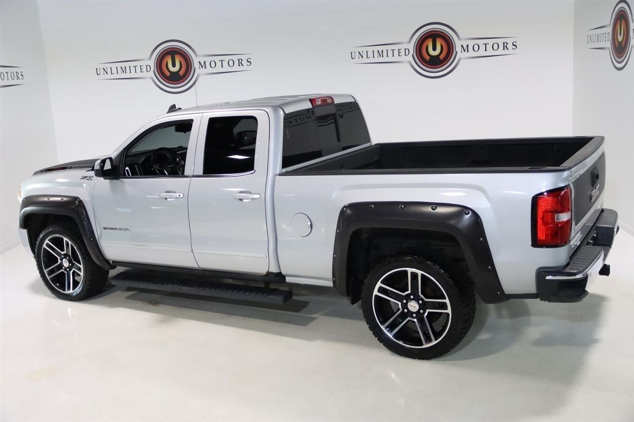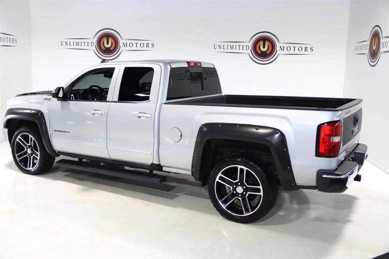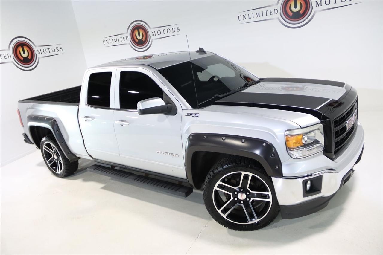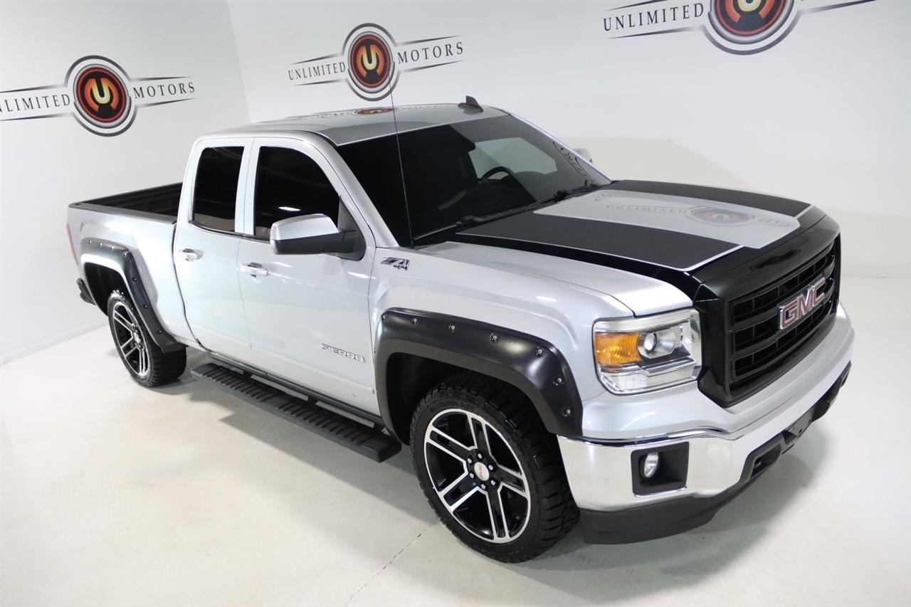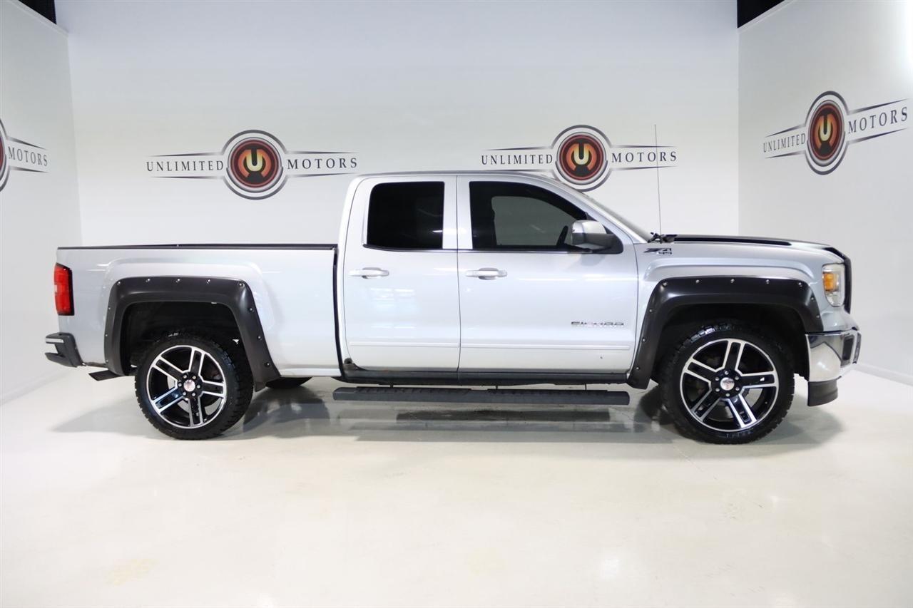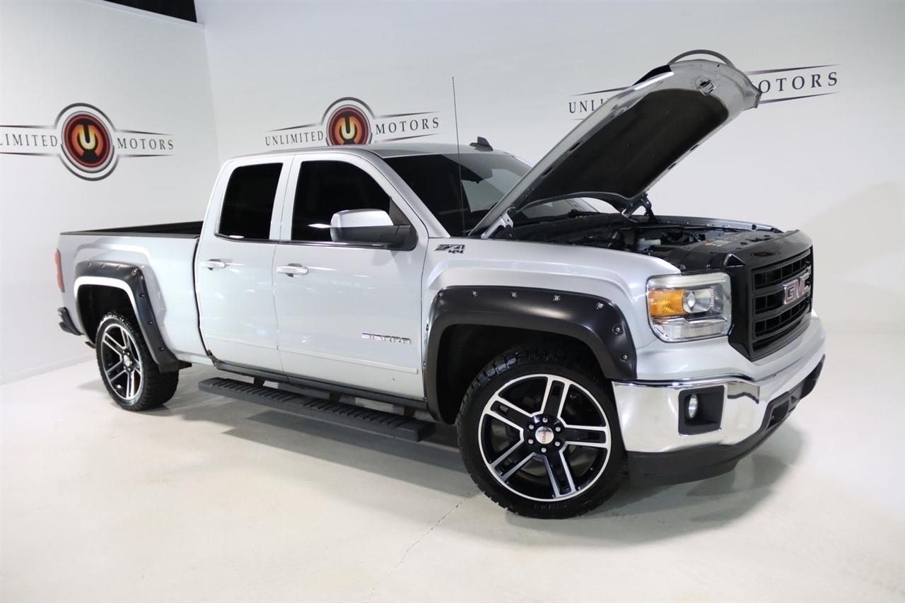 Bluetooth, Back Up Camera, Towing, Touch Screen, 10-Way Power Driver's Seat Adjuster, 110-Volt AC Power Outlet, 150 Amp Alternator, 3.42 Rear Axle Ratio, 4-Wheel Disc Brakes, 4.2 Diagonal Color Display Driver Info Center, 4 Round Black Tubular Assist Steps (LPO), 40/20/40 Front Split Bench Seat, 6 Speakers, ABS brakes, Air Conditioning, Alloy wheels, AM/FM radio: SiriusXM, Auxiliary External Transmission Oil Cooler, Body Color Bodyside Moldings, Body Color Door Handles, Body Color Power-Adjustable Heated Outside Mirrors, Body-Color Mirror Caps, Bodyside moldings, Brake assist, Bumpers: chrome, Carbon Fiber Appearance Decals, Carbon-22 Edition, CD player, Chrome Front Bumper, Chrome Grille Surround, Chrome Rear Bumper, Cloth Seat Trim, Color-Keyed Carpeting w/Rubberized Vinyl Floor Mats, Compass, Deep-Tinted Glass, Delay-off headlights, Driver & Front Passenger Illuminated Vanity Mirrors, Driver door bin, Driver vanity mirror, Dual front impact airbags, Dual front side impact airbags, Dual-Zone Automatic Climate Control, Electric Rear-Window Defogger, Electronic Autotrac Transfer Case, Electronic Stability Control, Emergency communication system: OnStar Directions & Connections, Exterior Parking Camera Rear, EZ Lift & Lower Tailgate, Front anti-roll bar, Front Center Armrest w/Storage, Front Frame-Mounted Black Recovery Hooks, Front Halogen Fog Lamps, Front License Plate Kit, Front reading lights, Front wheel independent suspension, Fully automatic headlights, Heated door mirrors, Heavy Duty Suspension, Heavy-Duty Rear Locking Differential, Hill Descent Control, Illuminated entry, Leather Wrapped Steering Wheel w/Cruise Controls, LED Cargo Box Lighting, Low tire pressure warning, Manual Tilt Wheel Steering Column, Manual Tilt/Telescoping Steering Column, Occupant sensing airbag, Off-Road Suspension Package, OnStar 6 Months Directions & Connections Plan, OnStar w/4G LTE, Outside temperature display, Overhead airbag, Overhead console, Painted Black Grille Surround, Panic alarm, Passenger door bin, Passenger vanity mirror, Power Adjustable Pedals, Power door mirrors, Power Sliding Rear Window w/Defogger, Power steering, Power windows, Power Windows w/Driver Express Up & Down, Preferred Equipment Group 3SA, Premium audio system: IntelliLink, Radio data system, Radio: AM/FM Stereo w/8 Diagonal Color Touch Screen, Rear 60/40 Folding Bench Seat (Folds Up), Rear Bumper Cornersteps, Rear reading lights, Rear seat center armrest, Rear step bumper, Rear Vision Camera w/Dynamic Guide Lines, Rear Wheelhouse Liners, Remote Keyless Entry, Remote keyless entry, Remote Vehicle Starter System, Sierra Body Color Accented Grille (LPO), Single Slot CD/MP3 Player, Single-Zone Air Conditioning, SiriusXM Satellite Radio, SLE Convenience Package, Speed control, Speed-sensing steering, Split folding rear seat, Steering Wheel Audio Controls, Steering wheel mounted audio controls, Tachometer, Theft Deterrent System (Unauthorized Entry), Tilt steering wheel, Traction control, Trailering Equipment, Trip computer, Ultrasonic Rear Park Assist, Universal Home Remote, Variably intermittent wipers, Voltmeter, Wheels: 22 5-Spoke Silver (LPO). Clean CARFAX. Odometer is 27888 miles below market average! Priced below KBB Fair Purchase Price!2015 Quicksilver Metallic GMC Double Cab Sierra 1500 SLE 4WD 6-Speed Automatic Electronic with Overdrive EcoTec3 5.3L V8Awards: * JD Power Automotive Performance, Execution and Layout (APEAL) Study * 2015 KBB.com Brand Image AwardsVisit our website www.iumotors.com to view 100s of newer vehicles, more pictures and info, or to apply for financing. Rates are incredibly low for approved credit. We offer extended warranties, protection packages, and insurance. We assure you the best experience at any of our 4 locations and unbeatable prices and quality. At Unlimited Motors we believe in MARKET VALUE PRICING. We use real-time Internet price comparisons to constantly adjust prices to provide AL