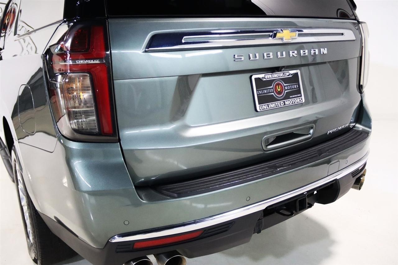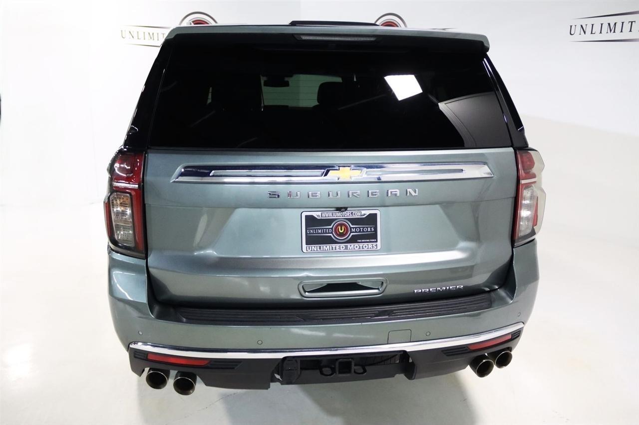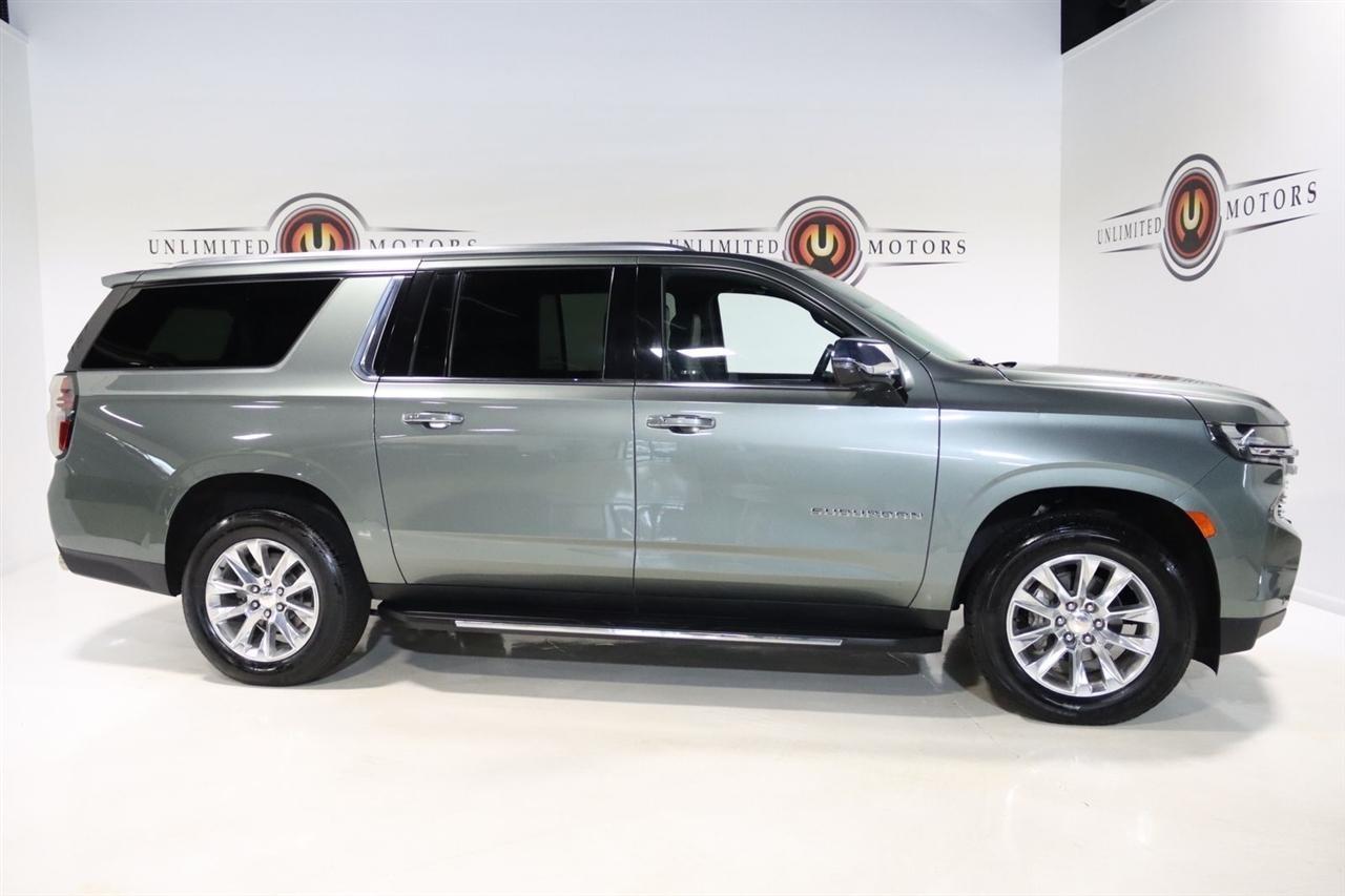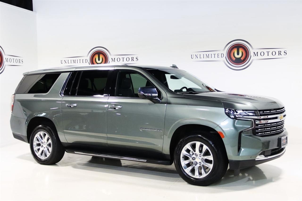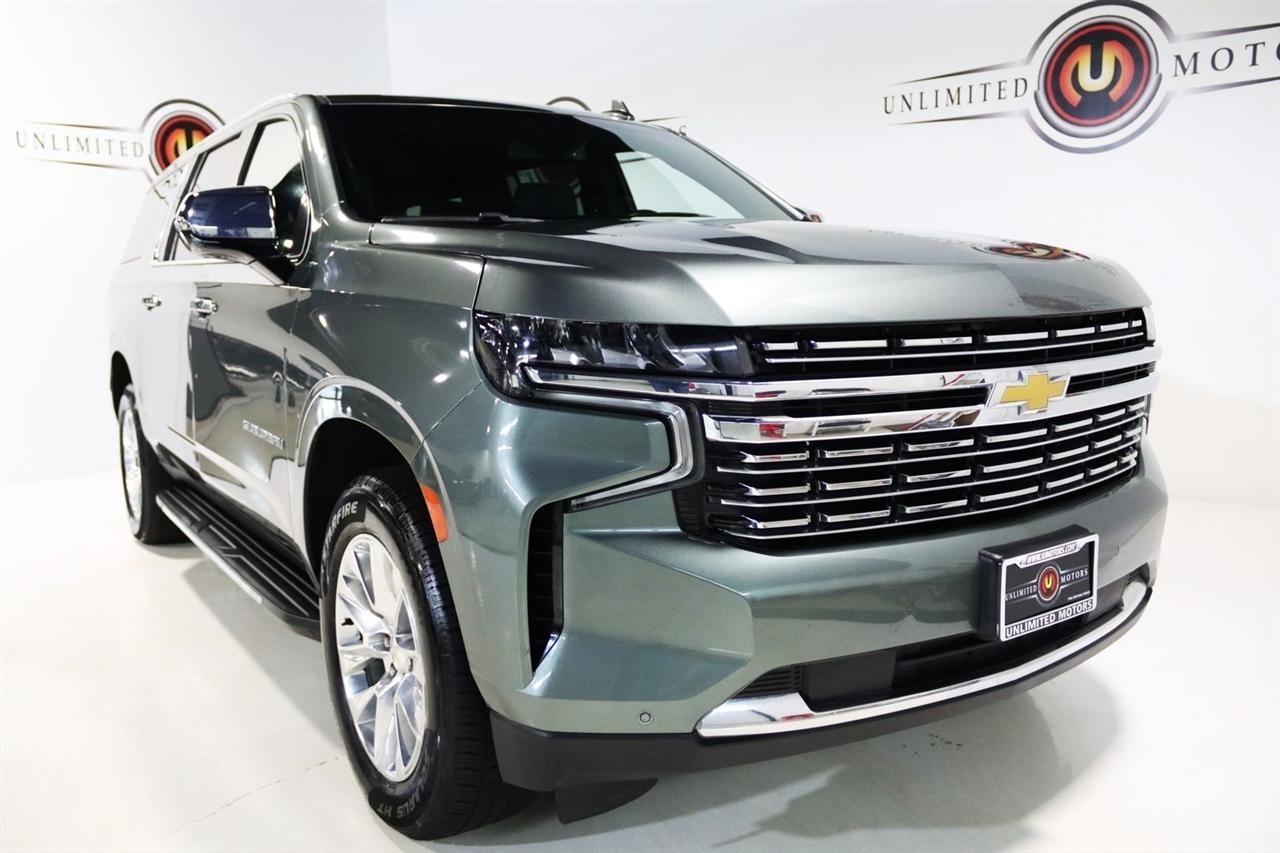 Navigation, Bluetooth, Back Up Camera, 3rd Row, Heated Seats, Touch Screen, 10 Speakers, 1st & 2nd Row Color-Keyed Carpeted Floor Mats, 2-Speed Active Electronic AutoTrac Transfer Case, 20 x 9 Polished Aluminum Wheels, 3.23 Rear Axle Ratio, 3rd Row 60/40 Power-Folding Split-Bench, 3rd row seats: split-bench, 4-Wheel Disc Brakes, ABS brakes, Adaptive suspension, Air Conditioning, Alloy wheels, AM/FM radio: SiriusXM with 360L, Apple CarPlay/Android Auto, Auto High-beam Headlights, Auto-dimming door mirrors, Auto-Dimming Inside Rear-View Mirror, Auto-dimming Rear-View mirror, Auto-leveling suspension, Automatic temperature control, Bose 10-Speaker Surround w/CenterPoint, Brake assist, Bright Front & Rear Door Sill Plates, Bumpers: body-color, Chrome Door Handles w/Body-Color Strip, Chrome Mirror Caps, Color-Keyed Carpeting Floor Covering, Compass, Delay-off headlights, Deleted 3 Years of Remote Access, Driver & Front Outboard Passenger Airbags, Driver door bin, Driver vanity mirror, Dual Exhaust System, Dual front impact airbags, Dual front side impact airbags, Electronic Stability Control, Emergency communication system: OnStar and Chevrolet connected services capable, Enhanced Driver Information Center, Floor Console, Four wheel independent suspension, Front anti-roll bar, Front Bucket Seats, Front Center Armrest, Front dual zone A/C, Front reading lights, Fully automatic headlights, Garage door transmitter, Hands-Free Rear Power Programmable Liftgate, Heated & Ventilated Driver & Front Passenger Seats, Heated 2nd Row Outboard Seats, Heated door mirrors, Heated Driver & Front Passenger Seats, Heated front seats, Heated rear seats, Heated Steering Wheel, Heated steering wheel, Hill Descent Control, Illuminated entry, Infotainment Display, Lane Change Alert w/Side Blind Zone Alert, LED Daytime Running Lamps, License Plate Front Mounting Package, Low tire pressure warning, Magnetic Ride Control Suspension, Memory seat, Memory Settings, Navigation System, Occupant sensing airbag, Outside Heated Power-Adjustable Mirrors, Outside temperature display, Overhead airbag, Overhead console, Panic alarm, Passenger door bin, Passenger vanity mirror, Perforated Leather Seating Surfaces, Power door mirrors, Power driver seat, Power Liftgate, Power passenger seat, Power Release 2nd Row Bucket Seats, Power steering, Power Tilt & Telescopic Steering Column, Power windows, Preferred Equipment Group 1LZ, Premium audio system: Chevrolet Infotainment 3 Premium, Radio: Chevrolet Infotainment 3 Premium System, Rain sensing wipers, Rear air conditioning, Rear anti-roll bar, Rear Cross Traffic Alert, Rear reading lights, Rear window defroster, Rear window wiper, Remote keyless entry, Remote Start, Roof rack: rails only, Safety Alert Seat, Security system, SiriusXM Radio w/360L, Speed control, Speed-sensing steering, Split folding rear seat, Spoiler, Steering wheel memory, Steering wheel mounted audio controls, Tachometer, Telescoping steering wheel, Tilt steering wheel, Traction control, Trip computer, Turn signal indicator mirrors, Universal Home Remote, Variably intermittent wipers, Ventilated front seats, Voltmeter, Wireless Charging, Wrapped Steering Wheel. CARFAX One-Owner. Clean CARFAX.2023 Silver Sage Metallic Chevrolet 4D Sport Utility Suburban Premier 4WD 10-Speed Automatic with Overdrive EcoTec3 5.3L V8Visit our website www.iumotors.com to view 100s of newer vehicles, more pictures and info, or to apply for financing. Rates are incredibly low for approved credit. We offer extended warranties, protection packages, and insurance. We assure you the best experience at any of our 4 locations and unbeatable prices and quality. At Unlimited Motors we believe in MARKET VALUE PRICING. We use real-time Internet price comparisons to constantly adjust prices to provide ALL BUYERS The BEST PRICE possible. We do not mark them up, to mark them down! Our entire team is committed to helping you buy a car the way we would want to buy