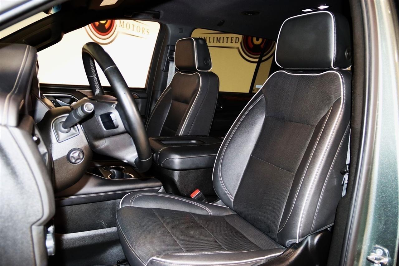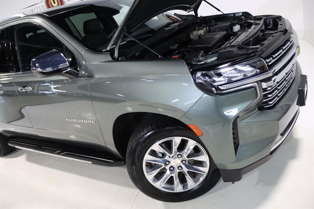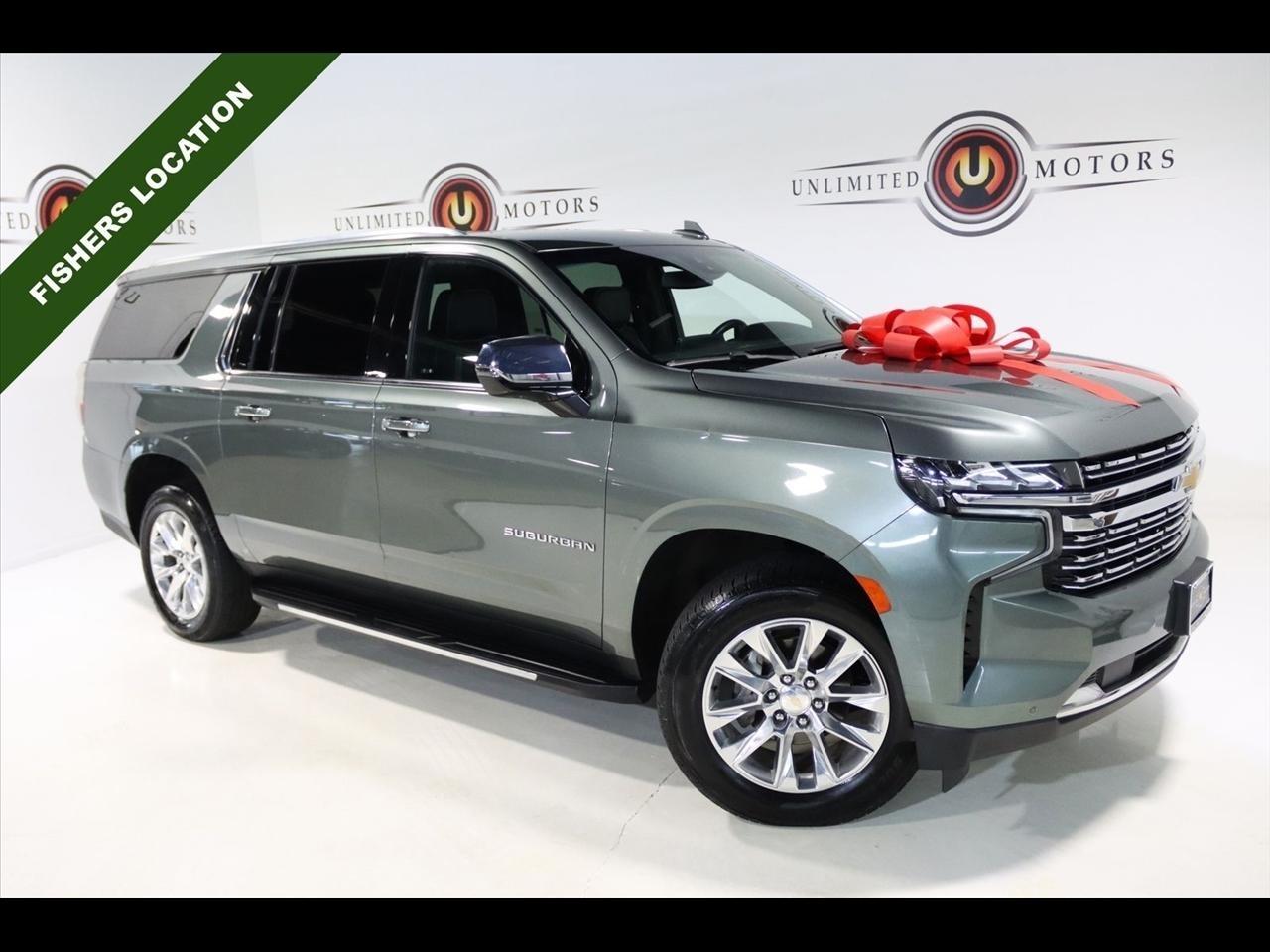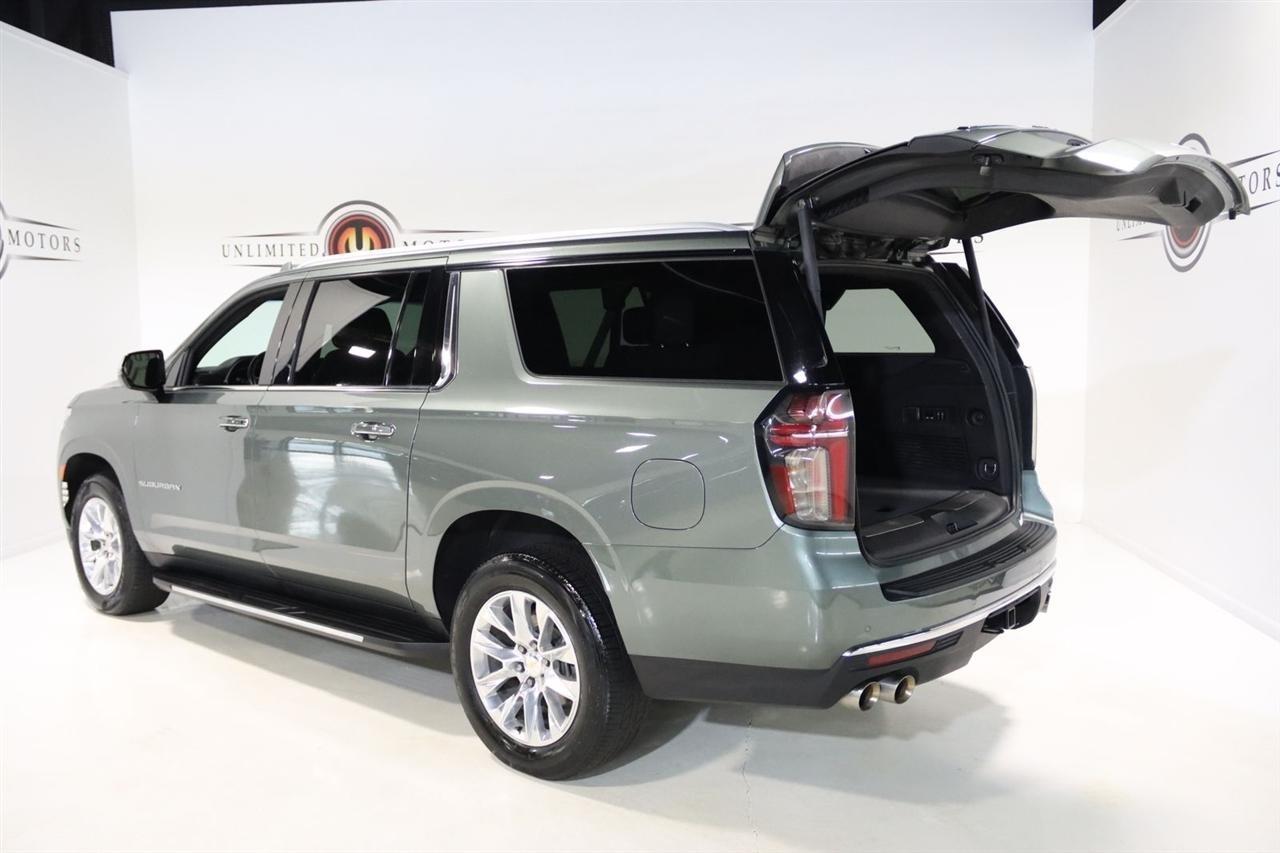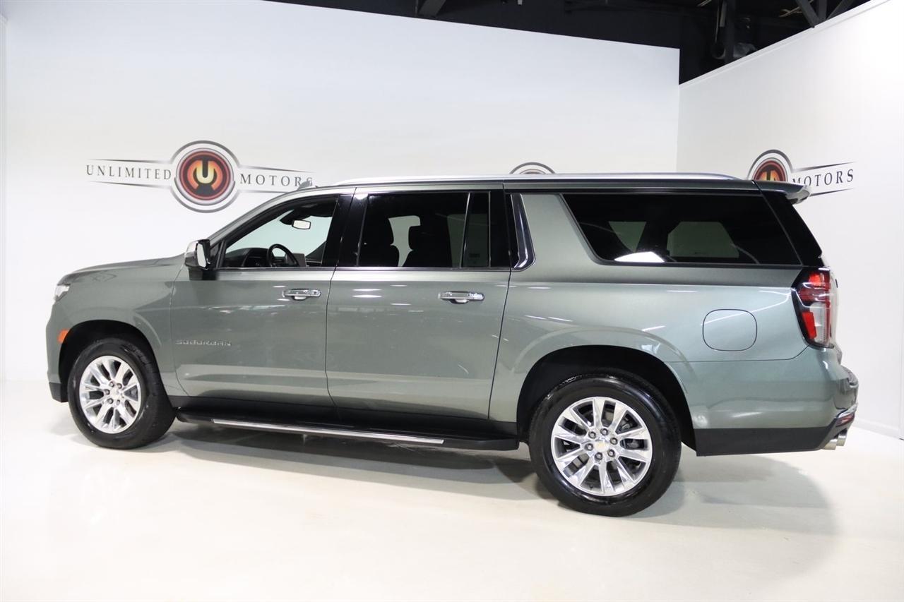 Navigation, Bluetooth, Back Up Camera, 3rd Row, Heated Seats, Touch Screen, 10 Speakers, 1st & 2nd Row Color-Keyed Carpeted Floor Mats, 2-Speed Active Electronic AutoTrac Transfer Case, 20 x 9 Polished Aluminum Wheels, 3.23 Rear Axle Ratio, 3rd Row 60/40 Power-Folding Split-Bench, 3rd row seats: split-bench, 4-Wheel Disc Brakes, ABS brakes, Adaptive suspension, Air Conditioning, Alloy wheels, AM/FM radio: SiriusXM with 360L, Apple CarPlay/Android Auto, Auto High-beam Headlights, Auto-dimming door mirrors, Auto-Dimming Inside Rear-View Mirror, Auto-dimming Rear-View mirror, Auto-leveling suspension, Automatic temperature control, Bose 10-Speaker Surround w/CenterPoint, Brake assist, Bright Front & Rear Door Sill Plates, Bumpers: body-color, Chrome Door Handles w/Body-Color Strip, Chrome Mirror Caps, Color-Keyed Carpeting Floor Covering, Compass, Delay-off headlights, Deleted 3 Years of Remote Access, Driver & Front Outboard Passenger Airbags, Driver door bin, Driver vanity mirror, Dual Exhaust System, Dual front impact airbags, Dual front side impact airbags, Electronic Stability Control, Emergency communication system: OnStar and Chevrolet connected services capable, Enhanced Driver Information Center, Floor Console, Four wheel independent suspension, Front anti-roll bar, Front Bucket Seats, Front Center Armrest, Front dual zone A/C, Front reading lights, Fully automatic headlights, Garage door transmitter, Hands-Free Rear Power Programmable Liftgate, Heated & Ventilated Driver & Front Passenger Seats, Heated 2nd Row Outboard Seats, Heated door mirrors, Heated Driver & Front Passenger Seats, Heated front seats, Heated rear seats, Heated Steering Wheel, Heated steering wheel, Hill Descent Control, Illuminated entry, Infotainment Display, Lane Change Alert w/Side Blind Zone Alert, LED Daytime Running Lamps, License Plate Front Mounting Package, Low tire pressure warning, Magnetic Ride Control Suspension, Memory seat, Memory Settings, Navigation System, Occupant sensing airbag, Outside Heated Power-Adjustable Mirrors, Outside temperature display, Overhead airbag, Overhead console, Panic alarm, Passenger door bin, Passenger vanity mirror, Perforated Leather Seating Surfaces, Power door mirrors, Power driver seat, Power Liftgate, Power passenger seat, Power Release 2nd Row Bucket Seats, Power steering, Power Tilt & Telescopic Steering Column, Power windows, Preferred Equipment Group 1LZ, Premium audio system: Chevrolet Infotainment 3 Premium, Radio: Chevrolet Infotainment 3 Premium System, Rain sensing wipers, Rear air conditioning, Rear anti-roll bar, Rear Cross Traffic Alert, Rear reading lights, Rear window defroster, Rear window wiper, Remote keyless entry, Remote Start, Roof rack: rails only, Safety Alert Seat, Security system, SiriusXM Radio w/360L, Speed control, Speed-sensing steering, Split folding rear seat, Spoiler, Steering wheel memory, Steering wheel mounted audio controls, Tachometer, Telescoping steering wheel, Tilt steering wheel, Traction control, Trip computer, Turn signal indicator mirrors, Universal Home Remote, Variably intermittent wipers, Ventilated front seats, Voltmeter, Wireless Charging, Wrapped Steering Wheel. CARFAX One-Owner. Clean CARFAX.2023 Silver Sage Metallic Chevrolet 4D Sport Utility Suburban Premier 4WD 10-Speed Automatic with Overdrive EcoTec3 5.3L V8Visit our website www.iumotors.com to view 100s of newer vehicles, more pictures and info, or to apply for financing. Rates are incredibly low for approved credit. We offer extended warranties, protection packages, and insurance. We assure you the best experience at any of our 4 locations and unbeatable prices and quality. At Unlimited Motors we believe in MARKET VALUE PRICING. We use real-time Internet price comparisons to constantly adjust prices to provide ALL BUYERS The BEST PRICE possible. We do not mark them up, to mark them down! Our entire team is committed to helping you buy a car the way we would want to buy
