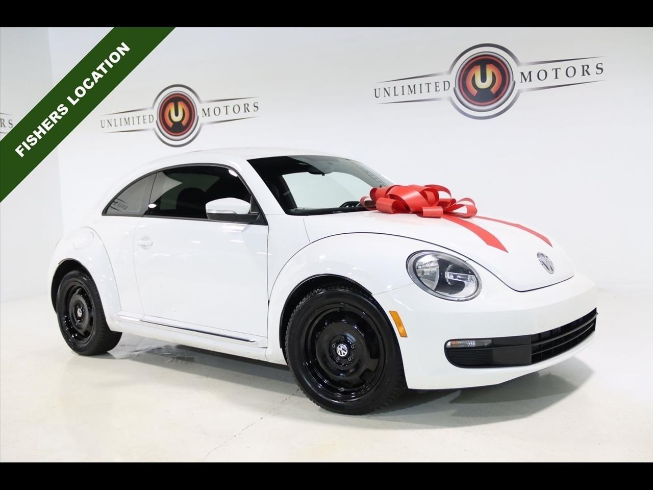 Touch Screen, 4-Wheel Disc Brakes, ABS brakes, Air Conditioning, Alloy wheels, Bodyside moldings, Brake assist, Bumpers: body-color, CD player, Driver door bin, Driver vanity mirror, Dual front impact airbags, Dual front side impact airbags, Electronic Stability Control, Front anti-roll bar, Front Bucket Seats, Front reading lights, Front wheel independent suspension, Heatable Front Bucket Seats, Heated door mirrors, Heated front seats, Illuminated entry, Leather steering wheel, Low tire pressure warning, Occupant sensing airbag, Outside temperature display, Overhead console, Panic alarm, Passenger door bin, Passenger vanity mirror, Power door mirrors, Power steering, Power windows, Radio data system, Rear anti-roll bar, Rear reading lights, Rear window defroster, Remote keyless entry, Security system, Speed control, Split folding rear seat, Tachometer, Telescoping steering wheel, Tilt steering wheel, Traction control, Trip computer, Turn signal indicator mirrors, V-Tex Leatherette Seating Surfaces, Variably intermittent wipers. 22/29 City/Highway MPG2012 Candy White Volkswagen 2D Hatchback Beetle 2.5L FWD 6-Speed Automatic 2.5L 170 hpVisit our website www.iumotors.com to view 100s of newer vehicles, more pictures and info, or to apply for financing. Rates are incredibly low for approved credit. We offer extended warranties, protection packages, and insurance. We assure you the best experience at any of our 4 locations and unbeatable prices and quality. At Unlimited Motors we believe in MARKET VALUE PRICING. We use real-time Internet price comparisons to constantly adjust prices to provide ALL BUYERS The BEST PRICE possible. We do not mark them up, to mark them down! Our entire team is committed to helping you buy a car the way we would want to buy a car! We utilize state-of-the-art technology to constantly monitor pricing trends to offer our shoppers the best competitive pricing, value, and experience. We sell and service all makes and models of Pre-owned / Used Vehicles Used Cars, Used Trucks, Used Sport Utility, Lamborghini, Ferrari, Bentley, Rolls Royce, McLaren, Maserati, Ford, Chevrolet/Chevy, Honda, Toyota, Porsche, Land Rover, Jaguar, INFINITI, Audi, Nissan, Mazda, Hyundai, Chrysler, Jeep, Dodge, Ram, SRT, Mitsubishi, Lexus, Kia, Volkswagen, Mini, BMW, Mercedes, Fiat, Volvo, GMC, Cadillac, Lincoln as well as other brands. Proudly serving these areas of Indianapolis, Fishers, Carmel, Noblesville, Greenwood, Avon, Plainfield, Zionsville, & Brownsburg, Indiana, Midwest. We also serve the entire nation with our seamless and easy online purchasing process, and offer shipping nationwide.Advertised prices DO NOT include Sales Tax, Dealer Fees, Title Processing Charges, and Dealer Pre-installed Products.