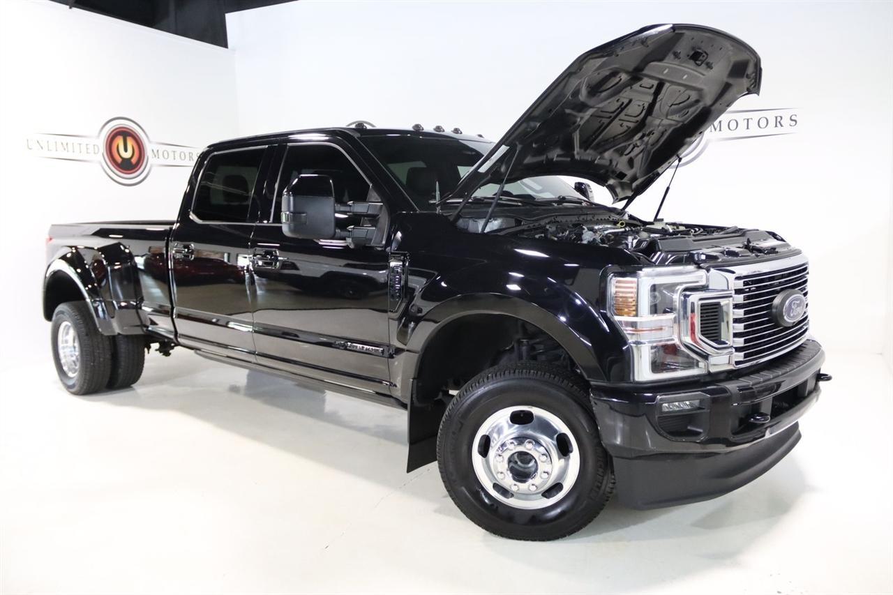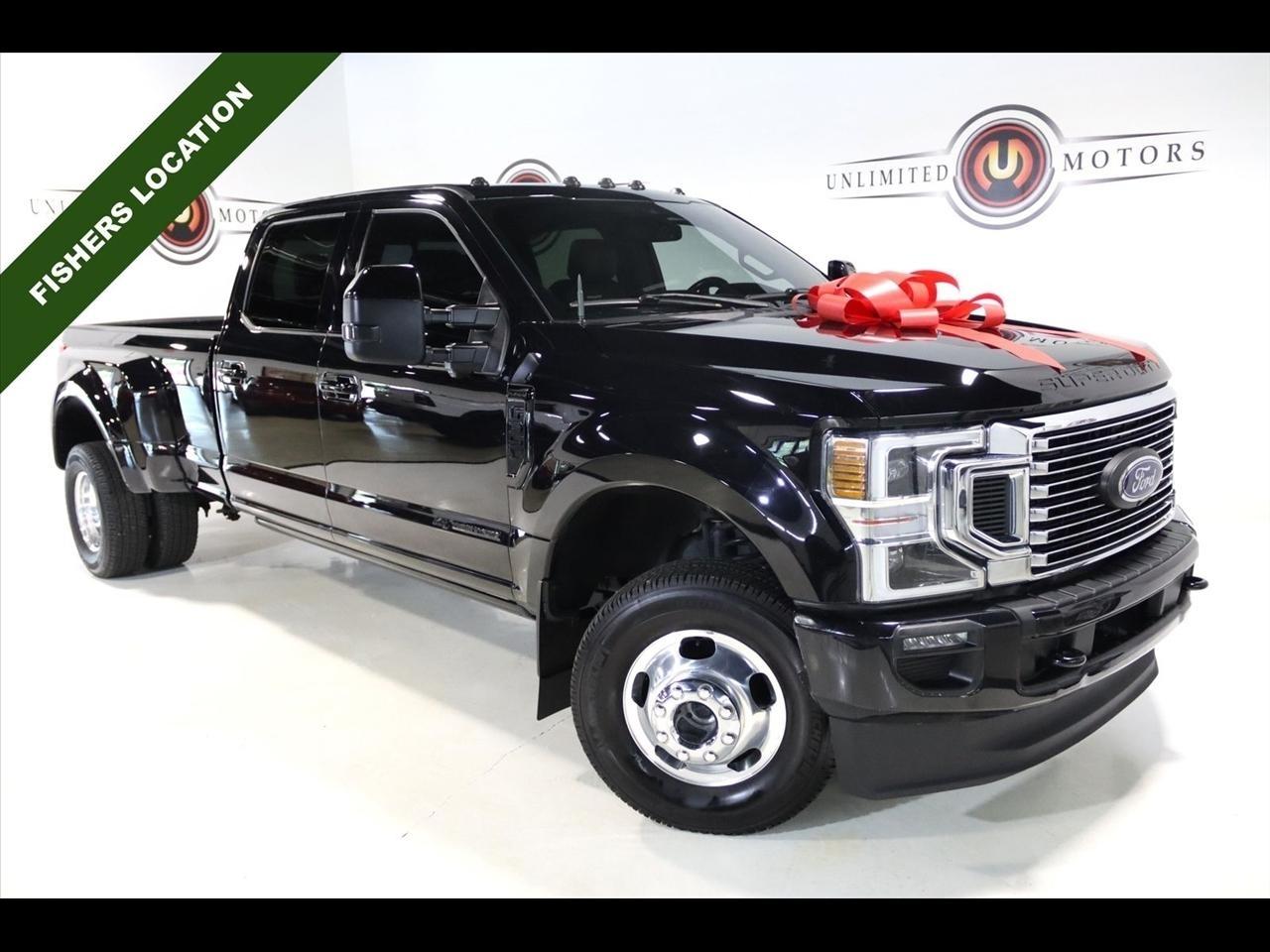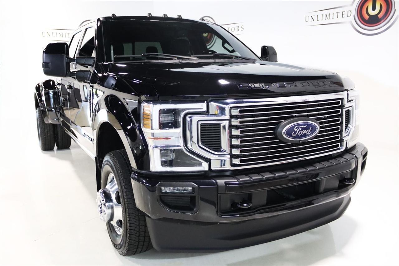 Navigation, Bluetooth, Back Up Camera, Panoramic Roof, Towing, Touch Screen, 10 Speakers, 17 Forged Polished Aluminum Wheels, 397 Amp Alternator, 4-Wheel Disc Brakes, 5th Wheel/Gooseneck Hitch Prep Package, ABS brakes, Adjustable pedals, Advanced Security Pack Inclination Sensor Removal, Air Conditioning, Alloy wheels, AM/FM radio: SiriusXM with 360L, Auto High-beam Headlights, Auto tilt-away steering wheel, Auto-dimming Rear-View mirror, Automatic temperature control, Bed Step, Brake assist, Bumpers: body-color, Compass, Delay-off headlights, Driver door bin, Driver vanity mirror, Dual front impact airbags, Dual front side impact airbags, Dual rear wheels, Electronic Stability Control, Emergency communication system: SYNC 4 911 Assist, Engine Block Heater, Exterior Parking Camera Rear, Flow-Through Console, Front anti-roll bar, Front Bucket Seats, Front Center Armrest, Front dual zone A/C, Front fog lights, Front reading lights, Fully automatic headlights, FX4 Off-Road Package, Garage door transmitter, Gooseneck Hitch Kit (Pre-Installed), GVWR: 14,000 lb Payload Package, Heated door mirrors, Heated front seats, Heated rear seats, Heated steering wheel, Heavy-Service Front Suspension Package, Hill Descent Control, Illuminated entry, Leather steering wheel, Limited Slip w/3.55 Axle Ratio, Low tire pressure warning, Memory seat, Navigation system: Connected Navigation, Off-Road Specifically Tuned Shock Absorbers, Order Code 723A, Outside temperature display, Overhead airbag, Overhead console, Panic alarm, Passenger door bin, Passenger vanity mirror, Pedal memory, Power door mirrors, Power driver seat, Power passenger seat, Power steering, Power windows, Radio data system, Radio: B&O Sound System by Bang & Olufsen, Rain sensing wipers, Rapid-Heat Supplemental Cab Heater, Rear anti-roll bar, Rear Parking Sensors, Rear reading lights, Rear seat center armrest, Rear step bumper, Rear window defroster, Remote keyless entry, Security system, SiriusXM Radio w/360L, Speed control, Speed-sensing steering, Split folding rear seat, Steering wheel memory, Steering wheel mounted A/C controls, Steering wheel mounted audio controls, Stowable Loading Ramps (Pre-Installed), SYNC 4 w/Enhanced Voice Recognition, Tachometer, Telescoping steering wheel, Tilt steering wheel, Traction control, Trip computer, Turn signal indicator mirrors, Twin Panel Power Moonroof, Unique FX4 Off-Road Box Decal, Unique Platinum Leather 40/Console/40 Seats, Upfitter Switches (6), Variably intermittent wipers, Ventilated front seats. CARFAX One-Owner.2022 Black Metallic Ford 4D Crew Cab F-350SD Platinum 4WD 10-Speed Automatic Power Stroke 6.7L V8 DI 32V OHV TurbodieselVisit our website www.iumotors.com to view 100s of newer vehicles, more pictures and info, or to apply for financing. Rates are incredibly low for approved credit. We offer extended warranties, protection packages, and insurance. We assure you the best experience at any of our 4 locations and unbeatable prices and quality. At Unlimited Motors we believe in MARKET VALUE PRICING. We use real-time Internet price comparisons to constantly adjust prices to provide ALL BUYERS The BEST PRICE possible. We do not mark them up, to mark them down! Our entire team is committed to helping you buy a car the way we would want to buy a car! We utilize state-of-the-art technology to constantly monitor pricing trends to offer our shoppers the best competitive pricing, value, and experience. We sell and service all makes and models of Pre-owned / Used Vehicles Used Cars, Used Trucks, Used Sport Utility, Lamborghini, Ferrari, Bentley, Rolls Royce, McLaren, Maserati, Ford, Chevrolet/Chevy, Honda, Toyota, Porsche, Land Rover, Jaguar, INFINITI, Audi, Nissan, Mazda, Hyundai, Chrysler, Jeep, Dodge, Ram, SRT, Mitsubishi, Lexus, Kia, Volkswagen, Mini, BMW, Mercedes, Fiat, Volvo, GMC, Cadillac, Lincoln as well as other brands. Proudly serving these areas of Indianapolis, Fishers, Carmel, Noblesville, Green