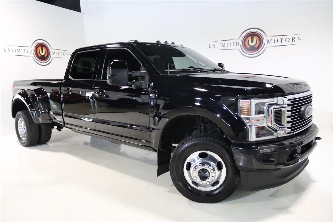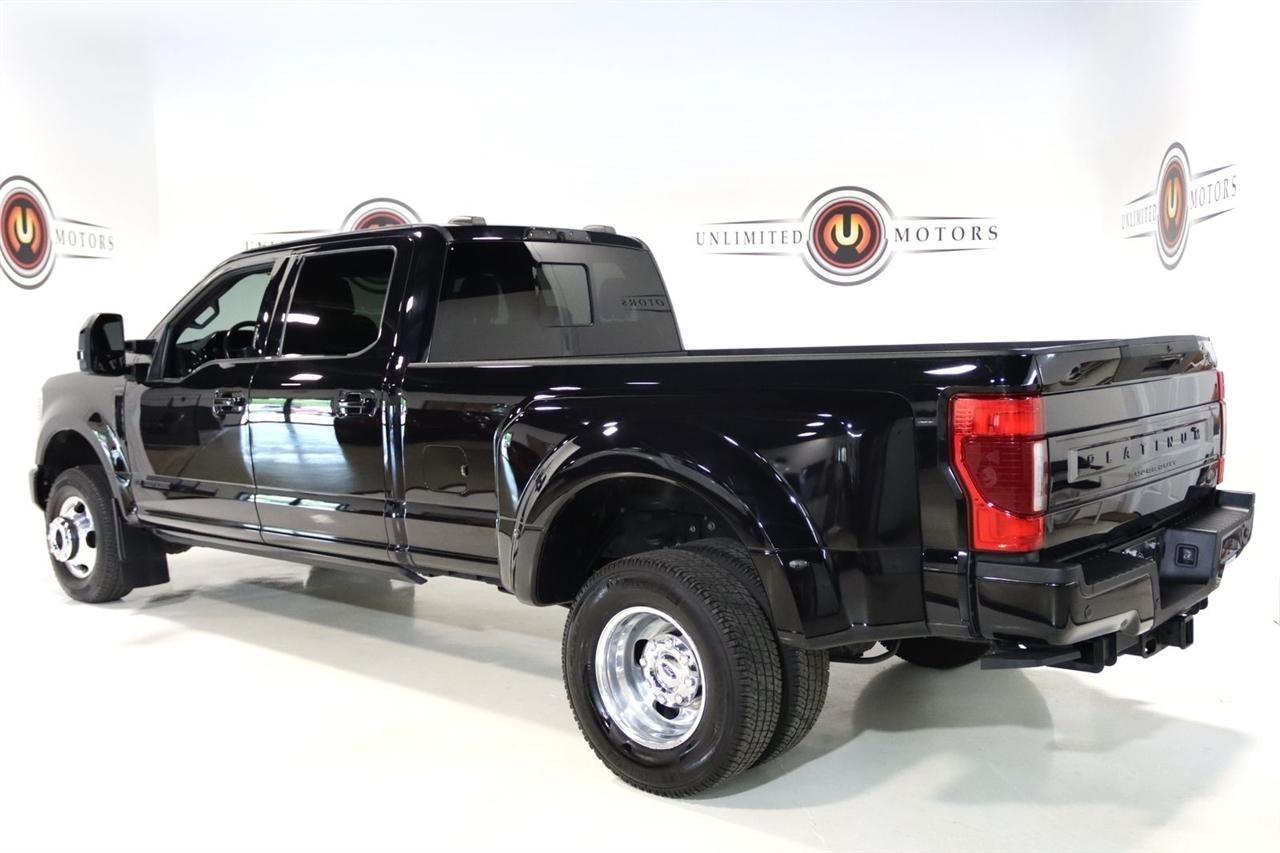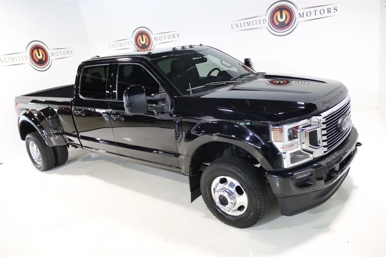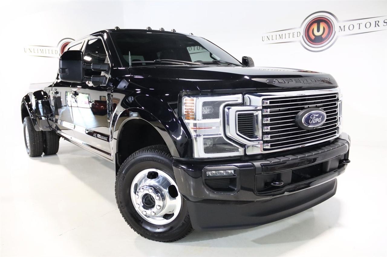 Navigation, Bluetooth, Back Up Camera, Panoramic Roof, Towing, Touch Screen, 10 Speakers, 17 Forged Polished Aluminum Wheels, 397 Amp Alternator, 4-Wheel Disc Brakes, 5th Wheel/Gooseneck Hitch Prep Package, ABS brakes, Adjustable pedals, Advanced Security Pack Inclination Sensor Removal, Air Conditioning, Alloy wheels, AM/FM radio: SiriusXM with 360L, Auto High-beam Headlights, Auto tilt-away steering wheel, Auto-dimming Rear-View mirror, Automatic temperature control, Bed Step, Brake assist, Bumpers: body-color, Compass, Delay-off headlights, Driver door bin, Driver vanity mirror, Dual front impact airbags, Dual front side impact airbags, Dual rear wheels, Electronic Stability Control, Emergency communication system: SYNC 4 911 Assist, Engine Block Heater, Exterior Parking Camera Rear, Flow-Through Console, Front anti-roll bar, Front Bucket Seats, Front Center Armrest, Front dual zone A/C, Front fog lights, Front reading lights, Fully automatic headlights, FX4 Off-Road Package, Garage door transmitter, Gooseneck Hitch Kit (Pre-Installed), GVWR: 14,000 lb Payload Package, Heated door mirrors, Heated front seats, Heated rear seats, Heated steering wheel, Heavy-Service Front Suspension Package, Hill Descent Control, Illuminated entry, Leather steering wheel, Limited Slip w/3.55 Axle Ratio, Low tire pressure warning, Memory seat, Navigation system: Connected Navigation, Off-Road Specifically Tuned Shock Absorbers, Order Code 723A, Outside temperature display, Overhead airbag, Overhead console, Panic alarm, Passenger door bin, Passenger vanity mirror, Pedal memory, Power door mirrors, Power driver seat, Power passenger seat, Power steering, Power windows, Radio data system, Radio: B&O Sound System by Bang & Olufsen, Rain sensing wipers, Rapid-Heat Supplemental Cab Heater, Rear anti-roll bar, Rear Parking Sensors, Rear reading lights, Rear seat center armrest, Rear step bumper, Rear window defroster, Remote keyless entry, Security system, SiriusXM Radio w/360L, Speed control, Speed-sensing steering, Split folding rear seat, Steering wheel memory, Steering wheel mounted A/C controls, Steering wheel mounted audio controls, Stowable Loading Ramps (Pre-Installed), SYNC 4 w/Enhanced Voice Recognition, Tachometer, Telescoping steering wheel, Tilt steering wheel, Traction control, Trip computer, Turn signal indicator mirrors, Twin Panel Power Moonroof, Unique FX4 Off-Road Box Decal, Unique Platinum Leather 40/Console/40 Seats, Upfitter Switches (6), Variably intermittent wipers, Ventilated front seats. CARFAX One-Owner.2022 Black Metallic Ford 4D Crew Cab F-350SD Platinum 4WD 10-Speed Automatic Power Stroke 6.7L V8 DI 32V OHV TurbodieselVisit our website www.iumotors.com to view 100s of newer vehicles, more pictures and info, or to apply for financing. Rates are incredibly low for approved credit. We offer extended warranties, protection packages, and insurance. We assure you the best experience at any of our 4 locations and unbeatable prices and quality. At Unlimited Motors we believe in MARKET VALUE PRICING. We use real-time Internet price comparisons to constantly adjust prices to provide ALL BUYERS The BEST PRICE possible. We do not mark them up, to mark them down! Our entire team is committed to helping you buy a car the way we would want to buy a car! We utilize state-of-the-art technology to constantly monitor pricing trends to offer our shoppers the best competitive pricing, value, and experience. We sell and service all makes and models of Pre-owned / Used Vehicles Used Cars, Used Trucks, Used Sport Utility, Lamborghini, Ferrari, Bentley, Rolls Royce, McLaren, Maserati, Ford, Chevrolet/Chevy, Honda, Toyota, Porsche, Land Rover, Jaguar, INFINITI, Audi, Nissan, Mazda, Hyundai, Chrysler, Jeep, Dodge, Ram, SRT, Mitsubishi, Lexus, Kia, Volkswagen, Mini, BMW, Mercedes, Fiat, Volvo, GMC, Cadillac, Lincoln as well as other brands. Proudly serving these areas of Indianapolis, Fishers, Carmel, Noblesville, Green