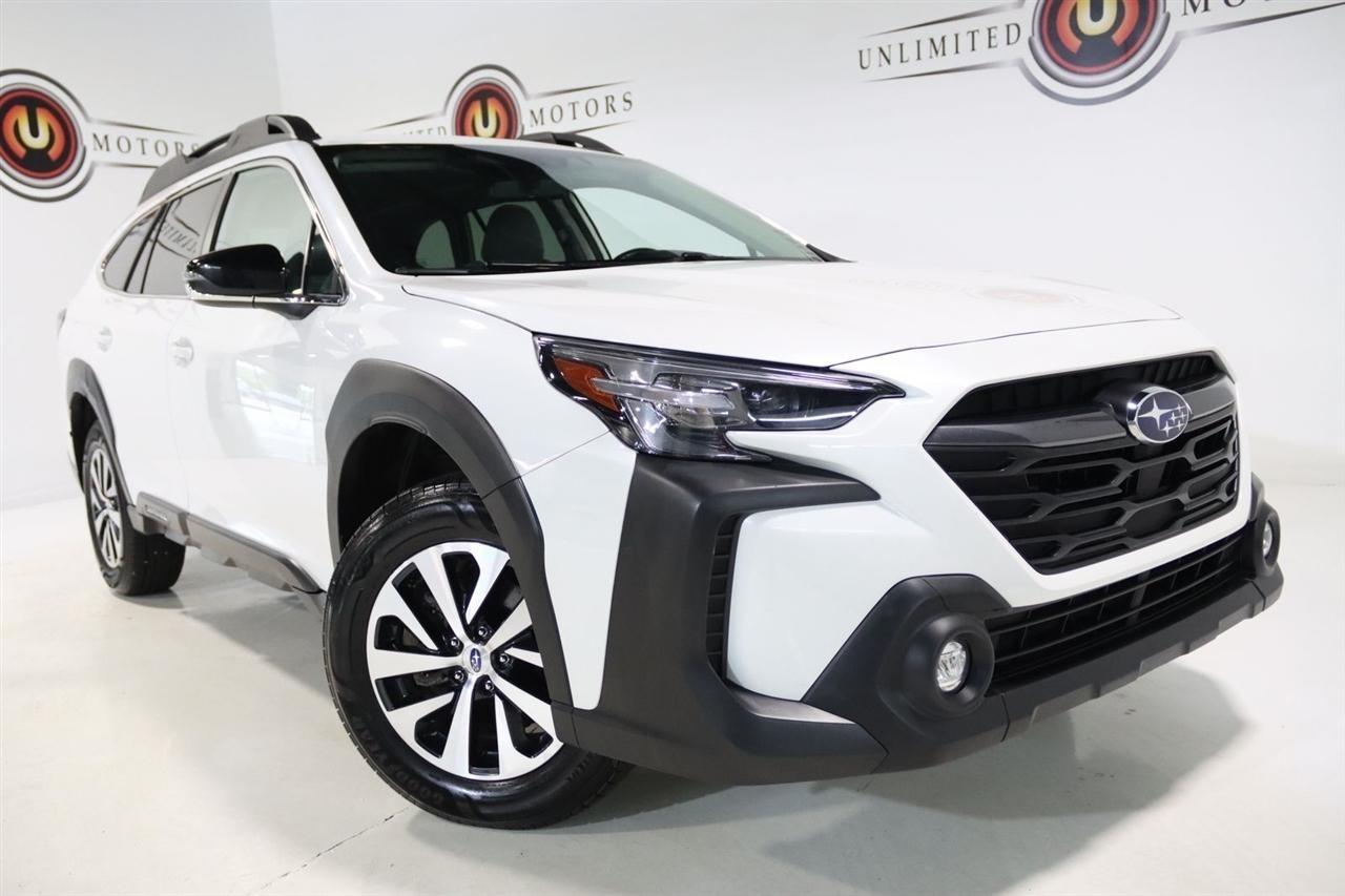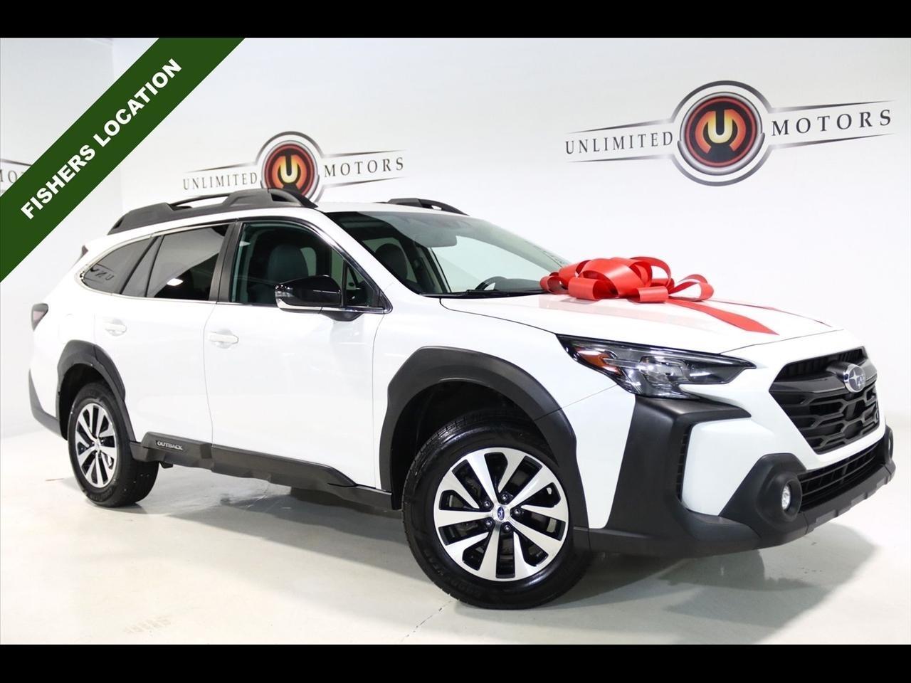 Bluetooth, Back Up Camera, Touch Screen, 3.90 Axle Ratio, 4-Wheel Disc Brakes, 6 Speakers, ABS brakes, Air Conditioning, Alloy wheels, AM/FM radio: SiriusXM, Auto High-beam Headlights, Automatic temperature control, Blind Spot Detection (BSD), Brake assist, BSD w/RCTA & Keyless Access & Push Button Start, Bumpers: body-color, Cloth Upholstery, Driver door bin, Driver vanity mirror, Dual front impact airbags, Dual front side impact airbags, Electronic Stability Control, Emergency communication system: STARLINK Safety Plus (3-year free trial), Exterior Parking Camera Rear, Four wheel independent suspension, Front anti-roll bar, Front Bucket Seats, Front Center Armrest w/Storage, Front dual zone A/C, Front fog lights, Front reading lights, Fully automatic headlights, Hands-Free Power Rear Gate, Heated door mirrors, Heated Front Bucket Seats, Heated front seats, Illuminated entry, Keyless Access w/Push Button Start, Knee airbag, Leather Shift Knob, Leather steering wheel, Low tire pressure warning, Occupant sensing airbag, Outside temperature display, Overhead airbag, Overhead console, Panic alarm, Passenger door bin, Passenger vanity mirror, Power door mirrors, Power driver seat, Power steering, Power windows, Radio: Subaru STARLINK 11.6 Multimedia Plus Sys, Rear anti-roll bar, Rear Cross Traffic Alert (RCTA), Rear seat center armrest, Rear window defroster, Rear window wiper, Remote keyless entry, Roof rack, Security system, Speed control, Speed-sensing steering, Split folding rear seat, Spoiler, Steering wheel mounted audio controls, Tachometer, Telescoping steering wheel, Tilt steering wheel, Traction control, Trip computer, Turn signal indicator mirrors, Variably intermittent wipers, Wheels: 17 x 7J Black Aluminum-Alloy. Clean CARFAX. 26/32 City/Highway MPG2024 Crystal White Pearl Subaru 4D Sport Utility Outback Premium AWD CVT Lineartronic 2.5L 4-Cylinder DOHC 16VVisit our website www.iumotors.com to view 100s of newer vehicles, more pictures and info, or to apply for financing. Rates are incredibly low for approved credit. We offer extended warranties, protection packages, and insurance. We assure you the best experience at any of our 4 locations and unbeatable prices and quality. At Unlimited Motors we believe in MARKET VALUE PRICING. We use real-time Internet price comparisons to constantly adjust prices to provide ALL BUYERS The BEST PRICE possible. We do not mark them up, to mark them down! Our entire team is committed to helping you buy a car the way we would want to buy a car! We utilize state-of-the-art technology to constantly monitor pricing trends to offer our shoppers the best competitive pricing, value, and experience. We sell and service all makes and models of Pre-owned / Used Vehicles Used Cars, Used Trucks, Used Sport Utility, Lamborghini, Ferrari, Bentley, Rolls Royce, McLaren, Maserati, Ford, Chevrolet/Chevy, Honda, Toyota, Porsche, Land Rover, Jaguar, INFINITI, Audi, Nissan, Mazda, Hyundai, Chrysler, Jeep, Dodge, Ram, SRT, Mitsubishi, Lexus, Kia, Volkswagen, Mini, BMW, Mercedes, Fiat, Volvo, GMC, Cadillac, Lincoln as well as other brands. Proudly serving these areas of Indianapolis, Fishers, Carmel, Noblesville, Greenwood, Avon, Plainfield, Zionsville, & Brownsburg, Indiana, Midwest. We also serve the entire nation with our seamless and easy online purchasing process, and offer shipping nationwide.Advertised prices DO NOT include Sales Tax, Dealer Fees, Title Processing Charges, and Dealer Pre-installed Products.