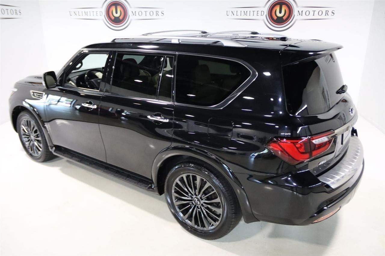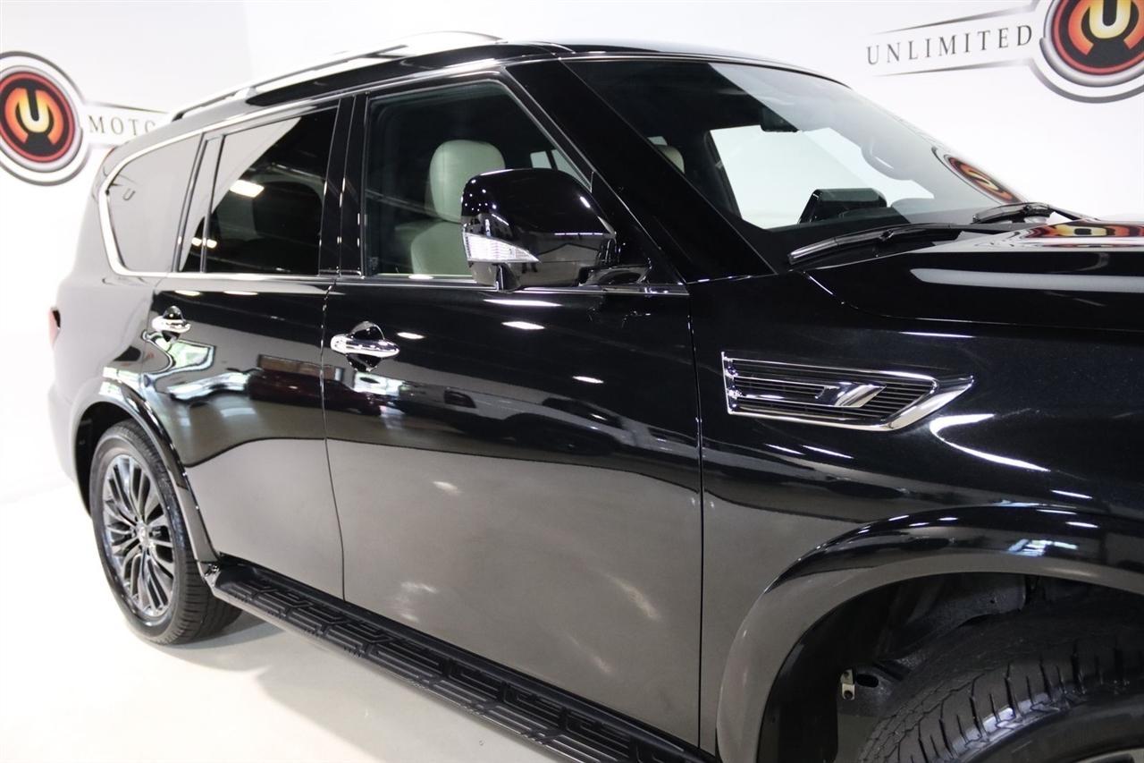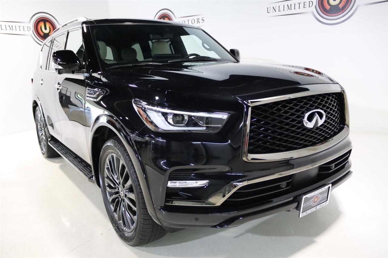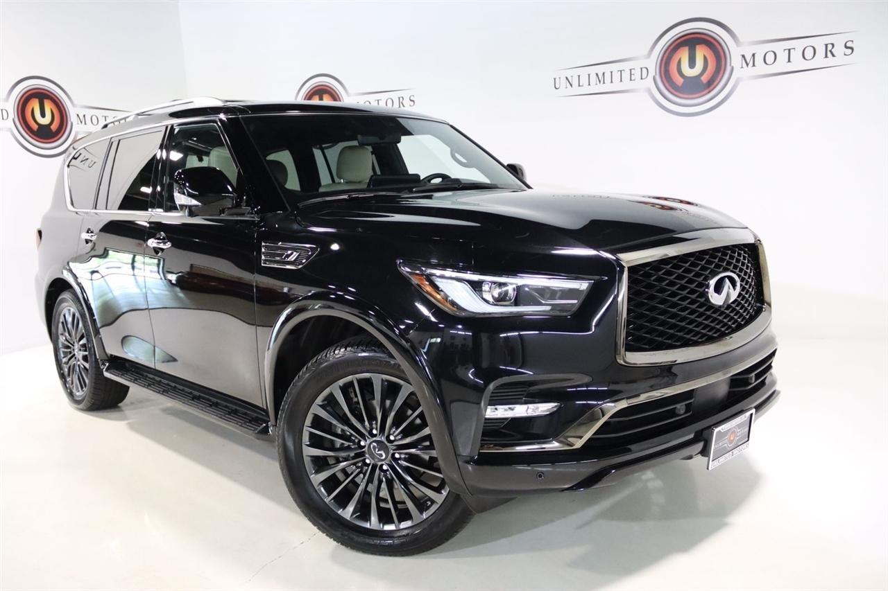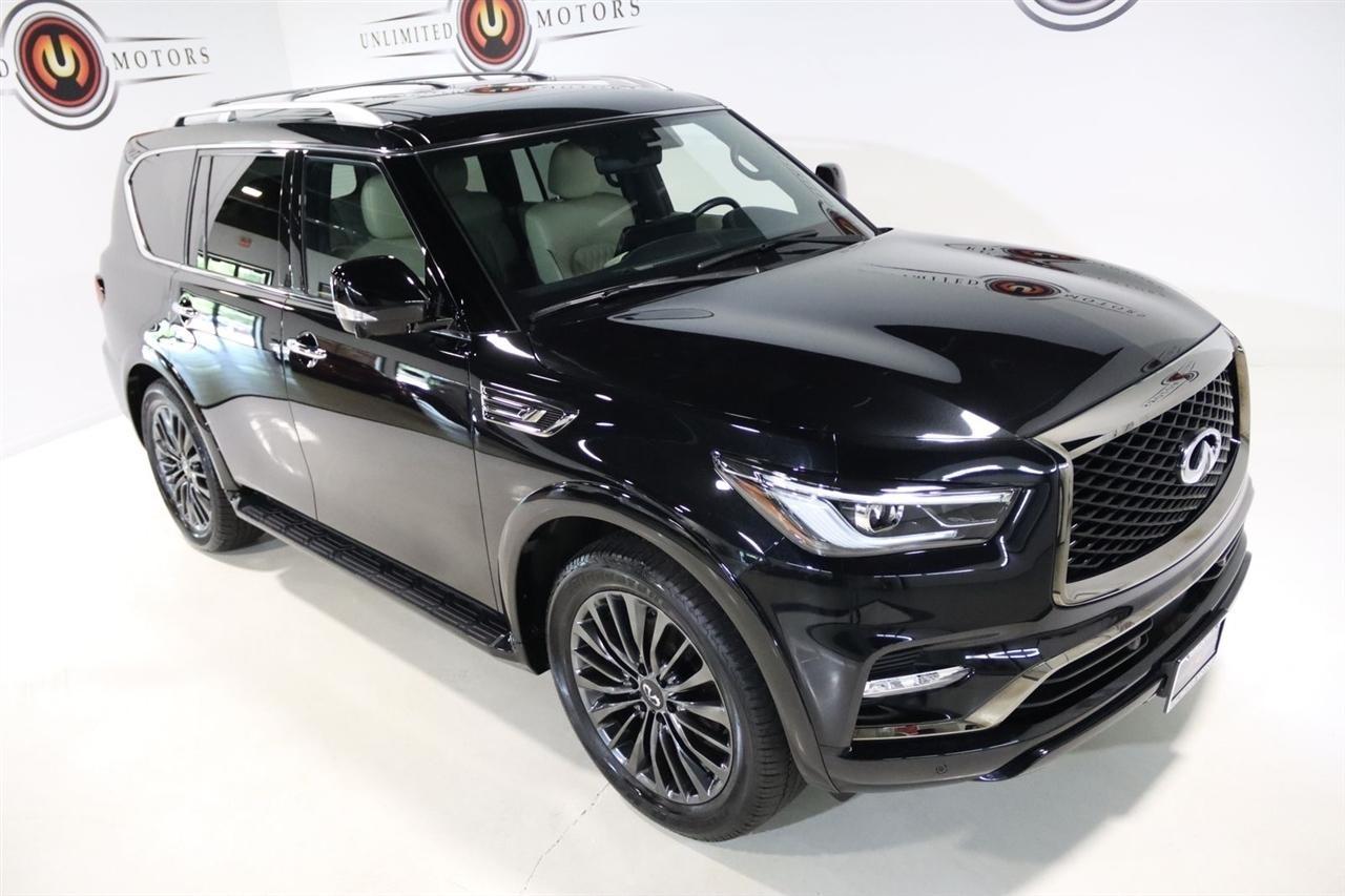 Navigation, Bluetooth, Back Up Camera, Sun/Moon Roof, 3rd Row, Heated Seats, Touch Screen, 17 Speakers, 2.937 Axle Ratio, 3rd row seats: bench, 4-Wheel Disc Brakes, ABS brakes, Air Conditioning, Alloy wheels, AM/FM radio: SiriusXM, Anti-whiplash front head restraints, Apple CarPlay/Android Auto, Auto High-beam Headlights, Auto tilt-away steering wheel, Auto-dimming door mirrors, Auto-dimming Rear-View mirror, Auto-leveling suspension, Automatic temperature control, Black Painted Mirror Caps, Brake assist, Bumpers: body-color, Cargo Package, Climate Controlled Front Bucket Seats, Compass, Console Net, Dark Chrome Front Fascia Trim, Dark Chrome Grille Surround, Delay-off headlights, Driver door bin, Driver vanity mirror, Dual front impact airbags, Dual front side impact airbags, Electronic Stability Control, Emergency communication system: INFINITI InTouch, First-Aid Kit, Four wheel independent suspension, Front anti-roll bar, Front Bucket Seats, Front Center Armrest, Front dual zone A/C, Front fog lights, Front reading lights, Fully automatic headlights, Garage door transmitter: HomeLink, Heated door mirrors, Heated front seats, Heated rear seats, Heated steering wheel, Illuminated entry, Leather Shift Knob, Leather steering wheel, Literature Kit, Low tire pressure warning, Memory seat, Moisture-Resistant Rear Cargo Carpet, Navigation System, Navigation system: INFINITI InTouch Navigation, Nylon-Cord Cargo Net, Occupant sensing airbag, Outside temperature display, Overhead airbag, Overhead console, Panic alarm, Passenger door bin, Passenger vanity mirror, Perforated Semi-Aniline Leather-Appointed Seats, Power door mirrors, Power driver seat, Power Liftgate, Power moonroof, Power passenger seat, Power steering, Power windows, Radio data system, Radio: Bose Performance Audio System w/17 Speakers, Rain sensing wipers, Rear air conditioning, Rear anti-roll bar, Rear reading lights, Rear seat center armrest, Rear window defroster, Rear window wiper, Reclining 3rd row seat, Remote keyless entry, Roof Rail Cross Bars, Security system, Sensory Dark Chrome Appearance Package, Speed control, Speed-sensing steering, Split folding rear seat, Spoiler, Steering wheel memory, Steering wheel mounted audio controls, Tachometer, Telescoping steering wheel, Tilt steering wheel, Traction control, Trip computer, Turn signal indicator mirrors, Variably intermittent wipers, Ventilated front seats, Voltmeter, Wheels: 22 Dark Chrome Cast Aluminum-Alloy. CARFAX One-Owner. Clean CARFAX. Priced below KBB Fair Purchase Price!2024 Mineral Black INFINITI 4D Sport Utility QX80 Sensory 4WD 7-Speed Automatic 5.6L V8Visit our website www.iumotors.com to view 100s of newer vehicles, more pictures and info, or to apply for financing. Rates are incredibly low for approved credit. We offer extended warranties, protection packages, and insurance. We assure you the best experience at any of our 4 locations and unbeatable prices and quality. At Unlimited Motors we believe in MARKET VALUE PRICING. We use real-time Internet price comparisons to constantly adjust prices to provide ALL BUYERS The BEST PRICE possible. We do not mark them up, to mark them down! Our entire team is committed to helping you buy a car the way we would want to buy a car! We utilize state-of-the-art technology to constantly monitor pricing trends to offer our shoppers the best competitive pricing, value, and experience. We sell and service all makes and models of Pre-owned / Used Vehicles Used Cars, Used Trucks, Used Sport Utility, Lamborghini, Ferrari, Bentley, Rolls Royce, McLaren, Maserati, Ford, Chevrolet/Chevy, Honda, Toyota, Porsche, Land Rover, Jaguar, INFINITI, Audi, Nissan, Mazda, Hyundai, Chrysler, Jeep, Dodge, Ram, SRT, Mitsubishi, Lexus, Kia, Volkswagen, Mini, BMW, Mercedes, Fiat, Volvo, GMC, Cadillac, Lincoln as well as other brands. Proudly serving these areas of Indianapolis, Fishers, Carmel, Noblesville, Greenwood, Avon, Plainfield, Zionsville, & Brownsb
