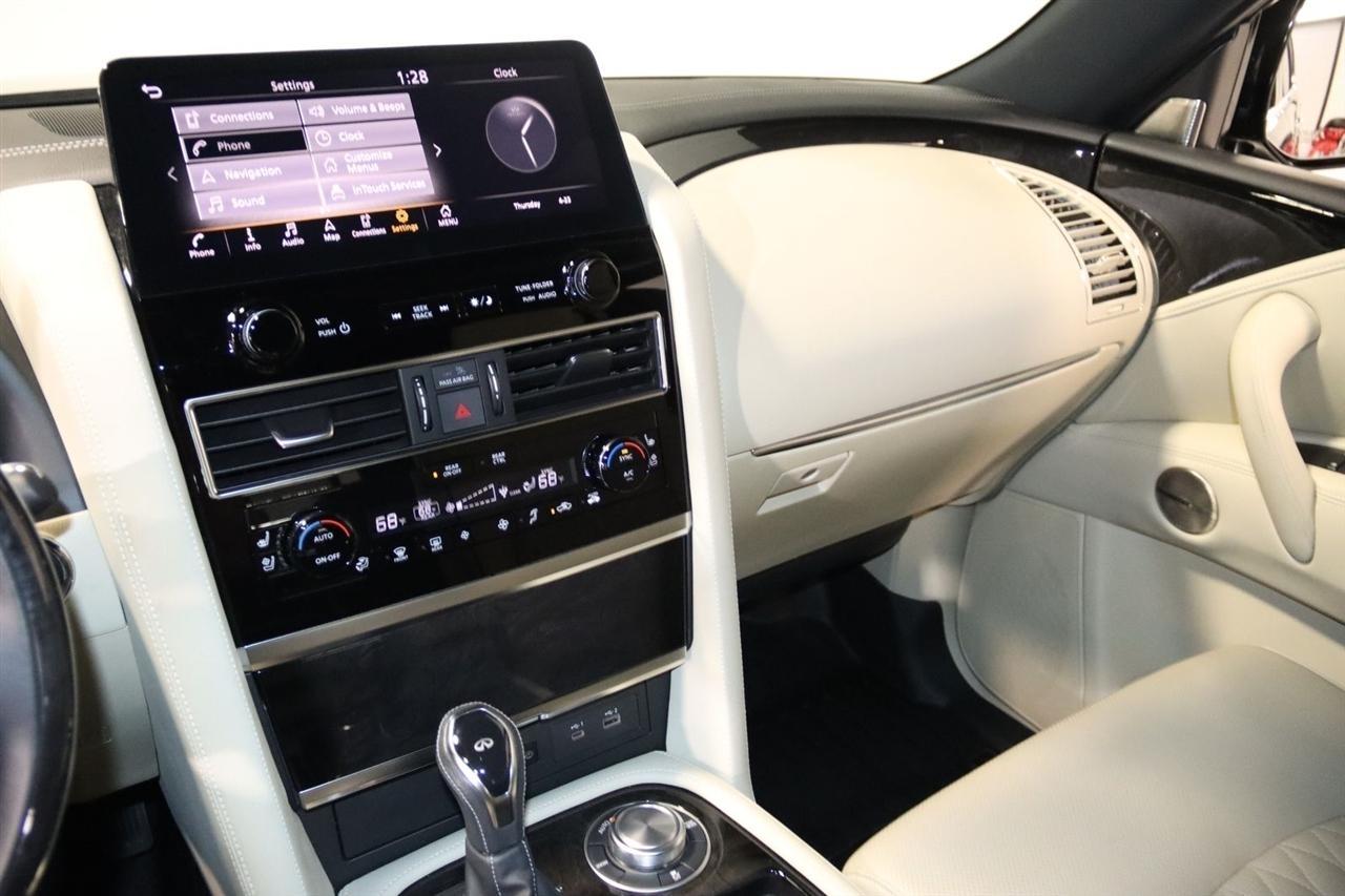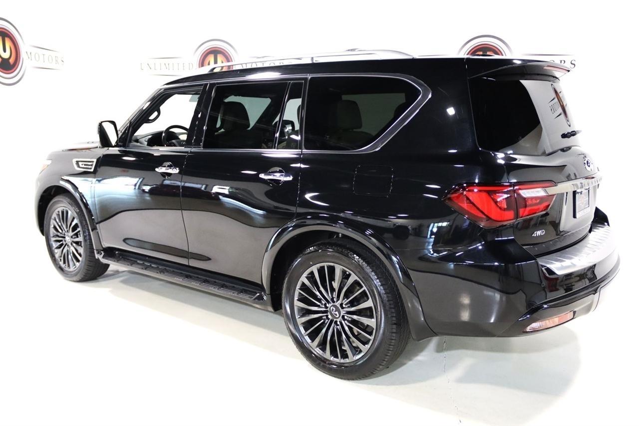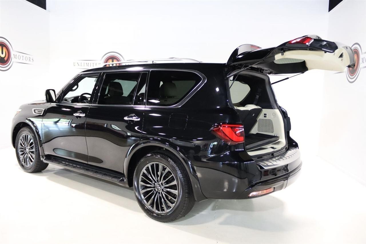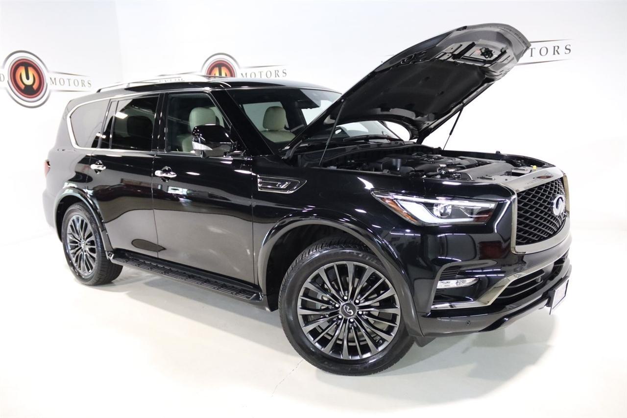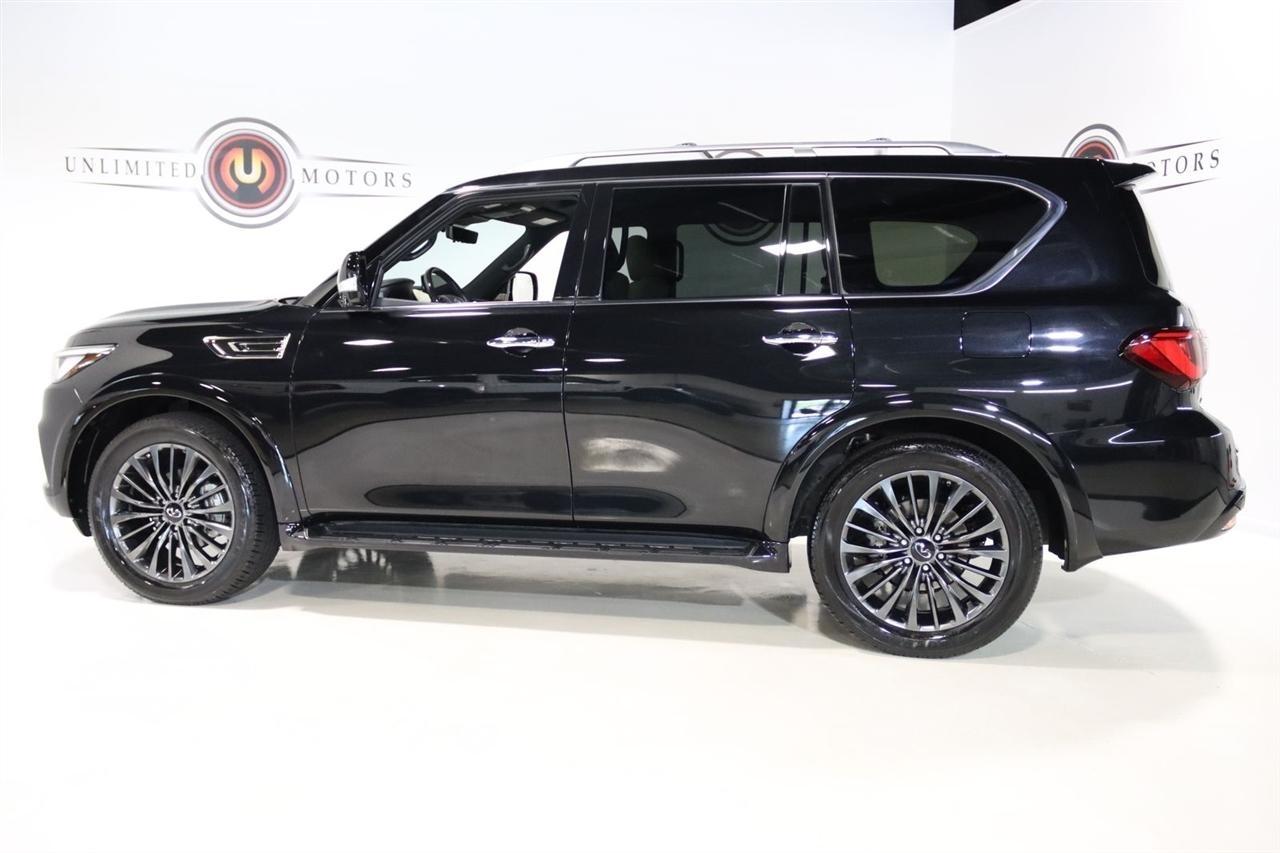 Navigation, Bluetooth, Back Up Camera, Sun/Moon Roof, 3rd Row, Heated Seats, Touch Screen, 17 Speakers, 2.937 Axle Ratio, 3rd row seats: bench, 4-Wheel Disc Brakes, ABS brakes, Air Conditioning, Alloy wheels, AM/FM radio: SiriusXM, Anti-whiplash front head restraints, Apple CarPlay/Android Auto, Auto High-beam Headlights, Auto tilt-away steering wheel, Auto-dimming door mirrors, Auto-dimming Rear-View mirror, Auto-leveling suspension, Automatic temperature control, Black Painted Mirror Caps, Brake assist, Bumpers: body-color, Cargo Package, Climate Controlled Front Bucket Seats, Compass, Console Net, Dark Chrome Front Fascia Trim, Dark Chrome Grille Surround, Delay-off headlights, Driver door bin, Driver vanity mirror, Dual front impact airbags, Dual front side impact airbags, Electronic Stability Control, Emergency communication system: INFINITI InTouch, First-Aid Kit, Four wheel independent suspension, Front anti-roll bar, Front Bucket Seats, Front Center Armrest, Front dual zone A/C, Front fog lights, Front reading lights, Fully automatic headlights, Garage door transmitter: HomeLink, Heated door mirrors, Heated front seats, Heated rear seats, Heated steering wheel, Illuminated entry, Leather Shift Knob, Leather steering wheel, Literature Kit, Low tire pressure warning, Memory seat, Moisture-Resistant Rear Cargo Carpet, Navigation System, Navigation system: INFINITI InTouch Navigation, Nylon-Cord Cargo Net, Occupant sensing airbag, Outside temperature display, Overhead airbag, Overhead console, Panic alarm, Passenger door bin, Passenger vanity mirror, Perforated Semi-Aniline Leather-Appointed Seats, Power door mirrors, Power driver seat, Power Liftgate, Power moonroof, Power passenger seat, Power steering, Power windows, Radio data system, Radio: Bose Performance Audio System w/17 Speakers, Rain sensing wipers, Rear air conditioning, Rear anti-roll bar, Rear reading lights, Rear seat center armrest, Rear window defroster, Rear window wiper, Reclining 3rd row seat, Remote keyless entry, Roof Rail Cross Bars, Security system, Sensory Dark Chrome Appearance Package, Speed control, Speed-sensing steering, Split folding rear seat, Spoiler, Steering wheel memory, Steering wheel mounted audio controls, Tachometer, Telescoping steering wheel, Tilt steering wheel, Traction control, Trip computer, Turn signal indicator mirrors, Variably intermittent wipers, Ventilated front seats, Voltmeter, Wheels: 22 Dark Chrome Cast Aluminum-Alloy. CARFAX One-Owner. Clean CARFAX. Priced below KBB Fair Purchase Price!2024 Mineral Black INFINITI 4D Sport Utility QX80 Sensory 4WD 7-Speed Automatic 5.6L V8Visit our website www.iumotors.com to view 100s of newer vehicles, more pictures and info, or to apply for financing. Rates are incredibly low for approved credit. We offer extended warranties, protection packages, and insurance. We assure you the best experience at any of our 4 locations and unbeatable prices and quality. At Unlimited Motors we believe in MARKET VALUE PRICING. We use real-time Internet price comparisons to constantly adjust prices to provide ALL BUYERS The BEST PRICE possible. We do not mark them up, to mark them down! Our entire team is committed to helping you buy a car the way we would want to buy a car! We utilize state-of-the-art technology to constantly monitor pricing trends to offer our shoppers the best competitive pricing, value, and experience. We sell and service all makes and models of Pre-owned / Used Vehicles Used Cars, Used Trucks, Used Sport Utility, Lamborghini, Ferrari, Bentley, Rolls Royce, McLaren, Maserati, Ford, Chevrolet/Chevy, Honda, Toyota, Porsche, Land Rover, Jaguar, INFINITI, Audi, Nissan, Mazda, Hyundai, Chrysler, Jeep, Dodge, Ram, SRT, Mitsubishi, Lexus, Kia, Volkswagen, Mini, BMW, Mercedes, Fiat, Volvo, GMC, Cadillac, Lincoln as well as other brands. Proudly serving these areas of Indianapolis, Fishers, Carmel, Noblesville, Greenwood, Avon, Plainfield, Zionsville, & Brownsb