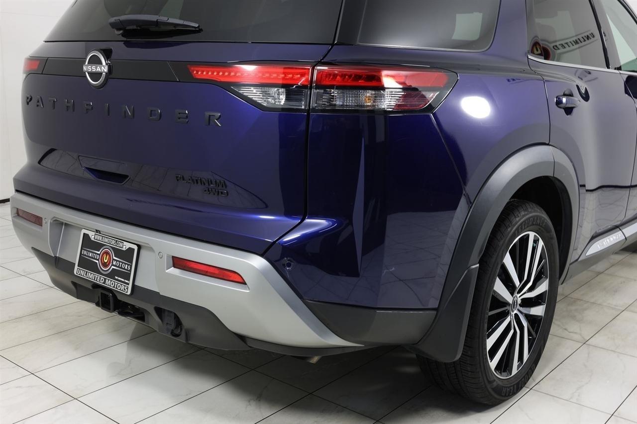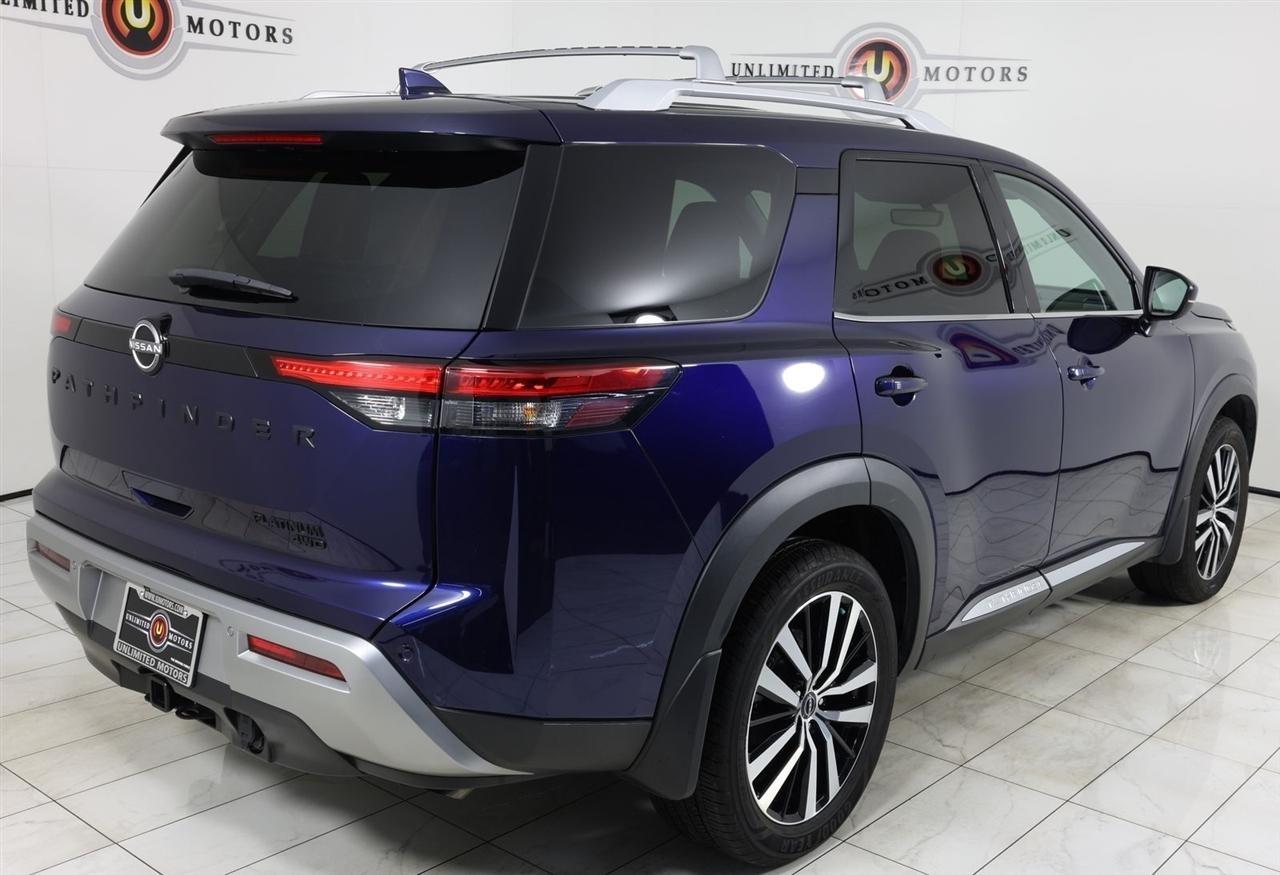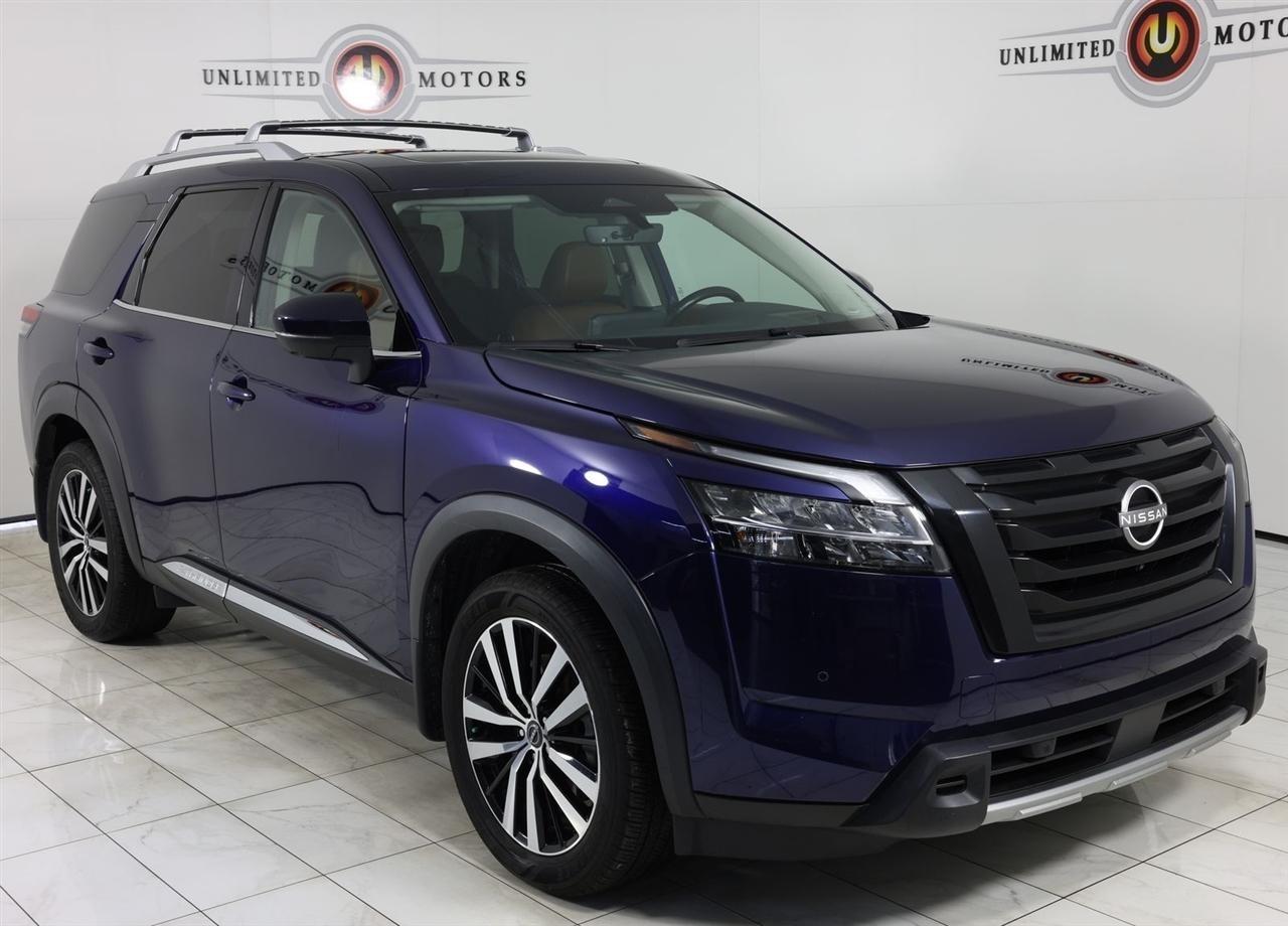2023 Nissan Pathfinder Deep Ocean Blue Now Available at Unlimited Motors Elwood! With over 20 years in business and 4 Indiana locations, Unlimited Motors is known for offering high-quality, hand-selected vehicles at excellent pricing with outstanding customer service. Our inventory of over 1,000 vehicles includes major makes such as Ford, Chevrolet, Ram, Jeep, GMC, Dodge, BMW, Mercedes-Benz, Audi, Cadillac, Porsche, Maserati, Ferrari, and Lamborghini, giving customers one of the largest selections of quality vehicles in the Midwest. Vehicle Highlights:Navigation, Back Up Camera, Sunroof, Panoramic Sunroof, Bluetooth, Towing, Touch Screen, Heated Seats, Ventilated Seats, Power Lift Gate, Apple Car Play, Blind Spot, Clean Carfax, Low Miles, Lane Assist, 4WD.Recent Arrival! Clean CARFAX.Visit www.iumotors.com to explore our full inventory of over 1,000 hand-picked vehicles across our Westfield, Fishers, Noblesville, and Elwood locations. At Unlimited Motors, we offer a premium car-buying experience with competitive financing through local credit unions and national lenders, top trade-in values, full auto repair and maintenance services for customer vehicles, and nationwide shipping to all 50 states. Youll also find many of the most searched and in-demand models, including Ford F-150, Chevrolet Silverado, Ram 1500, Jeep Wrangler, Jeep Grand Cherokee, Chevrolet Tahoe, Chevrolet Suburban, GMC Yukon, GMC Sierra, Dodge Charger, Dodge Durango, Ford Explorer, BMW X5, BMW X3, BMW 3 Series, Mercedes-Benz GLE, Mercedes-Benz GLC, Cadillac Escalade, Audi Q5, Audi Q7, Porsche Cayenne, Porsche Macan, Maserati Ghibli, and more. Whether youre visiting from Westfield, Indianapolis, Carmel, Fishers, Noblesville, Zionsville, Greenwood, Lawrence, Brownsburg, Avon, Plainfield, Lebanon, Anderson, Muncie, Kokomo, Lafayette, Bloomington, Columbus, or anywhere across Central and Northern Indiana, we are here to help you find the perfect vehicle with exceptional service and unbeatable value. Call us today at 765-557-8817 10083 IN-13, Elwood, IN 46036. Disclaimer: Advertised prices DO NOT include Sales Tax, Dealer Fees, Title Processing Charges, and Dealer Pre-installed Products.