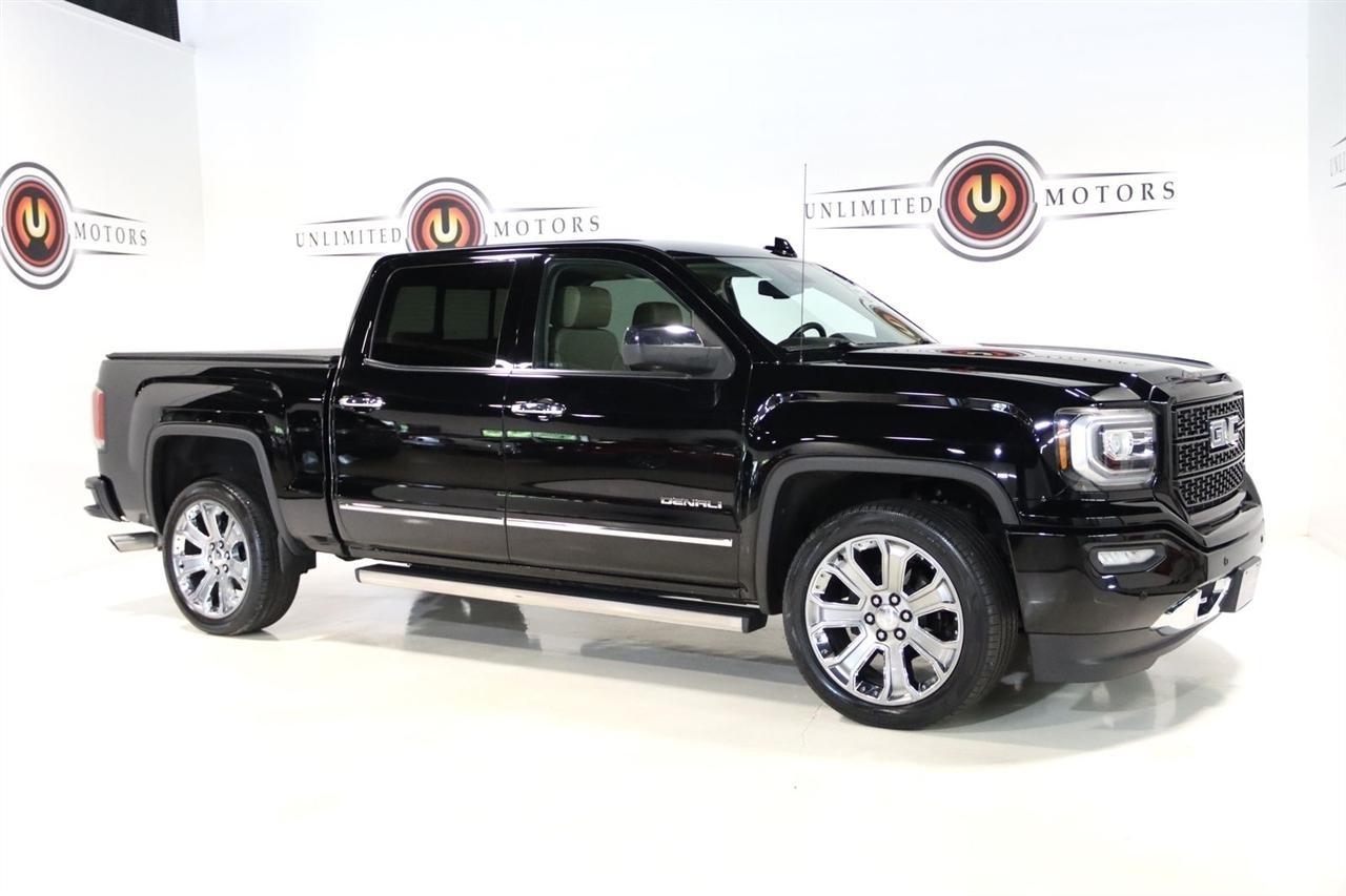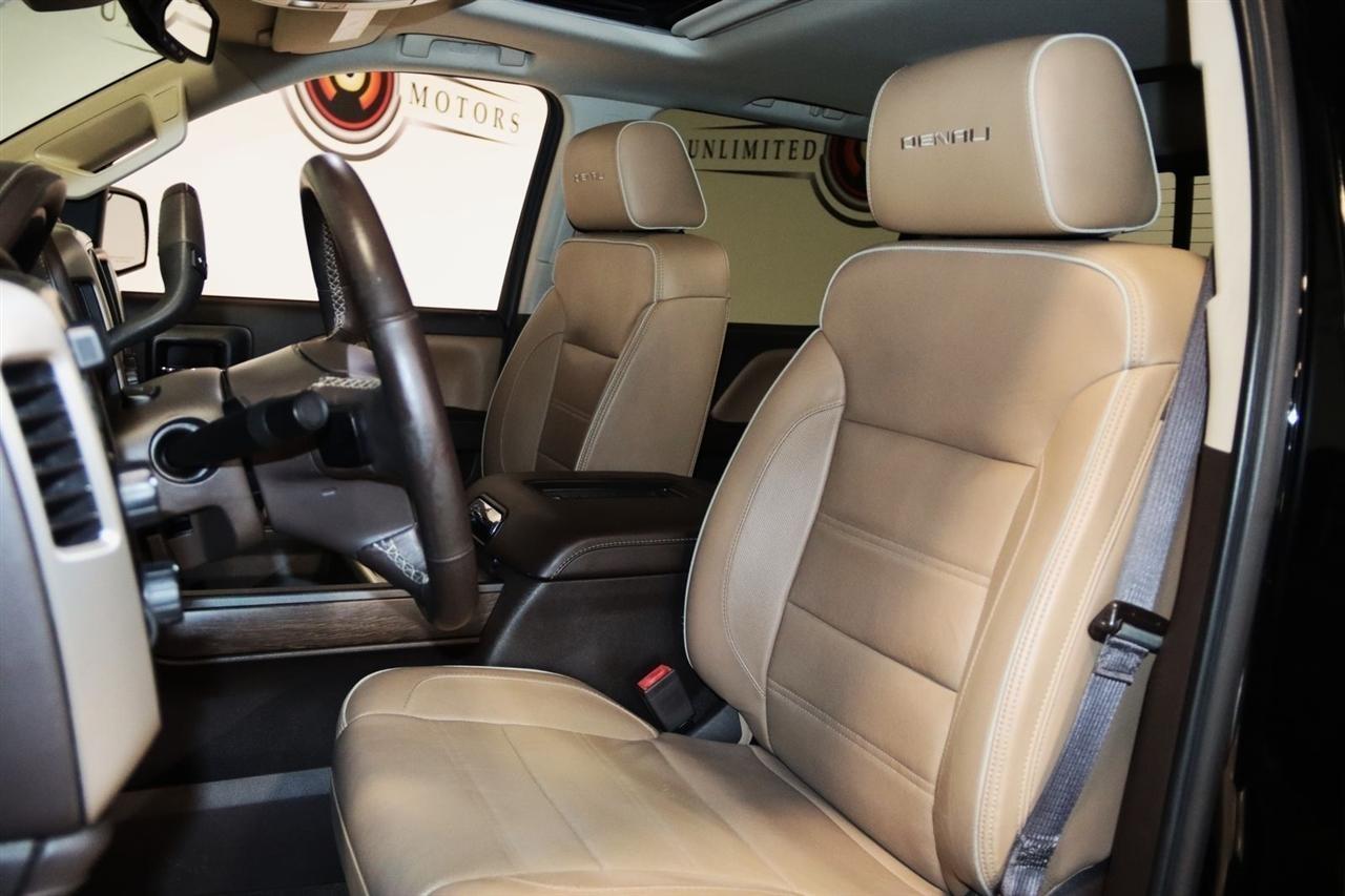 Navigation, Bluetooth, Back Up Camera, Sun/Moon Roof, Heated Seats, Touch Screen, 110-Volt AC Power Outlet, 150 Amp Alternator, 1st & 2nd Row Color-Keyed Carpeted Floor Mats, 2-Speed Active Electronic AutoTrac Transfer Case, 3.23 Rear Axle Ratio, 4-Wheel Disc Brakes, 6 Rectangular Chromed Tubular Assist Steps, 7 Speakers, 8 Multi-Color Customizable Driver Display, ABS brakes, Active Noise Cancellation, Adaptive suspension, Adjustable pedals, Air Conditioning, Alloy wheels, AM/FM radio, Auto High-beam Headlights, Auto-dimming door mirrors, Auto-Dimming Inside Rear-View Mirror, Auto-dimming Rear-View mirror, Automatic temperature control, Body Color Lower Front Bumper, Body Color Rear Bumper w/Cornersteps, Bodyside moldings, Bose Speaker System, Brake assist, Bumpers: body-color, CD player, Chrome Bodyside Moldings, Chrome Door Handles, Chrome Mirror Caps, Chrome Recovery Hooks, Color-Keyed Carpeting, Compass, Deep-Tinted Glass, Delay-off headlights, Denali Ultimate Package, Driver & Front Passenger Illuminated Vanity Mirrors, Driver door bin, Driver vanity mirror, Dual front impact airbags, Dual front side impact airbags, Dual-Zone Automatic Climate Control, Electric Rear-Window Defogger, Electronic Stability Control, Emergency communication system: OnStar Guidance, Enhanced Driver Alert Package, Exterior Parking Camera Rear, EZ Lift & Lower Tailgate, Floor Mounted Console, Forward Collision Alert, Front anti-roll bar, Front Center Armrest w/Storage, Front dual zone A/C, Front fog lights, Front Frame-Mounted Black Recovery Hooks, Front Full Feature Power Reclining Bucket Seats, Front License Plate Kit, Front reading lights, Front wheel independent suspension, Fully automatic headlights, Garage door transmitter: HomeLink, HD Radio, Heated & Ventilated Front Bucket Seats, Heated door mirrors, Heated front seats, Heated steering wheel, Illuminated entry, Integrated Trailer Brake Controller, IntelliBeam Automatic High Beam On/Off Headlight, Lane Keep Assist, Leather Wrapped Heated Steering Wheel, Low Speed Forward Automatic Braking, Low tire pressure warning, MagneRide Magnetic Ride Control Suspension, Manual Tilt/Telescoping Steering Column, Memory seat, Navigation System, Occupant sensing airbag, OnStar 3 Month Guidance Plan, OnStar w/4G LTE, Outside temperature display, Overhead airbag, Overhead console, Panic alarm, Passenger door bin, Passenger vanity mirror, Perforated Leather Appointed Seat Trim, Polished Exhaust Tip, Power Adjustable Pedals, Power door mirrors, Power driver seat, Power Folding & Adjustable Heated Outside Mirrors, Power passenger seat, Power Sliding Rear Window w/Defogger, Power steering, Power Sunroof, Power windows, Power Windows w/Driver Express Up & Down, Preferred Equipment Group 5SA, Radio data system, Radio: AM/FM Stereo w/8 Diagonal Color Touch Nav., Rear 60/40 Folding Bench Seat (Folds Up), Rear reading lights, Rear seat center armrest, Rear step bumper, Rear Vision Camera, Rear Wheelhouse Liners, Rear window defroster, Remote Keyless Entry, Remote keyless entry, Remote Locking Tailgate, Remote Vehicle Starter System, Security system, Single Slot CD/MP3 Player, SiriusXM Satellite Radio, Speed control, Speed-sensing steering, Split folding rear seat, Steering Wheel Audio Controls, Steering wheel mounted audio controls, Tachometer, Telescoping steering wheel, Theft Deterrent System (Unauthorized Entry), Thin Profile LED Fog Lamps, Tilt steering wheel, Traction control, Trailering Equipment, Tri-Mode Power Steps, Trip computer, Turn signal indicator mirrors, Ultrasonic Front & Rear Park Assist, Universal Home Remote, Variably intermittent wipers, Ventilated front seats, Voltmeter, Wheels: 22 Aluminum w/Premium Paint, Wireless Charging. Clean CARFAX. Odometer is 52029 miles below market average!2017 Onyx Black GMC 4D Crew Cab Sierra 1500 Denali 4WD 8-Speed Automatic with Overdrive EcoTec3 6.2L V8Awards: * 2017 KBB.com Brand Image AwardsVisit our website www.iumotors.com
