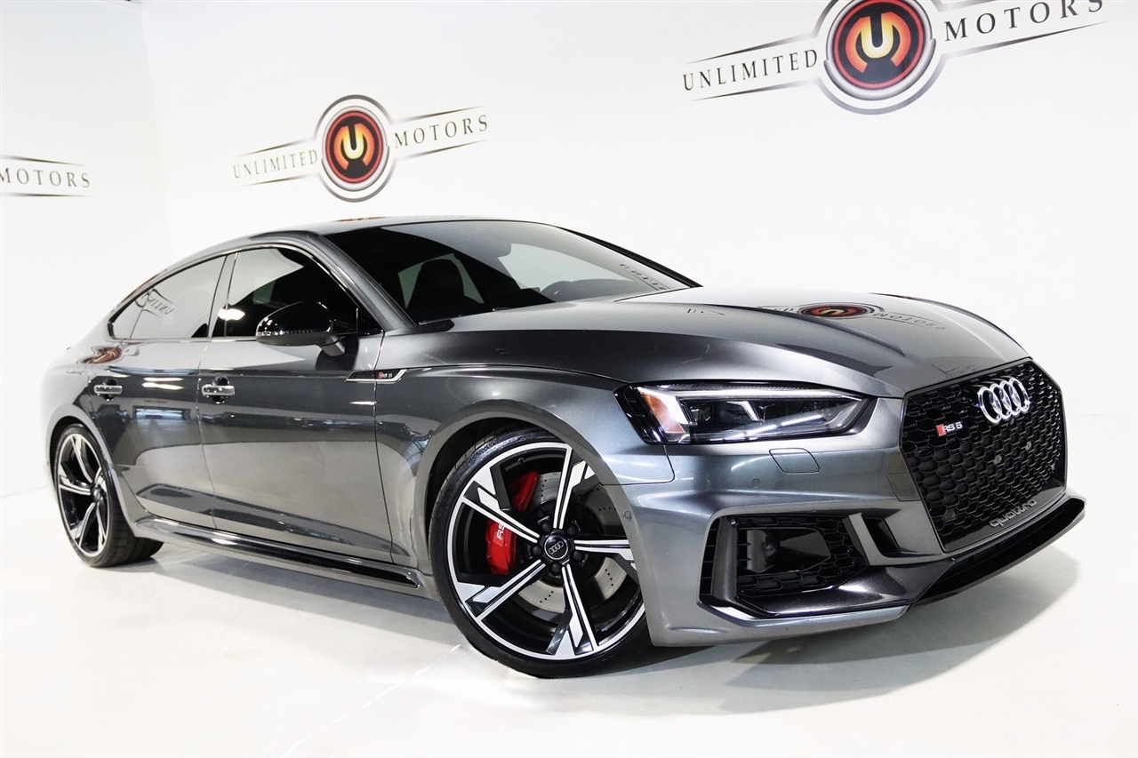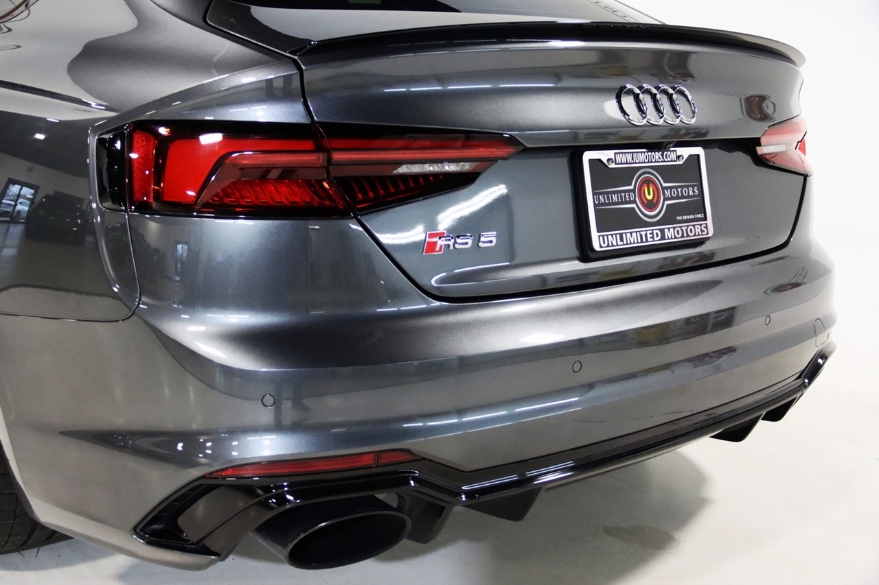 Navigation, Bluetooth, Back Up Camera, Sun/Moon Roof, Heated Seats, Touch Screen, 10 Speakers, 4-Wheel Disc Brakes, ABS brakes, Adaptive Cruise Control w/Traffic Jam Assist, Air Conditioning, Alloy wheels, AM/FM radio: SiriusXM, Audi Active Lane Assist, Audi smartphone interface (Apple CarPlay/Android Auto), Auto-dimming door mirrors, Auto-dimming Rear-View mirror, Automatic temperature control, Bang & Olufsen Sound System w/3D Sound, Black Optic Package, Brake assist, Bumpers: body-color, Compass, Delay-off headlights, Delete Front License Plate Holder, Driver door bin, Driver vanity mirror, Dual front impact airbags, Dual front side impact airbags, Dynamic Package, Dynamic Steering, Electronic Stability Control, Emergency communication system: Audi connect CARE, Exterior Parking Camera Rear, Fine Nappa Leather Package, Fine Nappa Leather Seating Surfaces, Four wheel independent suspension, Front anti-roll bar, Front Bucket Seats, Front Center Armrest, Front dual zone A/C, Front fog lights, Front reading lights, Garage door transmitter: HomeLink, Head-Up Display, Headlight cleaning, Heated door mirrors, Heated front seats, Heated S Sport Front Seats, High Gloss Black Exterior Kit w/quattro Script, High-Beam Assistant, High-Gloss Black Exterior Mirror Housings, Illuminated entry, Knee airbag, Leather Shift Knob, Leather steering wheel, Leather/Alcantara Seating Surfaces, LED Interior Lighting Plus Package, Low tire pressure warning, Memory seat, Navigation System, Navigation system: Audi Navigation Plus, Occupant sensing airbag, Outside temperature display, Overhead airbag, Overhead console, Panic alarm, Park Steering Assist, Passenger door bin, Passenger vanity mirror, Power door mirrors, Power driver seat, Power Liftgate, Power moonroof, Power passenger seat, Power steering, Power windows, Radio data system, Radio: Audi Sound System, Rain sensing wipers, Rear air conditioning, Rear anti-roll bar, Rear reading lights, Rear seat center armrest, Rear window defroster, Red Brake Calipers, Remote keyless entry, RS Driver Assistance Package, RS Sport Exhaust System w/Black Tips, RS Sport Suspension Plus w/Dynamic Ride Control, Security system, Speed control, Speed-sensing steering, Speed-Sensitive Wipers, Split folding rear seat, Spoiler, Sport steering wheel, Steering wheel mounted audio controls, Tachometer, Telescoping steering wheel, Tilt steering wheel, Top View Camera System, Traction control, Traffic Sign Recognition, Trip computer, Turn signal indicator mirrors, Variably intermittent wipers, Wheels: 20 5-Arm-Flag Forged Design, Wheels: 20 5-Arm-Peak Milled & Forged Design. Clean CARFAX. 17/26 City/Highway MPG2019 Daytona Gray Pearl Audi 4D Hatchback RS 5 2.9T quattro quattro 8-Speed Automatic with Tiptronic 2.9L TFSI 6 Cylinder 24V DOHCVisit our website www.iumotors.com to view 100s of newer vehicles, more pictures and info, or to apply for financing. Rates are incredibly low for approved credit. We offer extended warranties, protection packages, and insurance. We assure you the best experience at any of our 4 locations and unbeatable prices and quality. At Unlimited Motors we believe in MARKET VALUE PRICING. We use real-time Internet price comparisons to constantly adjust prices to provide ALL BUYERS The BEST PRICE possible. We do not mark them up, to mark them down! Our entire team is committed to helping you buy a car the way we would want to buy a car! We utilize state-of-the-art technology to constantly monitor pricing trends to offer our shoppers the best competitive pricing, value, and experience. We sell and service all makes and models of Pre-owned / Used Vehicles Used Cars, Used Trucks, Used Sport Utility, Lamborghini, Ferrari, Bentley, Rolls Royce, McLaren, Maserati, Ford, Chevrolet/Chevy, Honda, Toyota, Porsche, Land Rover, Jaguar, INFINITI, Audi, Nissan, Mazda, Hyundai, Chrysler, Jeep, Dodge, Ram, SRT, Mitsubishi, Lexus, Kia, Volkswagen, Mini, BMW, Mercedes, Fiat, Volvo, GMC, Cadil
