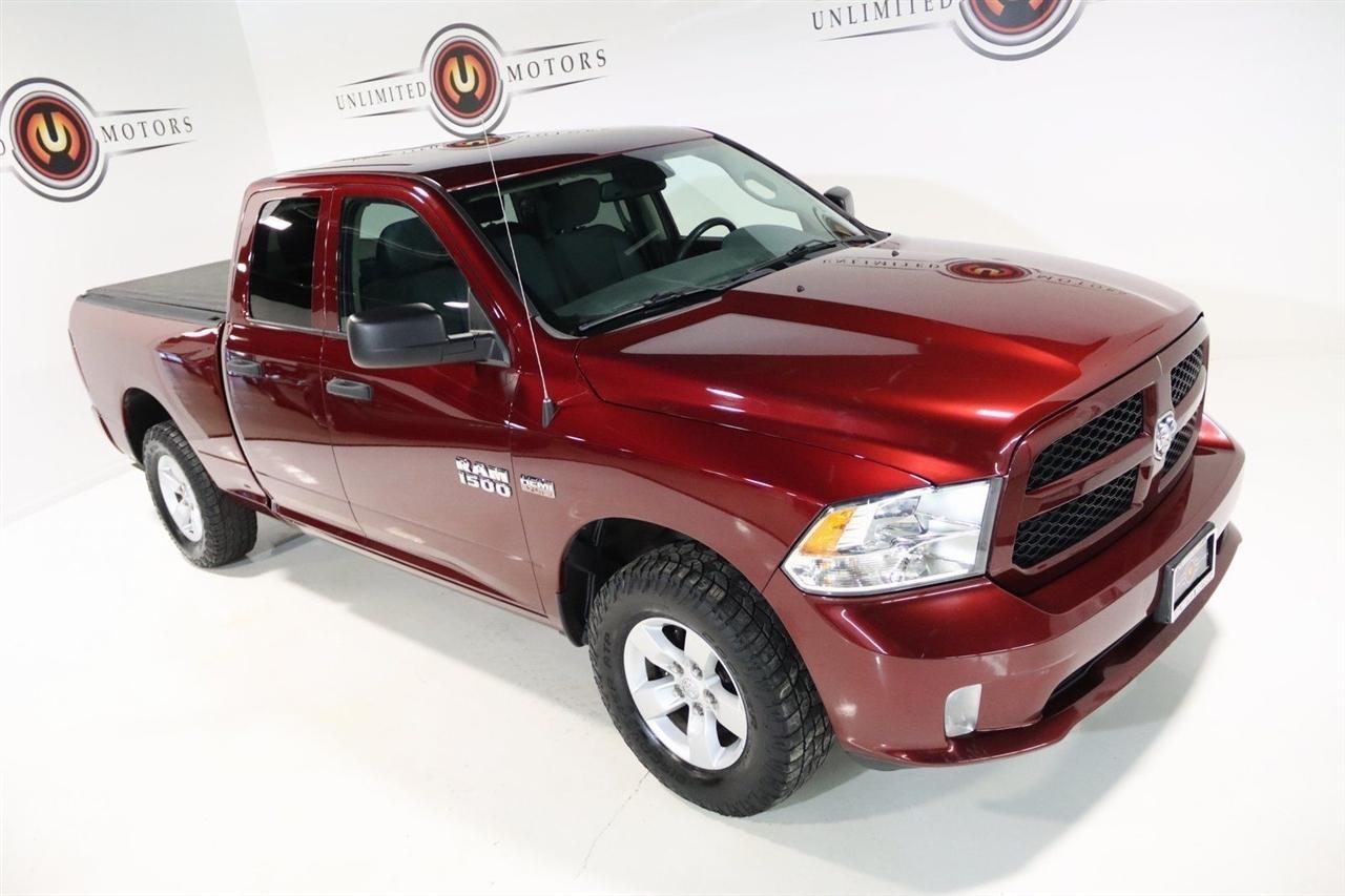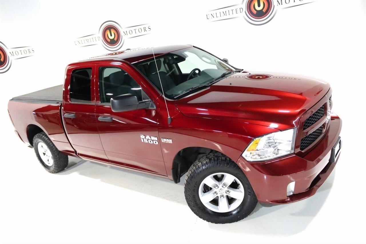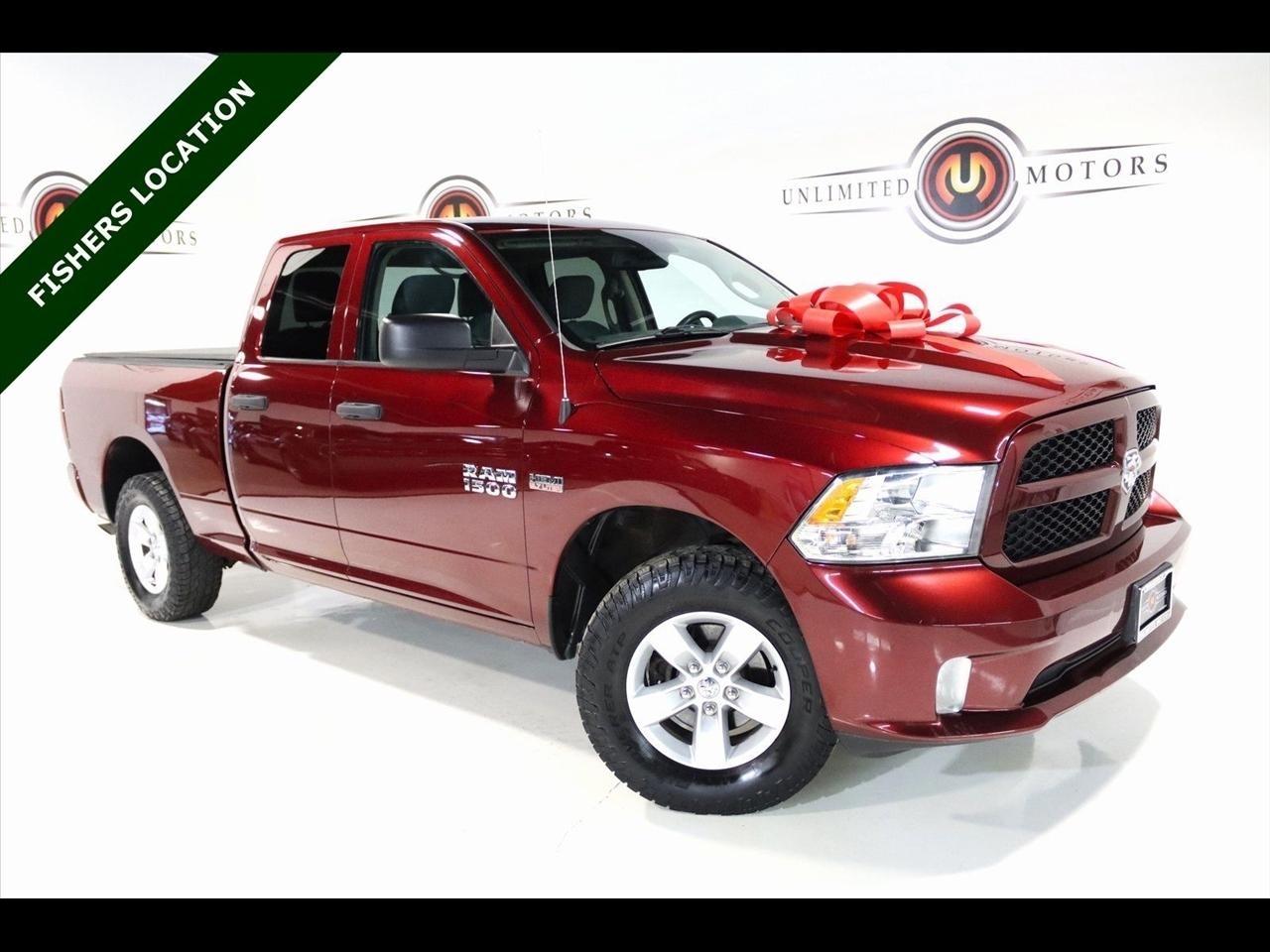 Bluetooth, Back Up Camera, Towing, Touch Screen, 1-Year SiriusXM Radio Service, 17 x 7 Aluminum Wheels, 3.21 Rear Axle Ratio, 4-Wheel Disc Brakes, 40/20/40 Split Bench Seat, 6 Speakers, ABS brakes, Add Class IV Receiver Hitch, Air Conditioning, AM/FM radio, Audio Jack Input for Mobile Devices, Auto-dimming Rear-View mirror, Black Exterior Mirrors, Body Color Front Fascia, Body Color Grille, Body Color Rear Bumper w/Step Pads, Brake assist, Carpet Floor Covering, Center Hub, Charge Only Remote USB Port, Cloth 40/20/40 Bench Seat, Delay-off headlights, Delete Class IV Receiver Hitch, Delete Spray In Bedliner, Driver door bin, Dual front impact airbags, Dual front side impact airbags, Dual Rear Exhaust w/Bright Tips, Electronic Stability Control, Exterior Mirrors w/Heating Element, For More Info, Call 800-643-2112, Front & Rear Rubber Floor Mats, Front anti-roll bar, Front Armrest w/3 Cupholders, Front Center Armrest, Front Floor Mats, Front Fog Lamps, Front wheel independent suspension, Fully automatic headlights, Heated door mirrors, Heavy Duty Vinyl 40/20/40 Split Bench Seat, Low tire pressure warning, Manual Adjust Seats, Media Hub (USB, AUX), No Satellite Coverage w/AK/HI/PR/VI/GU, Occupant sensing airbag, Overhead airbag, ParkView Rear Back-Up Camera, Popular Equipment Group, Power door mirrors, Power steering, Power windows, Quick Order Package 27J Express, Radio data system, Radio: 3.0, Ram 1500 Express, Rear anti-roll bar, Rear Floor Mats, Rear Folding Seat, Rear step bumper, Remote Keyless Entry w/All-Secure, Remote USB Port, SiriusXM Satellite Radio, Speed control, Tachometer, Tilt steering wheel, Traction control, Variably intermittent wipers, Voltmeter. Clean CARFAX. Odometer is 25586 miles below market average! Priced below KBB Fair Purchase Price!2018 Delmonico Red Pearlcoat Ram 4D Quad Cab 1500 Express 4WD 8-Speed Automatic HEMI 5.7L V8 Multi Displacement VVTVisit our website www.iumotors.com to view 100s of newer vehicles, more pictures and info, or to apply for financing. Rates are incredibly low for approved credit. We offer extended warranties, protection packages, and insurance. We assure you the best experience at any of our 4 locations and unbeatable prices and quality. At Unlimited Motors we believe in MARKET VALUE PRICING. We use real-time Internet price comparisons to constantly adjust prices to provide ALL BUYERS The BEST PRICE possible. We do not mark them up, to mark them down! Our entire team is committed to helping you buy a car the way we would want to buy a car! We utilize state-of-the-art technology to constantly monitor pricing trends to offer our shoppers the best competitive pricing, value, and experience. We sell and service all makes and models of Pre-owned / Used Vehicles Used Cars, Used Trucks, Used Sport Utility, Lamborghini, Ferrari, Bentley, Rolls Royce, McLaren, Maserati, Ford, Chevrolet/Chevy, Honda, Toyota, Porsche, Land Rover, Jaguar, INFINITI, Audi, Nissan, Mazda, Hyundai, Chrysler, Jeep, Dodge, Ram, SRT, Mitsubishi, Lexus, Kia, Volkswagen, Mini, BMW, Mercedes, Fiat, Volvo, GMC, Cadillac, Lincoln as well as other brands. Proudly serving these areas of Indianapolis, Fishers, Carmel, Noblesville, Greenwood, Avon, Plainfield, Zionsville, & Brownsburg, Indiana, Midwest. We also serve the entire nation with our seamless and easy online purchasing process, and offer shipping nationwide.Advertised prices DO NOT include Sales Tax, Dealer Fees, Title Processing Charges, and Dealer Pre-installed Products.