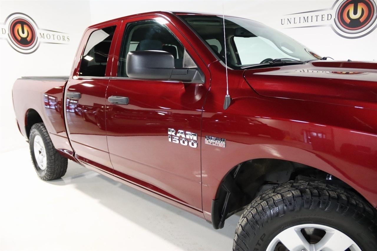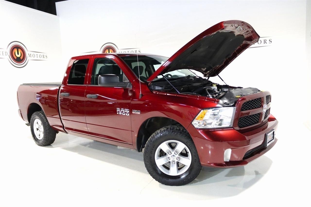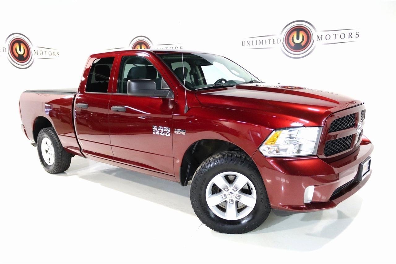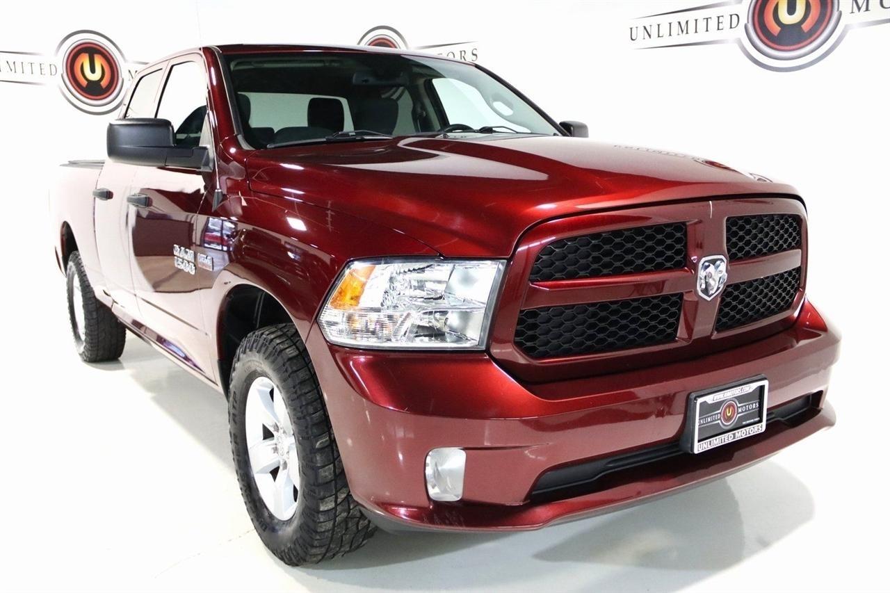 Bluetooth, Back Up Camera, Towing, Touch Screen, 1-Year SiriusXM Radio Service, 17 x 7 Aluminum Wheels, 3.21 Rear Axle Ratio, 4-Wheel Disc Brakes, 40/20/40 Split Bench Seat, 6 Speakers, ABS brakes, Add Class IV Receiver Hitch, Air Conditioning, AM/FM radio, Audio Jack Input for Mobile Devices, Auto-dimming Rear-View mirror, Black Exterior Mirrors, Body Color Front Fascia, Body Color Grille, Body Color Rear Bumper w/Step Pads, Brake assist, Carpet Floor Covering, Center Hub, Charge Only Remote USB Port, Cloth 40/20/40 Bench Seat, Delay-off headlights, Delete Class IV Receiver Hitch, Delete Spray In Bedliner, Driver door bin, Dual front impact airbags, Dual front side impact airbags, Dual Rear Exhaust w/Bright Tips, Electronic Stability Control, Exterior Mirrors w/Heating Element, For More Info, Call 800-643-2112, Front & Rear Rubber Floor Mats, Front anti-roll bar, Front Armrest w/3 Cupholders, Front Center Armrest, Front Floor Mats, Front Fog Lamps, Front wheel independent suspension, Fully automatic headlights, Heated door mirrors, Heavy Duty Vinyl 40/20/40 Split Bench Seat, Low tire pressure warning, Manual Adjust Seats, Media Hub (USB, AUX), No Satellite Coverage w/AK/HI/PR/VI/GU, Occupant sensing airbag, Overhead airbag, ParkView Rear Back-Up Camera, Popular Equipment Group, Power door mirrors, Power steering, Power windows, Quick Order Package 27J Express, Radio data system, Radio: 3.0, Ram 1500 Express, Rear anti-roll bar, Rear Floor Mats, Rear Folding Seat, Rear step bumper, Remote Keyless Entry w/All-Secure, Remote USB Port, SiriusXM Satellite Radio, Speed control, Tachometer, Tilt steering wheel, Traction control, Variably intermittent wipers, Voltmeter. Clean CARFAX. Odometer is 25586 miles below market average! Priced below KBB Fair Purchase Price!2018 Delmonico Red Pearlcoat Ram 4D Quad Cab 1500 Express 4WD 8-Speed Automatic HEMI 5.7L V8 Multi Displacement VVTVisit our website www.iumotors.com to view 100s of newer vehicles, more pictures and info, or to apply for financing. Rates are incredibly low for approved credit. We offer extended warranties, protection packages, and insurance. We assure you the best experience at any of our 4 locations and unbeatable prices and quality. At Unlimited Motors we believe in MARKET VALUE PRICING. We use real-time Internet price comparisons to constantly adjust prices to provide ALL BUYERS The BEST PRICE possible. We do not mark them up, to mark them down! Our entire team is committed to helping you buy a car the way we would want to buy a car! We utilize state-of-the-art technology to constantly monitor pricing trends to offer our shoppers the best competitive pricing, value, and experience. We sell and service all makes and models of Pre-owned / Used Vehicles Used Cars, Used Trucks, Used Sport Utility, Lamborghini, Ferrari, Bentley, Rolls Royce, McLaren, Maserati, Ford, Chevrolet/Chevy, Honda, Toyota, Porsche, Land Rover, Jaguar, INFINITI, Audi, Nissan, Mazda, Hyundai, Chrysler, Jeep, Dodge, Ram, SRT, Mitsubishi, Lexus, Kia, Volkswagen, Mini, BMW, Mercedes, Fiat, Volvo, GMC, Cadillac, Lincoln as well as other brands. Proudly serving these areas of Indianapolis, Fishers, Carmel, Noblesville, Greenwood, Avon, Plainfield, Zionsville, & Brownsburg, Indiana, Midwest. We also serve the entire nation with our seamless and easy online purchasing process, and offer shipping nationwide.Advertised prices DO NOT include Sales Tax, Dealer Fees, Title Processing Charges, and Dealer Pre-installed Products.