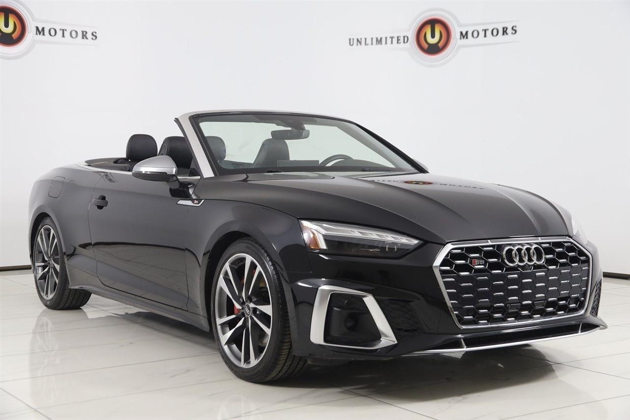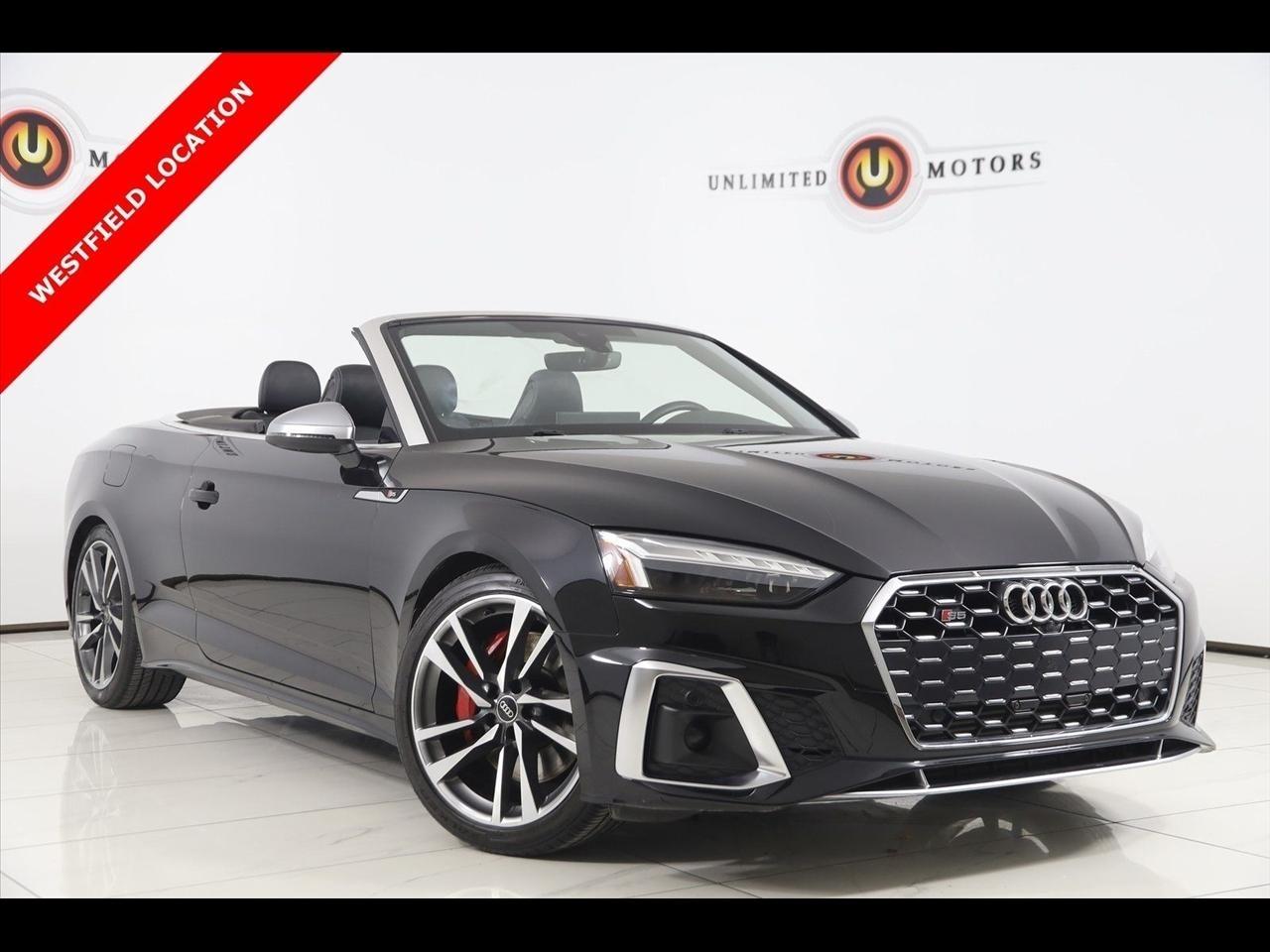2022 Audi S5 Black Metallic Now Available at Unlimited Motors Westfield! With over 20 years in business and 4 Indiana locations, Unlimited Motors is known for offering high-quality, hand-selected vehicles at excellent pricing with outstanding customer service. Our inventory of over 1,000 vehicles includes major makes such as Ford, Chevrolet, Ram, Jeep, GMC, Dodge, BMW, Mercedes-Benz, Audi, Cadillac, Porsche, Maserati, Ferrari, and Lamborghini, giving customers one of the largest selections of quality vehicles in the Midwest. Vehicle Highlights:Navigation, Back Up Camera, Bluetooth, Touch Screen, Heated Front Seats, Ventilated Front Seats, Blind Spot, Apple CarPlay/Android Auto, Massage Front Seats, S5 3.0T Premium Plus quattro, 2D Convertible, 3.0L TFSI, 8-Speed Automatic with Tiptronic, quattro, Black Metallic, Black Leather, Alarm System w/Motion Sensor, Audi Active Lane Assist, Audi Adaptive Cruise Control w/Traffic Jam Assist, Audi Advanced Key, Audi Connect PRIME & PLUS, Audi Phone Box, Audi Side Assist w/Pre Sense Rear, Audi Virtual Cockpit Plus, Auto-Dimming Exterior Mirrors, Convenience Package, Driver Seat Memory, Hands-On Detection Steering Wheel, Heated Steering Wheel, Leatherette Covered Center Console & Door Armrests, MMI Navigation Plus, Navigation Package, Navigation System, Parking System Plus, Power Folding Exterior Mirrors, Premium Plus Package, Red Brake Calipers, S Sport Package, SiriusXM All Access Service, Sport Adaptive Damping Suspension, Sport Rear Differential, Top View Camera System.Clean CARFAX. Priced below KBB Fair Purchase Price!Visit www.iumotors.com to explore our full inventory of over 1,000 hand-picked vehicles across our Westfield, Fishers, Noblesville, and Elwood locations. At Unlimited Motors, we offer a premium car-buying experience with competitive financing through local credit unions and national lenders, top trade-in values, full auto repair and maintenance services for customer vehicles, and nationwide shipping to all 50 states. Youll also find many of the most searched and in-demand models, including Ford F-150, Chevrolet Silverado, Ram 1500, Jeep Wrangler, Jeep Grand Cherokee, Chevrolet Tahoe, Chevrolet Suburban, GMC Yukon, GMC Sierra, Dodge Charger, Dodge Durango, Ford Explorer, BMW X5, BMW X3, BMW 3 Series, Mercedes-Benz GLE, Mercedes-Benz GLC, Cadillac Escalade, Audi Q5, Audi Q7, Porsche Cayenne, Porsche Macan, Maserati Ghibli, and more. Whether youre visiting from Westfield, Indianapolis, Carmel, Fishers, Noblesville, Zionsville, Greenwood, Lawrence, Brownsburg, Avon, Plainfield, Lebanon, Anderson, Muncie, Kokomo, Lafayette, Bloomington, Columbus, or anywhere across Central and Northern Indiana, we are here to help you find the perfect vehicle with exceptional service and unbeatable value. Call us today at 317-896-4488 1470 W Tournament Trl, Westfield, IN 46074. Disclaimer: Advertised prices DO NOT include Sales Tax, Dealer Fees, Title Processing Charges, and Dealer Pre-installed Products.