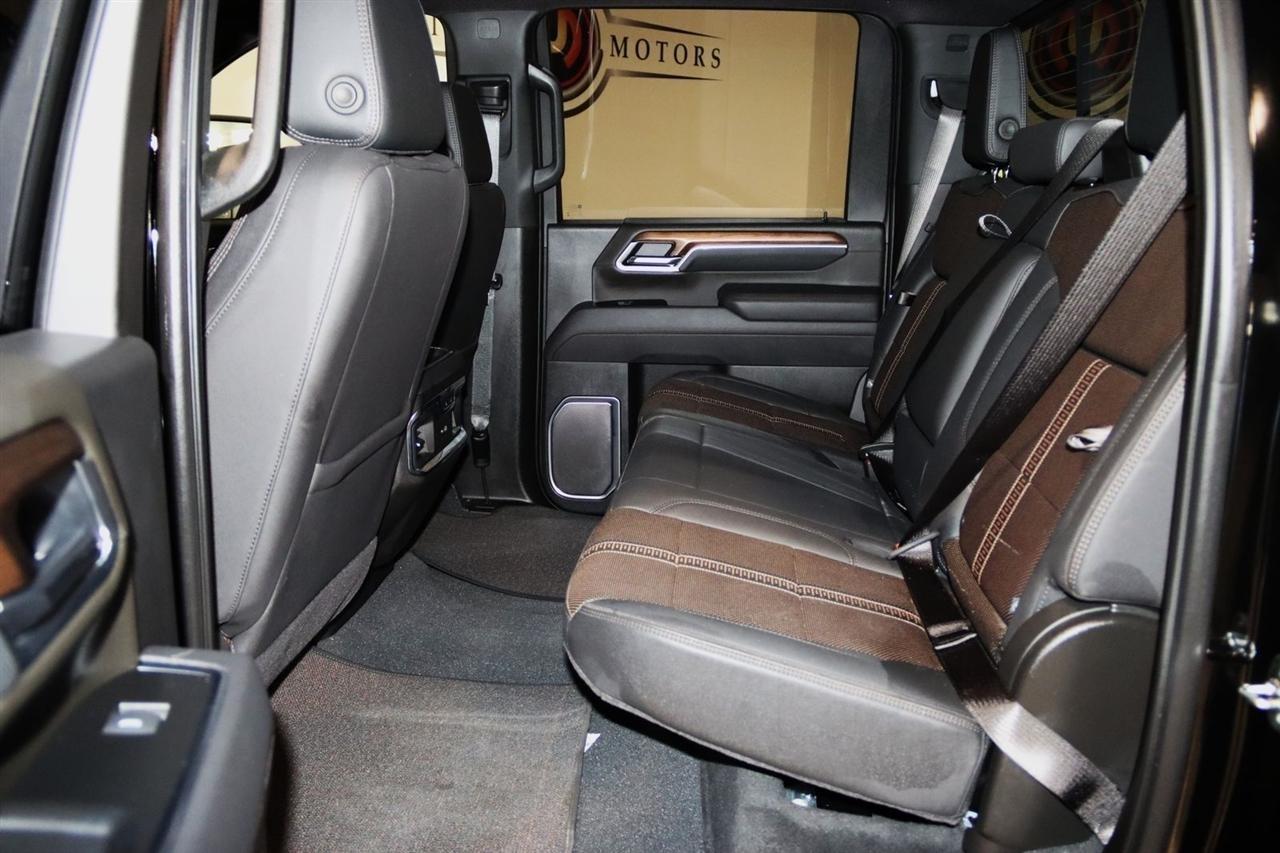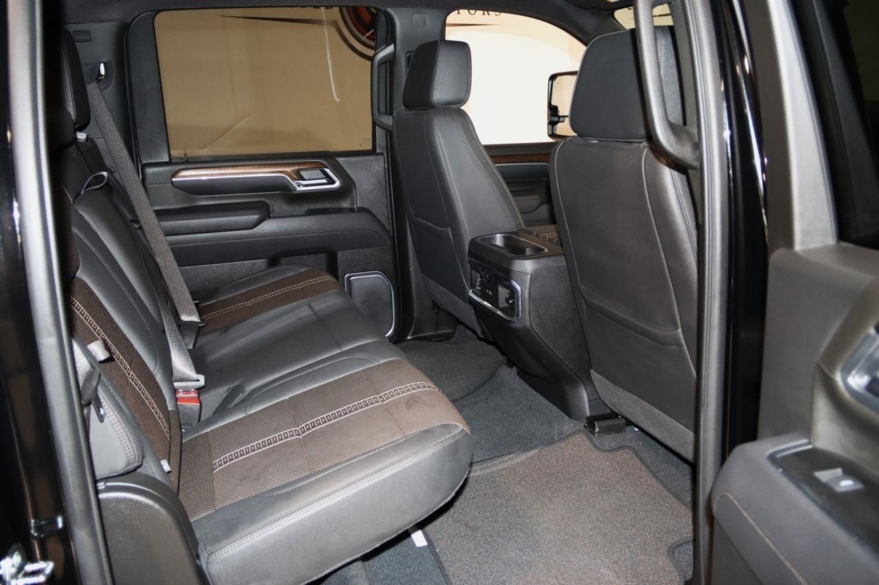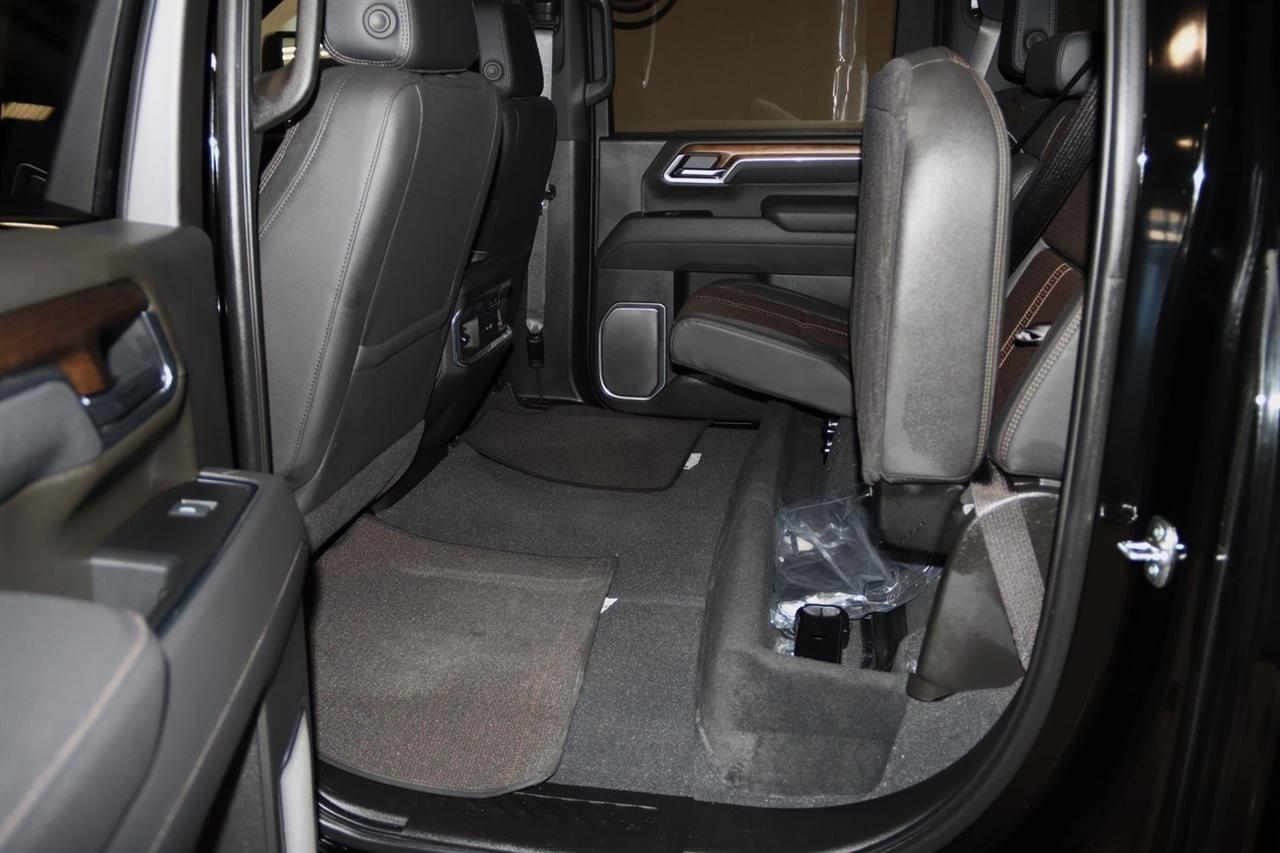 Bluetooth, Back Up Camera, Towing, Heated Seats, Touch Screen, 10-Way Power Driver Seat Adjuster with Lumbar, 10-Way Power Passenger Seat Adjuster with Lumbar, 120-Volt Bed Mounted Power Outlet, 120-Volt Interior Power Outlet, 15 Diagonal Multicolor Head-Up Display, 170 Amp Alternator, 220 Amp Alternator, 3.73 Rear Axle Ratio, 4-Wheel Disc Brakes, 6 Rectangular Chromed Tubular Assist Steps, 7 Speakers, 720 Cold-Cranking Amps Heavy-Duty Battery, ABS brakes, Air Conditioning, Alloy wheels, AM/FM radio: SiriusXM with 360L, Apple CarPlay/Android Auto, Auto High-beam Headlights, Auto-dimming door mirrors, Auto-Dimming Inside Rear-View Mirror, Auto-dimming Rear-View mirror, Automatic temperature control, Bed View Camera with Two Trailer Camera Provisions, Black Chevytec Spray-on Bedliner, Black Name Plates, Black Tailgate Lettering, Bluetooth For Phone, Bodyside moldings, BOSE Premium 7-Speaker Sound System, Brake assist, Bumpers: body-color, Chevrolet Connected Access Capable, Chrome Door Handles, Chrome Mirror Caps, Color-Keyed Carpeting Floor Covering, Compass, Dark Essentials Package, Deep-Tinted Glass, Delay-off headlights, Driver door bin, Driver Memory, Driver vanity mirror, Dual front impact airbags, Dual front side impact airbags, Durabed Pickup Bed, Electric Rear-Window Defogger, Electronic Stability Control, Emergency communication system: OnStar, Engine Block Heater, Exhaust Brake, Floor-Mounted Center Console, Front anti-roll bar, Front Black Bowtie Emblem, Front Bucket Seats, Front Carpeted Floor Mats, Front Center Armrest, Front Chrome Recovery Hooks, Front dual zone A/C, Front fog lights, Front LED Fog Lamps, Front Rain-Sensing Wipers, Front reading lights, Front wheel independent suspension, Fully automatic headlights, Garage door transmitter, Genuine wood console insert, Genuine wood dashboard insert, Genuine wood door panel insert, Heated 2nd Row Outboard Seats, Heated door mirrors, Heated Driver and Front Outboard Passenger Seating, Heated front seats, Heated rear seats, Heated Steering Wheel, Heated steering wheel, Hitch Guidance with Hitch View, Illuminated entry, in-Vehicle Trailering App System, Keyless Open and Start, LED Cargo Area Lighting, LED Smoked Amber Roof Marker Lamps, Low tire pressure warning, Manual Tilt and Telescoping Steering Column, Memory seat, Occupant sensing airbag, OnStar Services Capable, Outside temperature display, Overhead airbag, Overhead console, Panic alarm, Passenger door bin, Passenger vanity mirror, Perforated Leather Seat Trim, Polished Exhaust Tip, Power Door Locks, Power door mirrors, Power driver seat, Power Front Windows with Driver Express Up/Down, Power Front Windows with Passenger Express Up/Down, Power passenger seat, Power Rear Windows with Express Down, Power Sliding Rear Window with Defogger, Power steering, Power Up/Down Tailgate Function with Power Lock and Release, Power windows, Preferred Equipment Group 3LZ, Premium audio system: Chevrolet Infotainment 3 Premium, Push Button Start, Radio: Chevrolet Infotainment 3 Premium System, Rain sensing wipers, Rear Camera Mirror, Rear Carpeted Floor Mats, Rear Cross Traffic Alert, Rear reading lights, Rear seat center armrest, Rear step bumper, Rear Wheelhouse Liners, Rear window defroster, Remote keyless entry, Remote Vehicle Starter System, Security system, SiriusXM with 360L Trial Subscription, Speed control, Speed-sensing steering, Split folding rear seat, Standard Tailgate, Steering Wheel Audio Controls, Steering wheel mounted audio controls, Suspension Package, Tachometer, Technology Package, Telescoping steering wheel, Tilt steering wheel, Traction control, Trailer Camera Provisions, Trip computer, Turn signal indicator mirrors, Ultrasonic Front and Rear Park Assist, Unauthorized Entry Theft-Deterrent System, Universal Home Remote, Up-Level Rear Seat with Storage Package, Variably intermittent wipers, Ventilated Driver and Front Passenger Seats, Ventilated front seats, Voltmeter, Wheels: 20 8-Spoke Polished, W