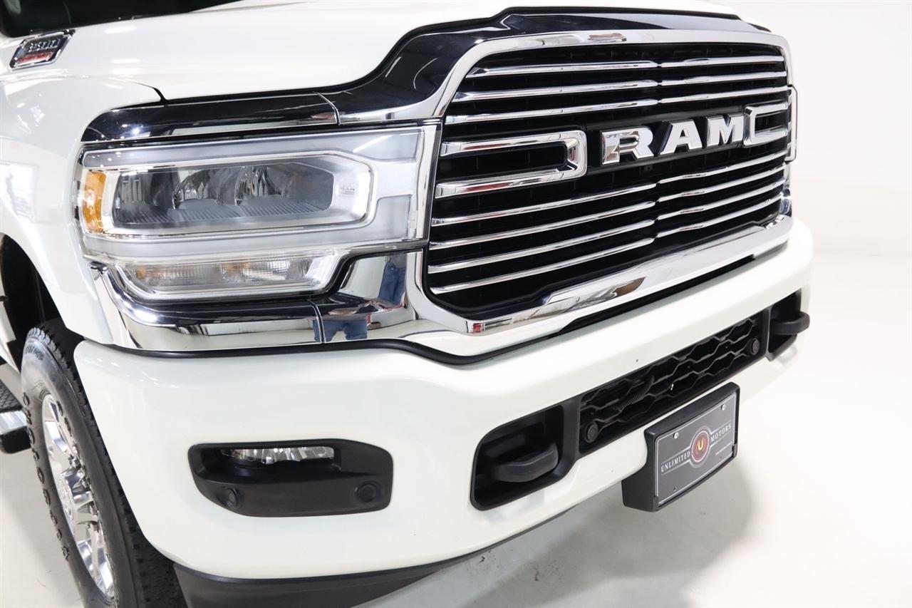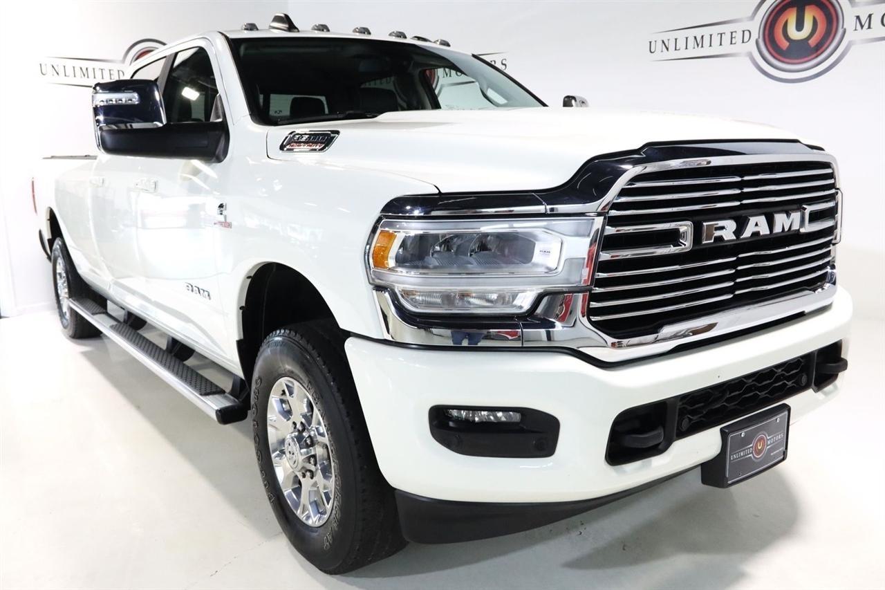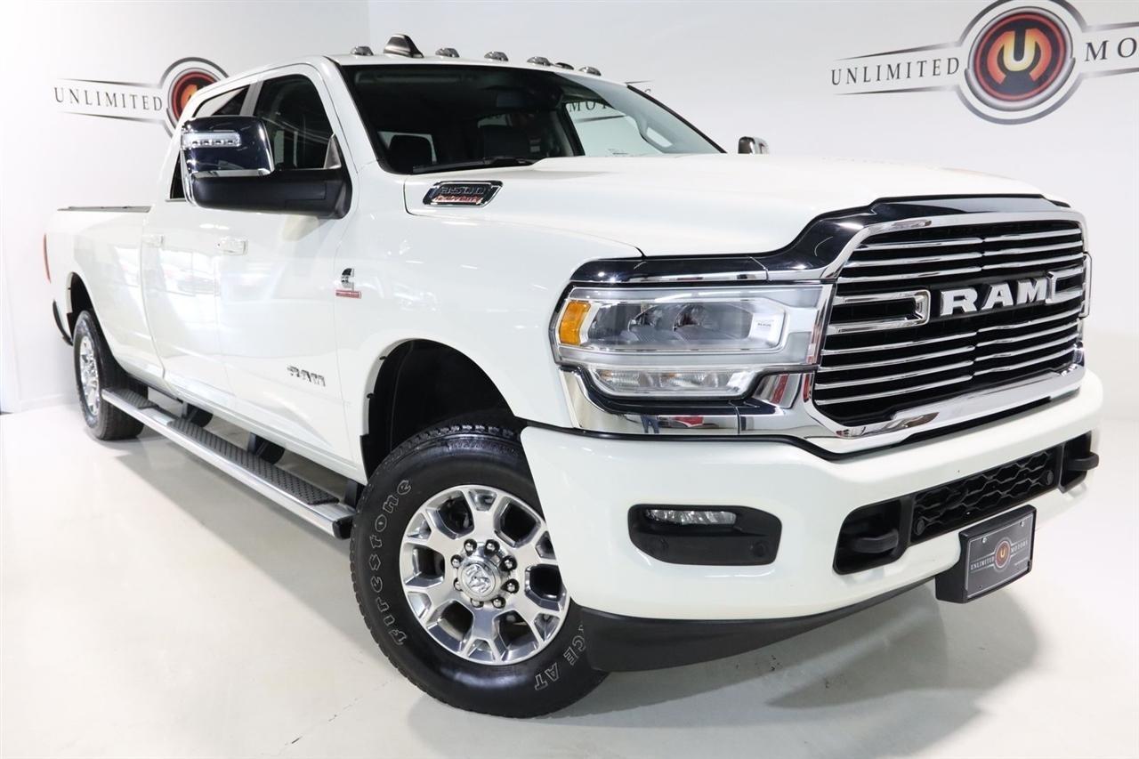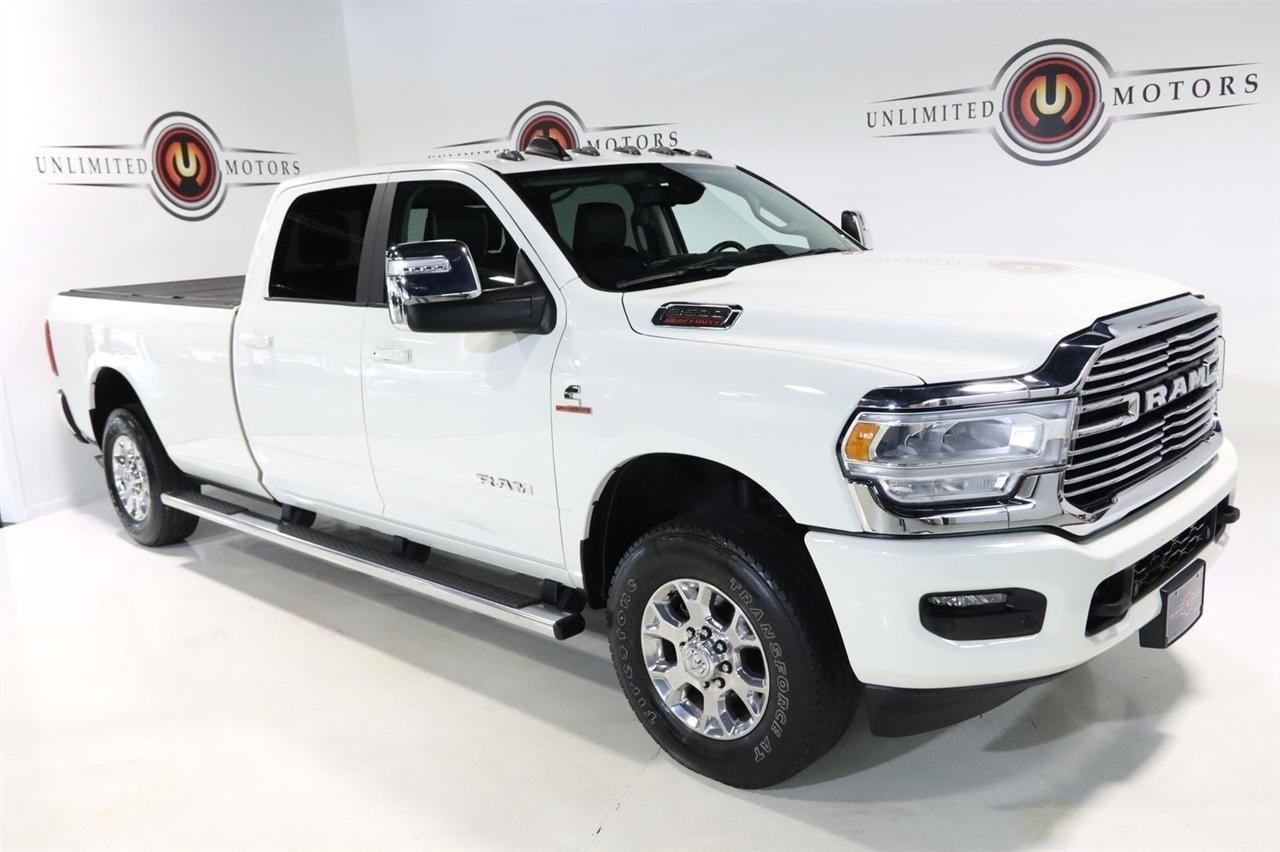 Navigation, Bluetooth, Back Up Camera, Towing, Heated Seats, Touch Screen, 10 Speakers, 115V Auxiliary Rear Power Outlet, 12 Touchscreen Display, 17 Speaker harman/kardon Premium Sound, 18 x 8 Polished Aluminum Wheels, 2 Way Rear Headrest Seat, 220 Amp Alternator, 2nd Row In Floor Storage Bins, 3.73 Axle Ratio, 4 Way Front Headrests, 4-Wheel Disc Brakes, 4G LTE Wi-Fi Hot Spot, 50 Gallon Fuel Tank, 5th Wheel/Gooseneck Towing Prep Group, 8.4 Touchscreen Display, ABS brakes, Active Noise Control System, Air Conditioning, Alexa Built-In, All R1 High Radios, All Radio Equipped Vehicles, Alloy wheels, AM/FM radio: SiriusXM with 360L, Apple CarPlay, Apple CarPlay/Android Auto, Auto Adjust In Reverse Exterior Mirrors, Auto Dimming Exterior Passenger Mirror, Auto High Beam Headlamp Control, Auto Level Rear Air Suspension, Auto Power-Folding Mirrors, Auto-Dimming Exterior Mirrors, Auto-dimming Rear-View mirror, Automatic temperature control, Blind Spot & Cross Path Detection, Brake assist, Bumpers: body-color, Center Hub, Chrome Exterior Mirrors, Clearance Lamps, Compass, Connected Travel & Traffic Services, Connectivity - US/Canada, Dash Pass Thru Wire Circuits, Delay-off headlights, Disassociated Touchscreen Display, Driver door bin, Driver vanity mirror, Dual front impact airbags, Dual front side impact airbags, Electronic Stability Control, Electronically Controlled Throttle, Exterior Mirrors Courtesy Lamps, Exterior Mirrors w/Heating Element, Exterior Mirrors w/Memory, Exterior Mirrors w/Supplemental Signals, Foam Bottle Insert (Door Trim Panel), Folding Flat Load Floor Storage, For Details Visit DriveUconnect.com, For More Info, Call 800-643-2112, Forward & Reverse Utility Lights, Front anti-roll bar, Front Center Armrest w/Storage, Front dual zone A/C, Front LED Fog Lamps, Front reading lights, Front Seat Back Map Pockets, Fully automatic headlights, Garage door transmitter, Global Telematics Box Module (TBM), Google Android Auto, GPS Antenna Input, GPS Navigation, HD Radio, Heated door mirrors, Heated Front Seats, Heated front seats, Heated Second Row Seats, Heated Steering Wheel, Heated steering wheel, High Back Seats, I/P Mounted Auxiliary Switches, Illuminated entry, Integrated Center Stack Radio, Integrated Voice Command w/Bluetooth, Laramie Level B Equipment Group, Leather steering wheel, Leather Trim 40/20/40 Bench Seat, LED Reflector Headlamps, LED Tail Lamps, Low tire pressure warning, Mirror Running Lights, MOPAR Front & Rear Rubber Floor Mats, MOPAR Spray In Bedliner, Navigation System, Occupant sensing airbag, Off-Road Information Pages, Outside temperature display, Overhead airbag, Overhead console, Panic alarm, ParkSense Front/Rear Park Assist System, ParkView Rear Back-Up Camera, Passenger door bin, Passenger vanity mirror, Power 8-Way Adjustable Passenger Seat, Power Adjust 8-Way Driver Seat, Power Adjust Mirrors, Power Adjustable Pedals w/Memory, Power door mirrors, Power driver seat, Power Heat Fold Memory Telescopic Mirrors, Power passenger seat, Power steering, Power Telescoping Mirrors, Power windows, Power-Adjustable Convex Aux Mirrors, Quick Order Package 21H Laramie, Radio data system, Radio: Uconnect 5 Nav w/12.0 Display, Radio: Uconnect 5 Nav w/8.4 Display, Rain Sensitive Windshield Wipers, Rear 60/40 Folding Seat, Rear Power Sliding Window, Rear reading lights, Rear seat center armrest, Rear step bumper, Rear Window Defroster, Remote keyless entry, Remote Tailgate Release, Security system, Selectable Tire Fill Alert, SiriusXM Radio Service, SiriusXM w/360L, Speed control, Split folding rear seat, Steering wheel mounted audio controls, Tachometer, Tilt steering wheel, Tip Start, Traction control, Trailer Tow Pages, Trip computer, Turn signal indicator mirrors, Variably intermittent wipers, Voltmeter, Wheels: 18 x 8.0 Polished Aluminum. CARFAX One-Owner. Clean CARFAX. Odometer is 9267 miles below market average!2024 Pearl White Ram 4D Crew Cab 3500 Laramie 4WD 6-Speed Automatic Cummins 6.7