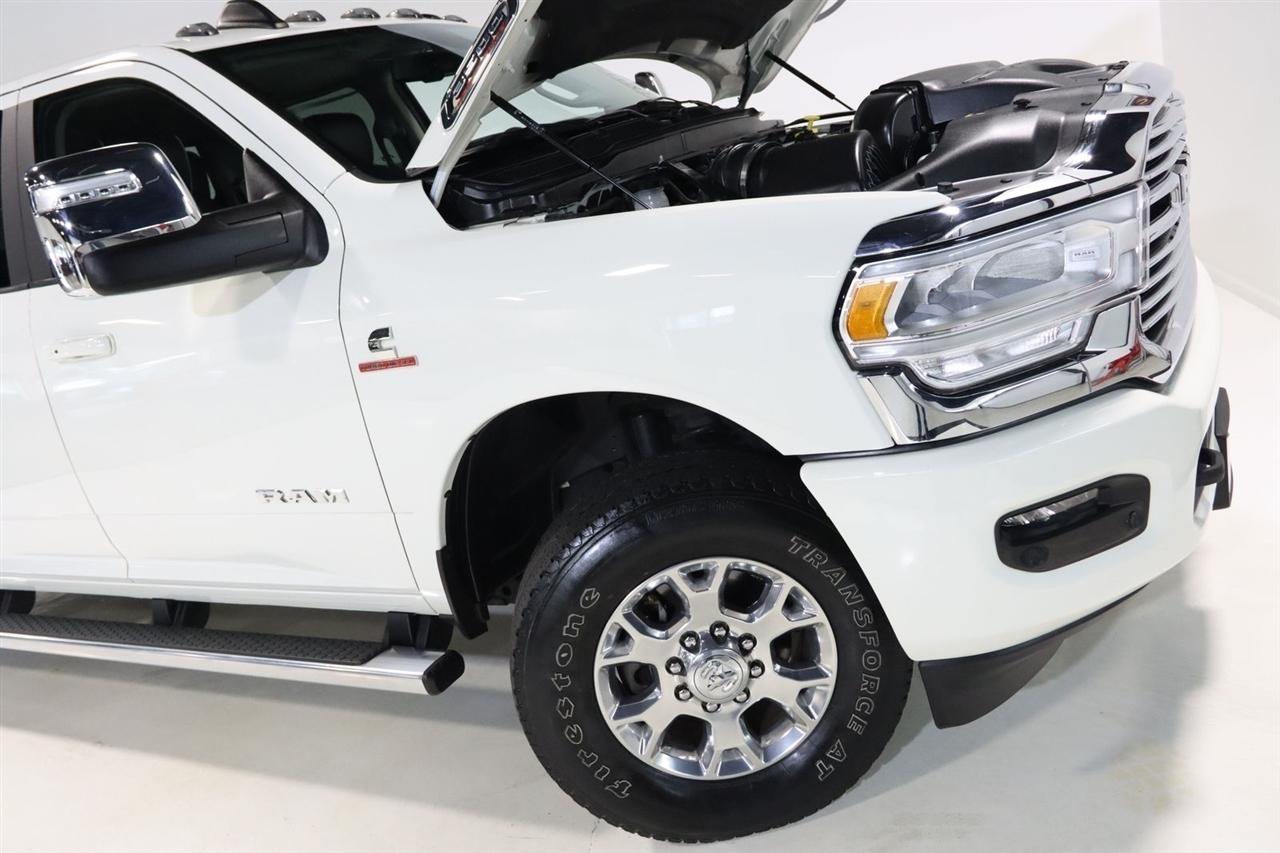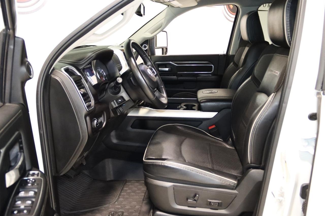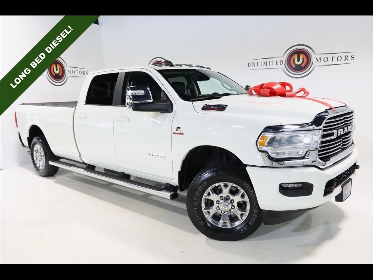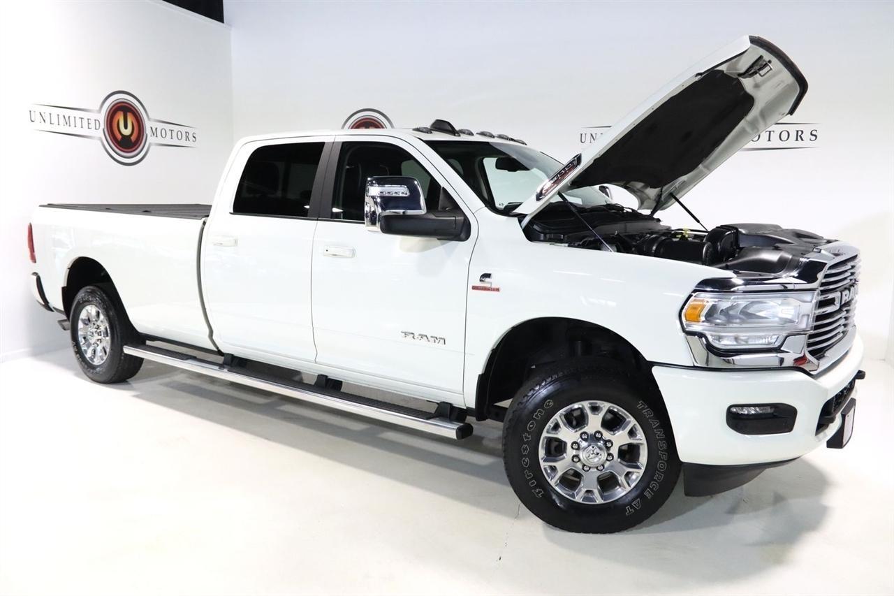 Navigation, Bluetooth, Back Up Camera, Towing, Heated Seats, Touch Screen, 10 Speakers, 115V Auxiliary Rear Power Outlet, 12 Touchscreen Display, 17 Speaker harman/kardon Premium Sound, 18 x 8 Polished Aluminum Wheels, 2 Way Rear Headrest Seat, 220 Amp Alternator, 2nd Row In Floor Storage Bins, 3.73 Axle Ratio, 4 Way Front Headrests, 4-Wheel Disc Brakes, 4G LTE Wi-Fi Hot Spot, 50 Gallon Fuel Tank, 5th Wheel/Gooseneck Towing Prep Group, 8.4 Touchscreen Display, ABS brakes, Active Noise Control System, Air Conditioning, Alexa Built-In, All R1 High Radios, All Radio Equipped Vehicles, Alloy wheels, AM/FM radio: SiriusXM with 360L, Apple CarPlay, Apple CarPlay/Android Auto, Auto Adjust In Reverse Exterior Mirrors, Auto Dimming Exterior Passenger Mirror, Auto High Beam Headlamp Control, Auto Level Rear Air Suspension, Auto Power-Folding Mirrors, Auto-Dimming Exterior Mirrors, Auto-dimming Rear-View mirror, Automatic temperature control, Blind Spot & Cross Path Detection, Brake assist, Bumpers: body-color, Center Hub, Chrome Exterior Mirrors, Clearance Lamps, Compass, Connected Travel & Traffic Services, Connectivity - US/Canada, Dash Pass Thru Wire Circuits, Delay-off headlights, Disassociated Touchscreen Display, Driver door bin, Driver vanity mirror, Dual front impact airbags, Dual front side impact airbags, Electronic Stability Control, Electronically Controlled Throttle, Exterior Mirrors Courtesy Lamps, Exterior Mirrors w/Heating Element, Exterior Mirrors w/Memory, Exterior Mirrors w/Supplemental Signals, Foam Bottle Insert (Door Trim Panel), Folding Flat Load Floor Storage, For Details Visit DriveUconnect.com, For More Info, Call 800-643-2112, Forward & Reverse Utility Lights, Front anti-roll bar, Front Center Armrest w/Storage, Front dual zone A/C, Front LED Fog Lamps, Front reading lights, Front Seat Back Map Pockets, Fully automatic headlights, Garage door transmitter, Global Telematics Box Module (TBM), Google Android Auto, GPS Antenna Input, GPS Navigation, HD Radio, Heated door mirrors, Heated Front Seats, Heated front seats, Heated Second Row Seats, Heated Steering Wheel, Heated steering wheel, High Back Seats, I/P Mounted Auxiliary Switches, Illuminated entry, Integrated Center Stack Radio, Integrated Voice Command w/Bluetooth, Laramie Level B Equipment Group, Leather steering wheel, Leather Trim 40/20/40 Bench Seat, LED Reflector Headlamps, LED Tail Lamps, Low tire pressure warning, Mirror Running Lights, MOPAR Front & Rear Rubber Floor Mats, MOPAR Spray In Bedliner, Navigation System, Occupant sensing airbag, Off-Road Information Pages, Outside temperature display, Overhead airbag, Overhead console, Panic alarm, ParkSense Front/Rear Park Assist System, ParkView Rear Back-Up Camera, Passenger door bin, Passenger vanity mirror, Power 8-Way Adjustable Passenger Seat, Power Adjust 8-Way Driver Seat, Power Adjust Mirrors, Power Adjustable Pedals w/Memory, Power door mirrors, Power driver seat, Power Heat Fold Memory Telescopic Mirrors, Power passenger seat, Power steering, Power Telescoping Mirrors, Power windows, Power-Adjustable Convex Aux Mirrors, Quick Order Package 21H Laramie, Radio data system, Radio: Uconnect 5 Nav w/12.0 Display, Radio: Uconnect 5 Nav w/8.4 Display, Rain Sensitive Windshield Wipers, Rear 60/40 Folding Seat, Rear Power Sliding Window, Rear reading lights, Rear seat center armrest, Rear step bumper, Rear Window Defroster, Remote keyless entry, Remote Tailgate Release, Security system, Selectable Tire Fill Alert, SiriusXM Radio Service, SiriusXM w/360L, Speed control, Split folding rear seat, Steering wheel mounted audio controls, Tachometer, Tilt steering wheel, Tip Start, Traction control, Trailer Tow Pages, Trip computer, Turn signal indicator mirrors, Variably intermittent wipers, Voltmeter, Wheels: 18 x 8.0 Polished Aluminum. CARFAX One-Owner. Clean CARFAX. Odometer is 9267 miles below market average!2024 Pearl White Ram 4D Crew Cab 3500 Laramie 4WD 6-Speed Automatic Cummins 6.7